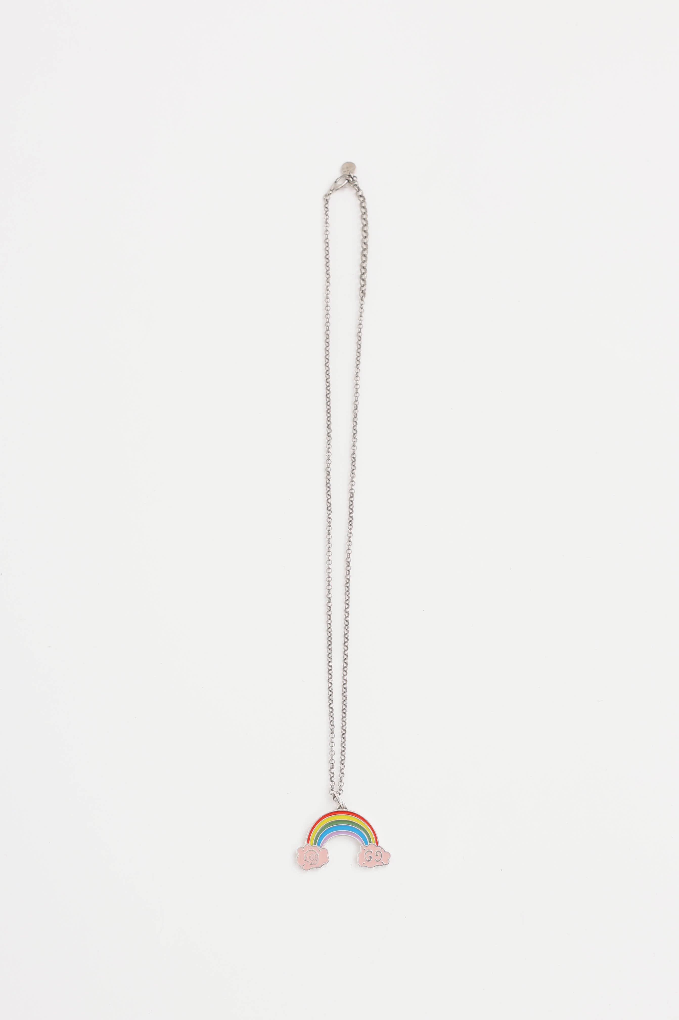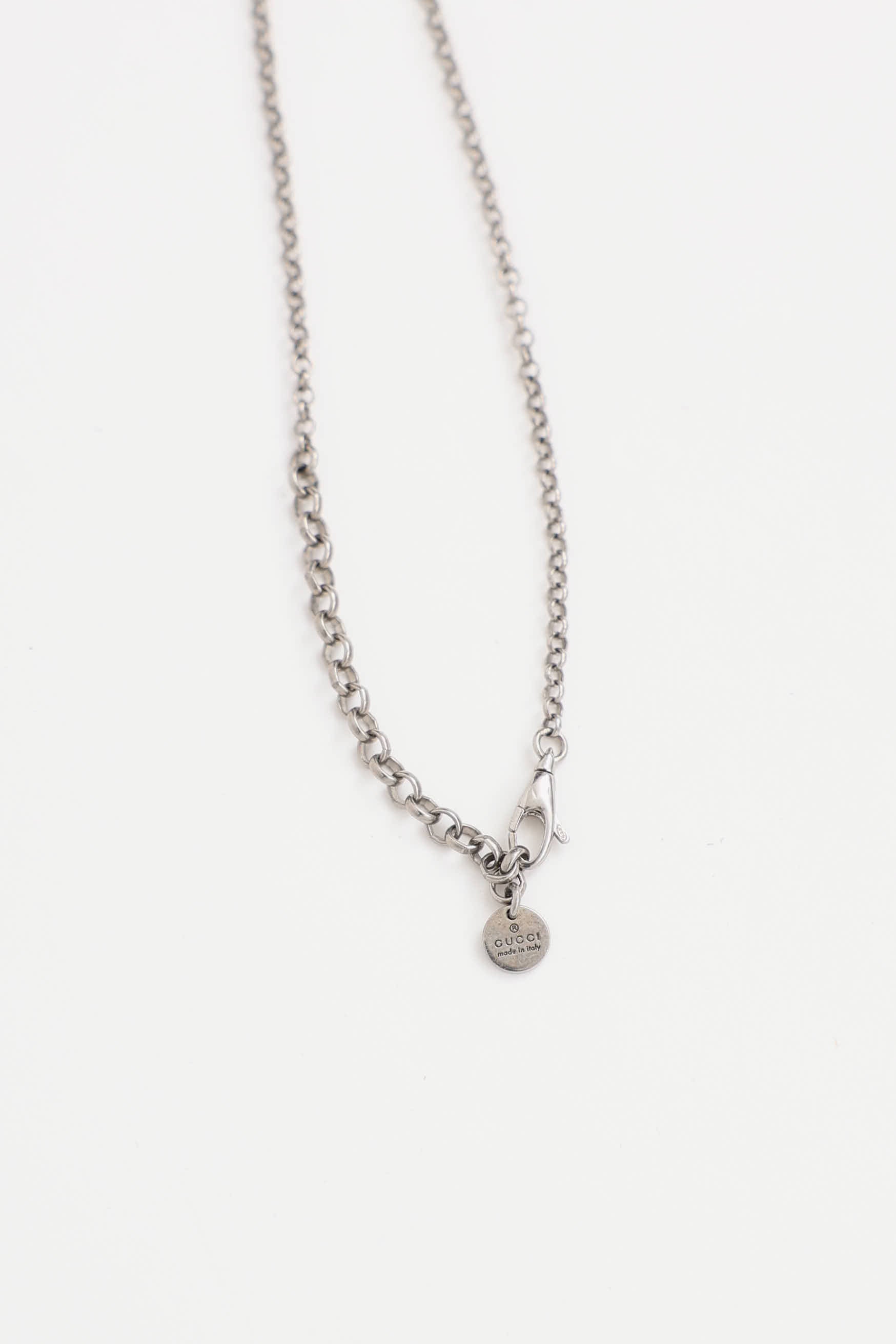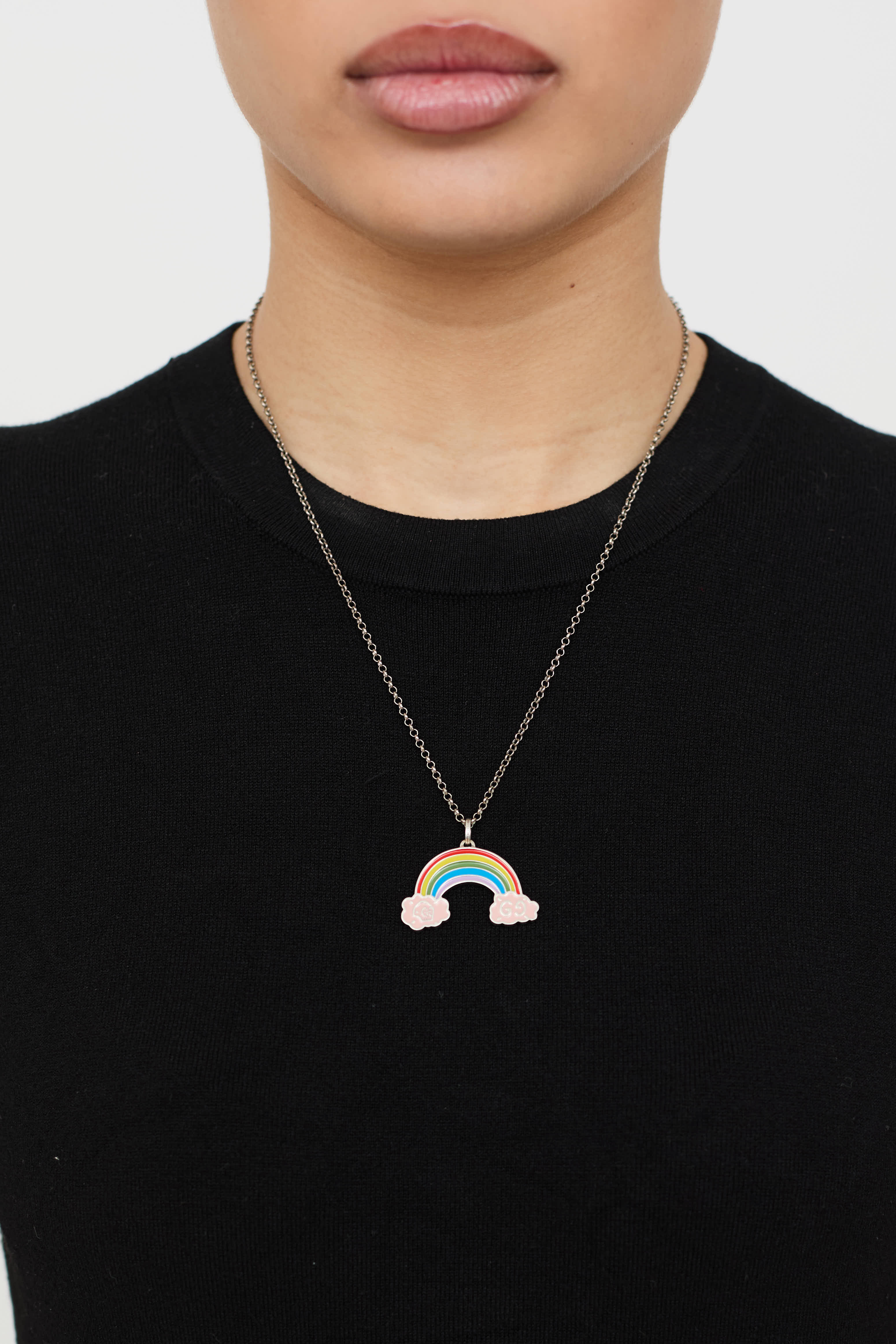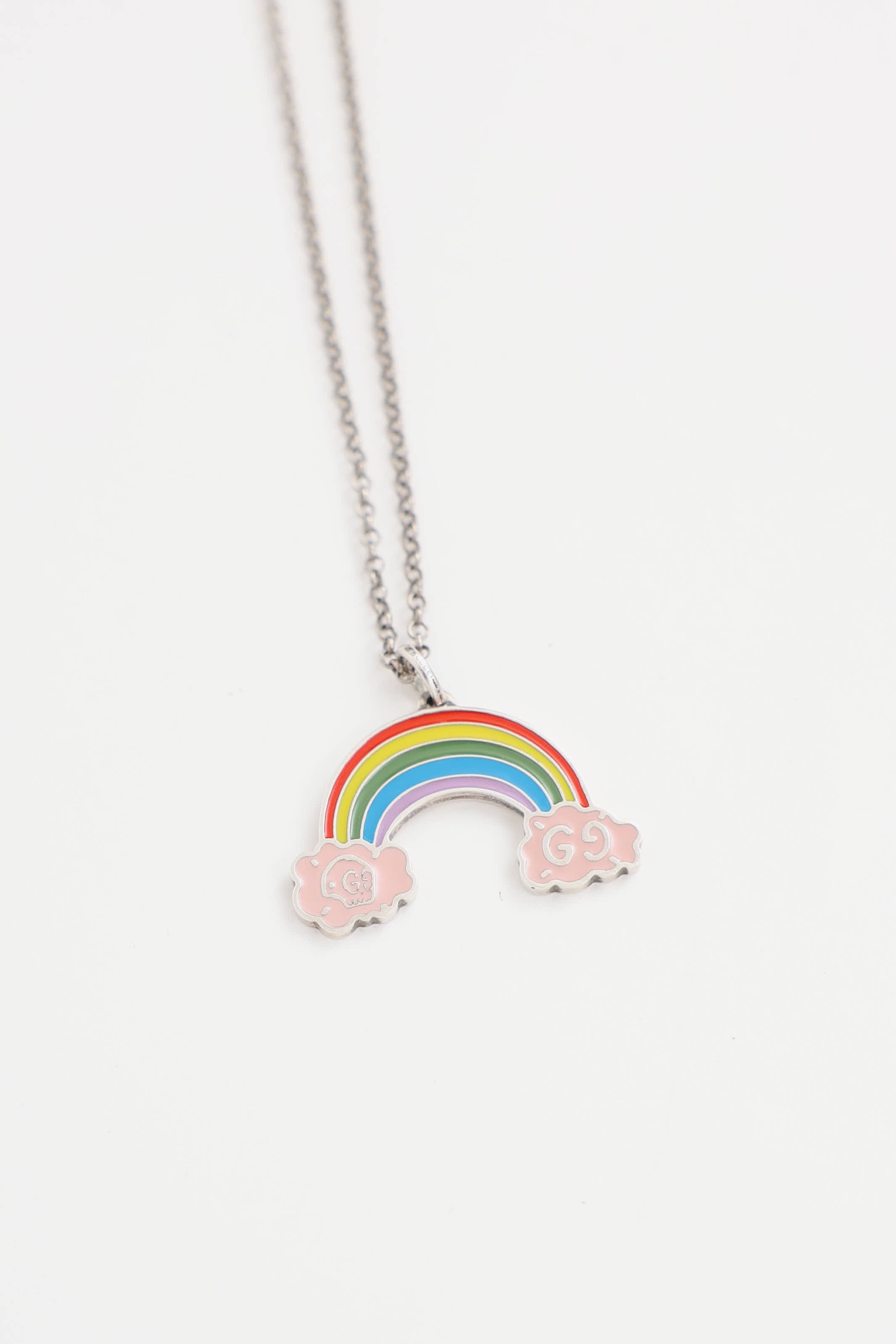 Pre-owned Gucci sterling silver necklace featuring a multicolour rainbow GG logo pendant, chain link, "Ag 925" stamping, and lobster clasp closure.