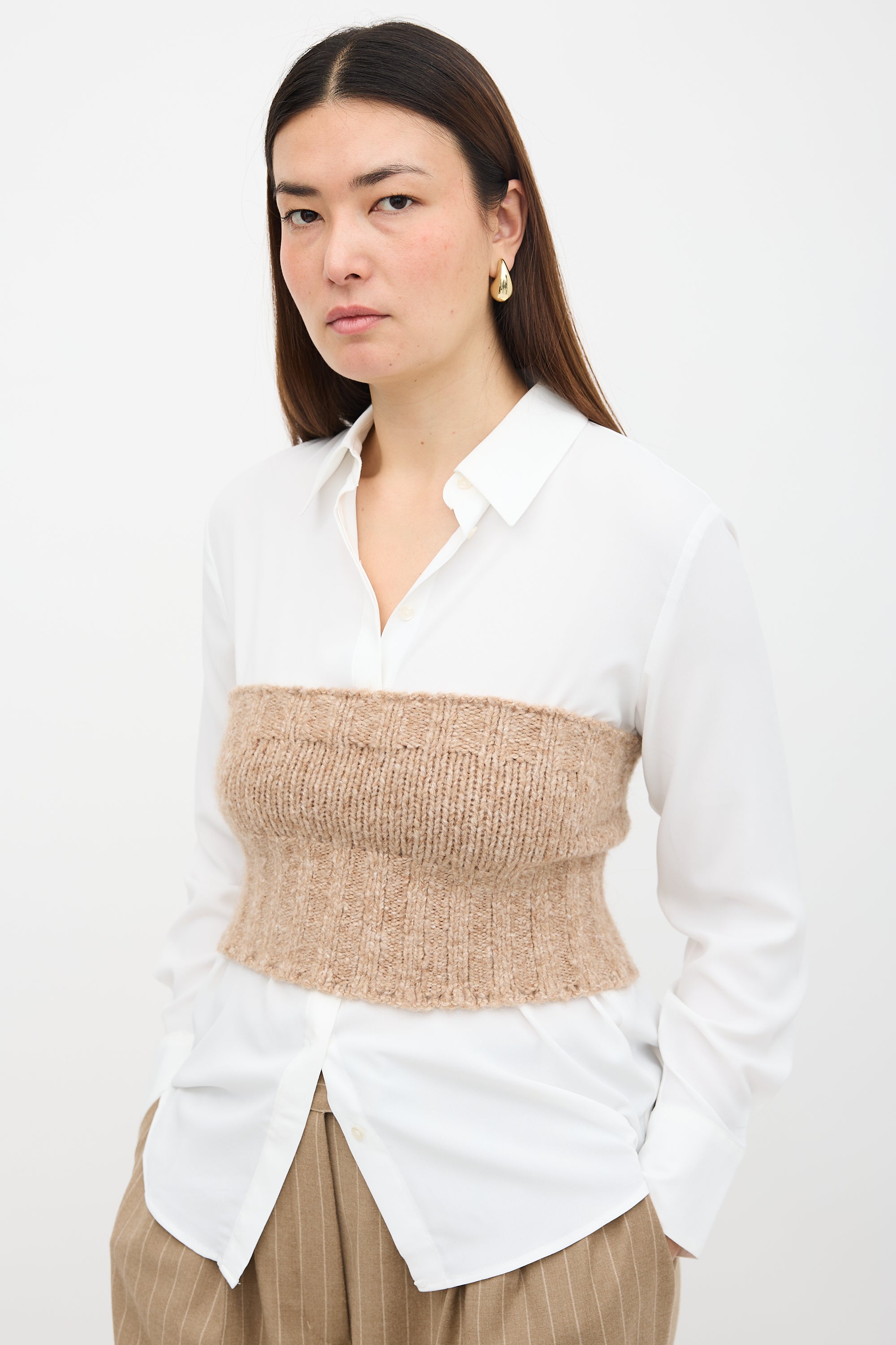 Pre-owned Cult Gaia brown knit Virginie tube top featuring a straight neckline and ribbed trims. Styled with shirt.