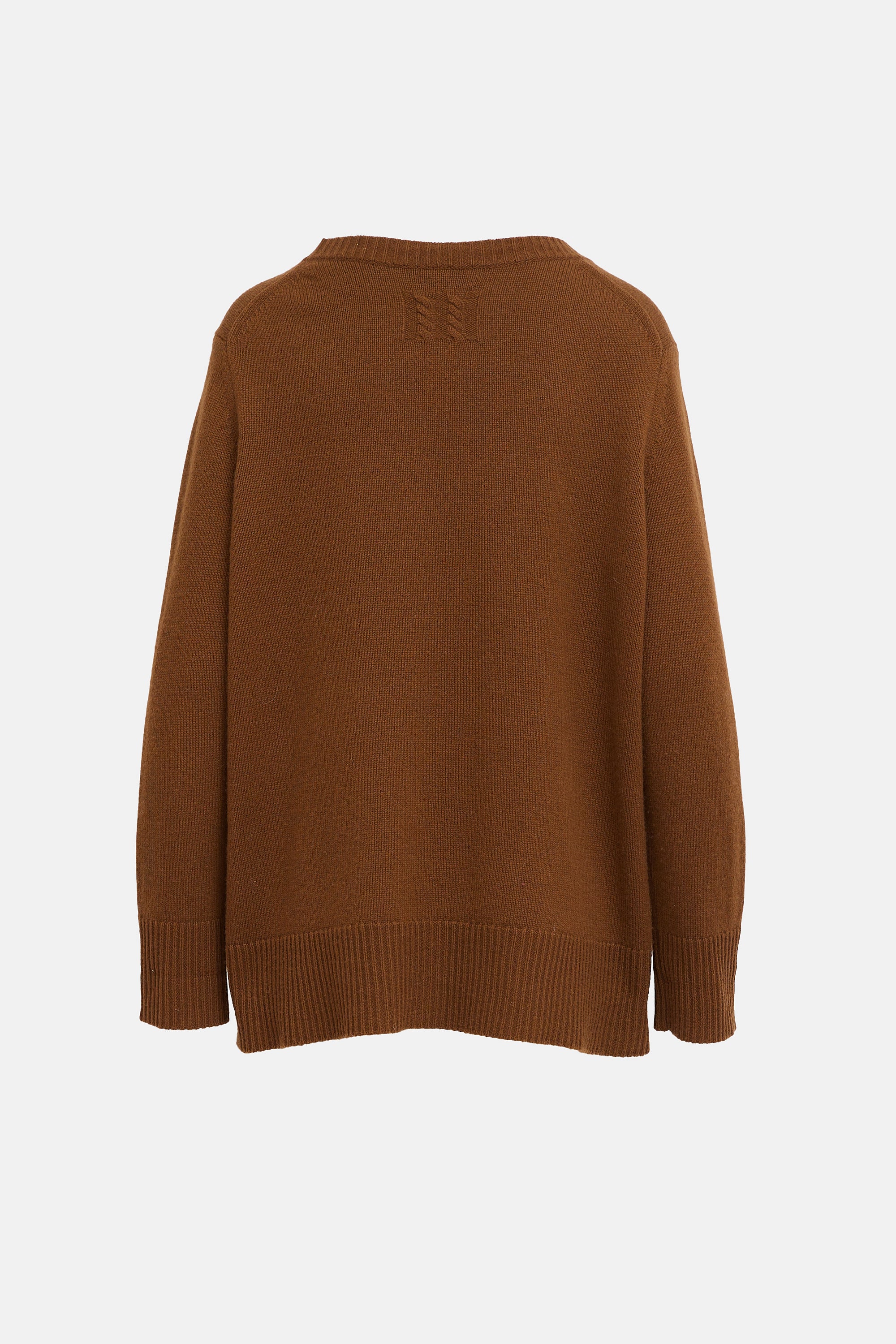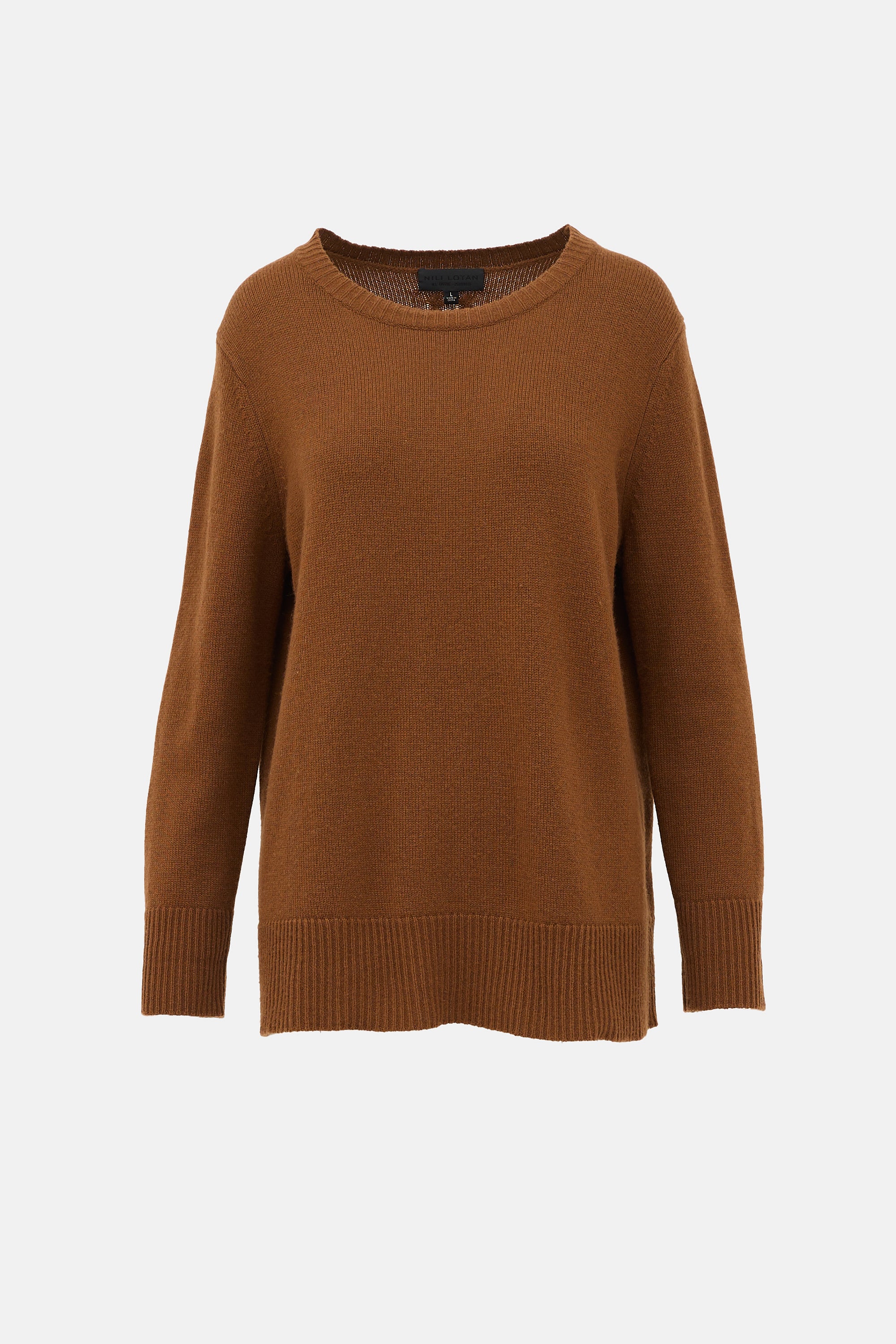 Pre-owned Nili Lotan brown cashmere sweater featuring crew neck, cable detail at back neck, and ribbed collar, hem, and cuffs.