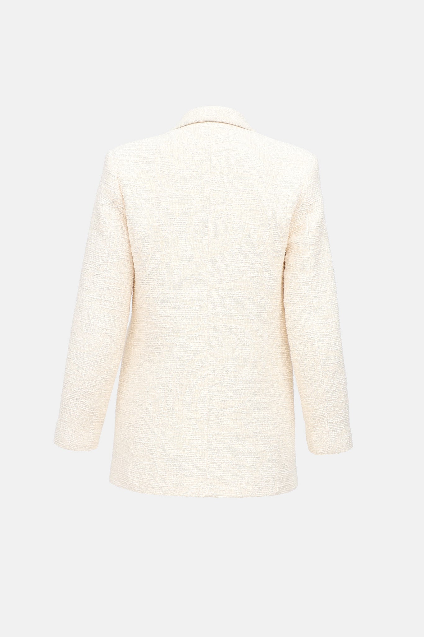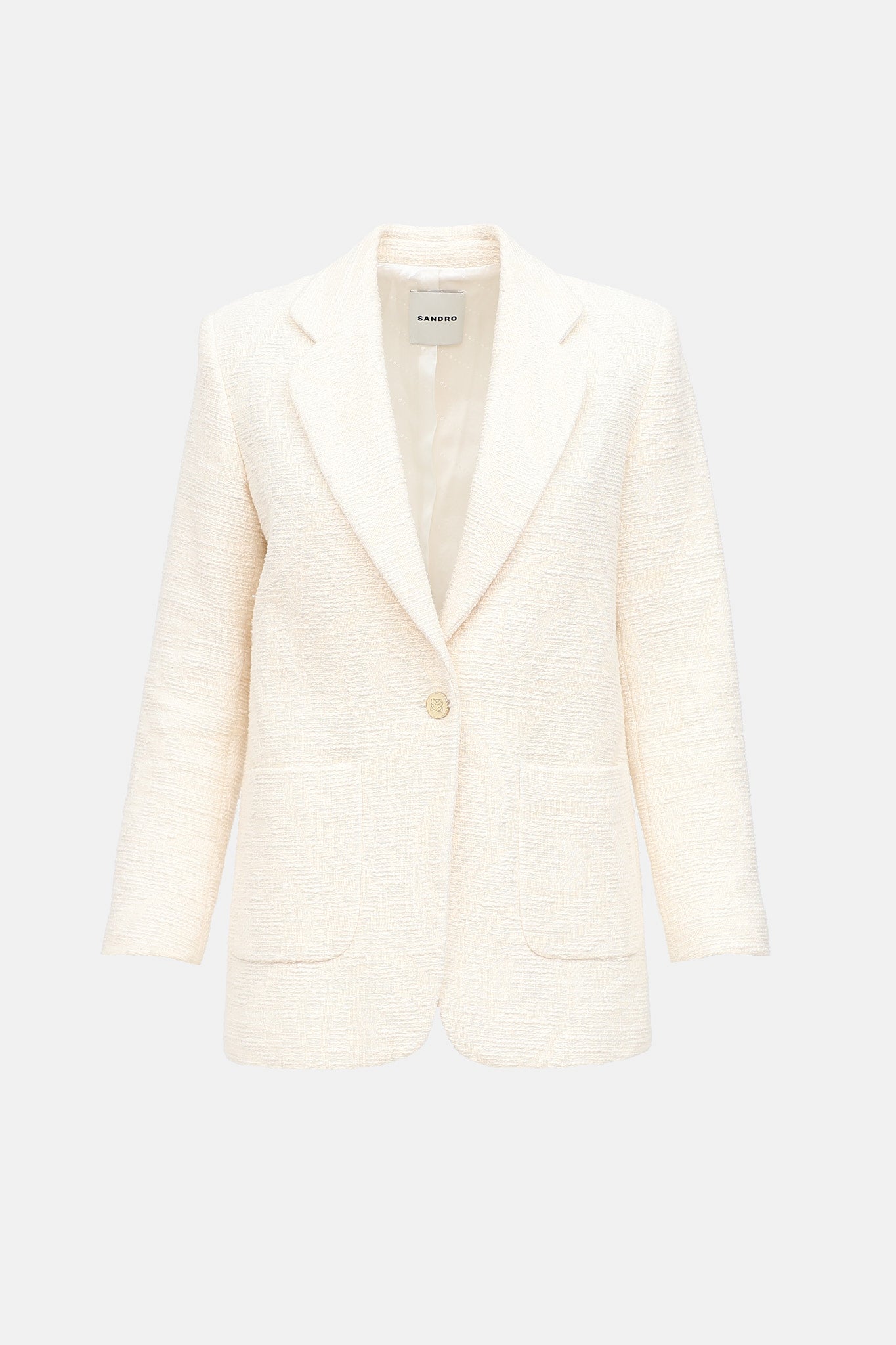 Pre-owned Sandro cream textured knit blazer featuring notch lapel, single breasted closure, and flat pockets at waist.