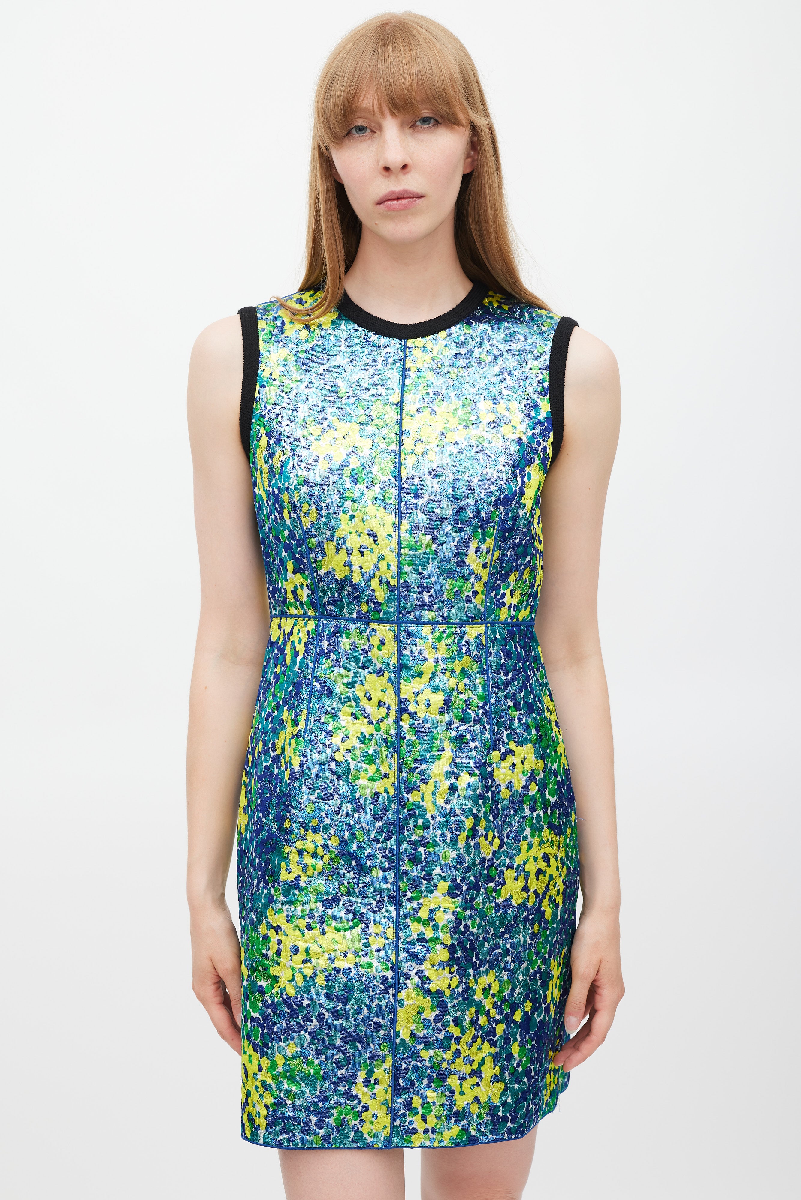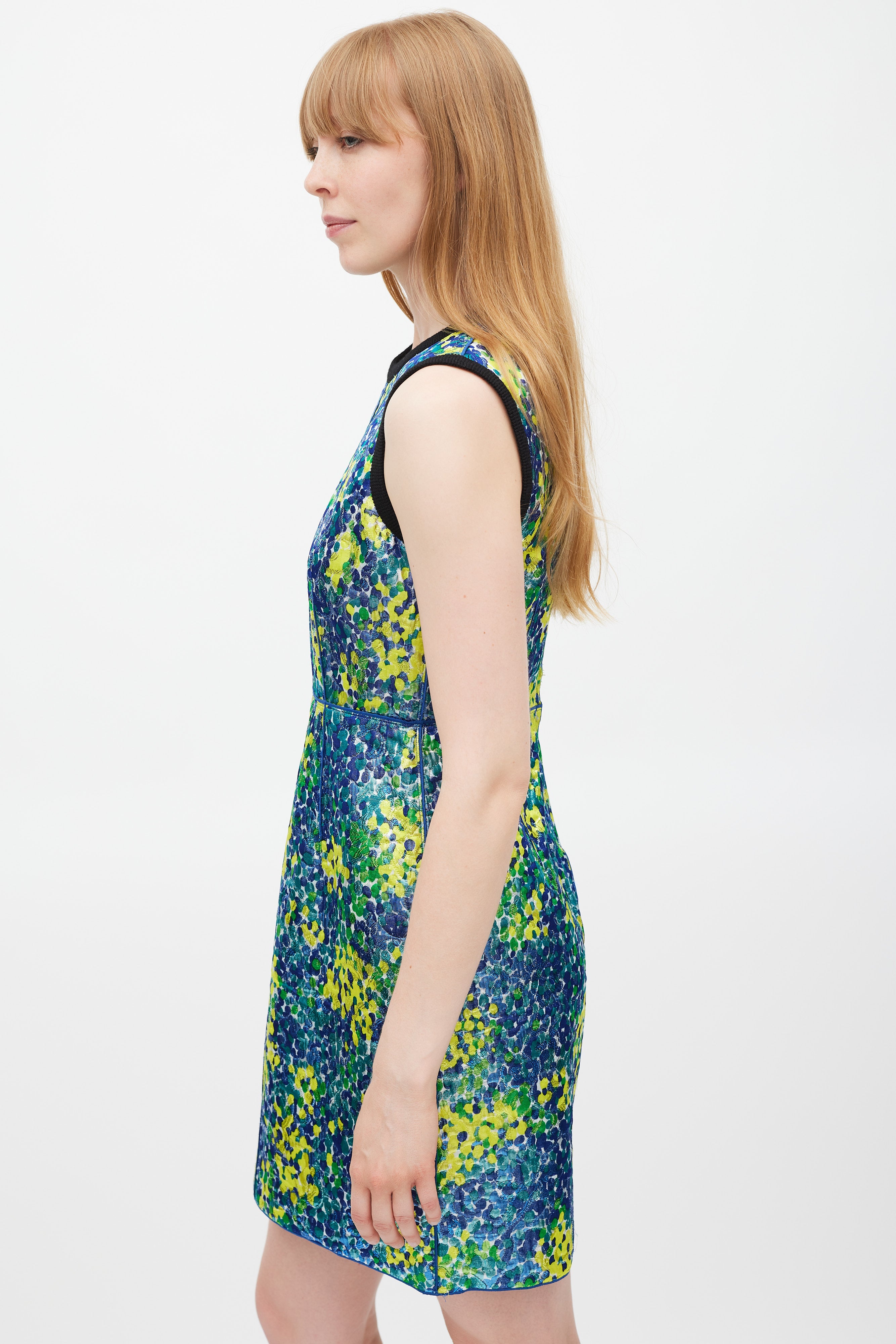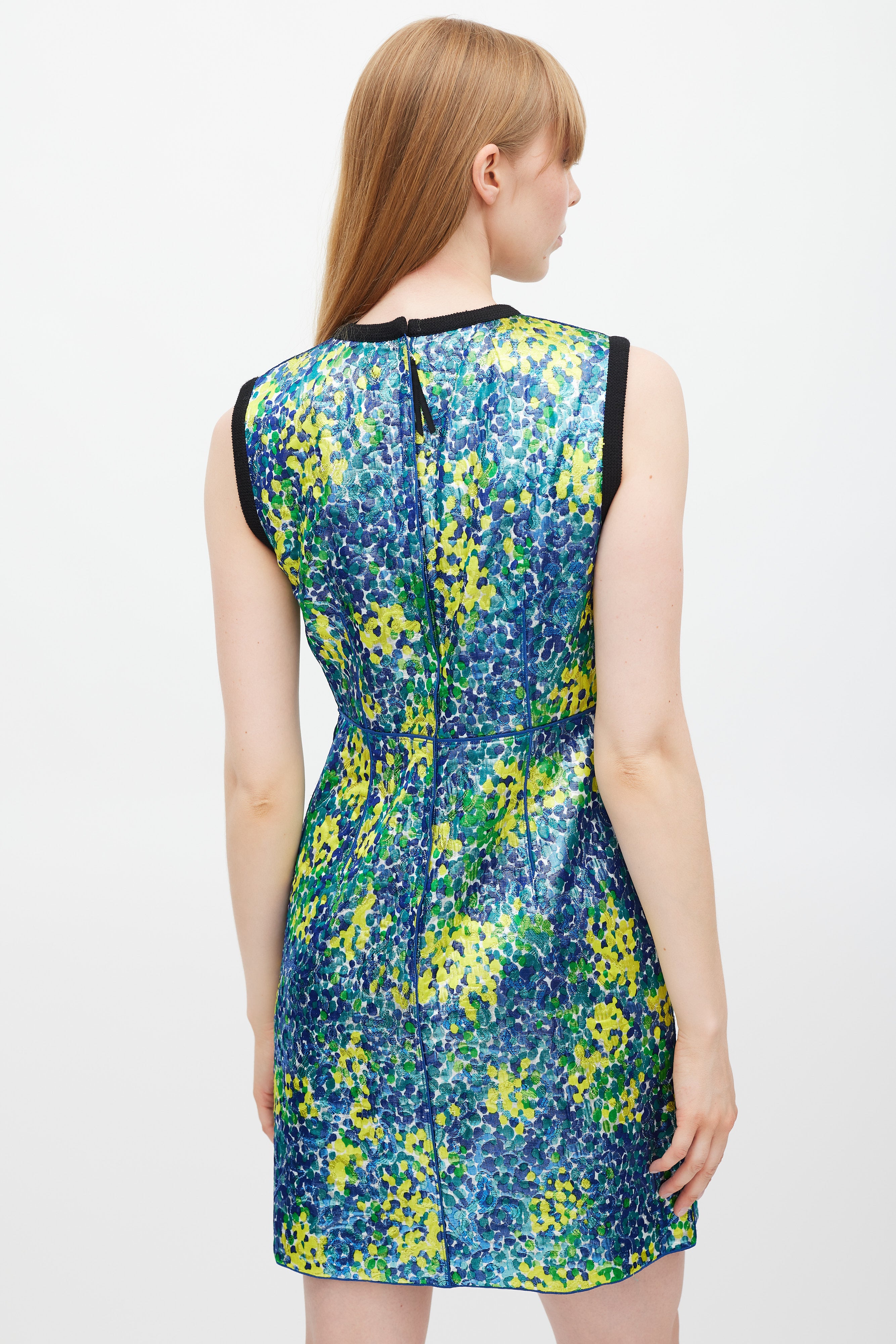 Marc Jacobs Blue & Multicolour Metallic Jacquard Abstract Dress US 4