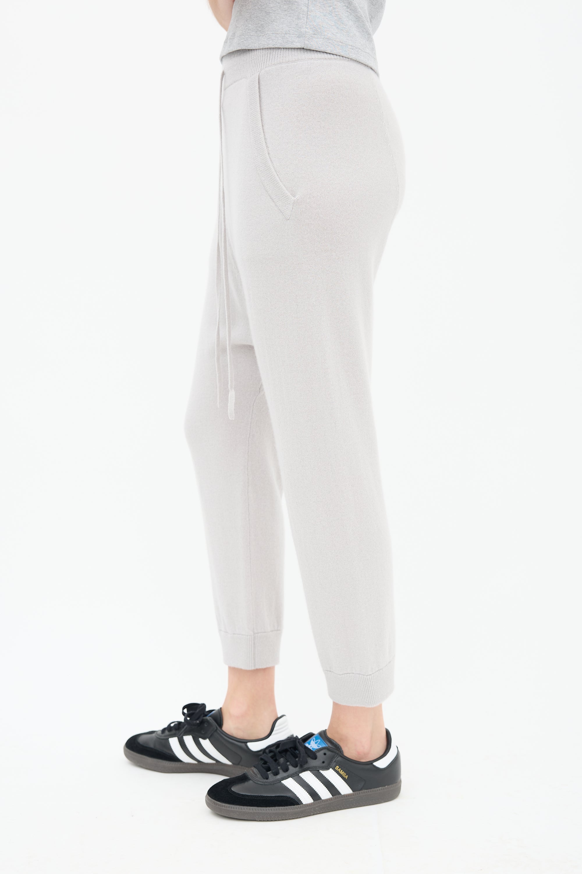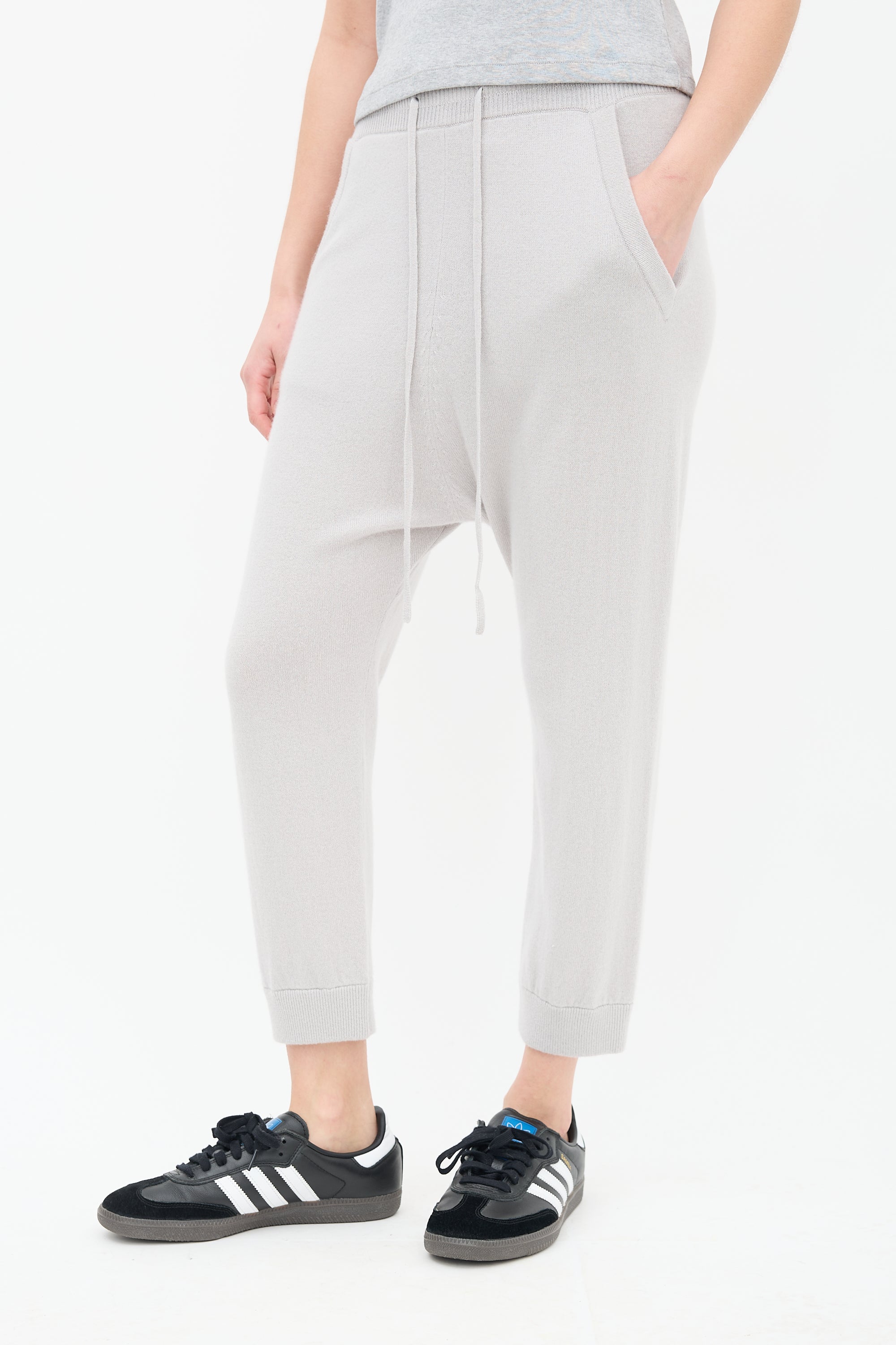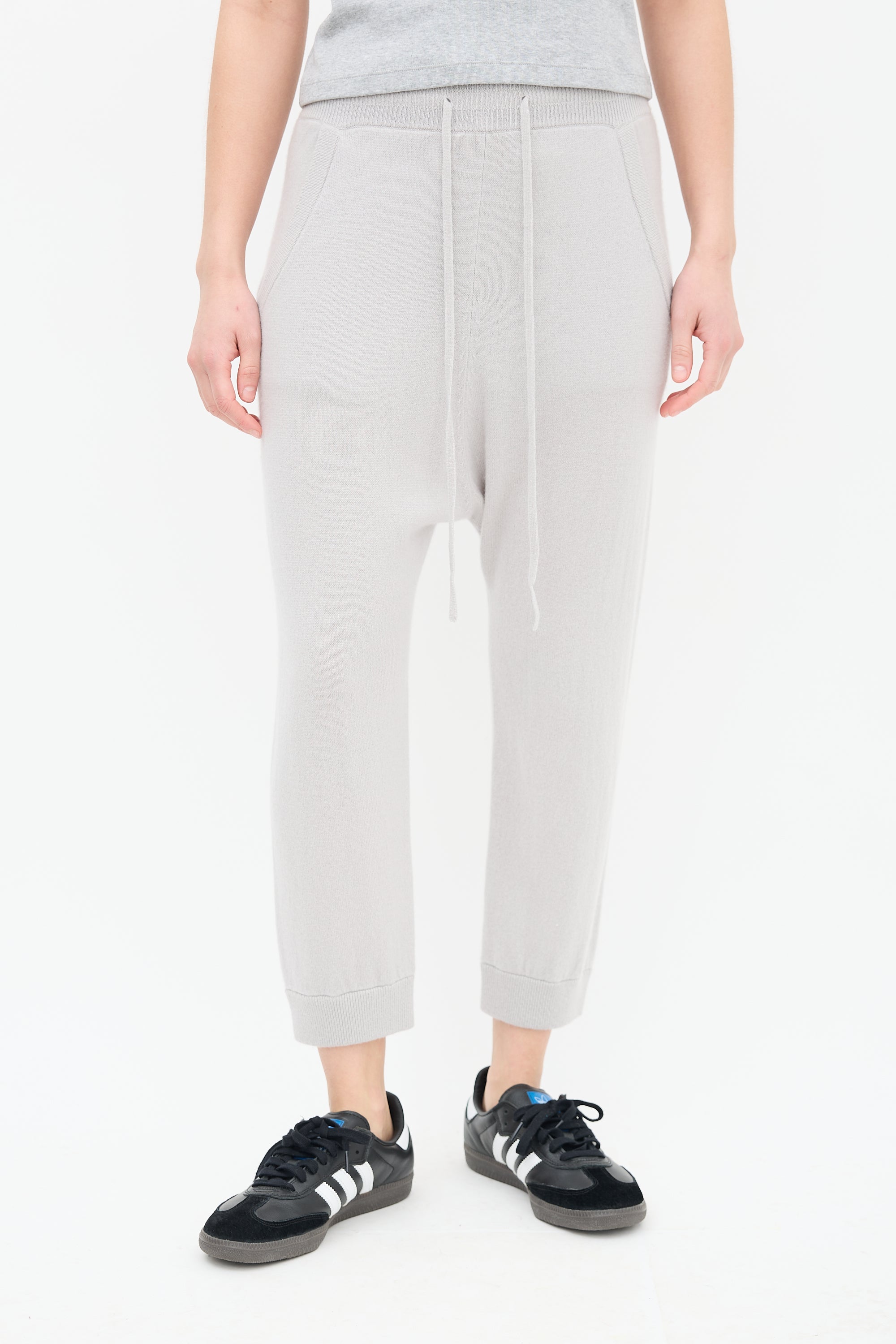Pre-owned Nili Lotan grey cashmere sweatpant featuring elasticized ribbed waistband with drawstring, two slash pockets at hips, drop seat, and ribbed cuffs.
