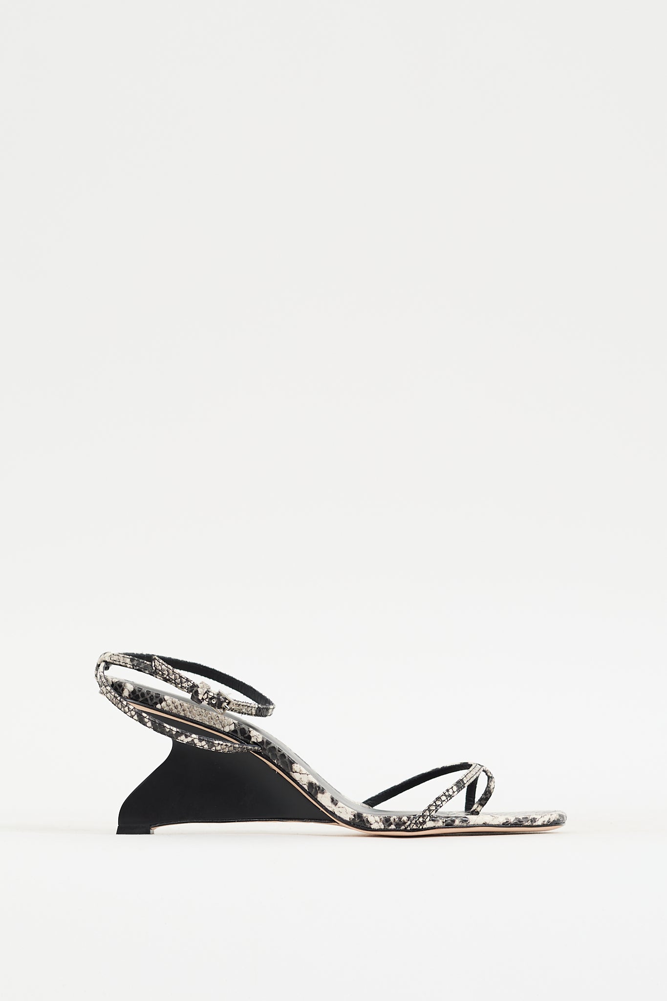 Black & White Textured Leather Emilia Wedge Heel US 9.5 Size Guide