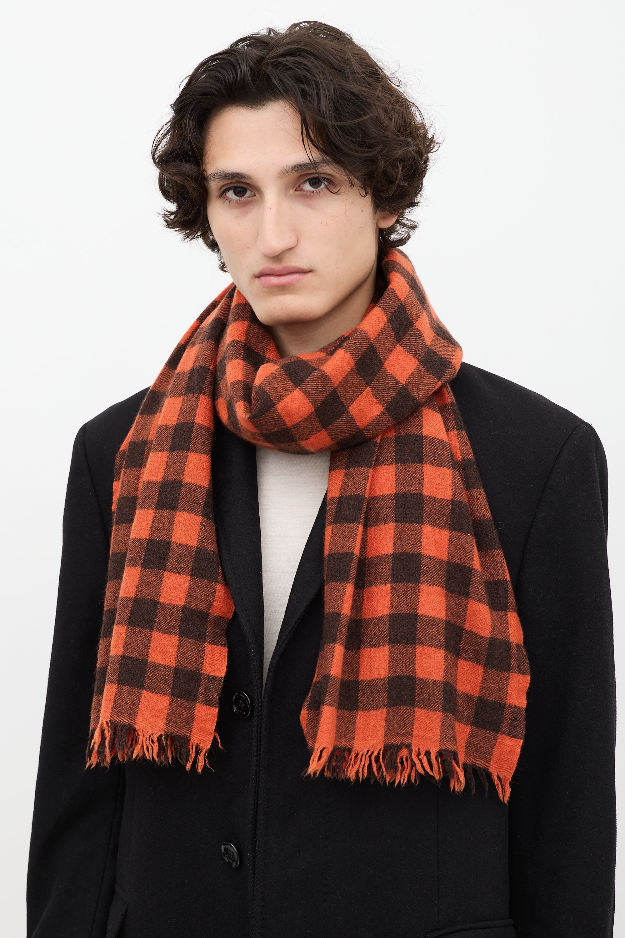 FW 2022 Orange & Black Check Fringe Scarf