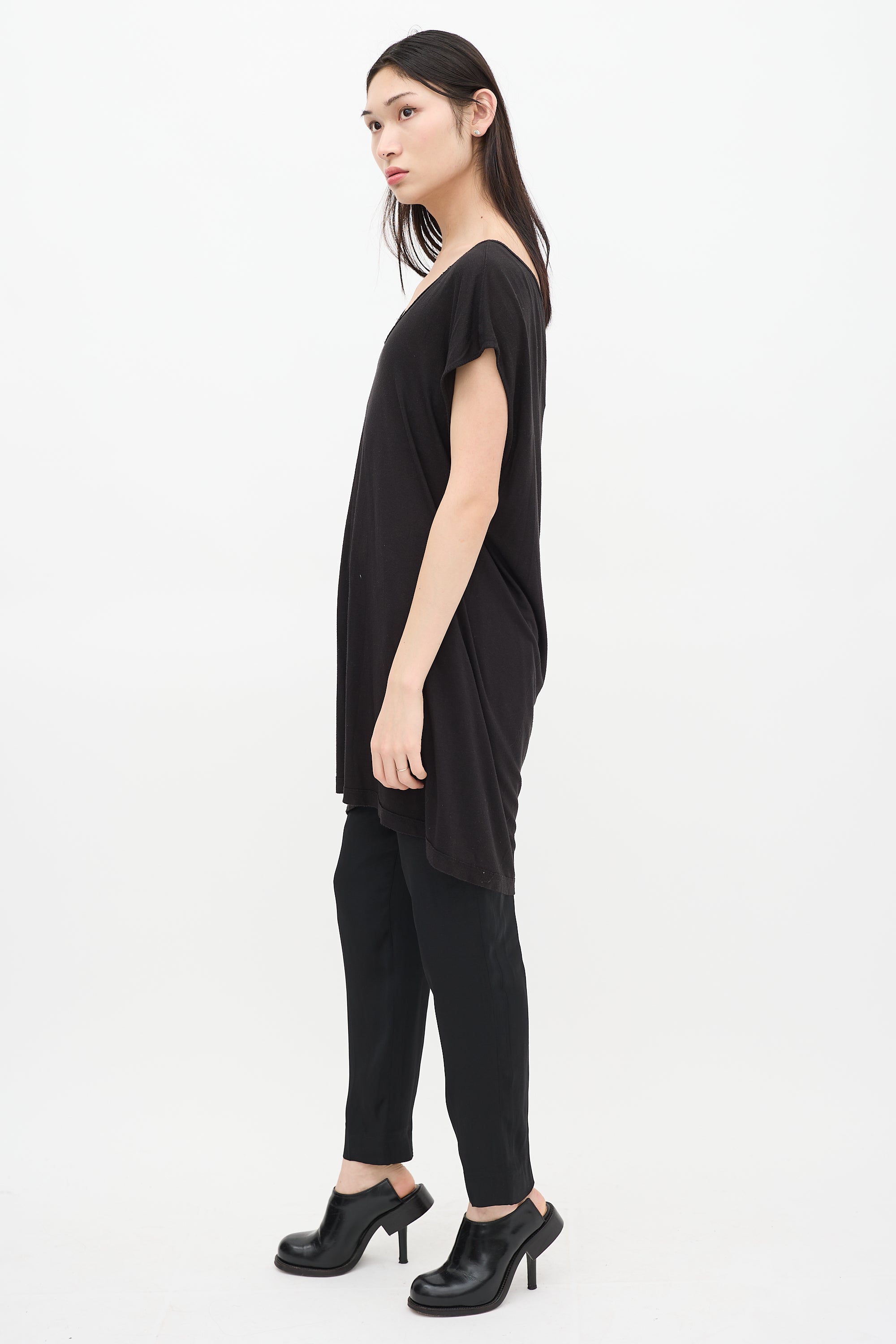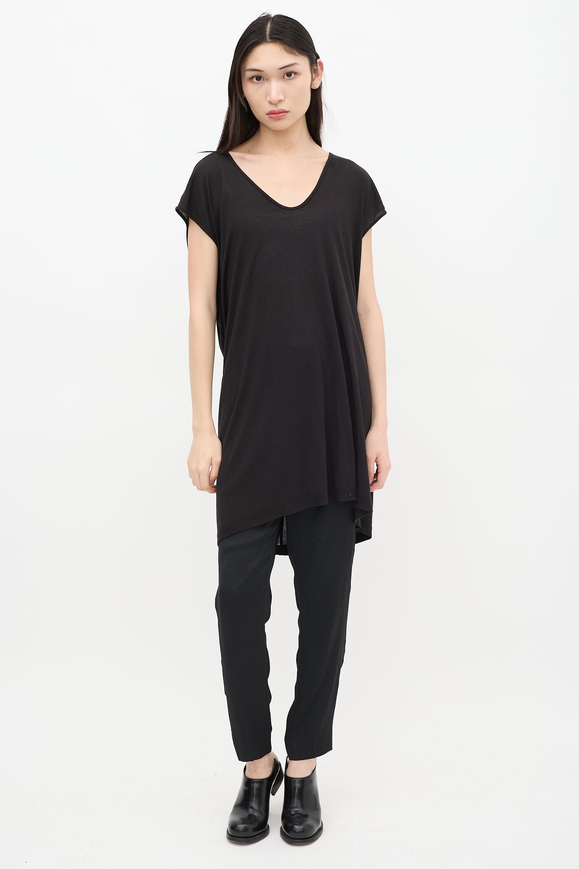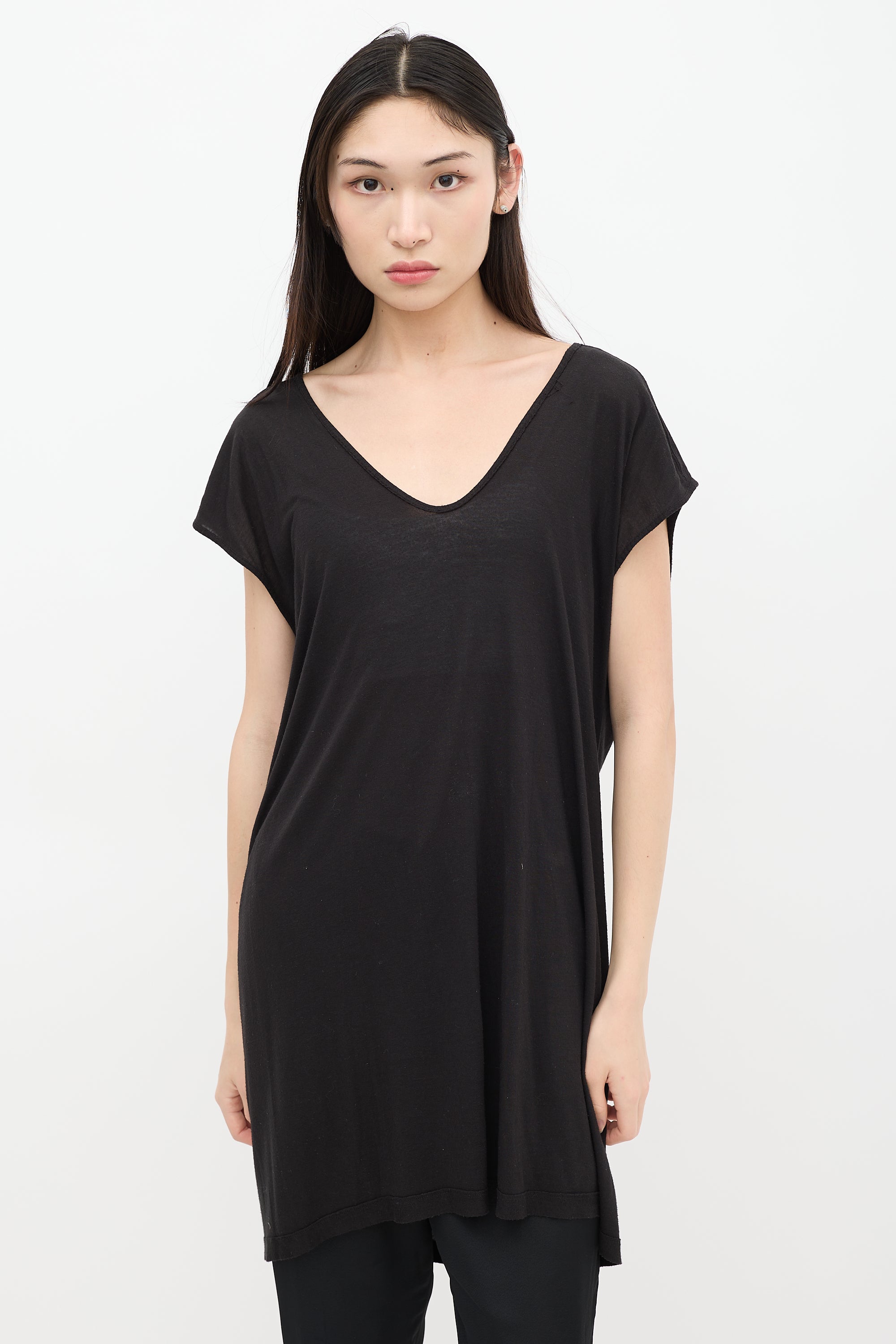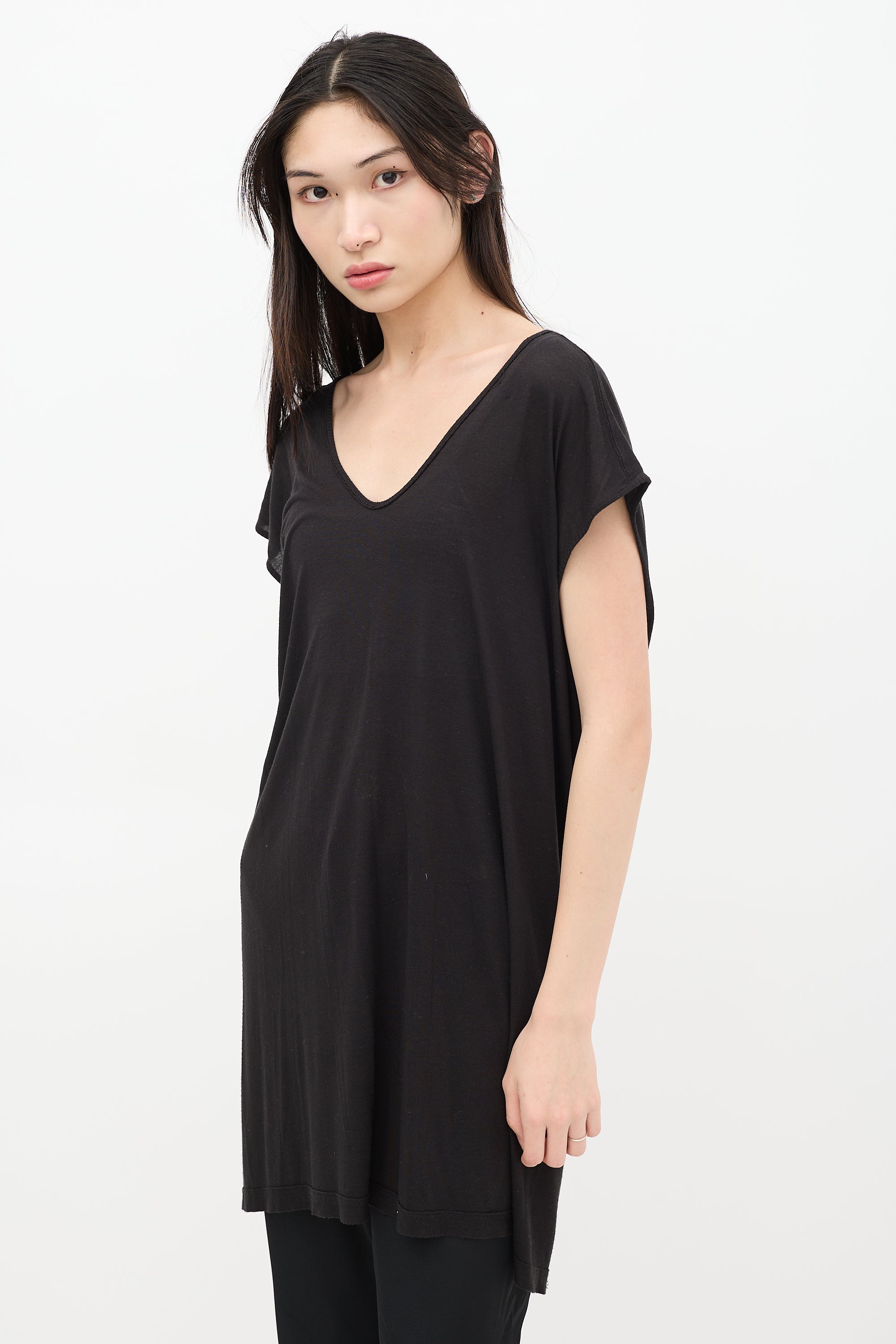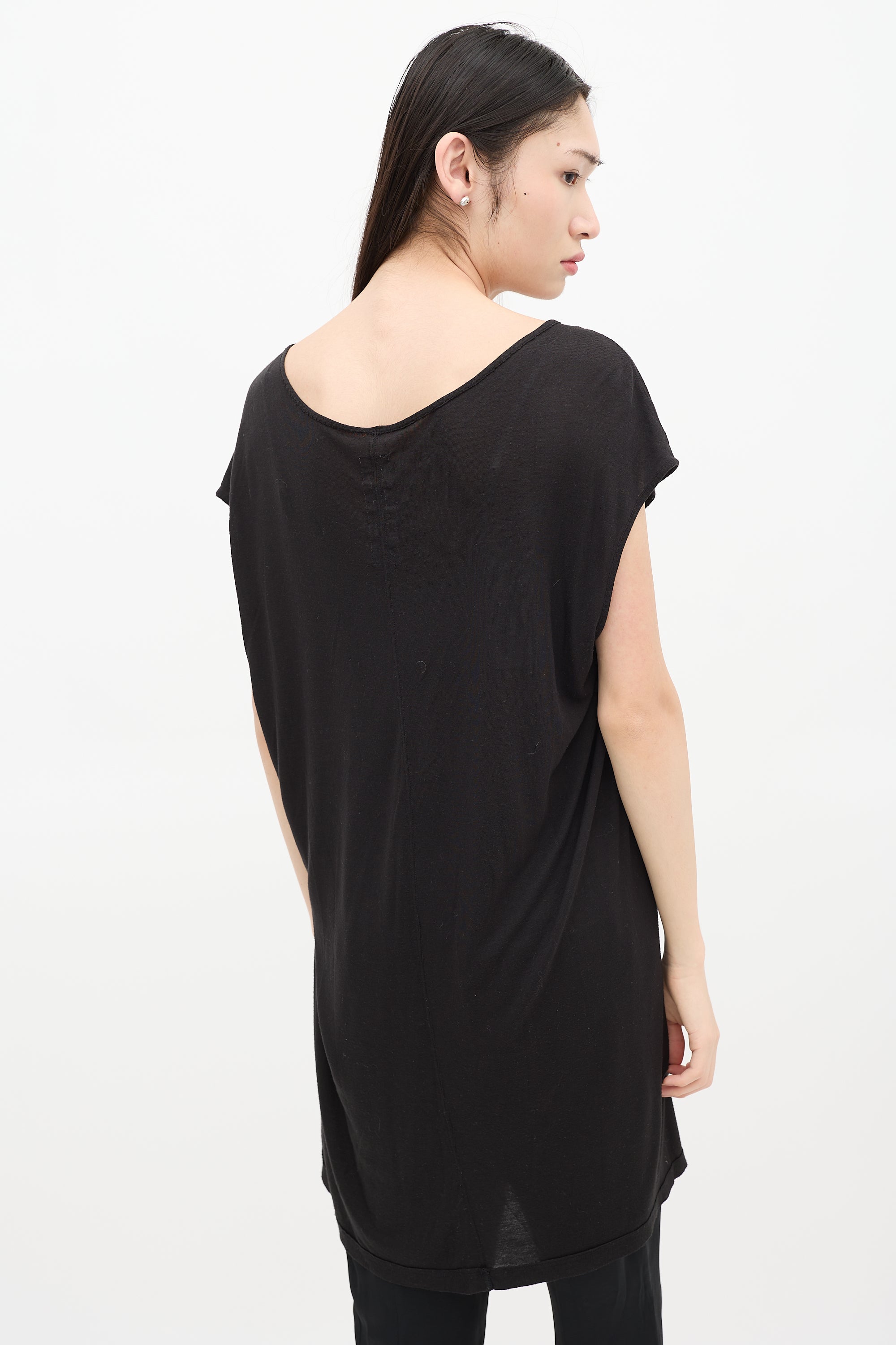 Pre-owned Rick Owens Spring/ Summer 2014 black sheer top featuring scoop neck and cap sleeves. From the Vicious collection.