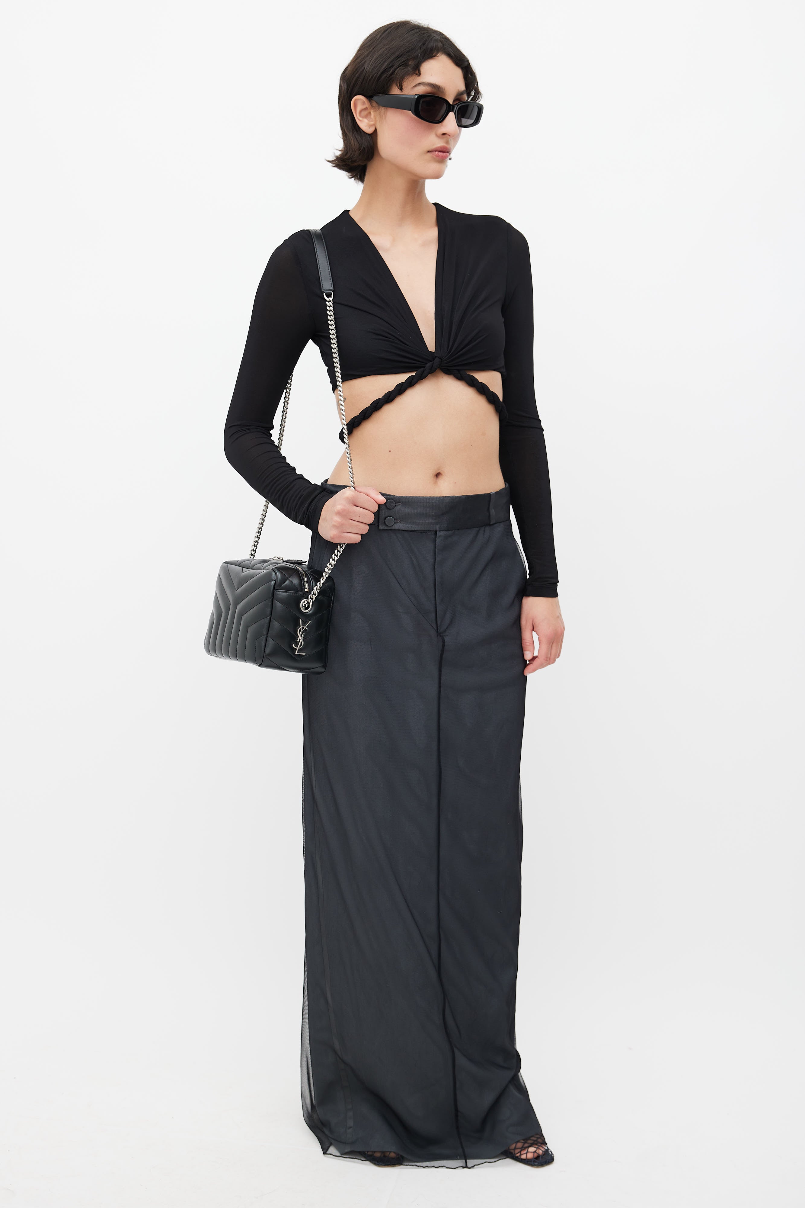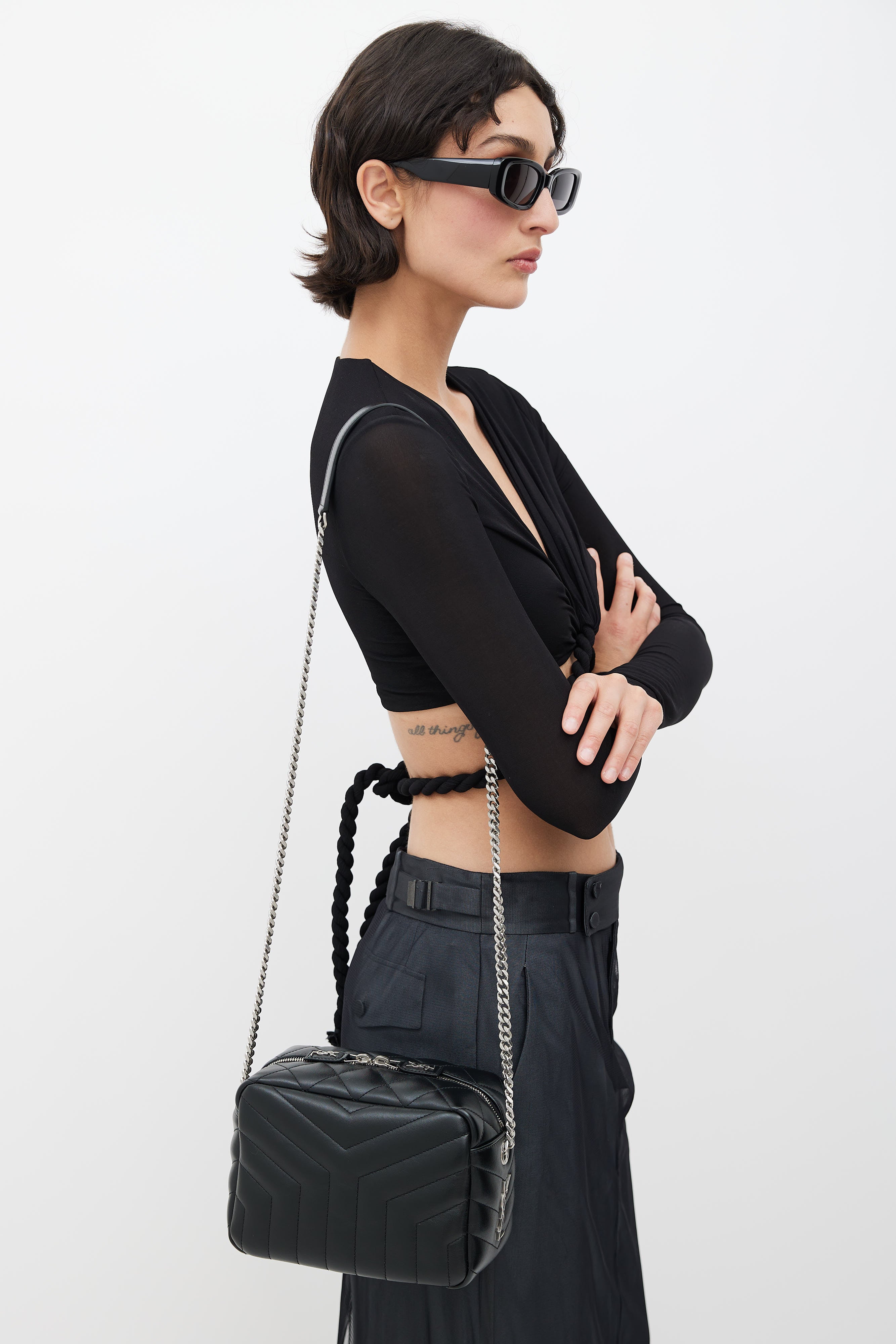 Black & Silver Y Quilted Loulou Shoulder Bag