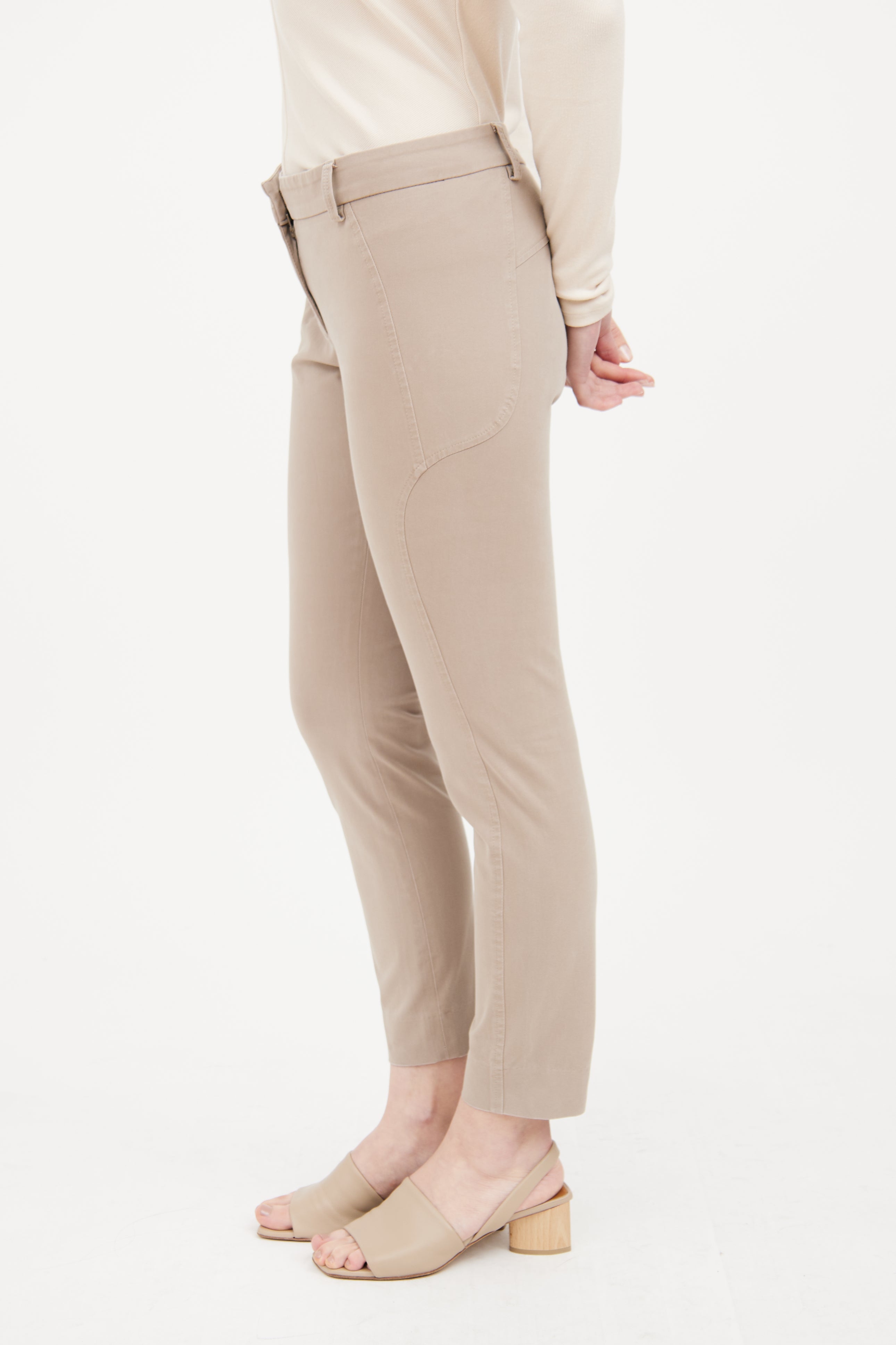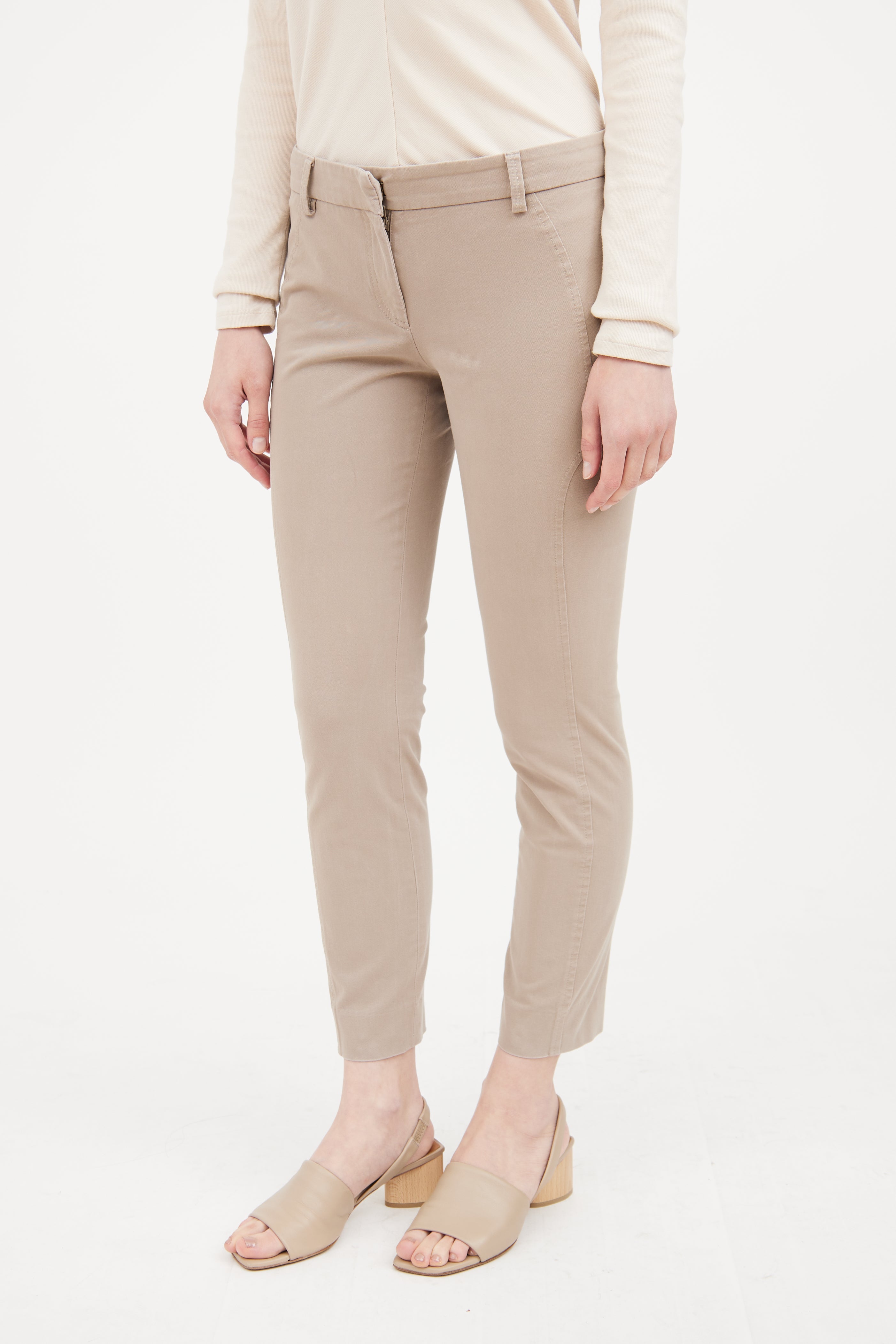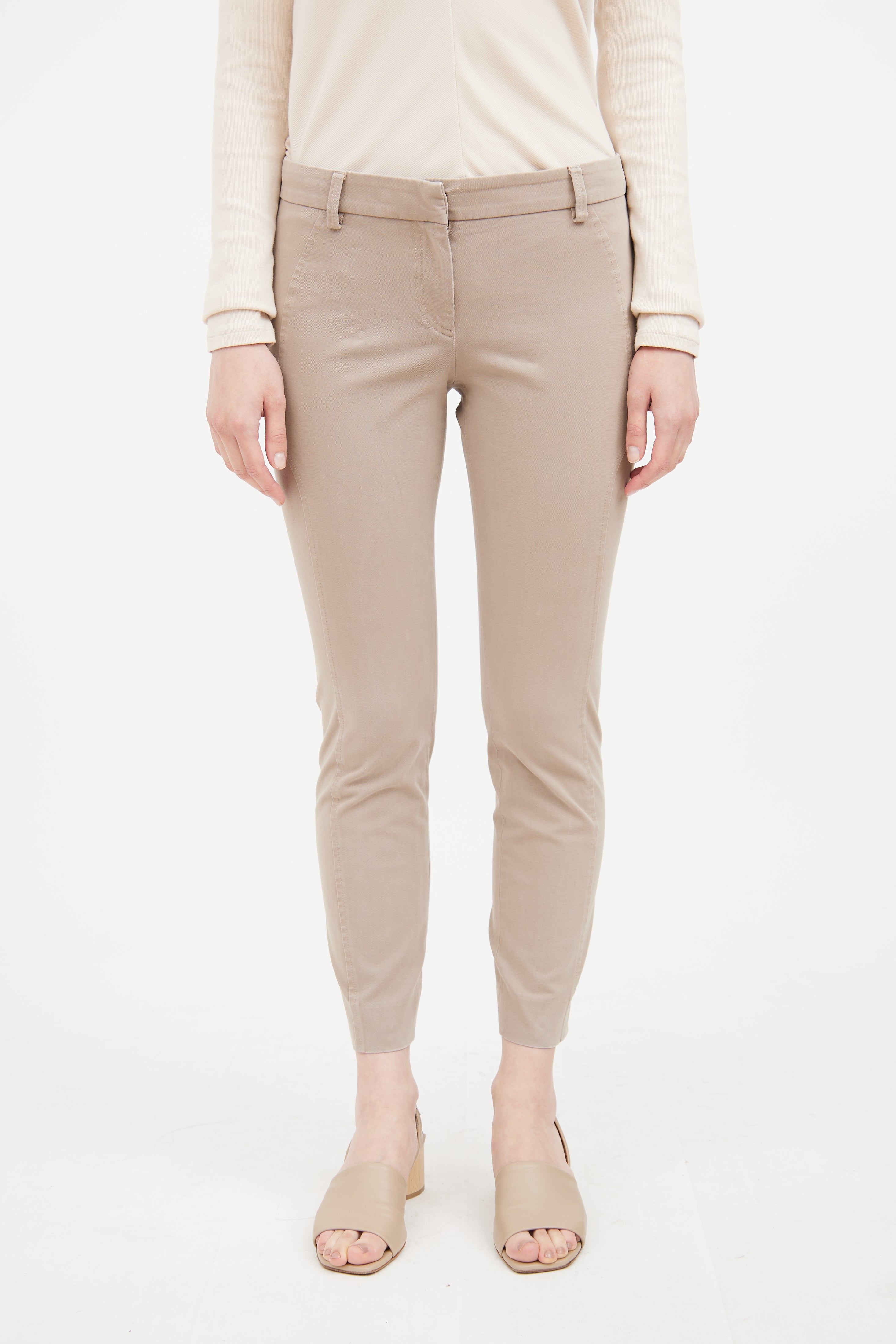Pre-owned Brunello Cucinelli beige straight pants featuring clasp and zip closure, belt loops on waist and straight leg.
