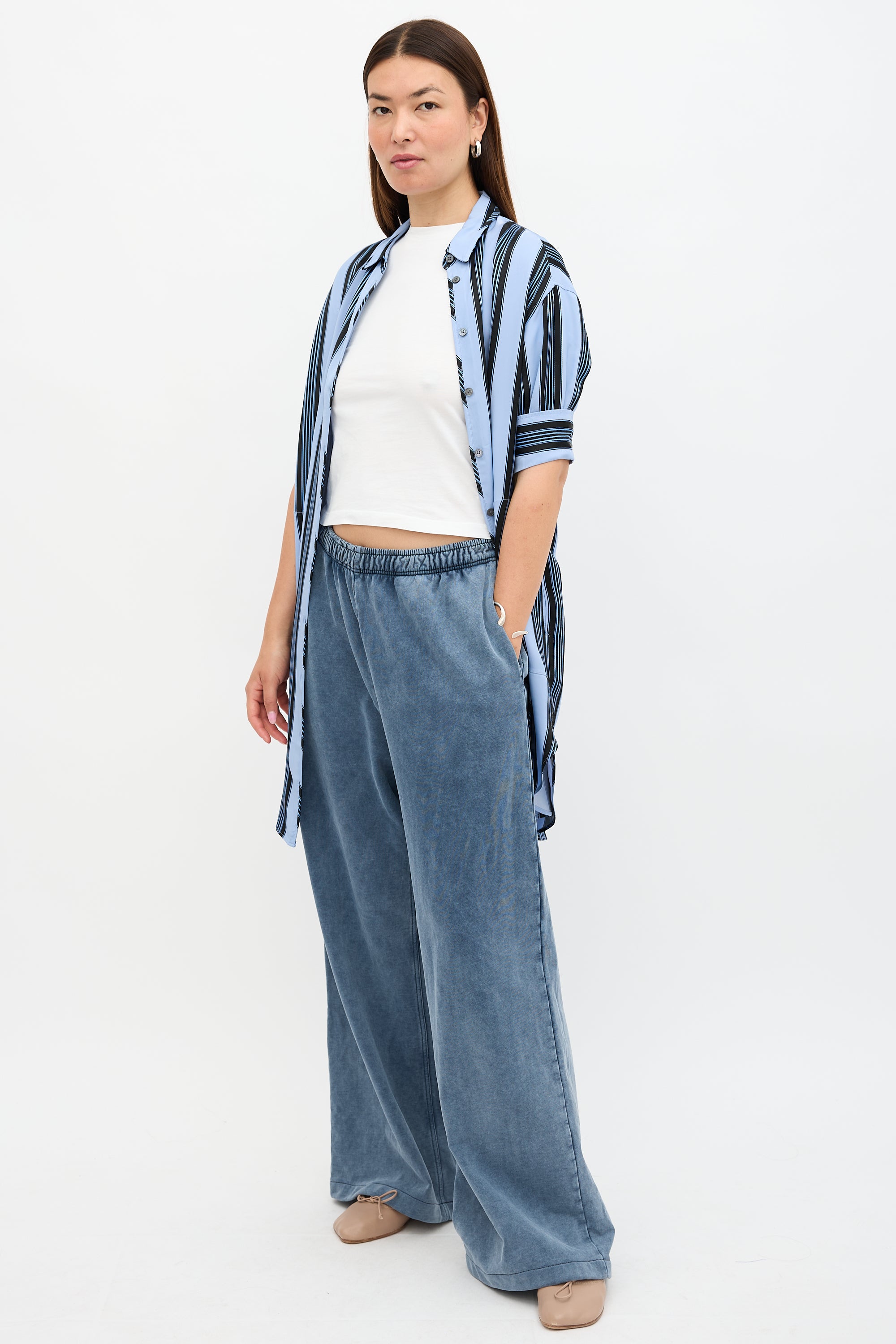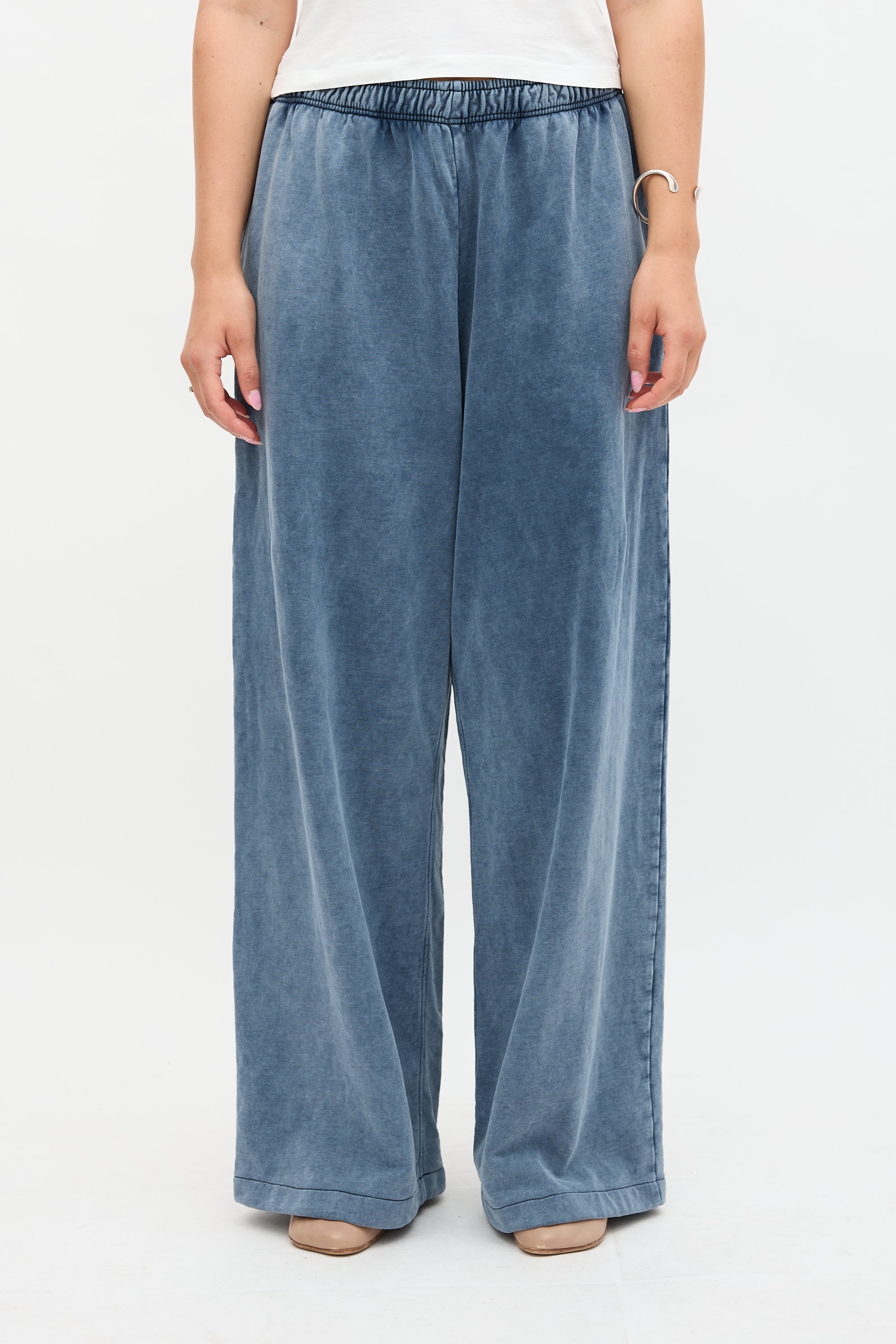Pre-owned Acne Studios blue faded sweatpants featuring an elasticized drawstring waist, two pockets at hip, and a wide leg.