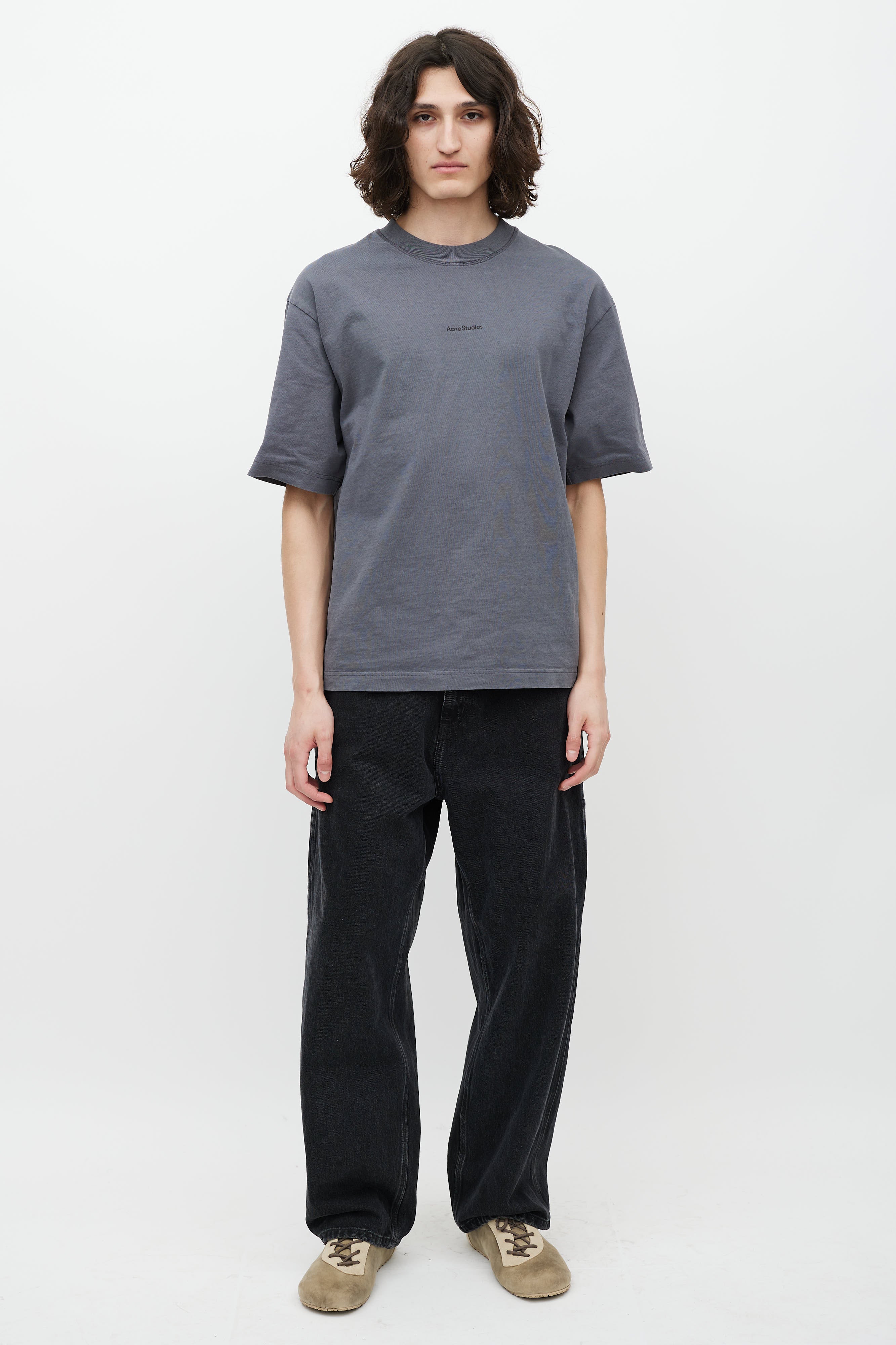 Pre-owned Acne Studios grey oversized T-shirt featuring a tonal logo print at chest, round neckline, and short sleeves.
