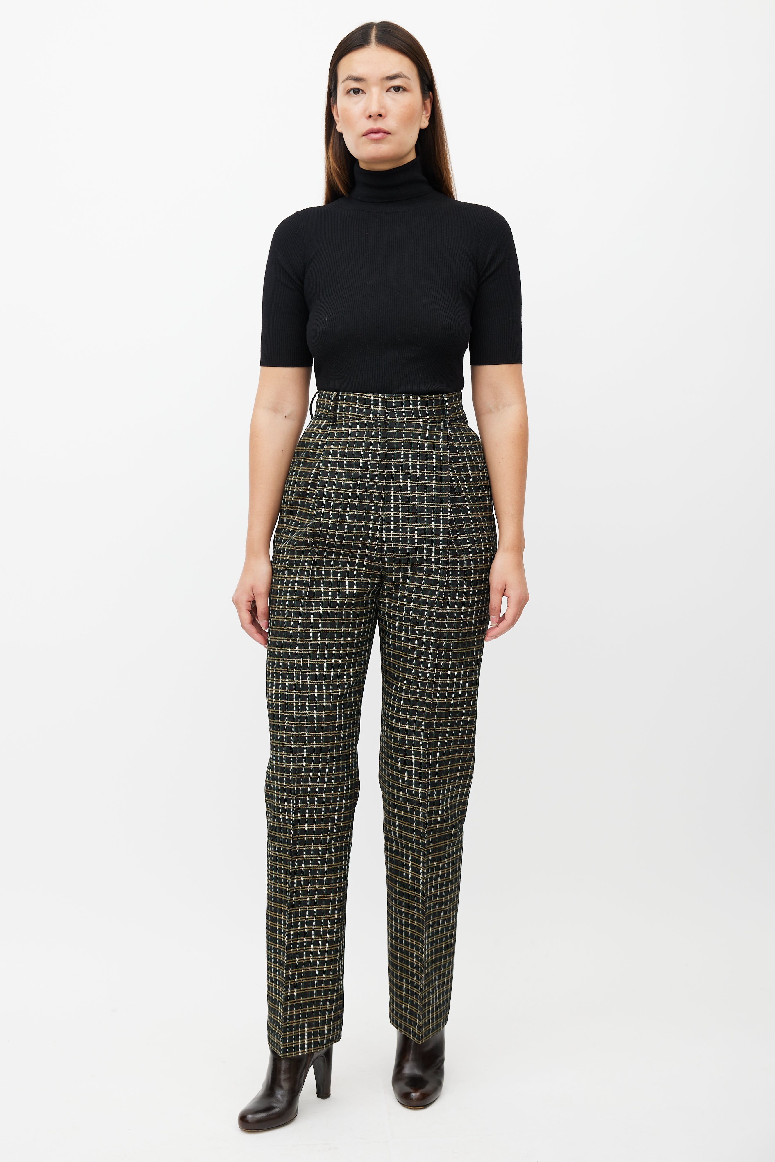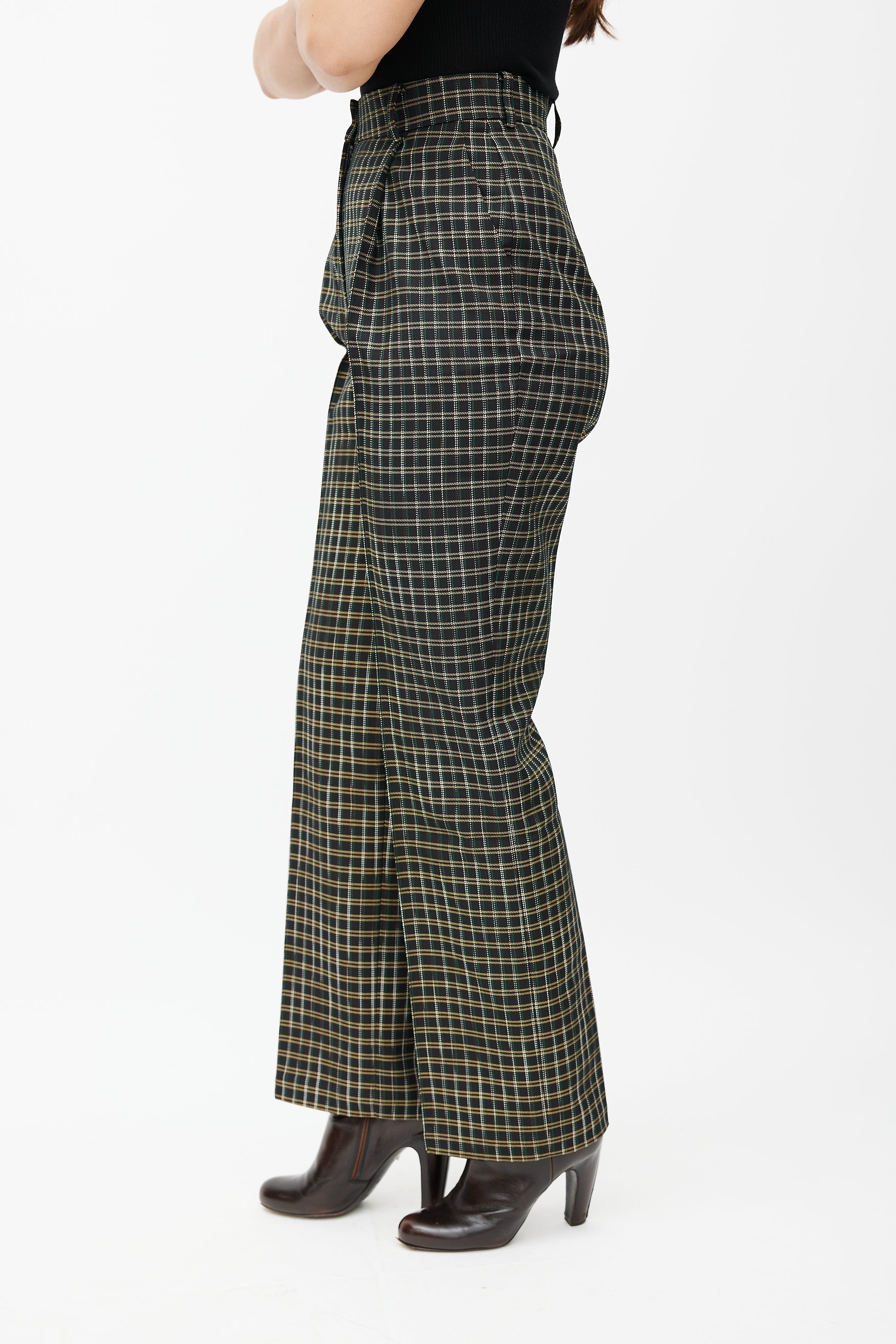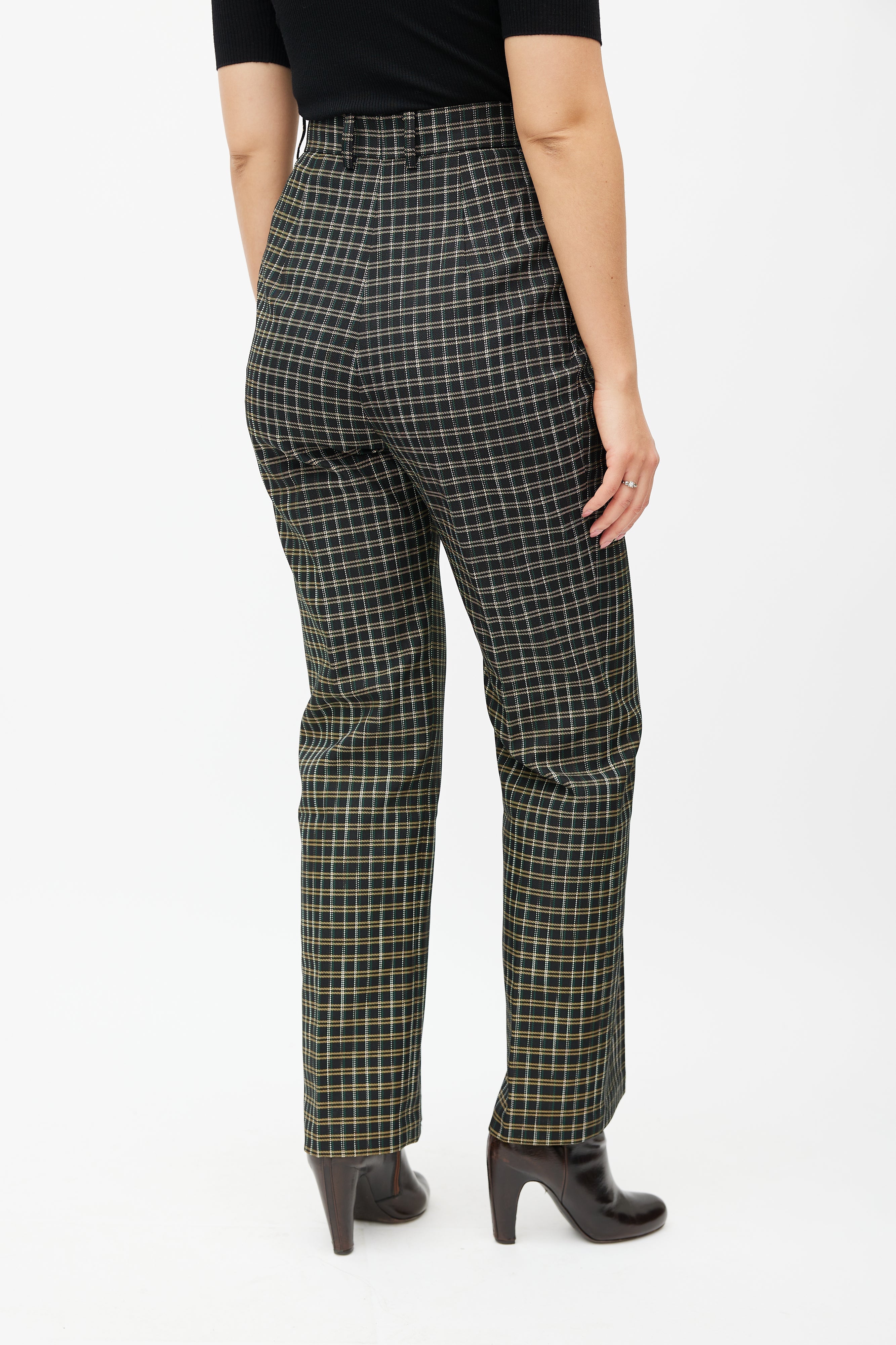 Pre-owned Beaufille black Valli trousers featuring a multicolour plaid pattern throughout, two slip pockets at hip, centre pleat, straight leg, and zip fly with button closure.