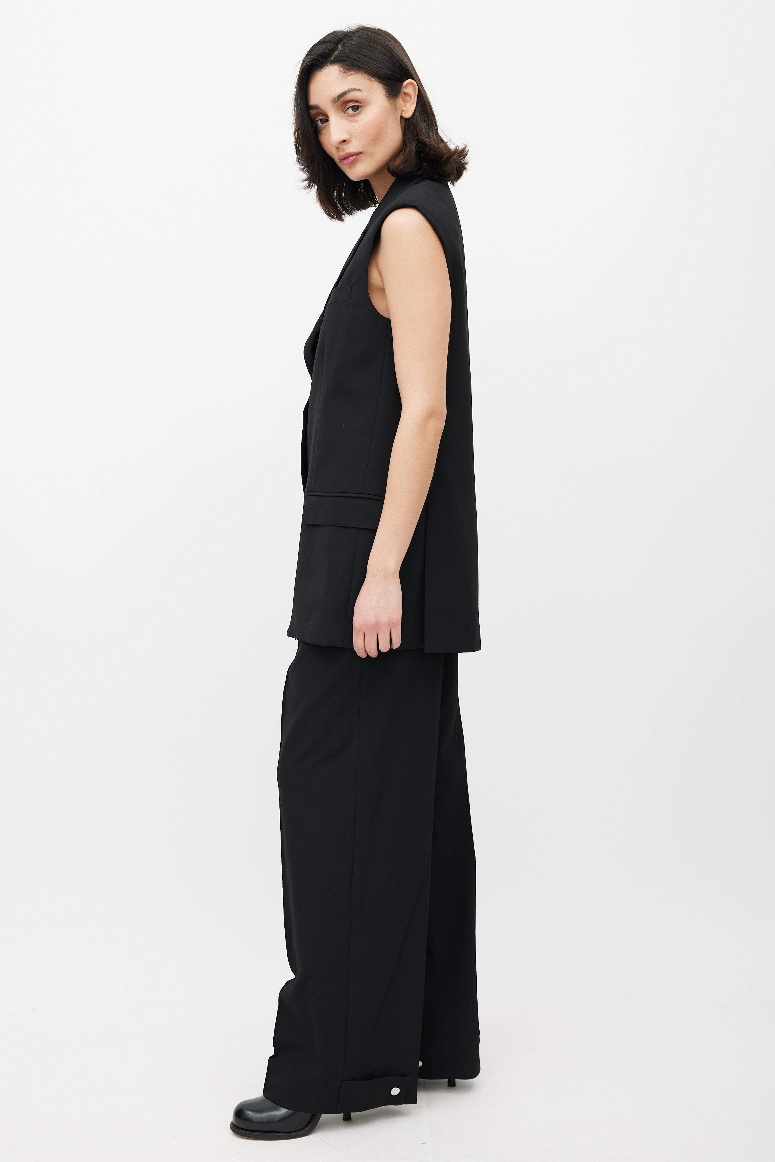 Pre-owned Beaufille black Saville blazer vest featuring notch lapel, button up front, one welt pocket at chest, two flap pockets at hips, and back vents. Lined.