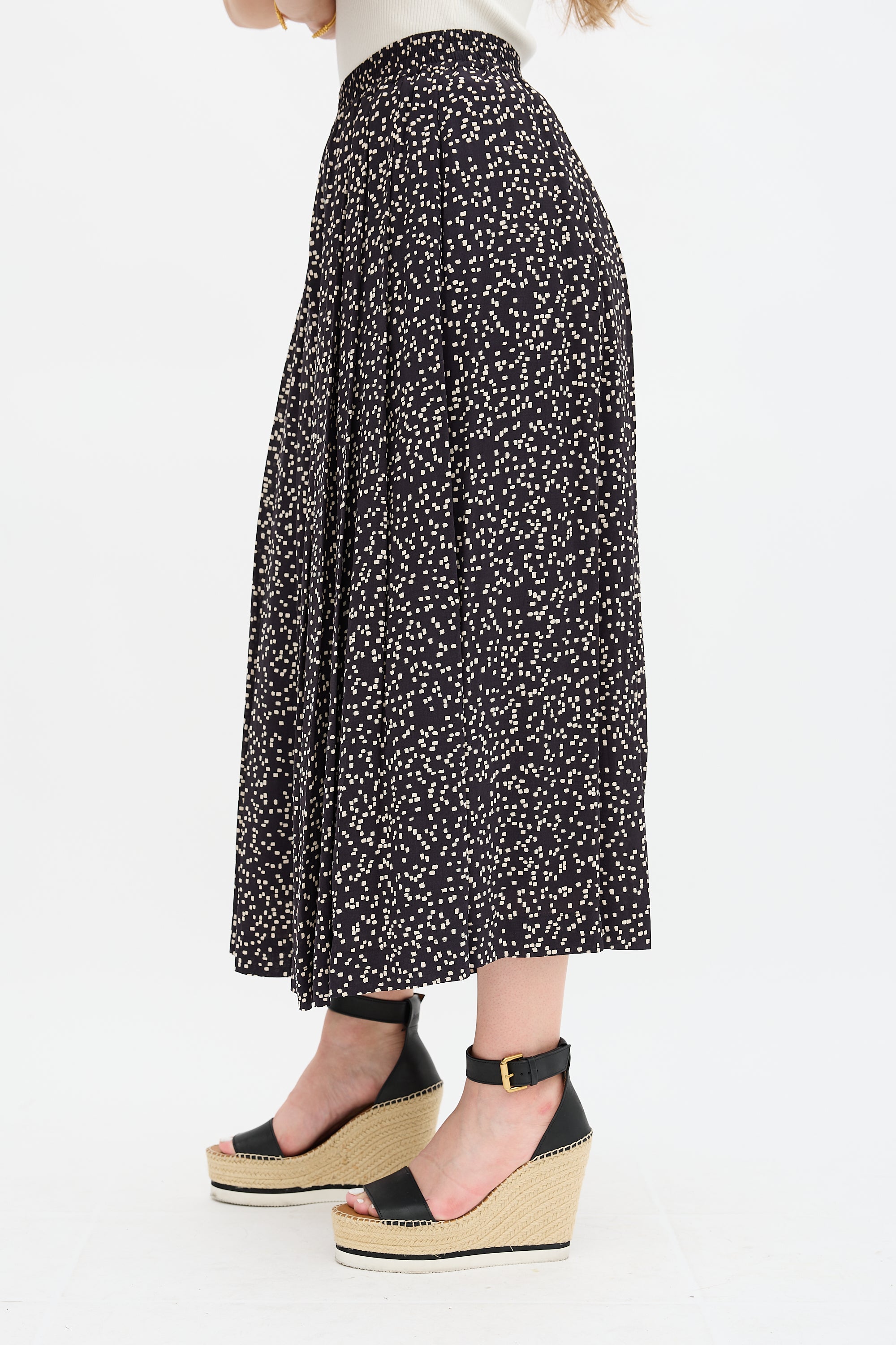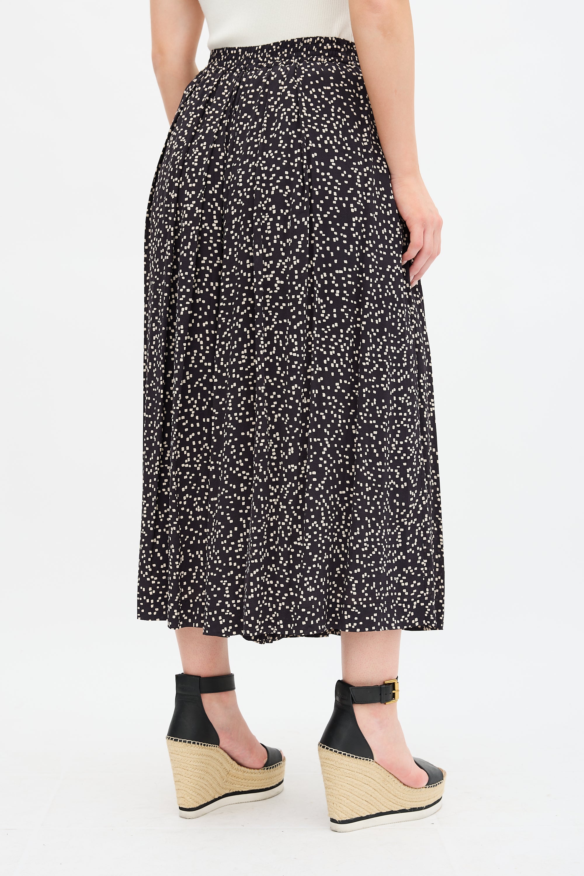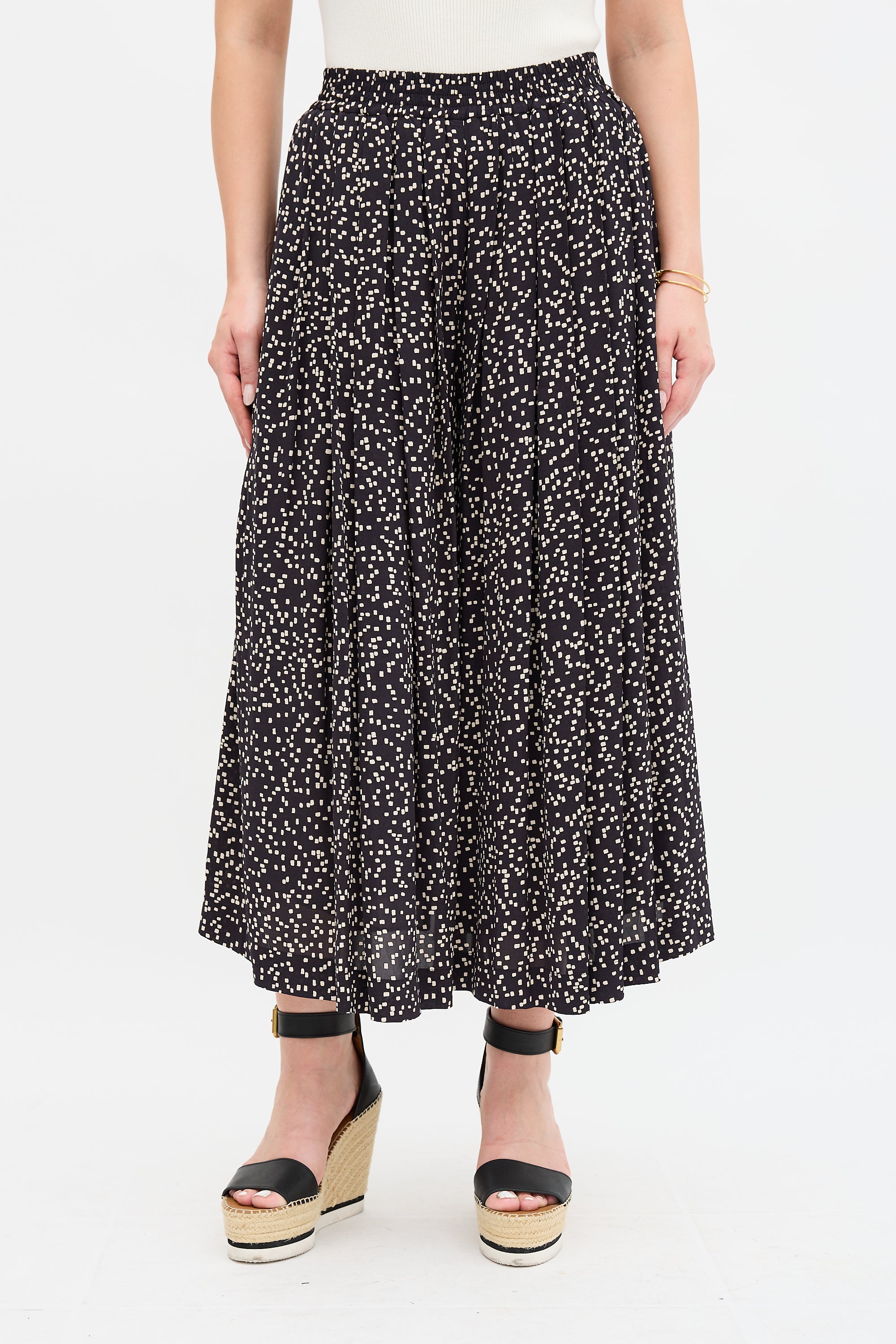 Pre-owned Isabel Marant Étoile black cropped Clotilde pants featuring a cream dot pattern, elasticized waistband, two outseam pockets, pleats throughout, and an exaggerated wide leg. Lined.