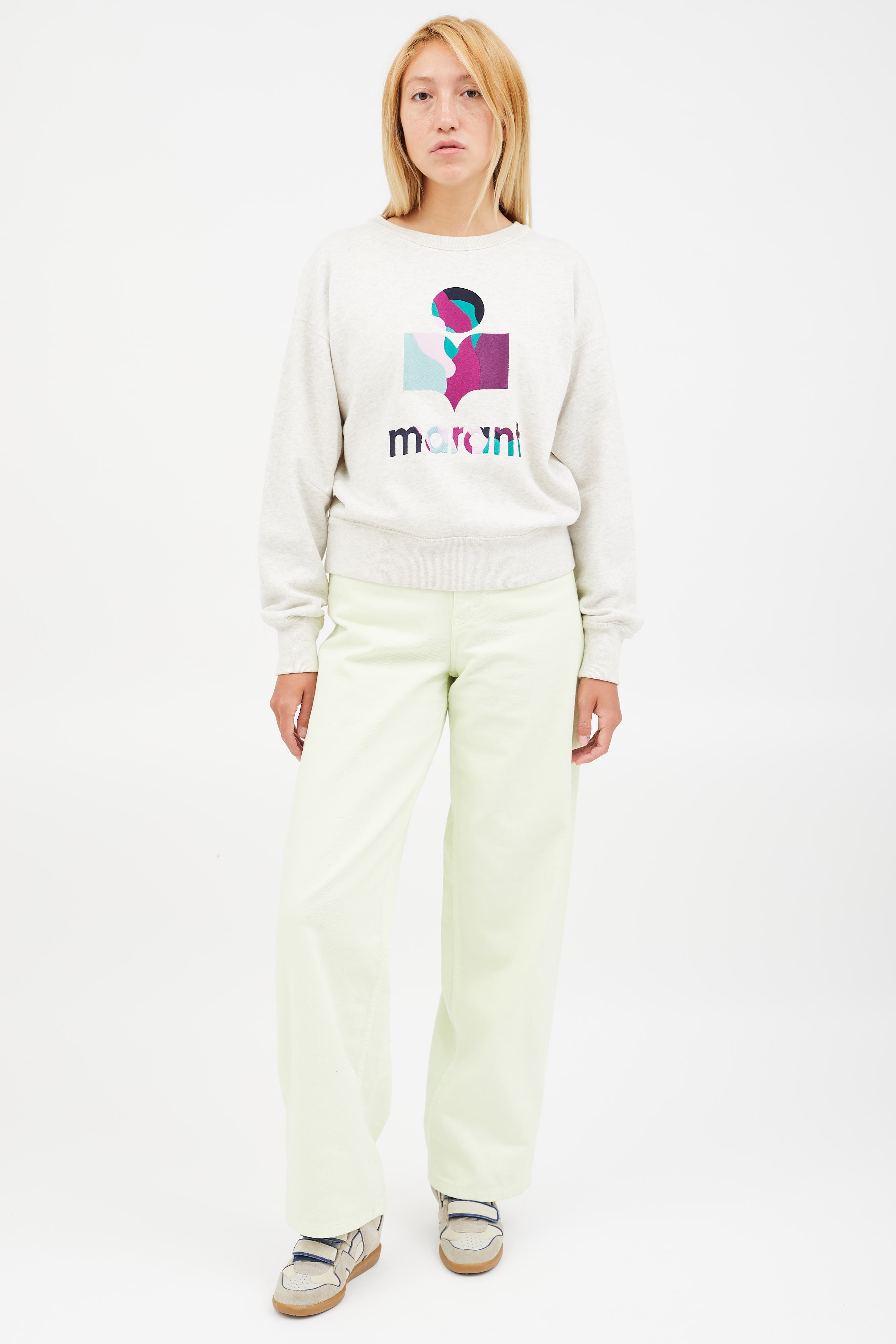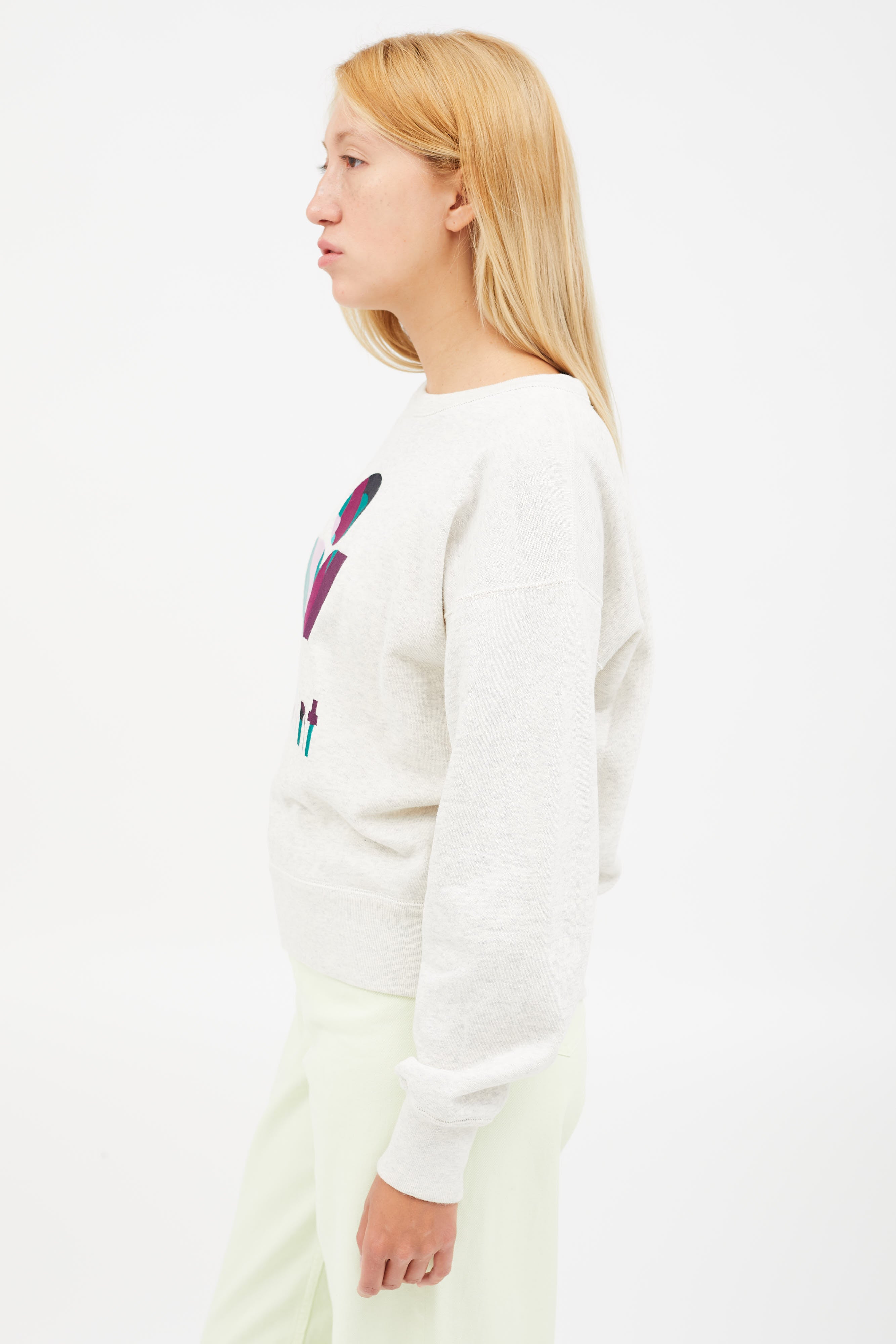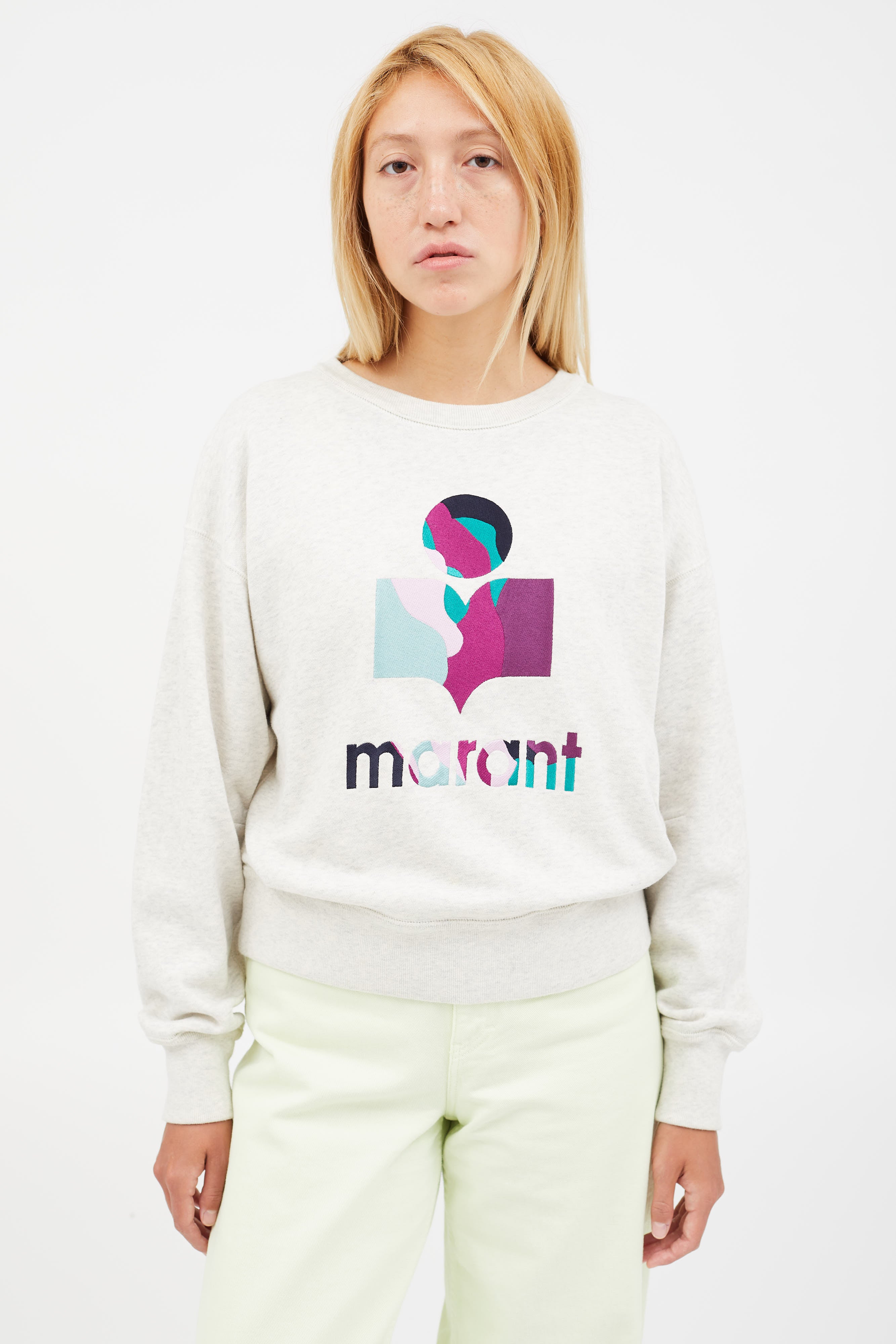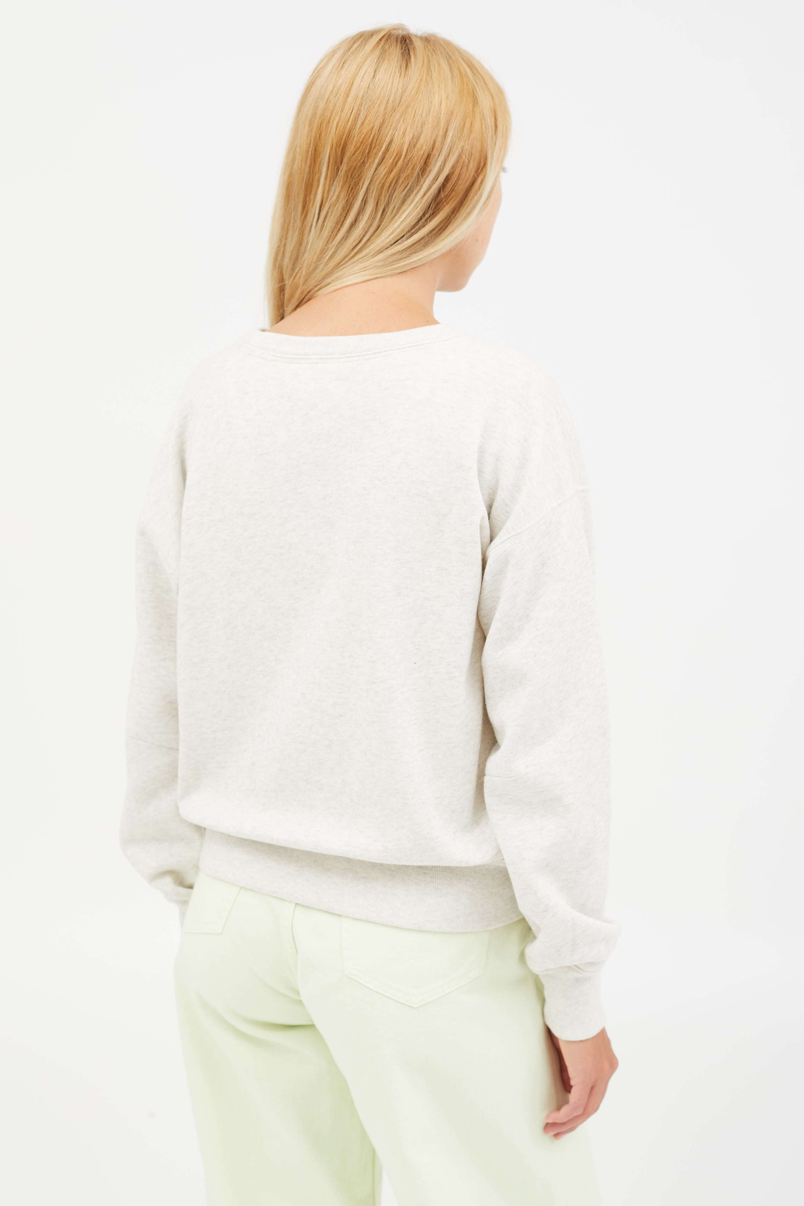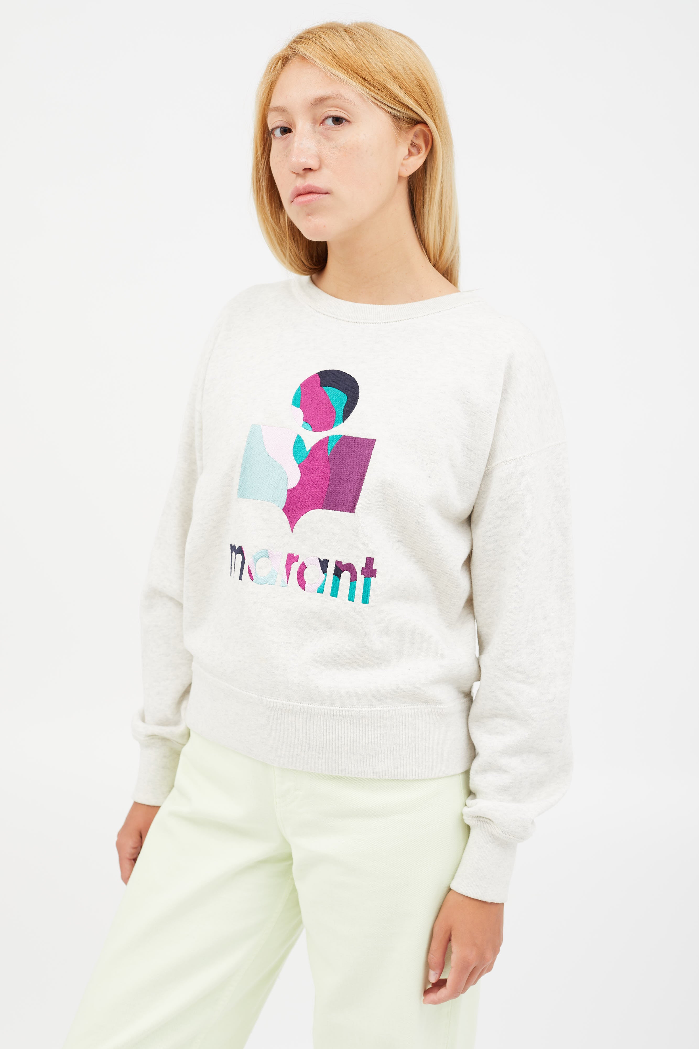 Pre-owned Isabel Marant Étoile grey Mobyli sweatshirt featuring a crewneck, long sleeves with dropped shoulders, ribbed cuffs and hem and an embroidered multicolour logo at centre front.