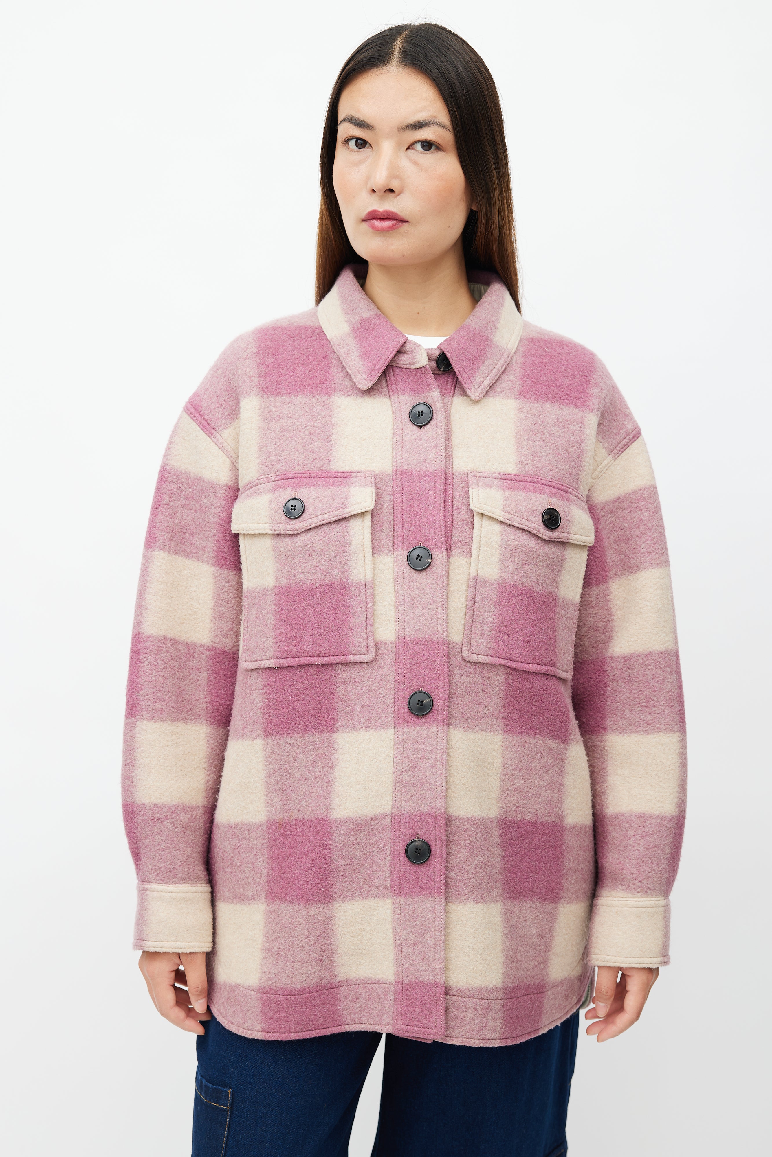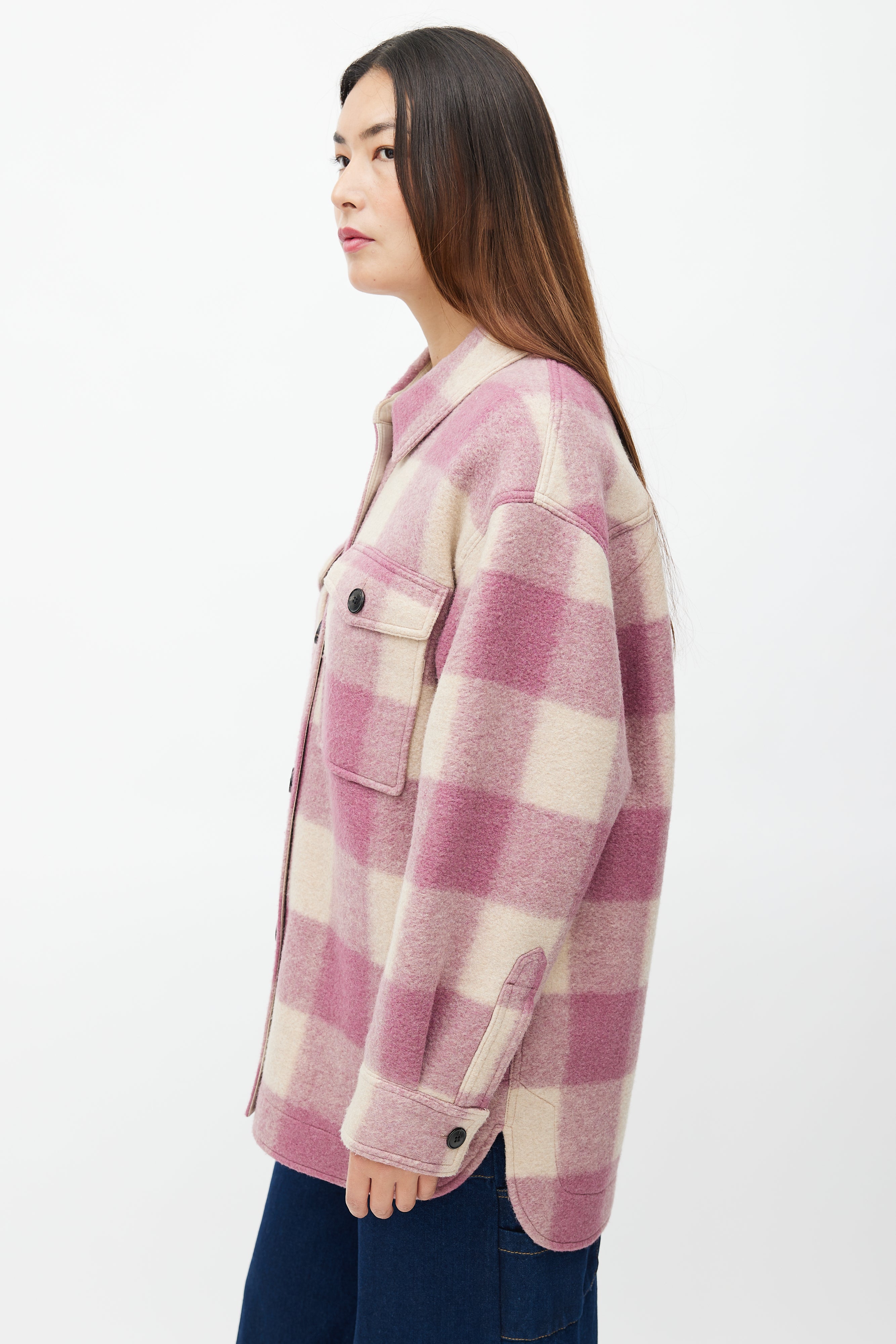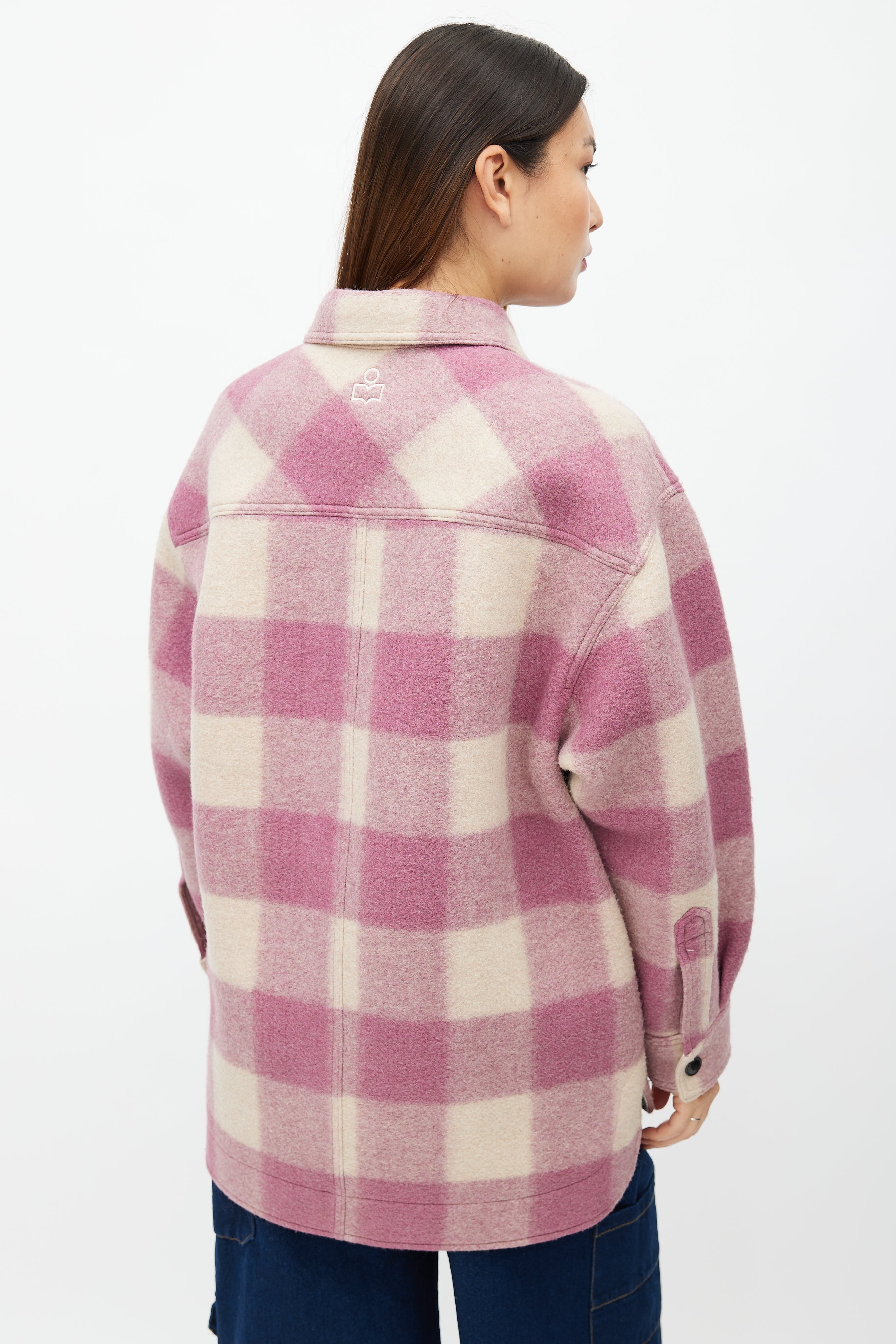 Pre-owned Isabel Marant Étoile purple and cream Haverli jacket featuring check print, button up front, classic collar, two flap pockets at chest, two welt pockets at hips, and embroidered logo at back.