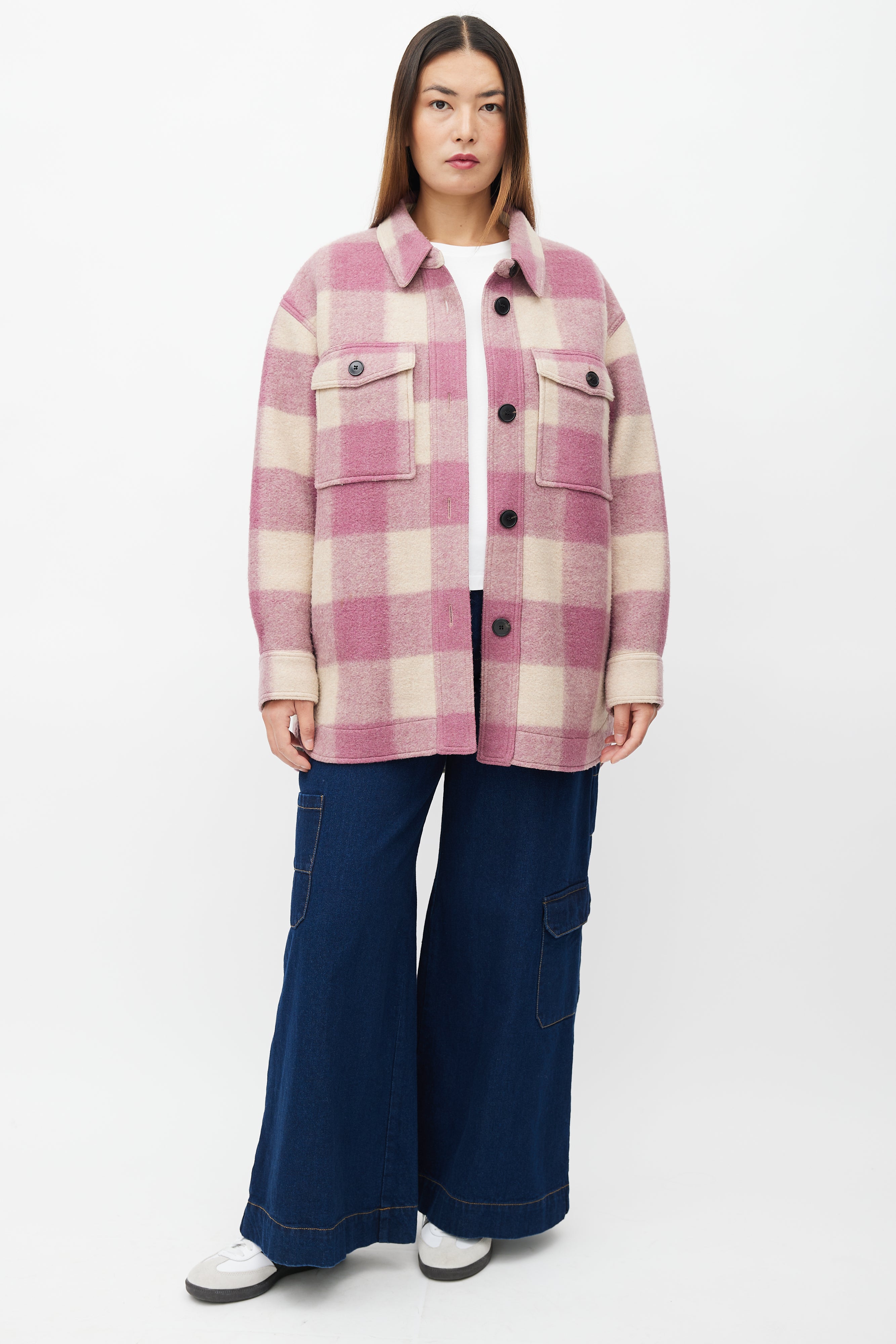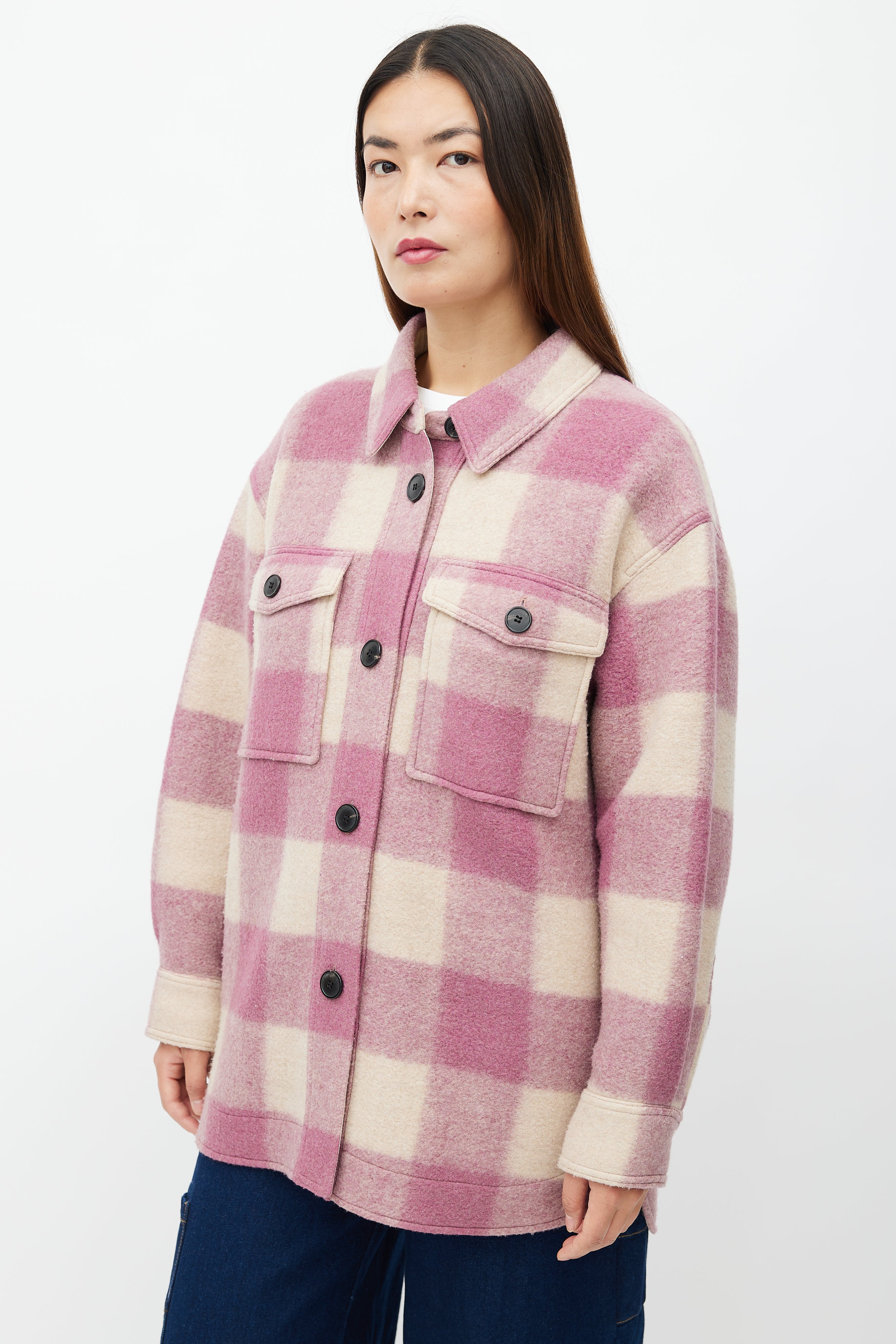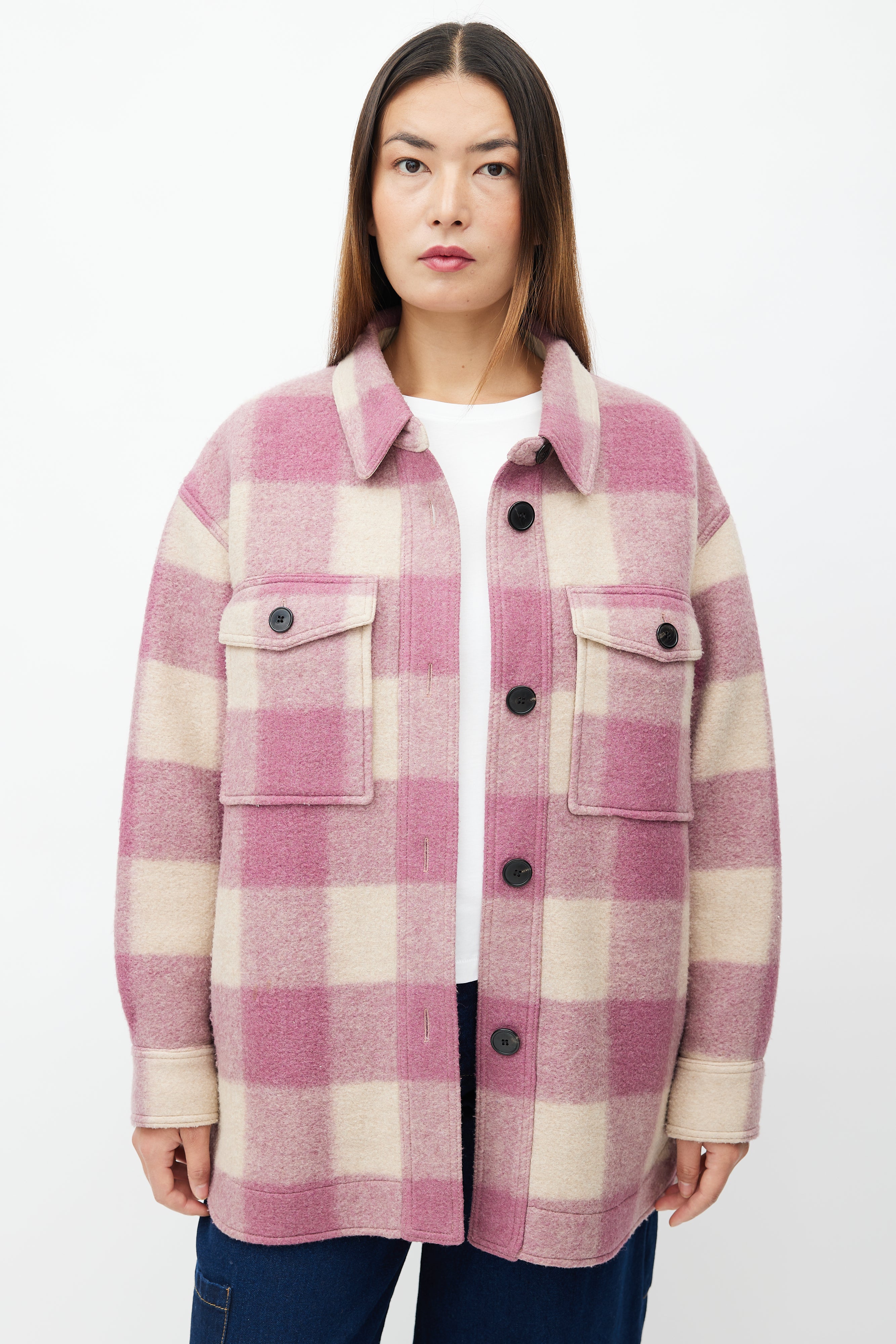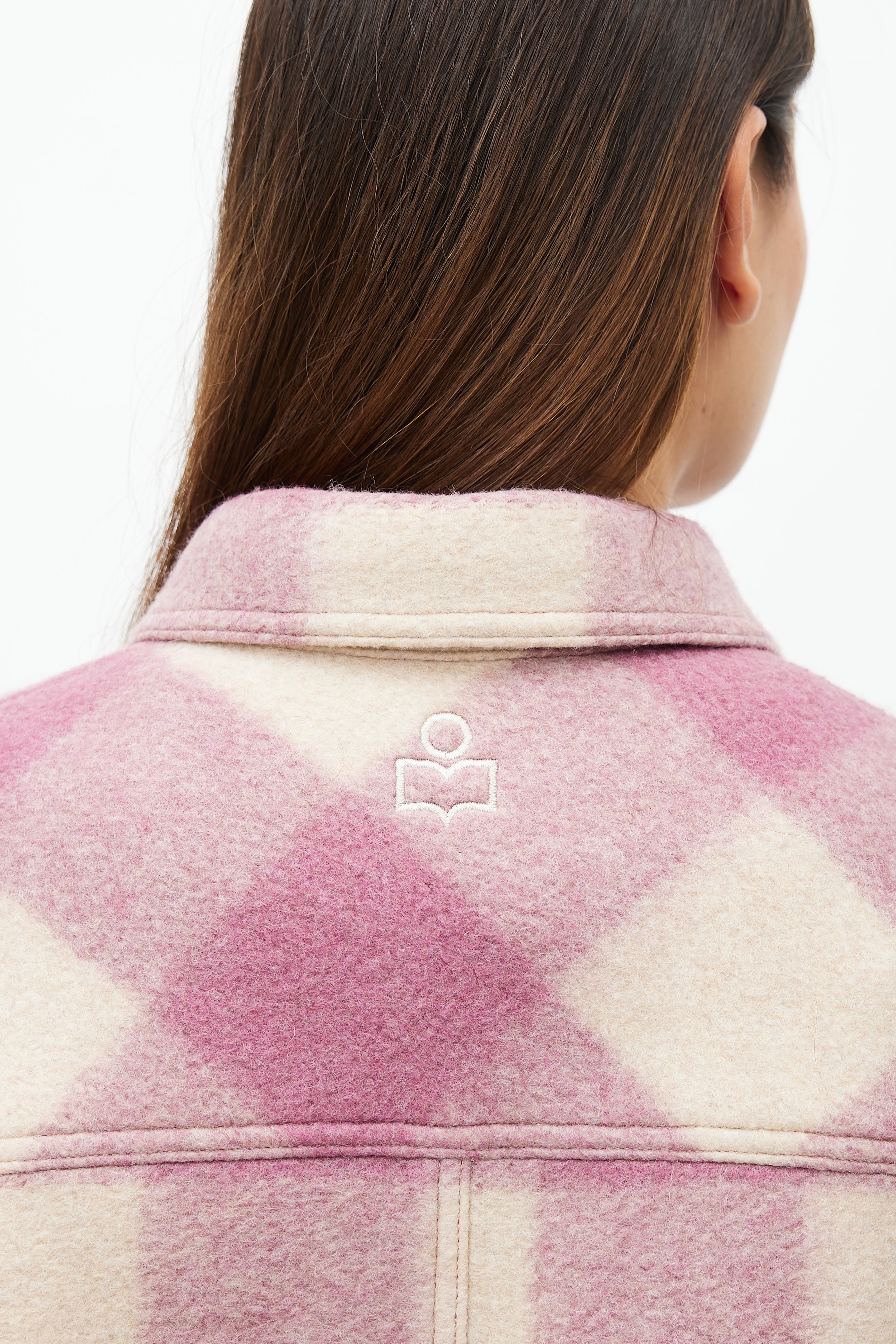 Pre-owned Isabel Marant Étoile purple and cream Haverli jacket featuring check print, button up front, classic collar, two flap pockets at chest, two welt pockets at hips, and embroidered logo at back.