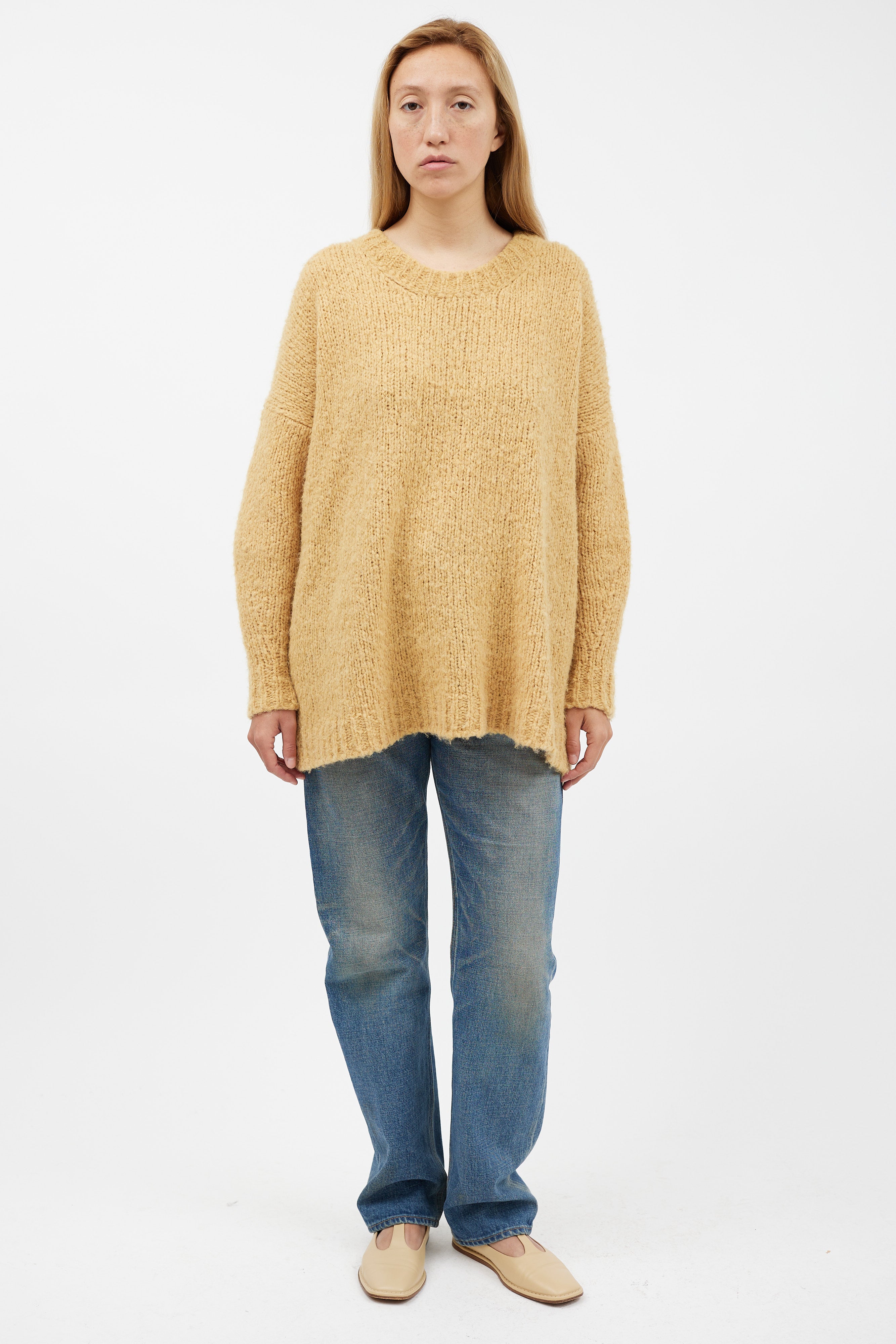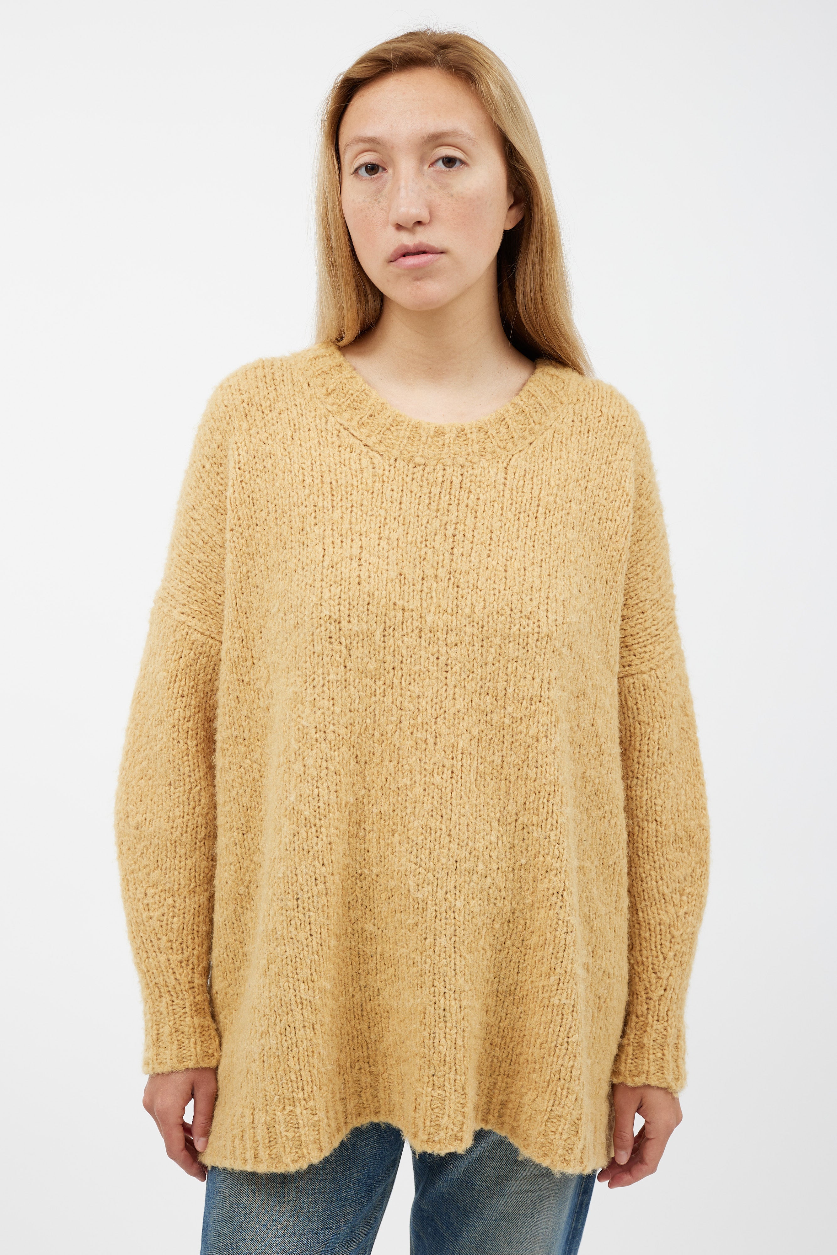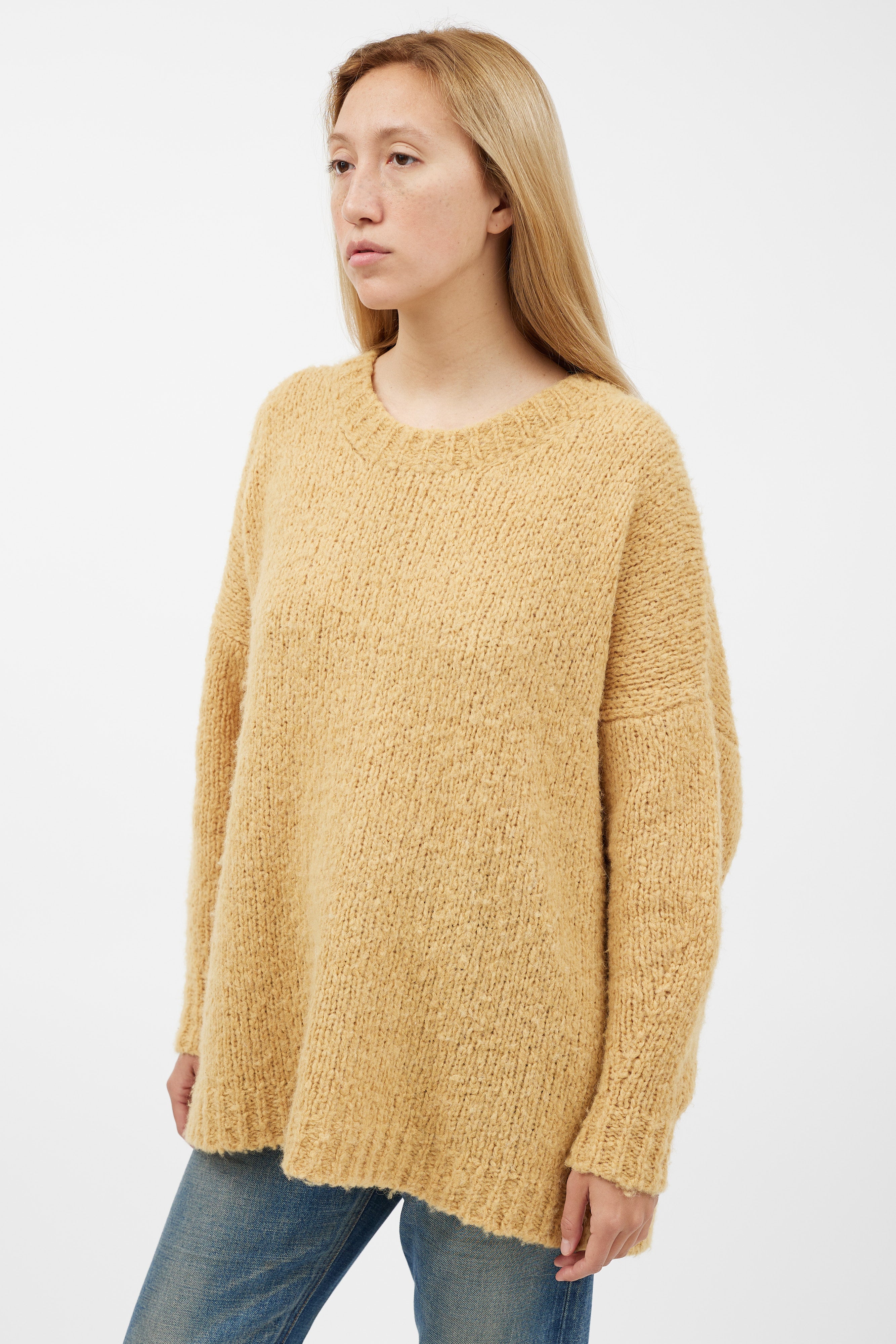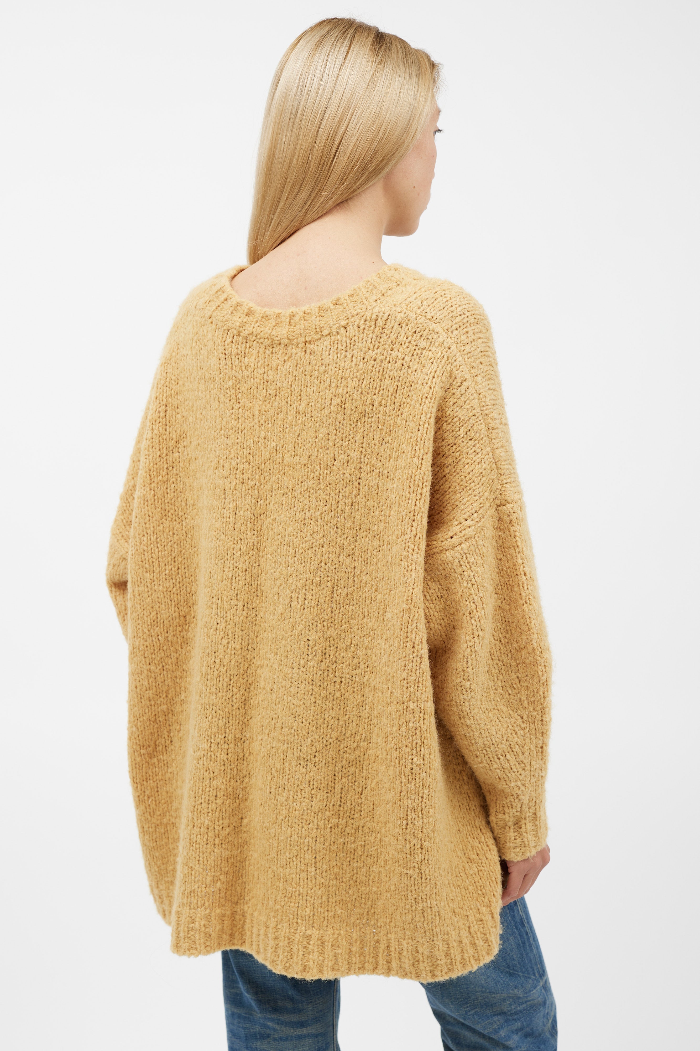 Pre-owned Isabel Marant Étoile yellow wool knit sweater featuring a round neckline, long sleeves with drop shoulder, and ribbed hem.