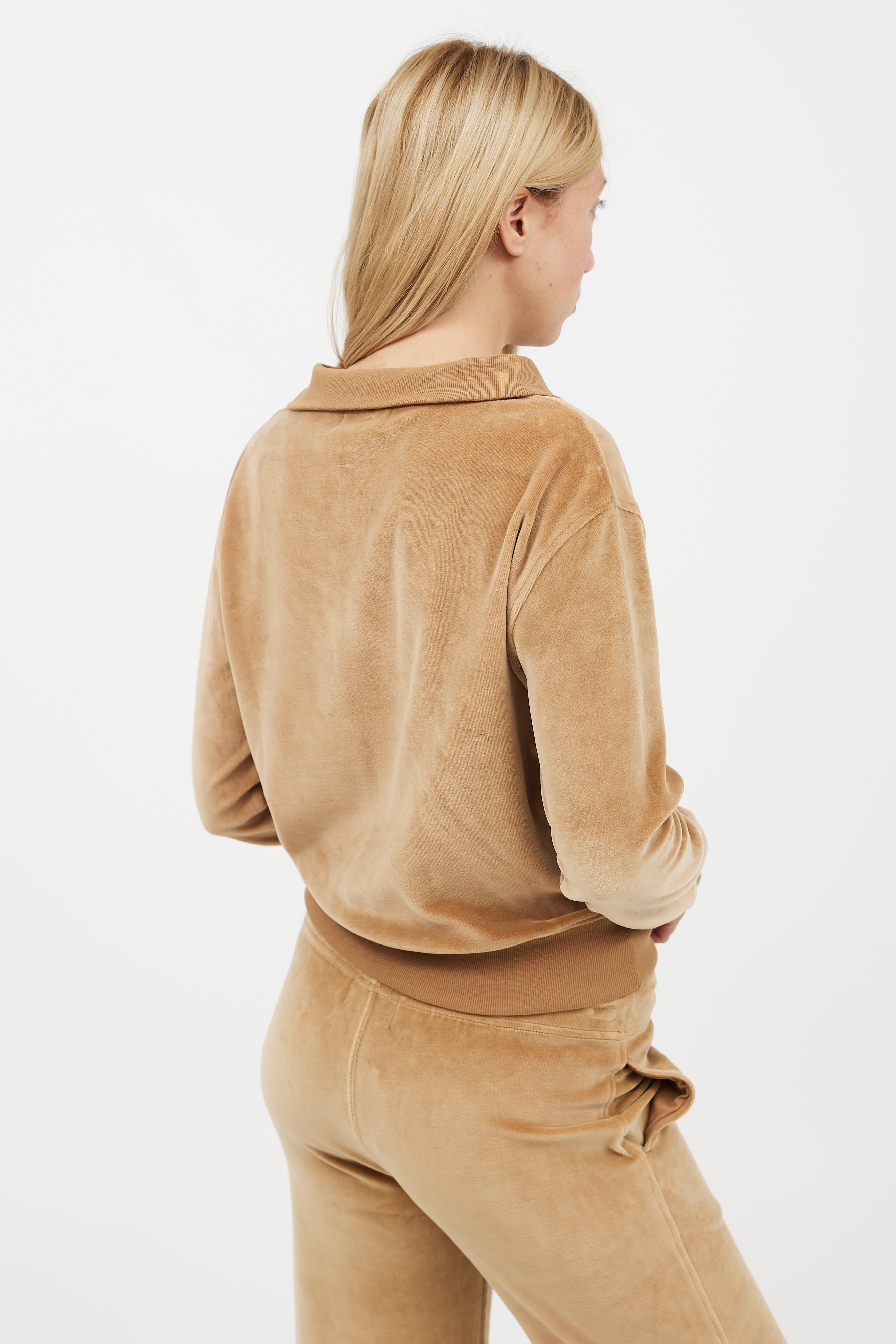 Beige Velvet 2 Piece Tracksuit X-Small Size Guide