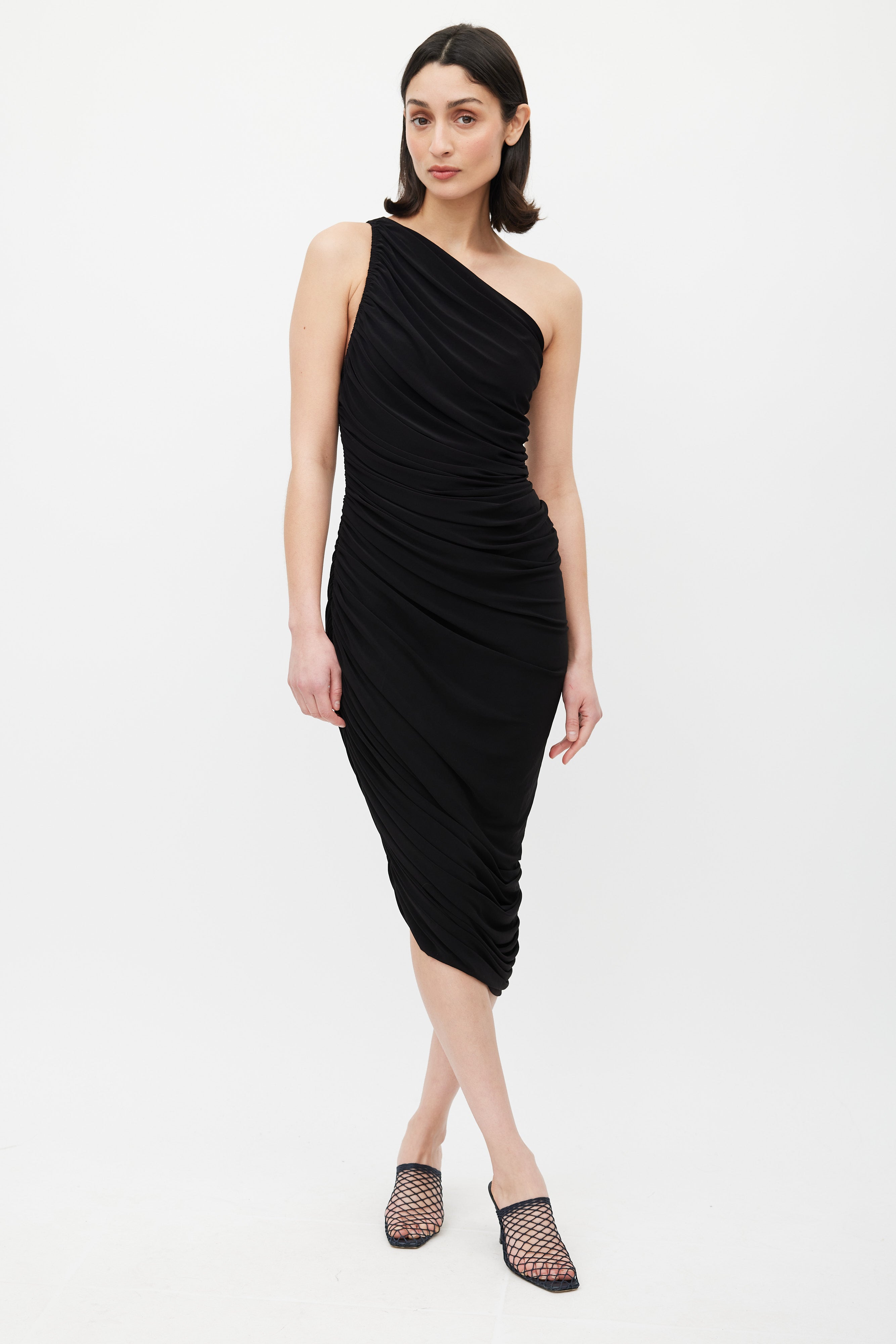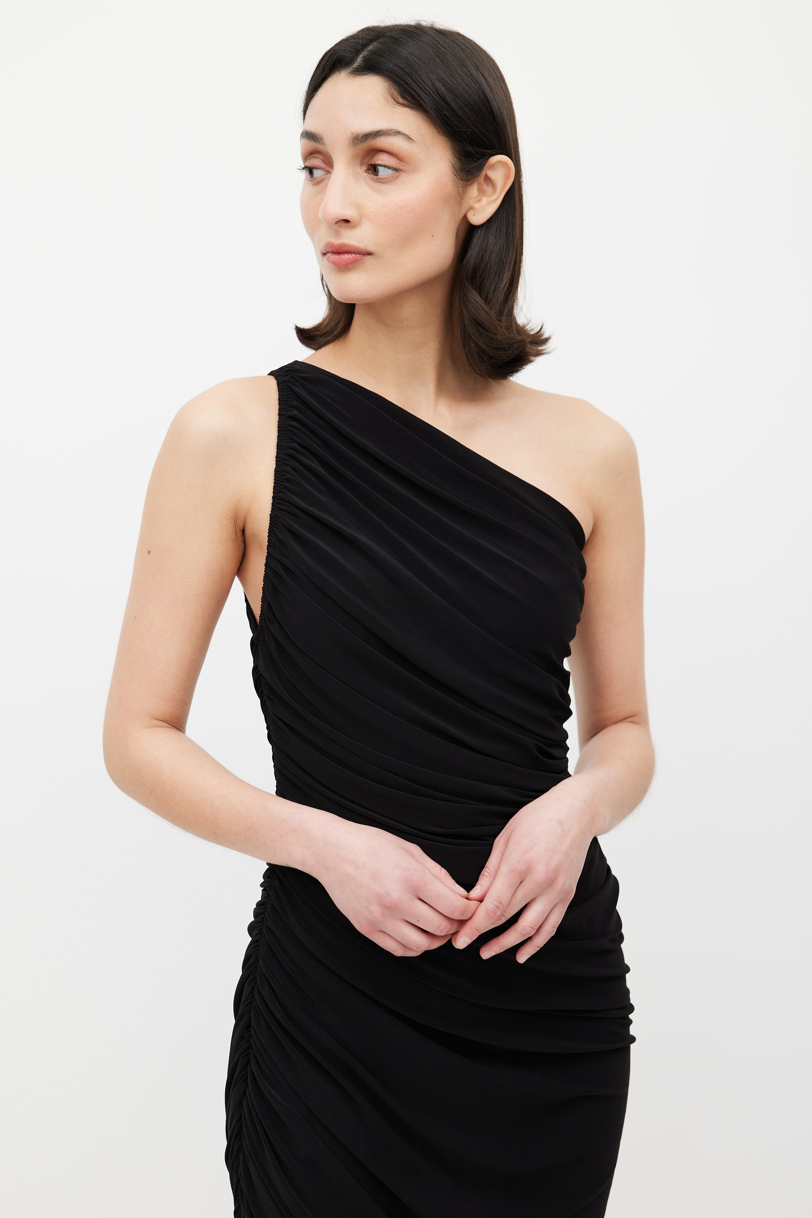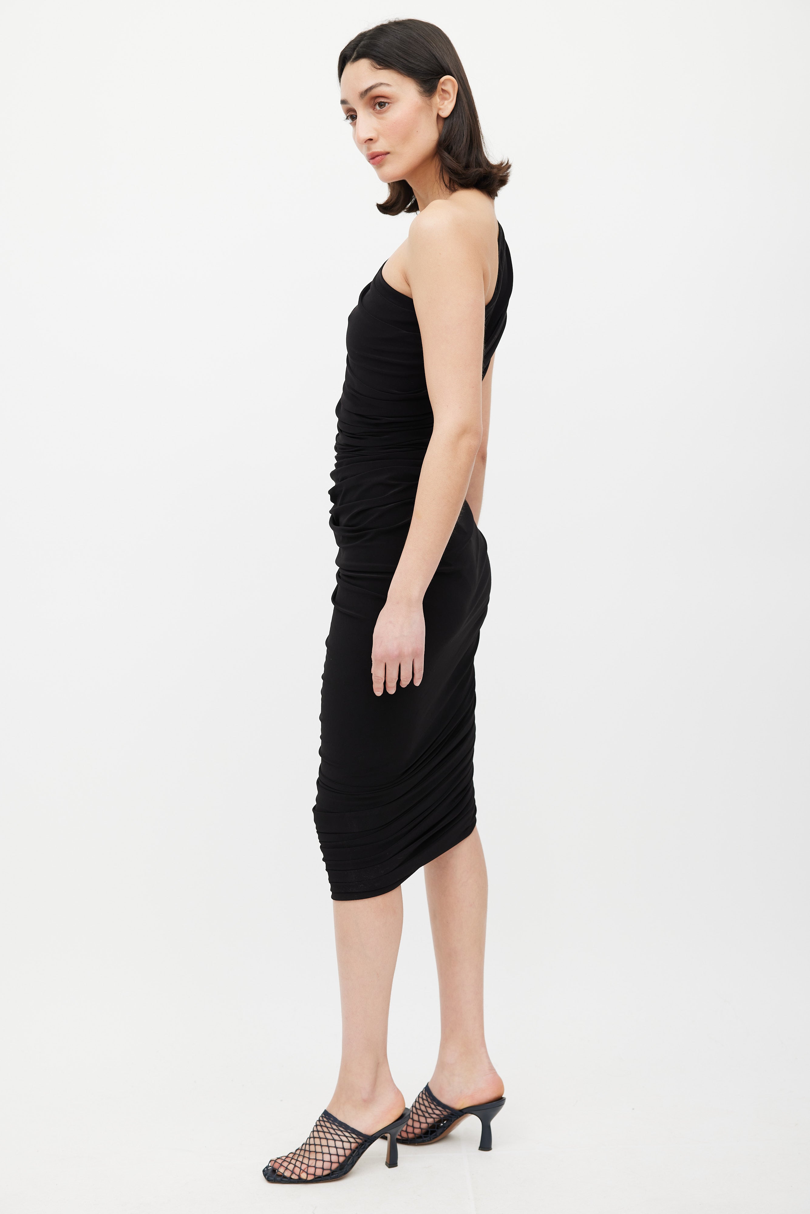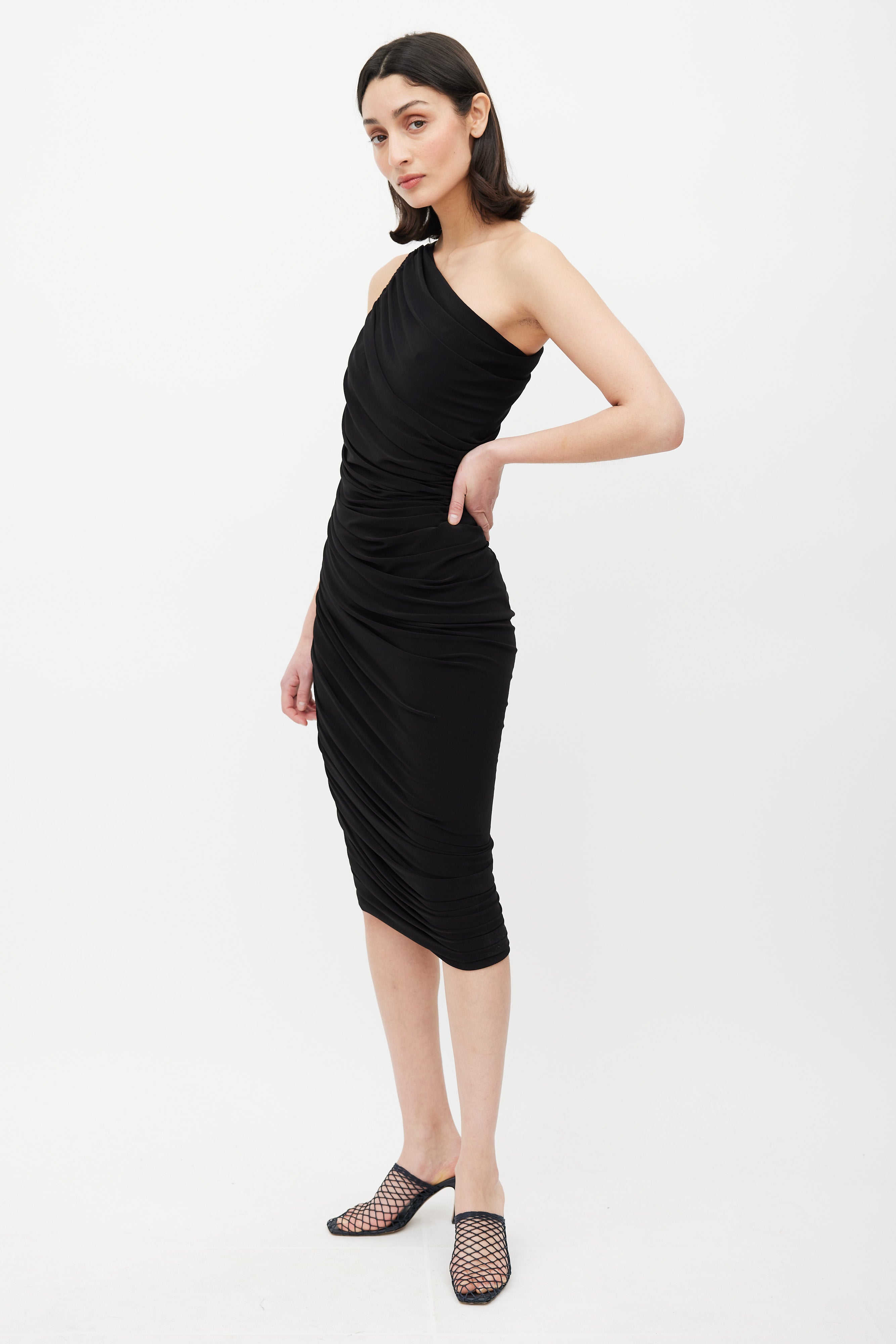 Pre-owned Norma Kamali black Diana dress featuring one shoulder and ruching throughout. Lined.