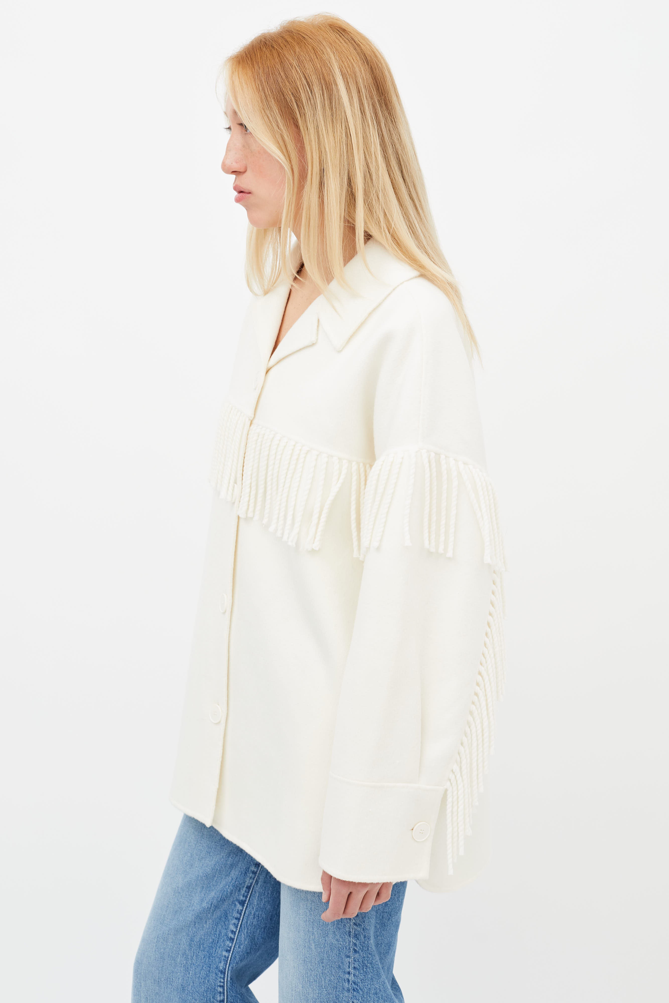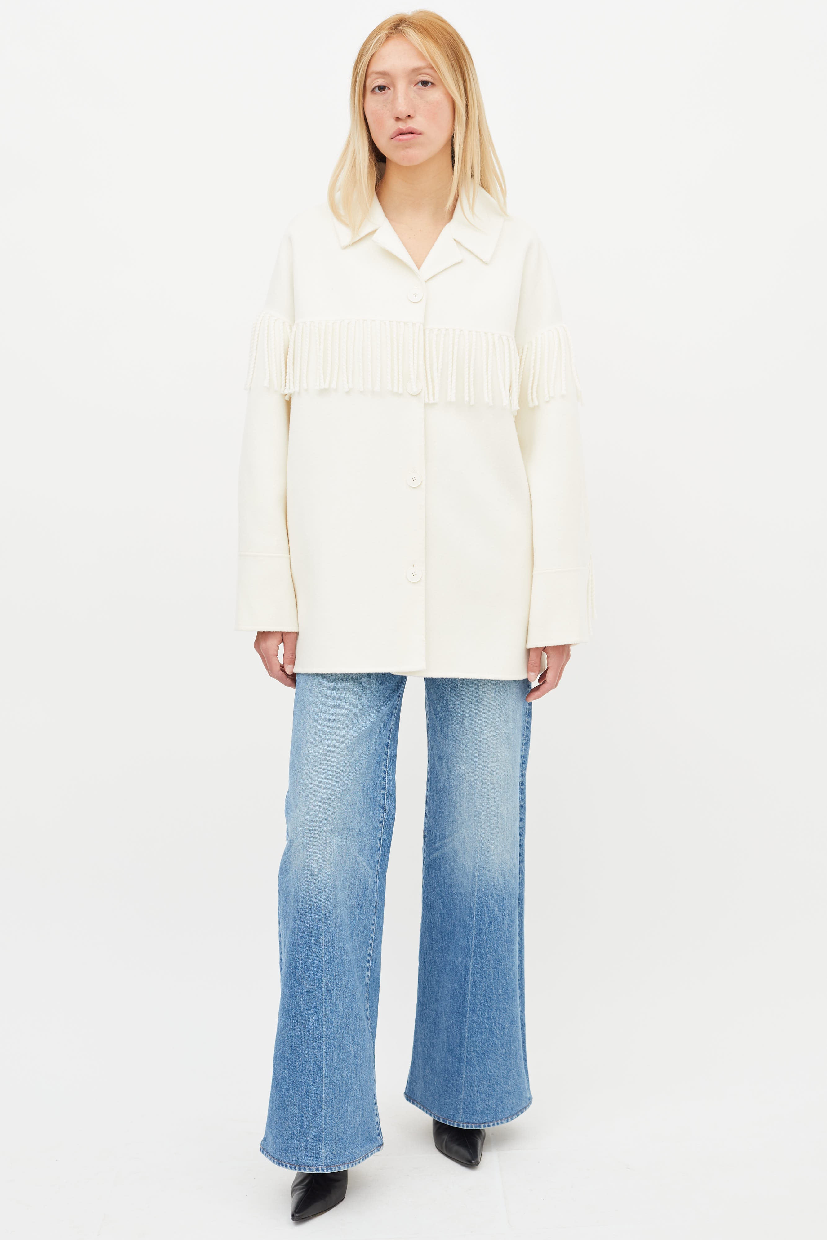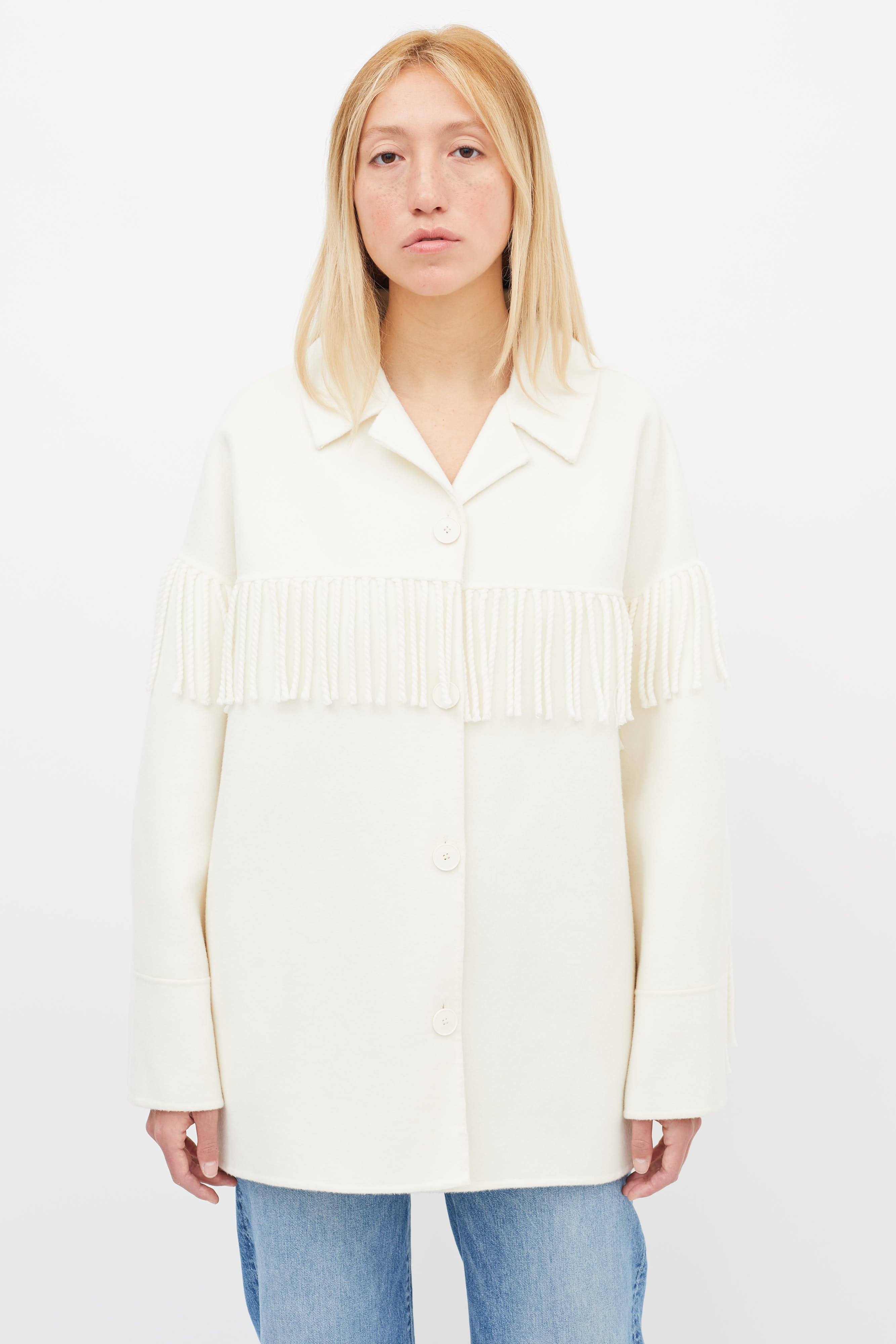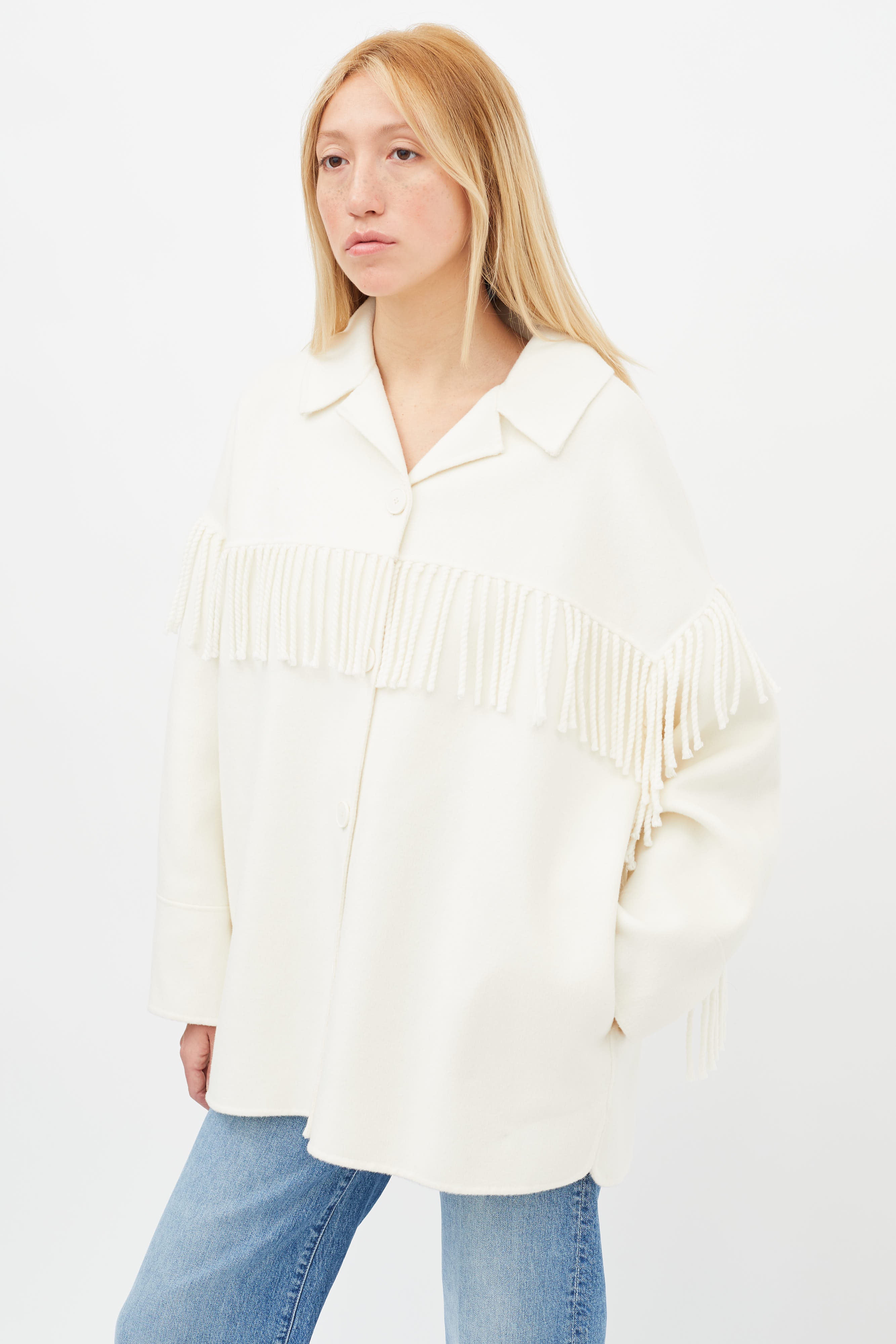 Cream Fringe Trim Wool Jacket FR 38 Size Guide
