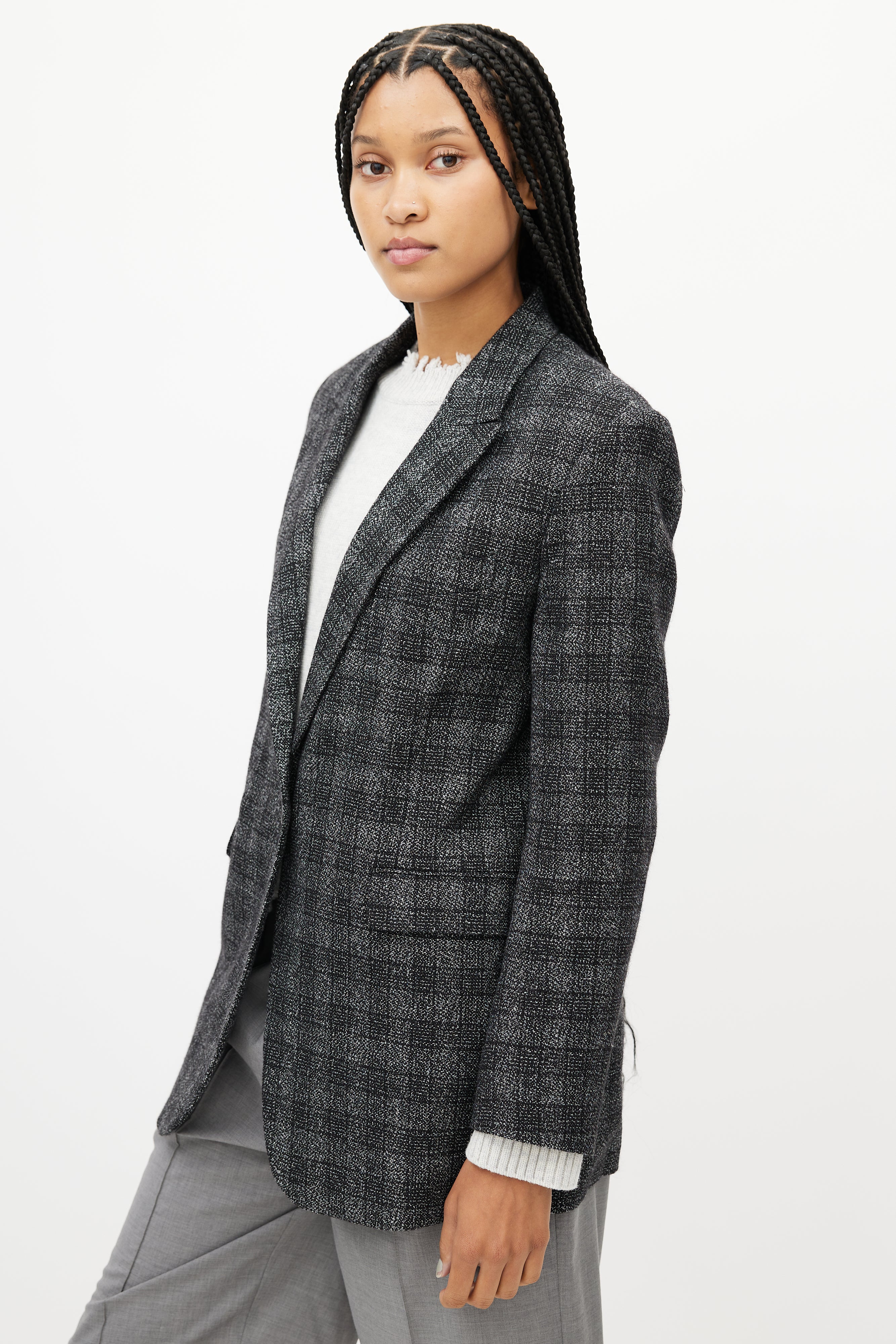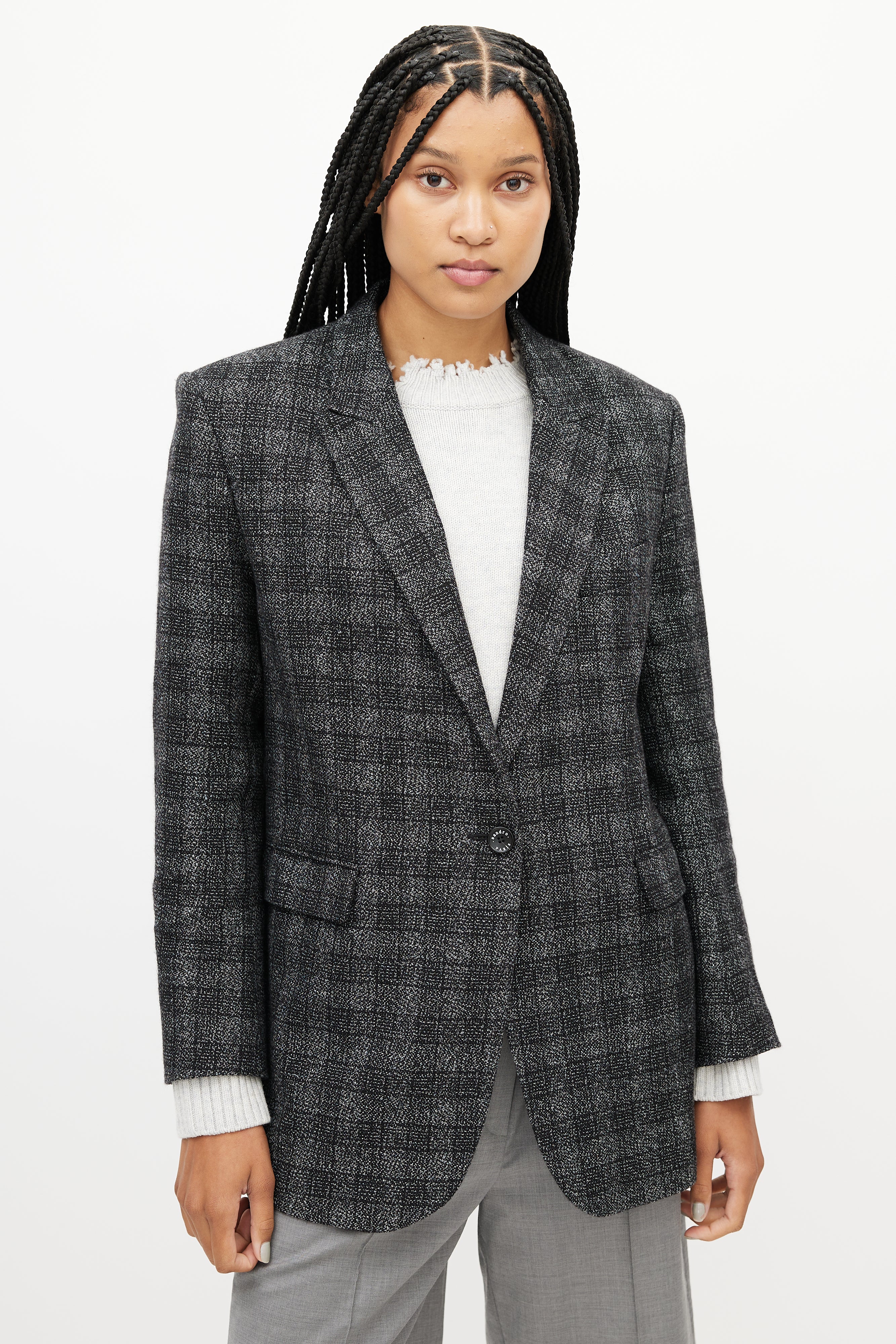 Grey & Black Plaid Blazer FR 40 Size Guide
