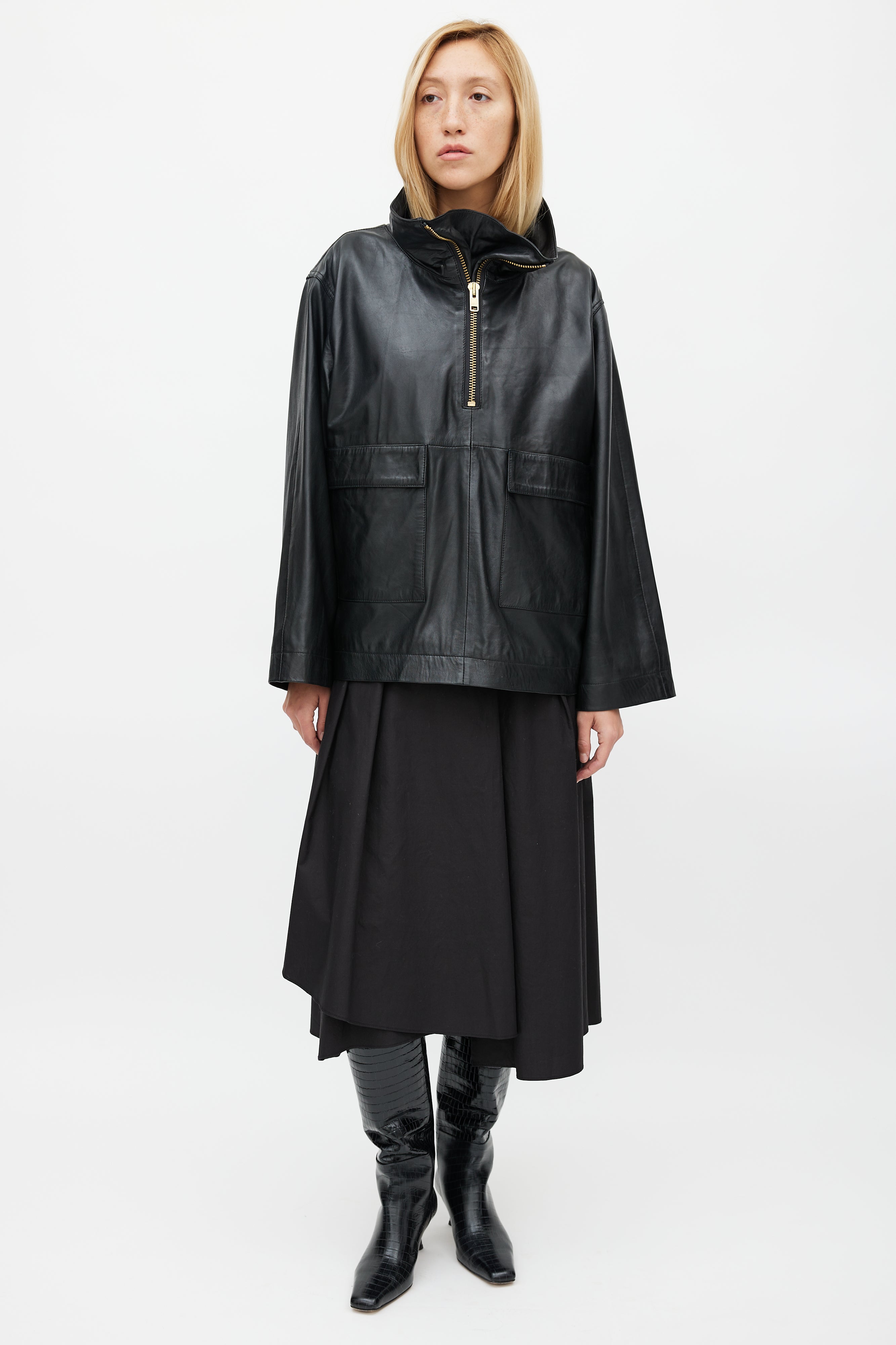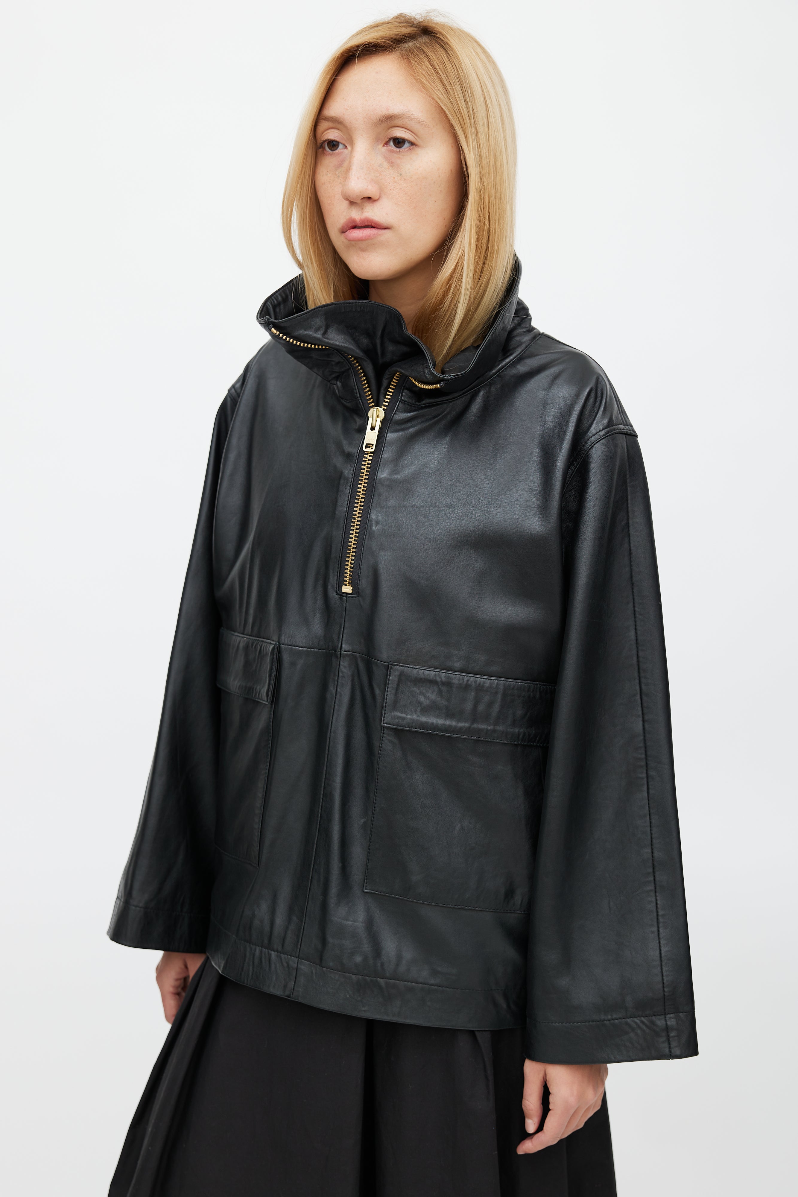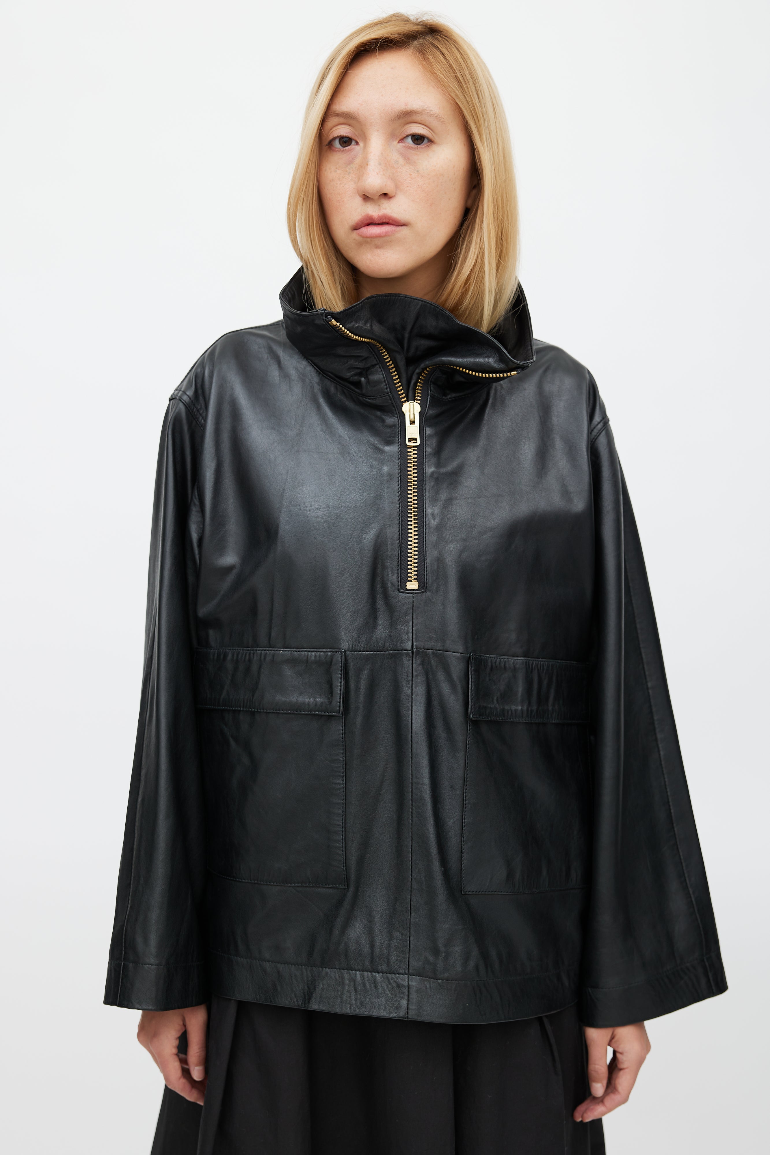Pre-owned Smythe black Over The Head anorak featuring gold tone half zip up front, funnel neck, two oversized patch pockets, and side vents with zip closure. Lined.