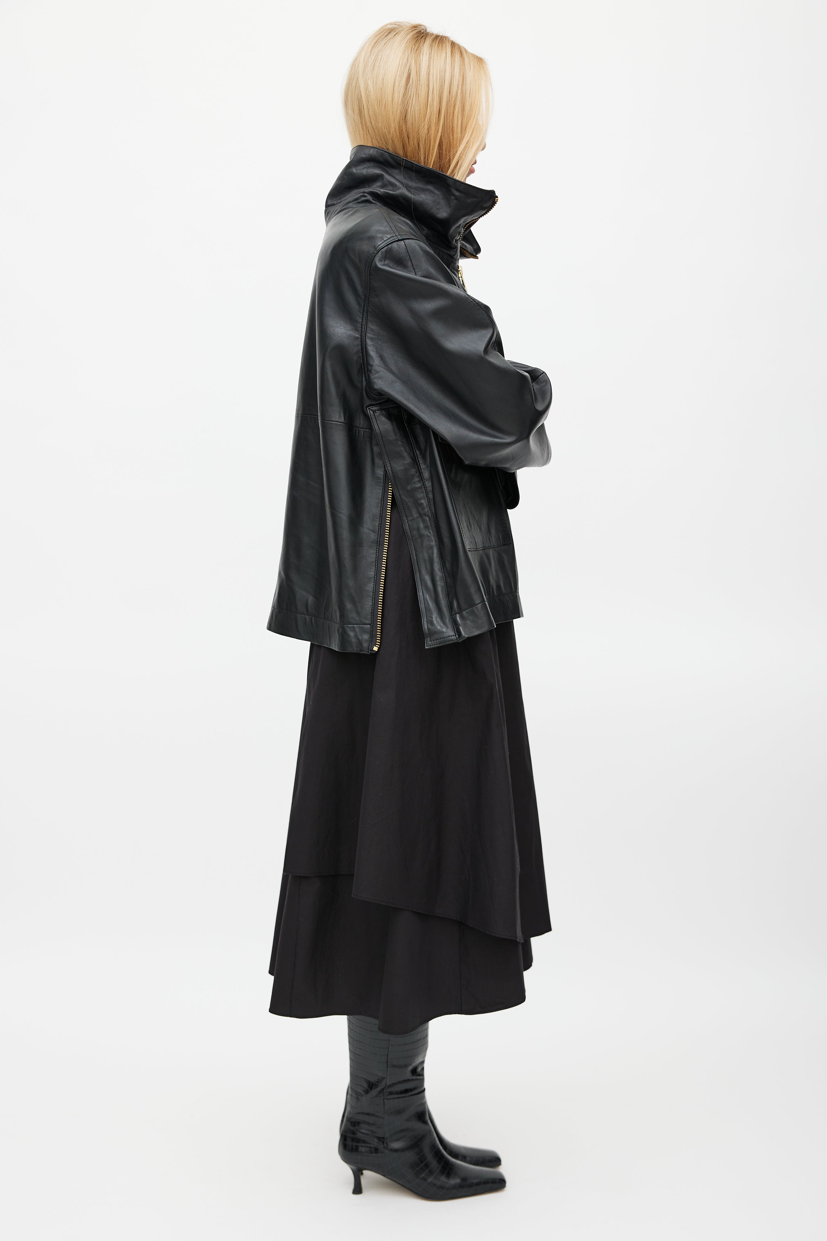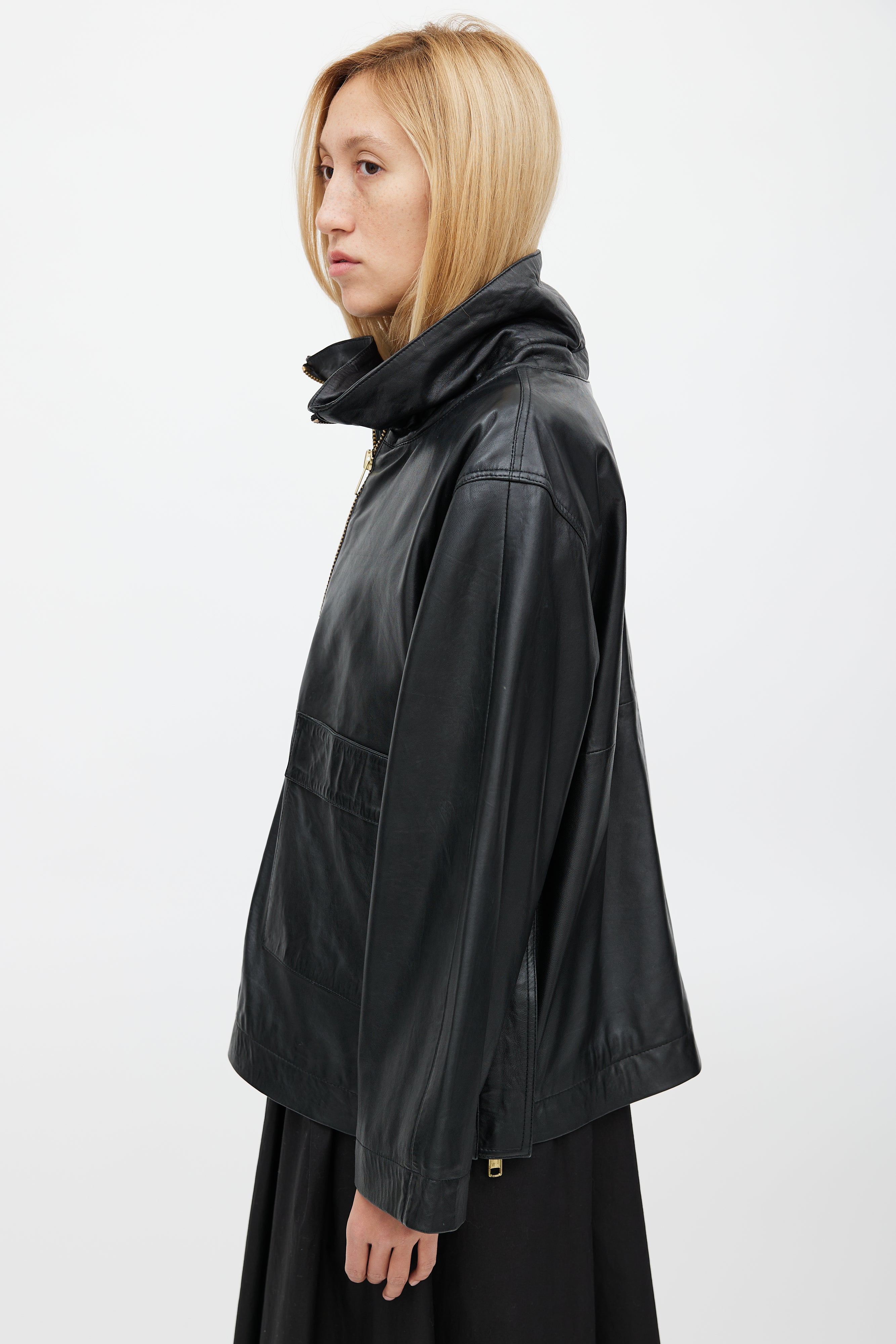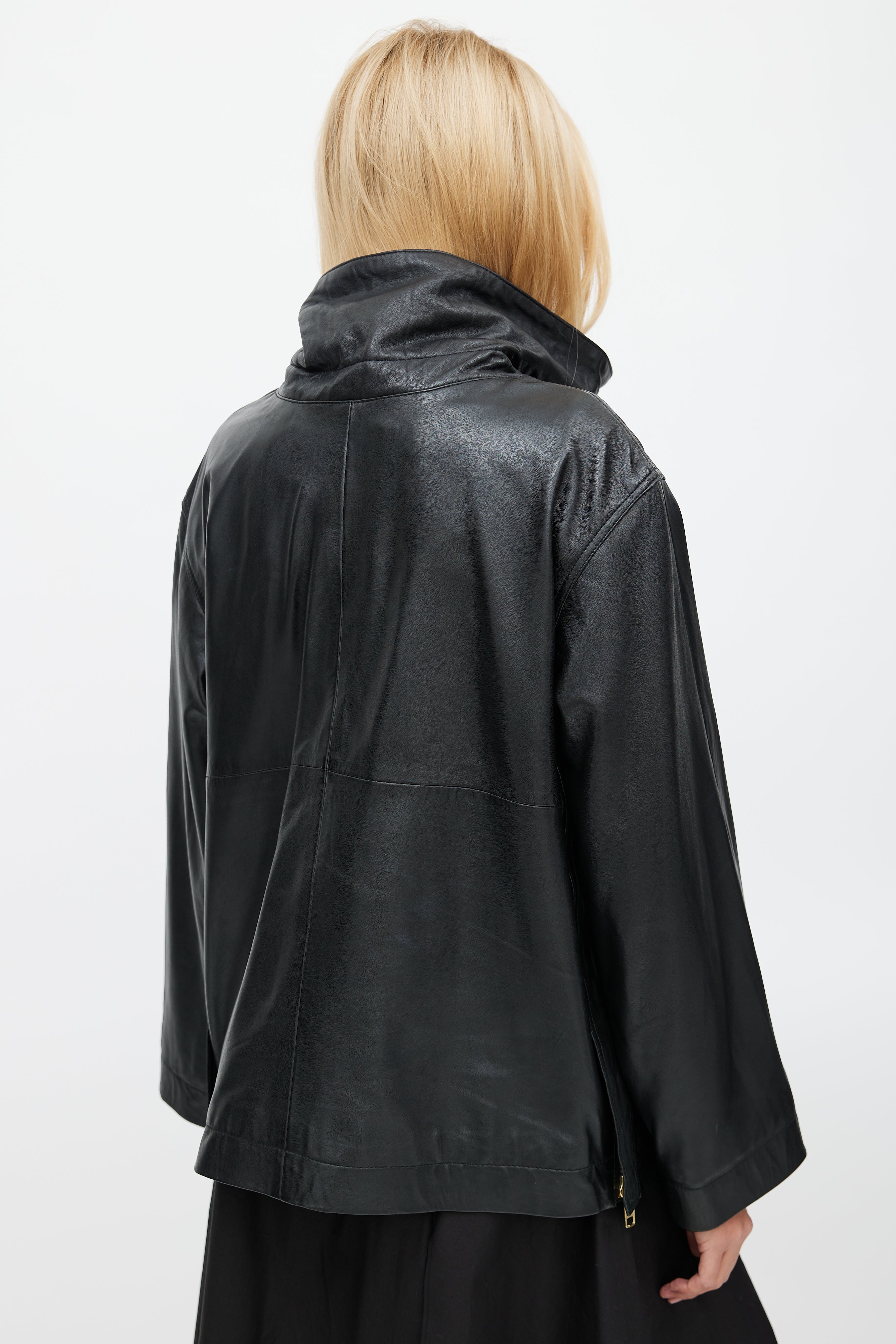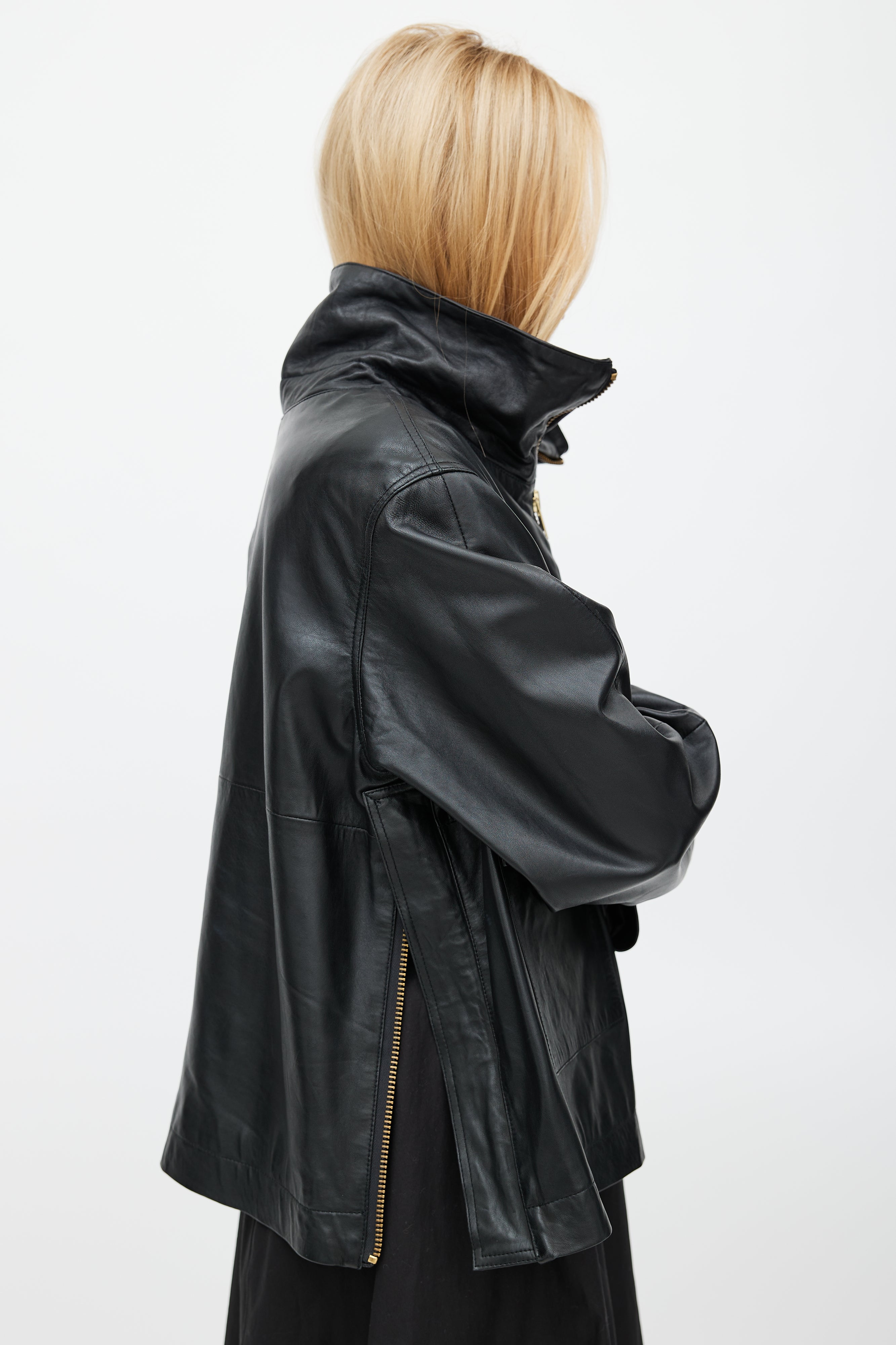 Pre-owned Smythe black Over The Head anorak featuring gold tone half zip up front, funnel neck, two oversized patch pockets, and side vents with zip closure. Lined.