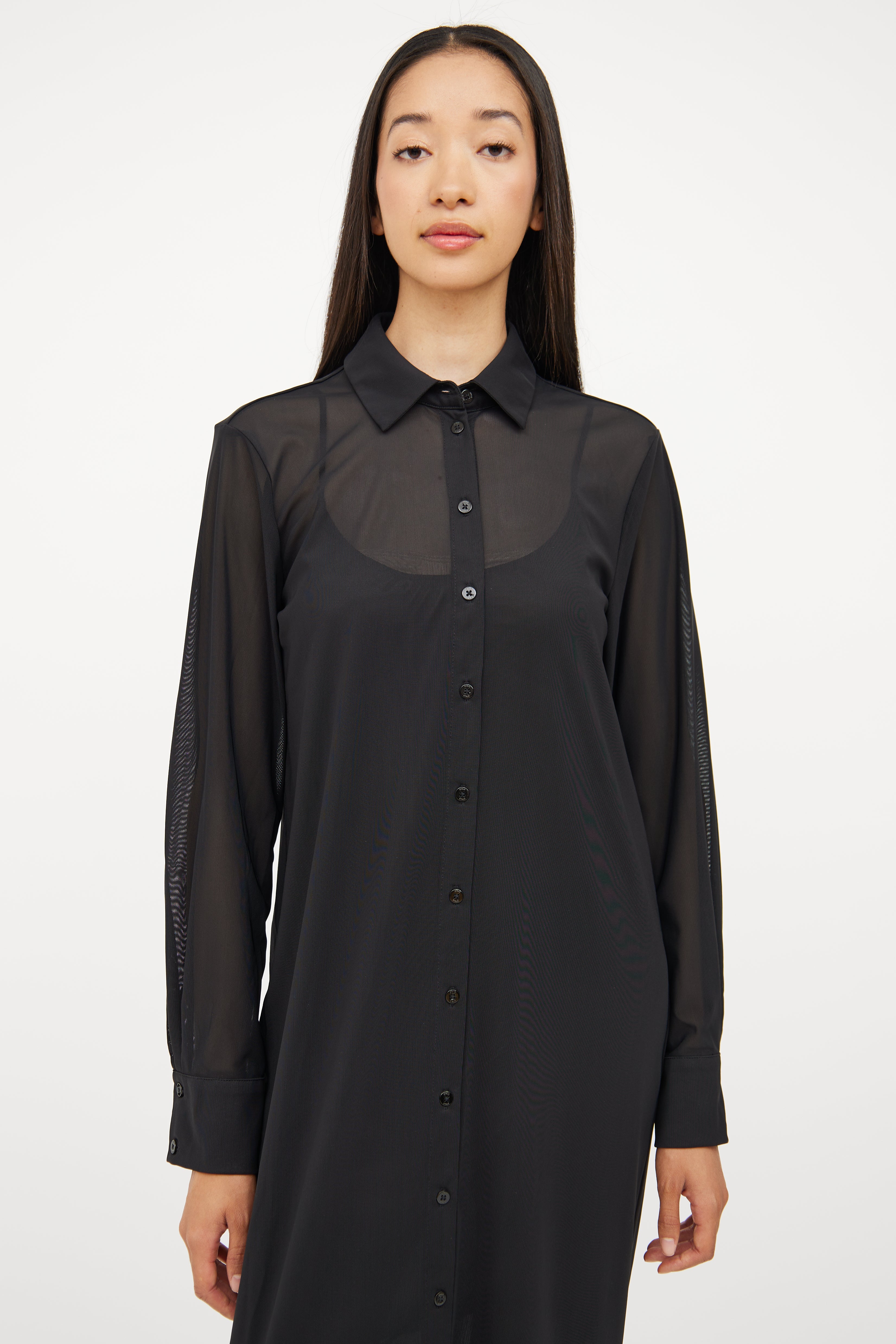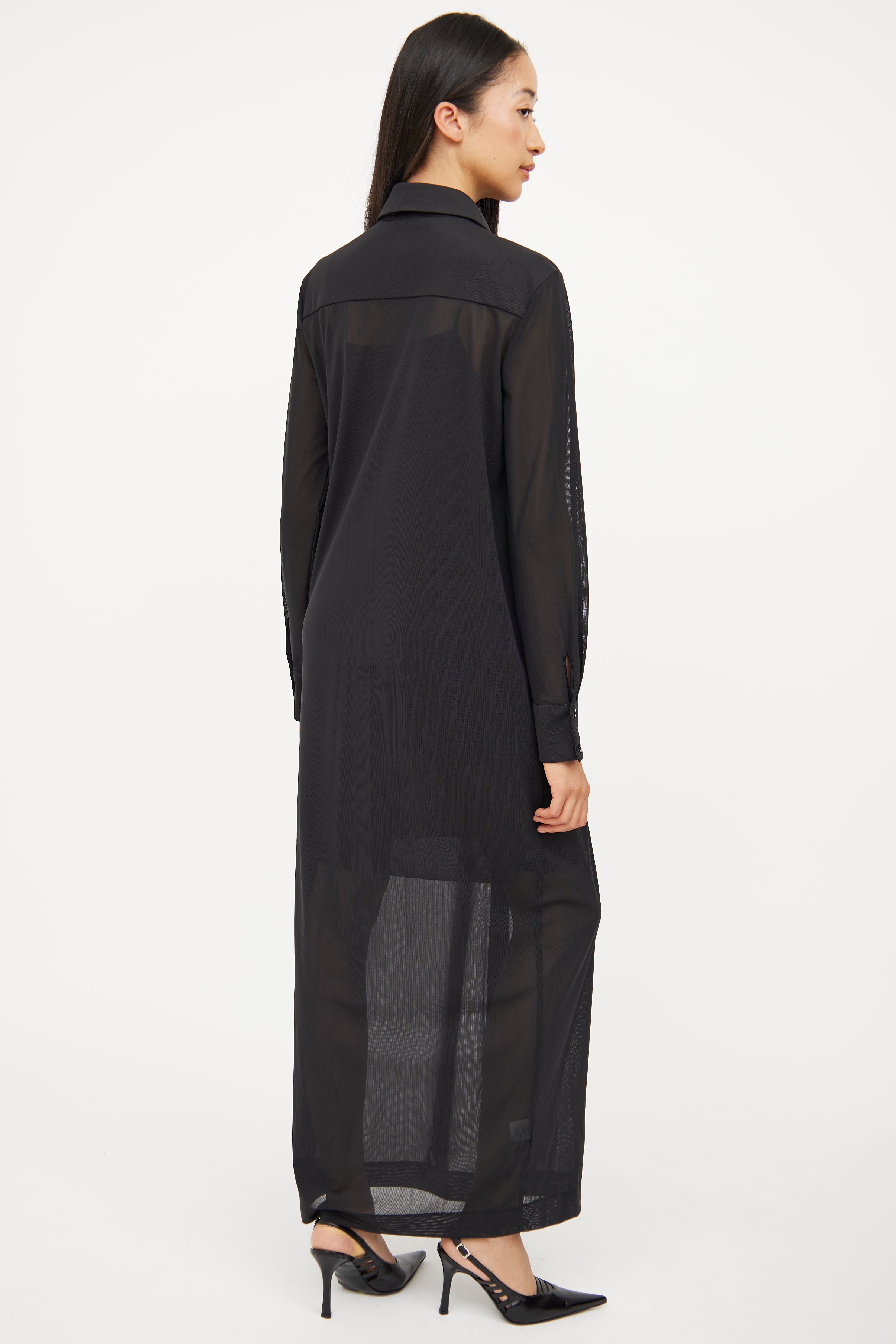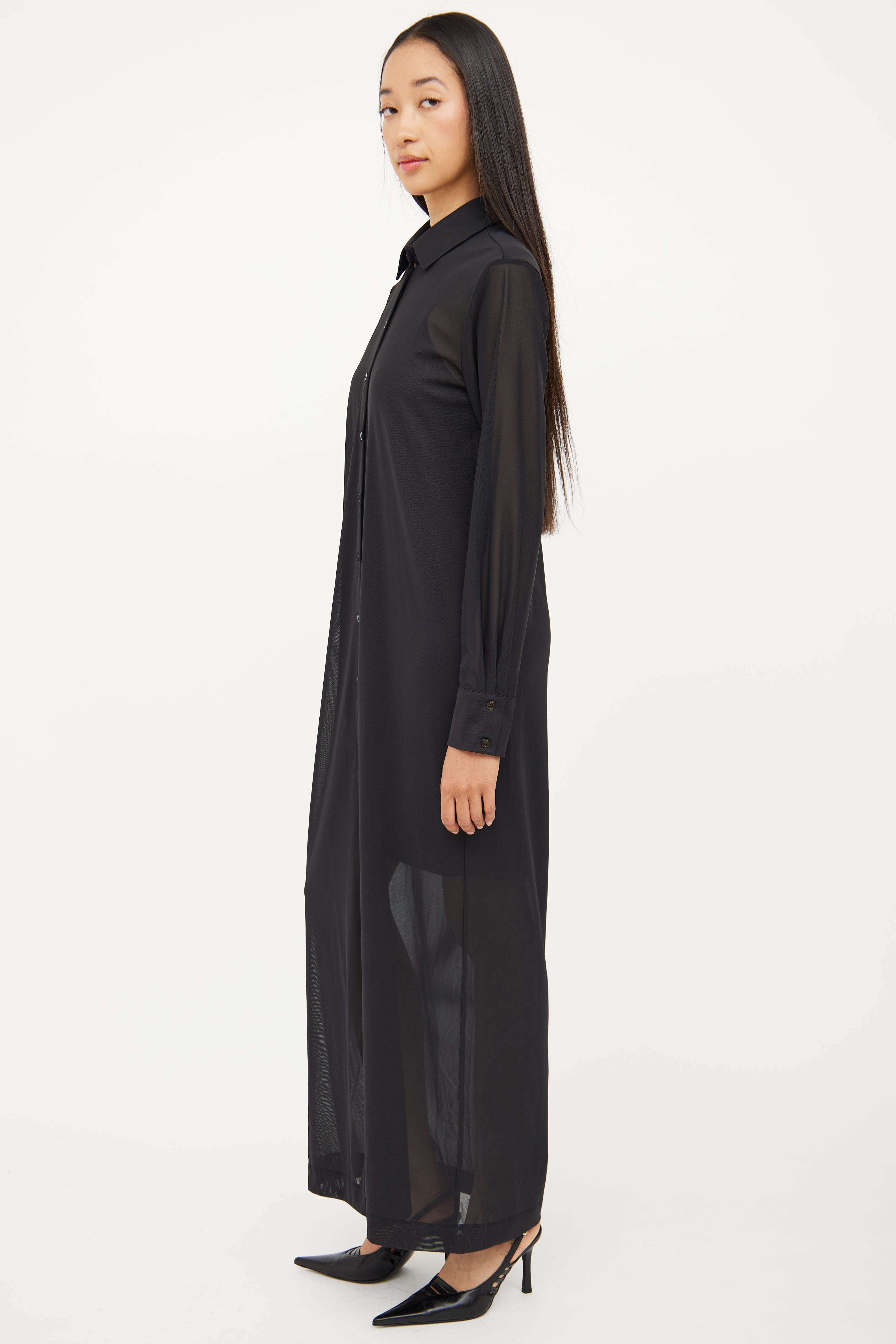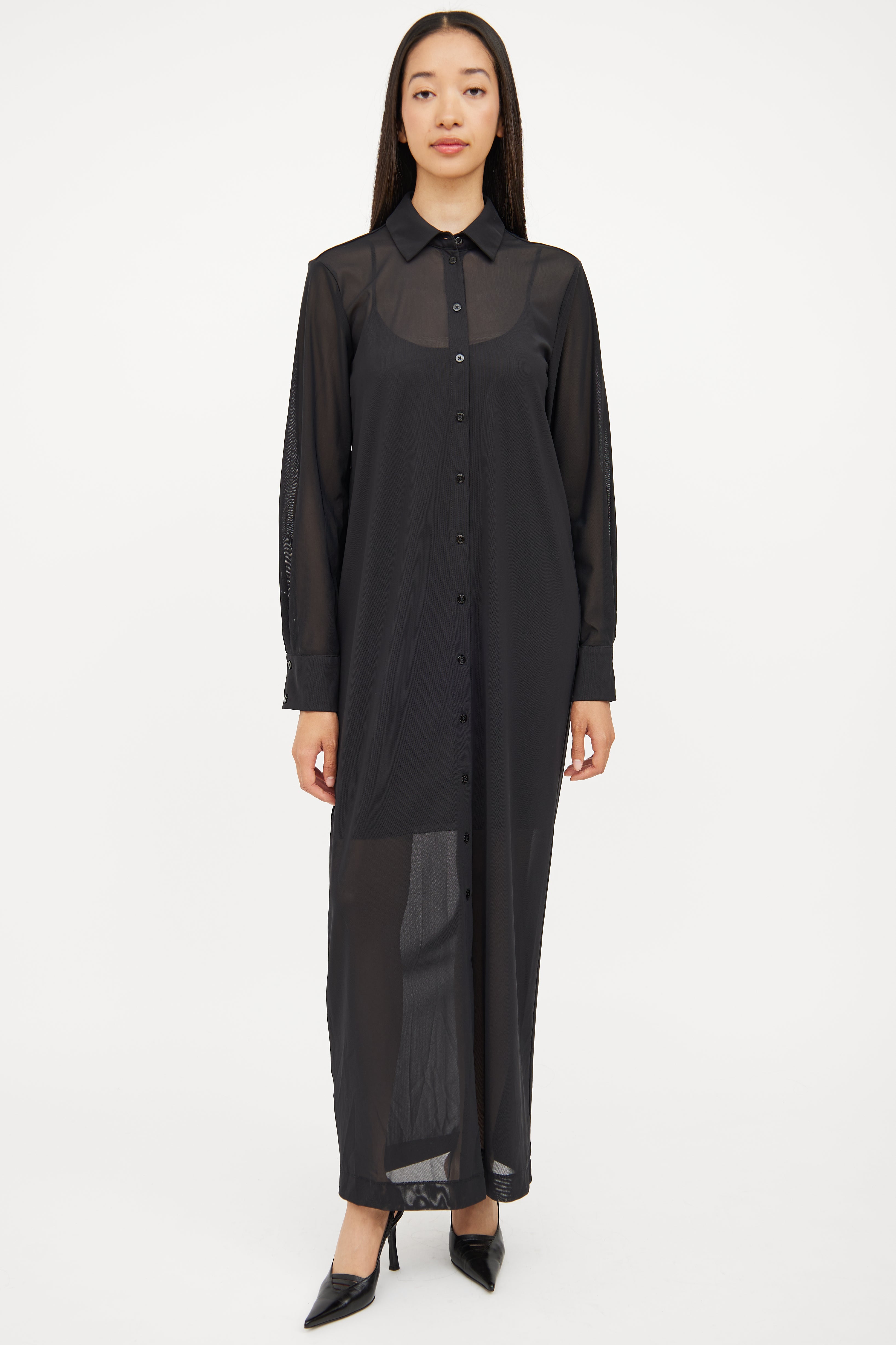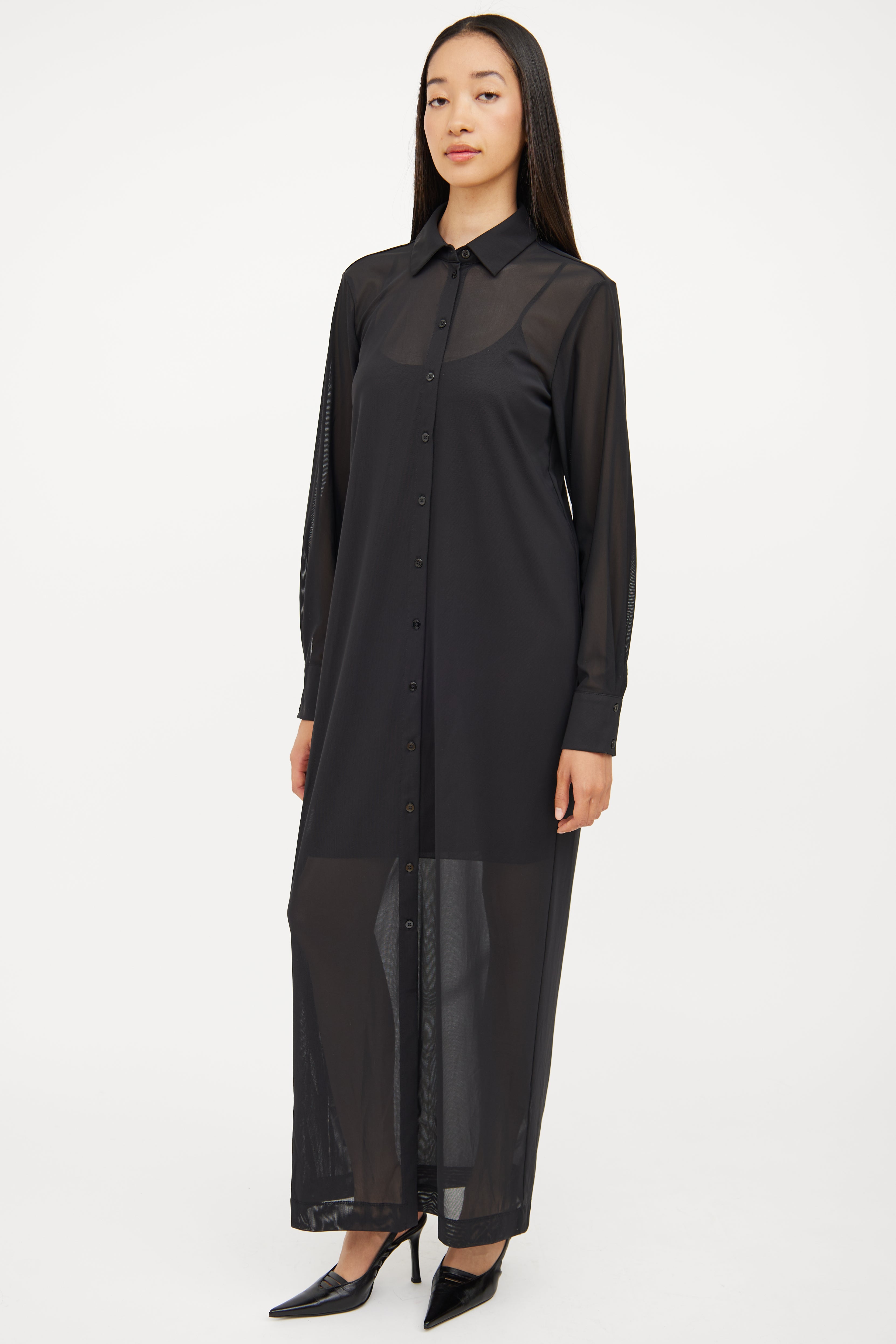 Black Sheer Maxi Shirt Dress Small Size Guide