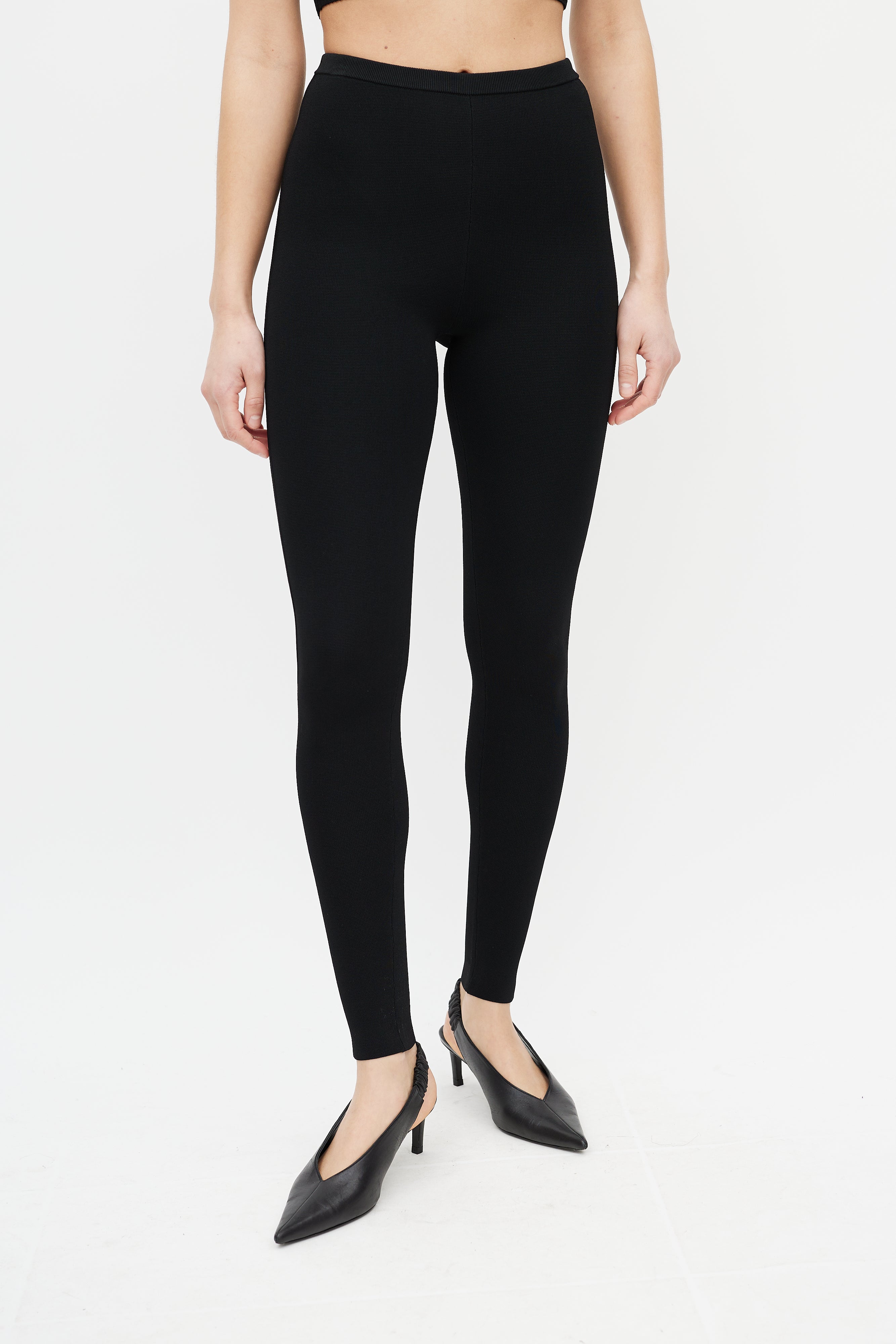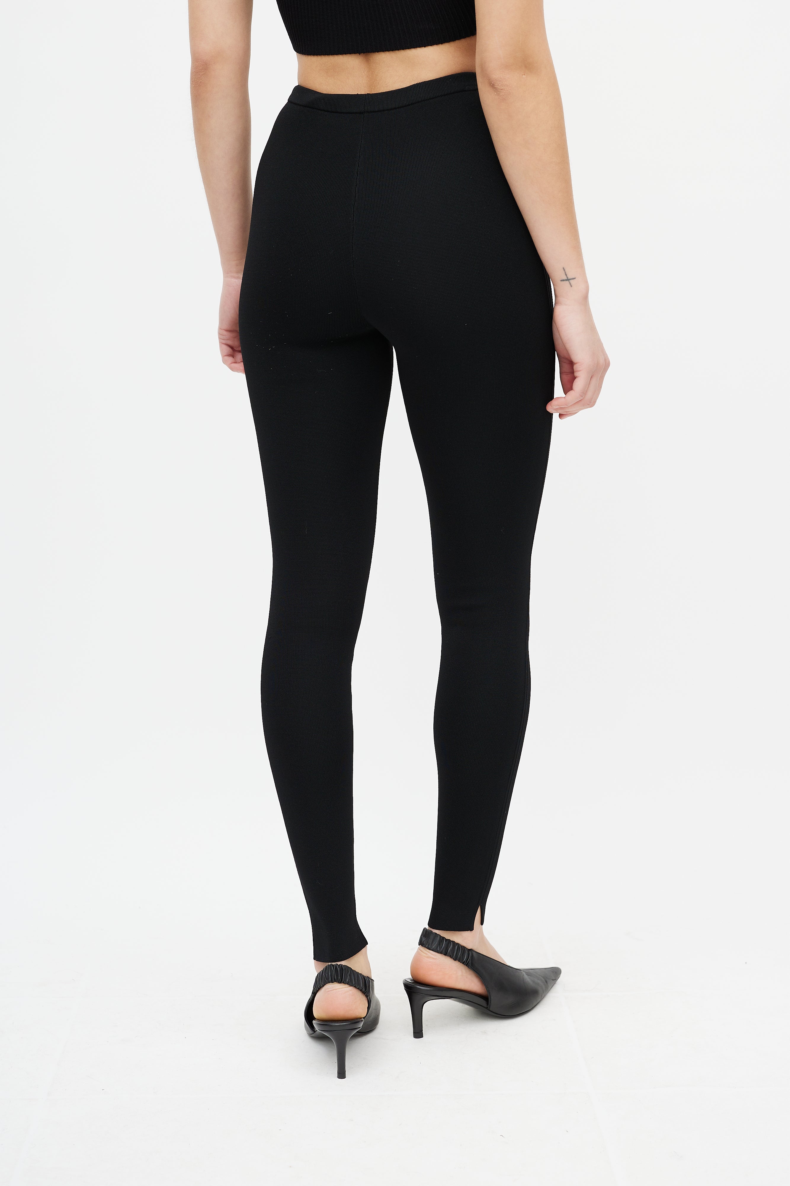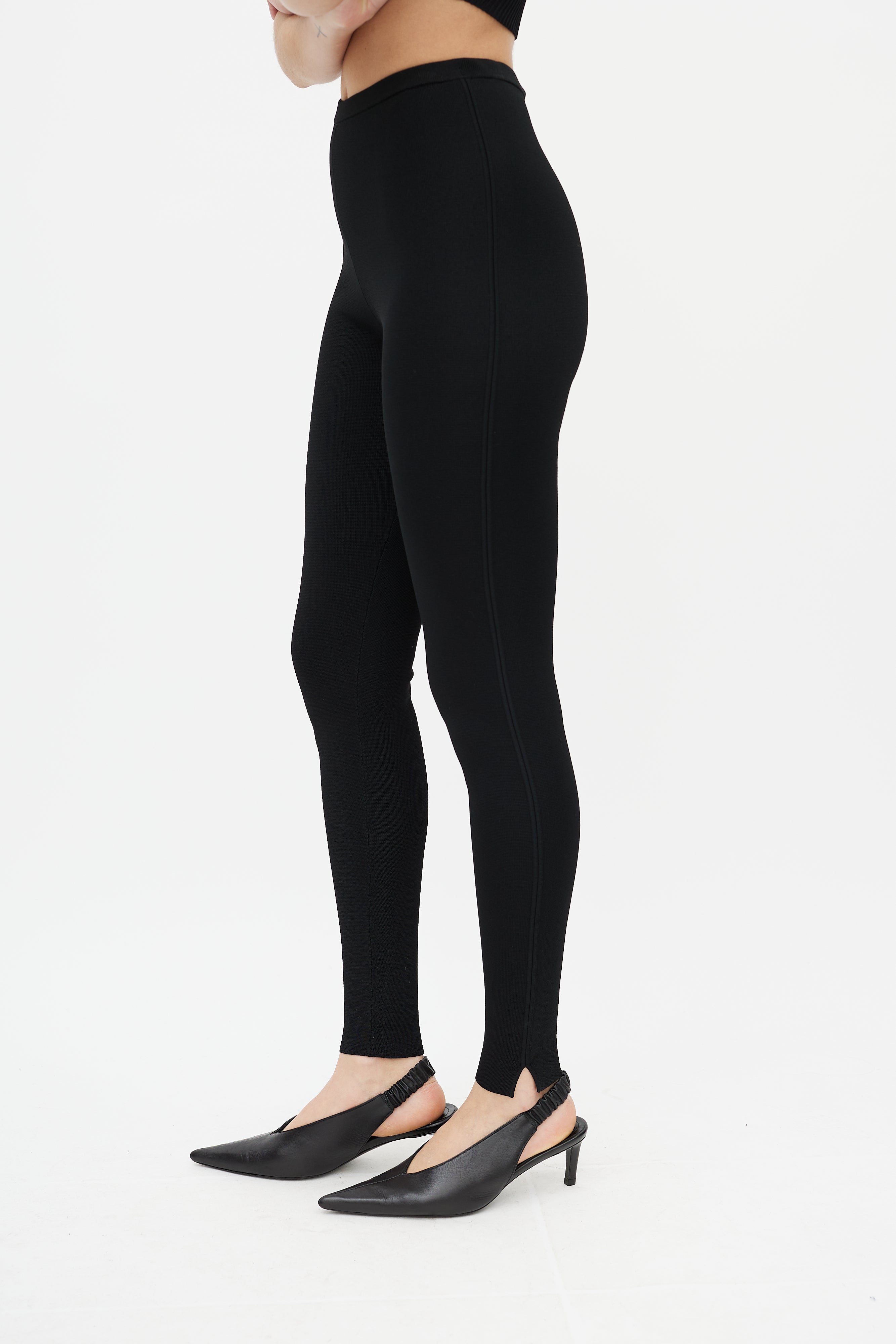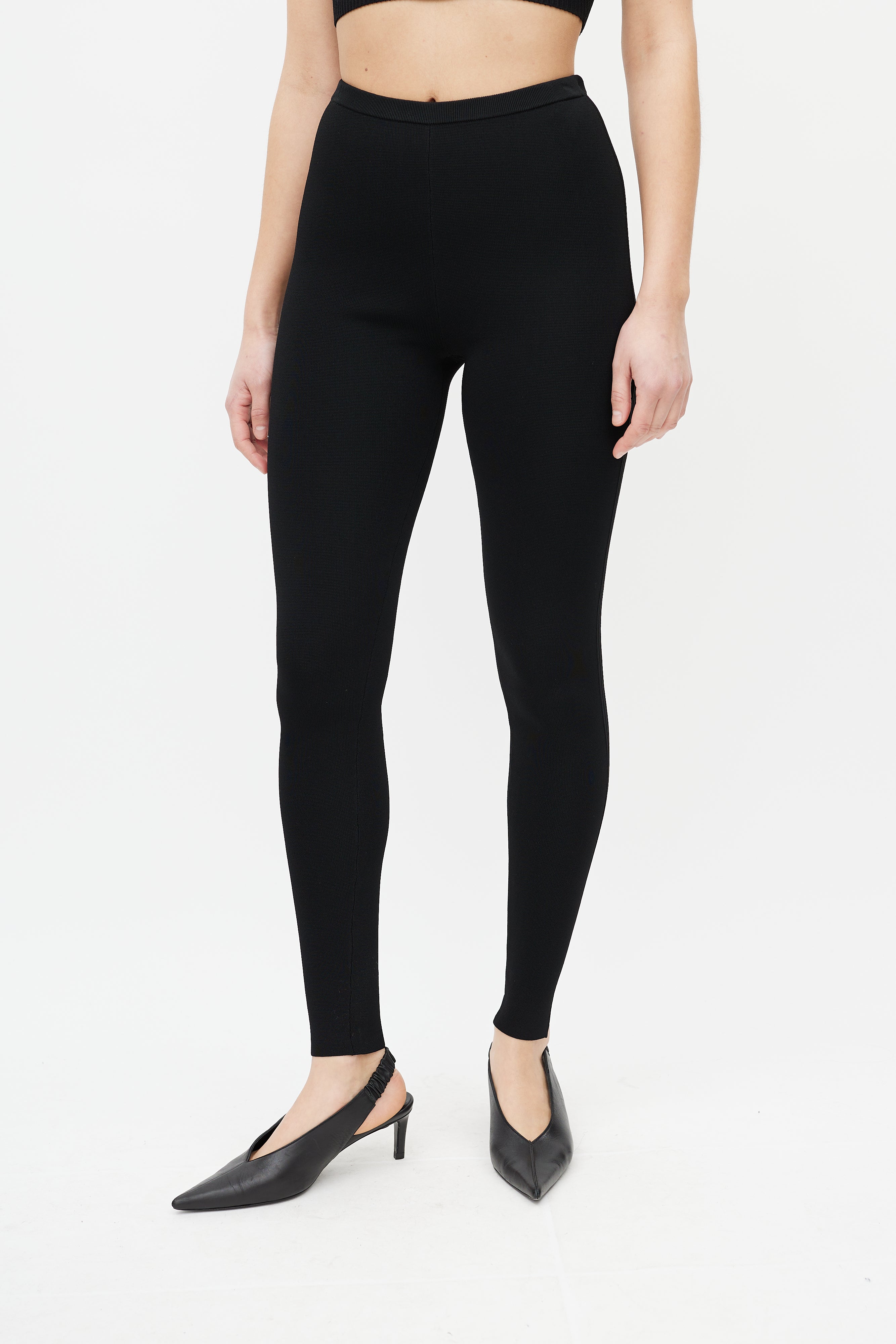 Pre-owned Totême black Compact Knit legging featuring ribbed knit, elasticized waist, and slim leg.