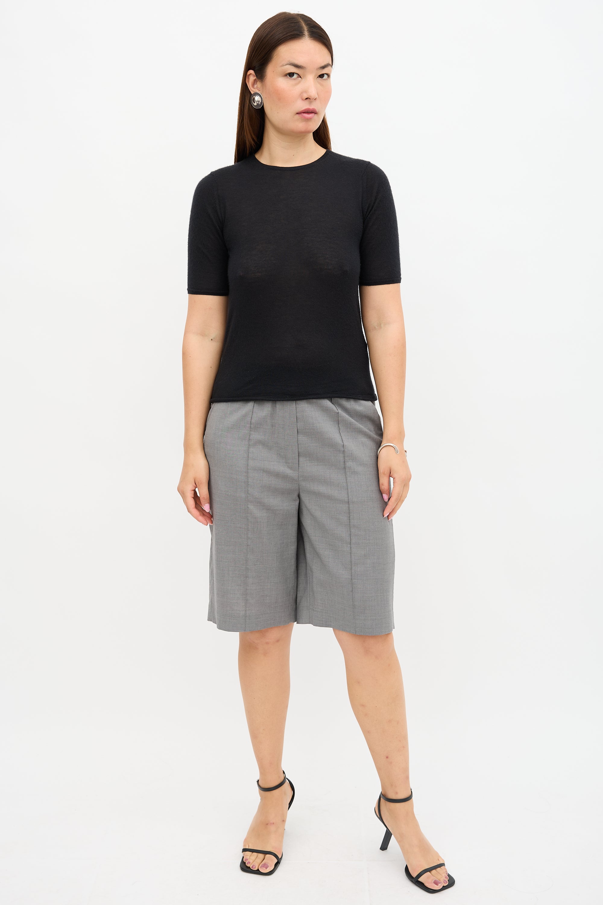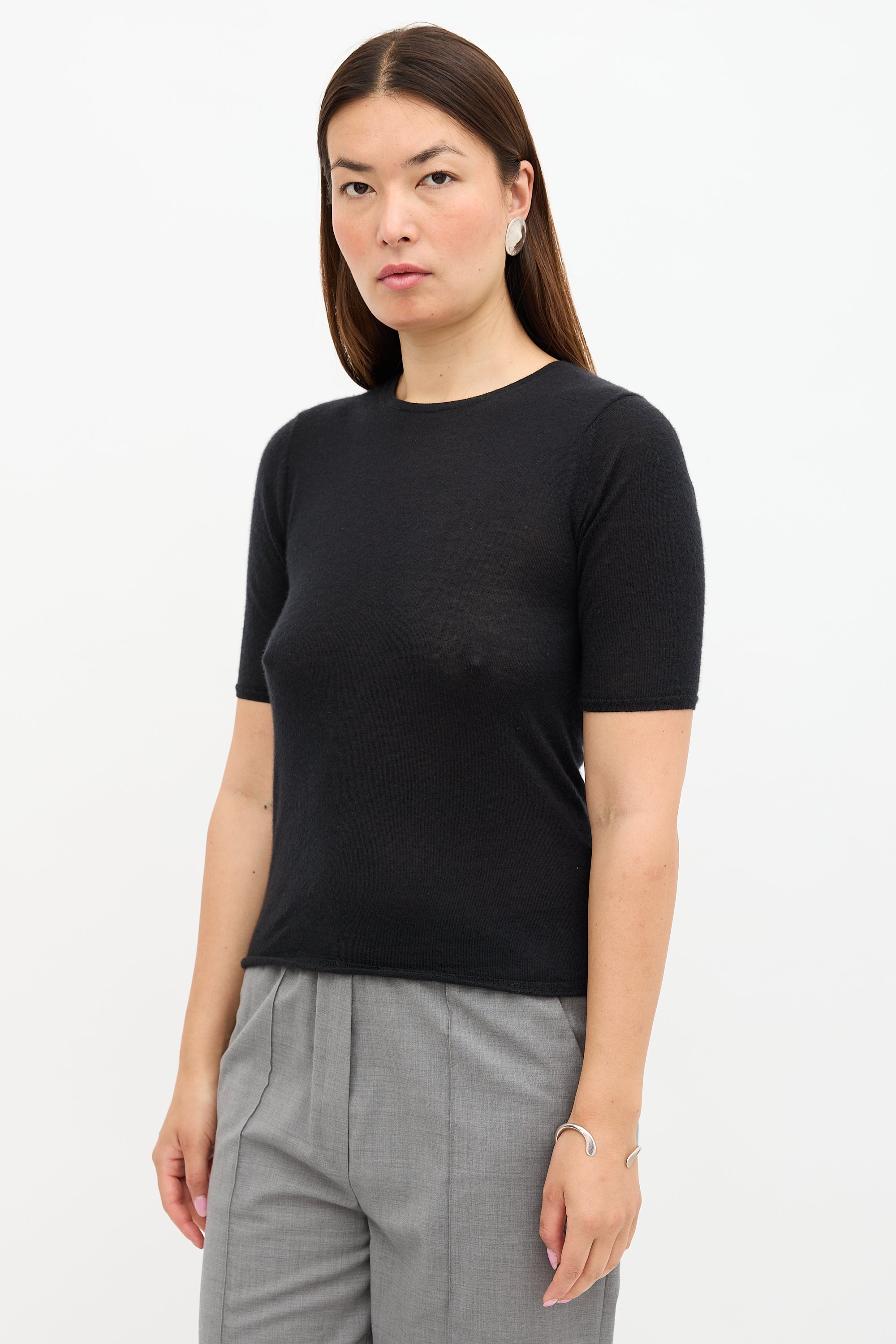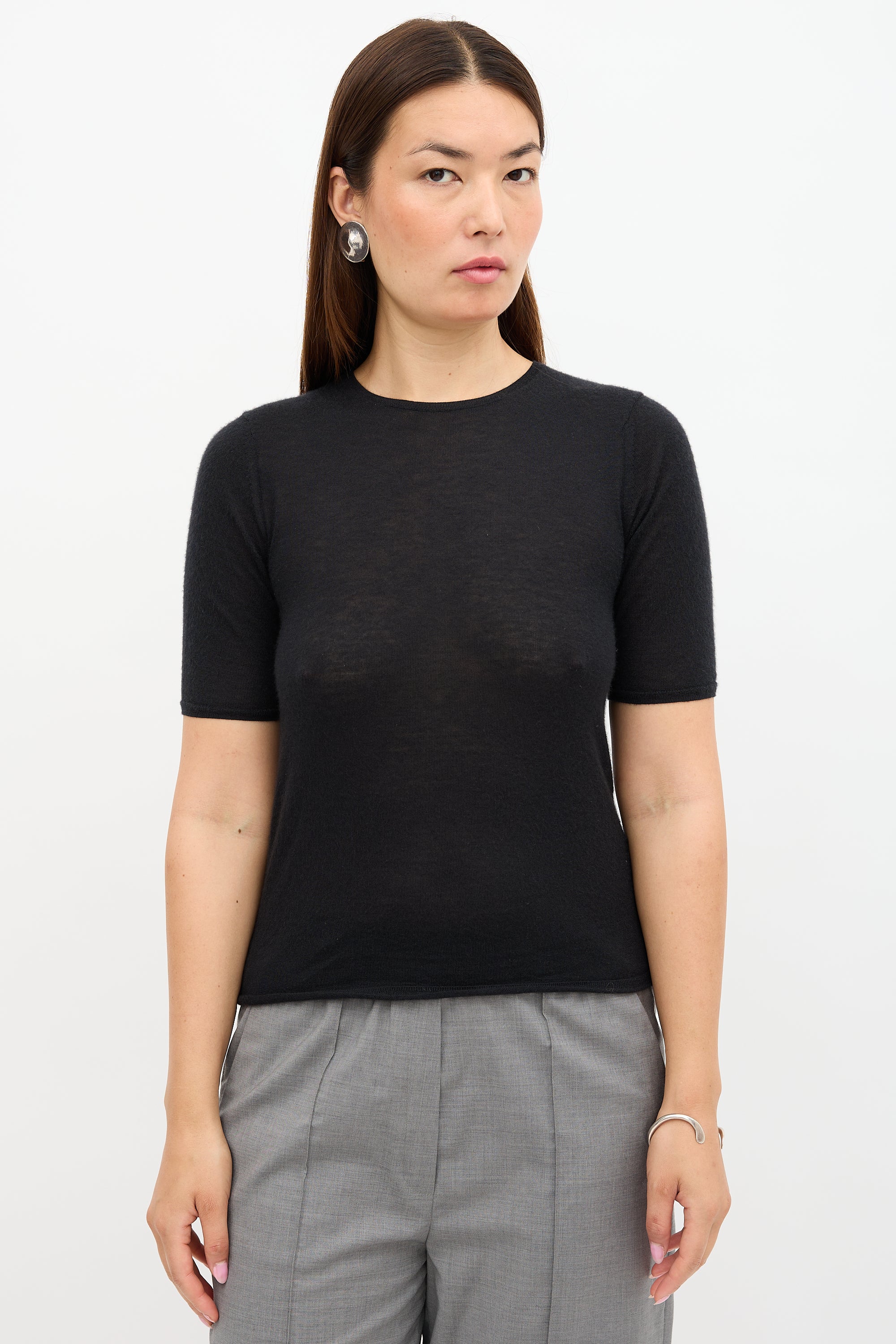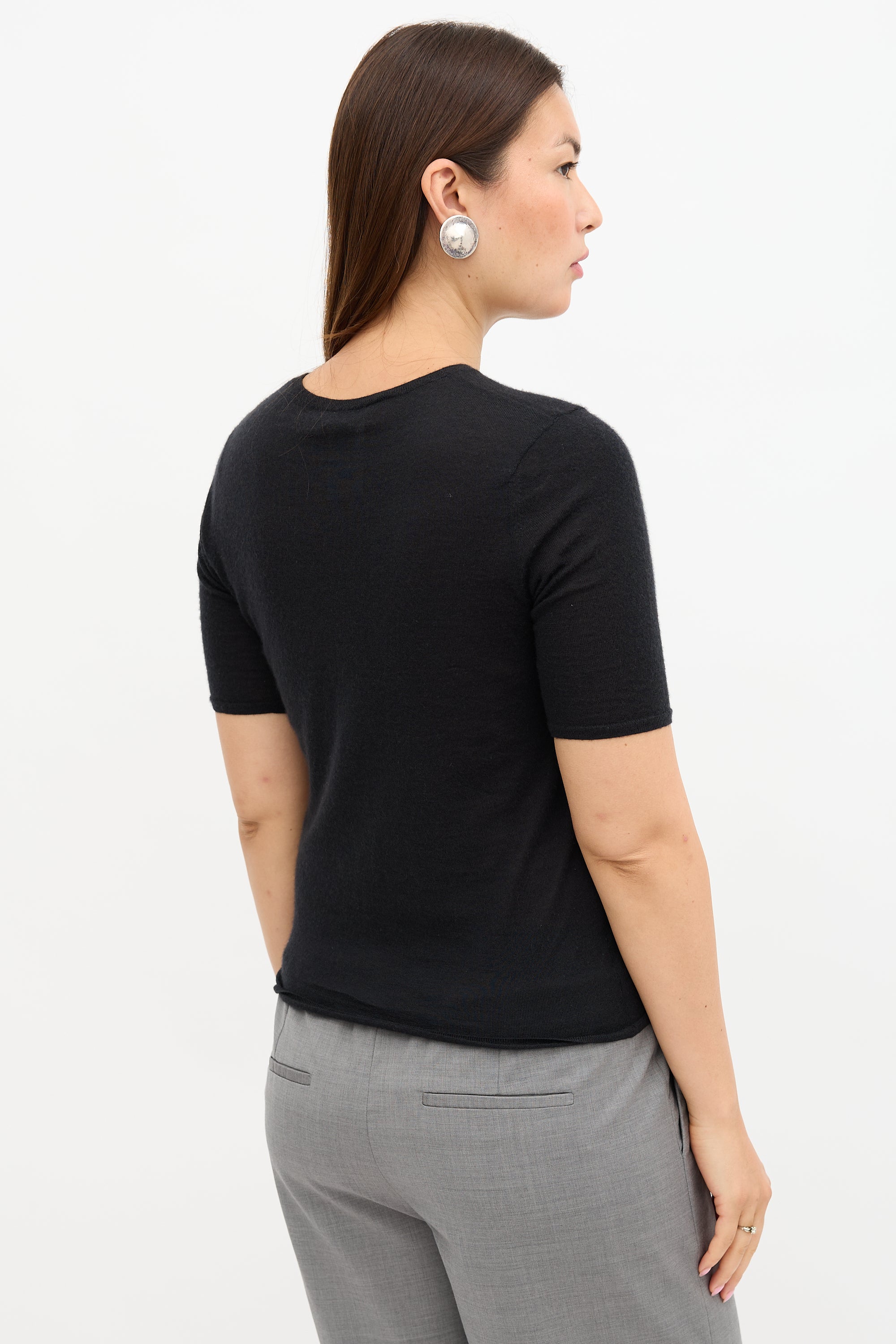 Pre-owned Toteme black cashmere T-shirt featuring a round neckline and a ribbed hem and cuffs.