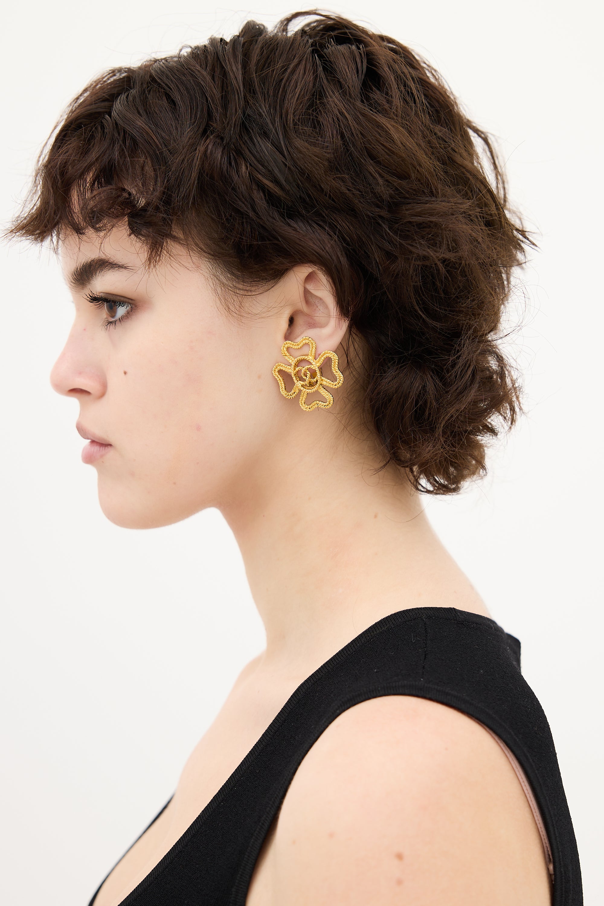 Chanel 1990s Gold Rope CC Clover Clip On Earrings