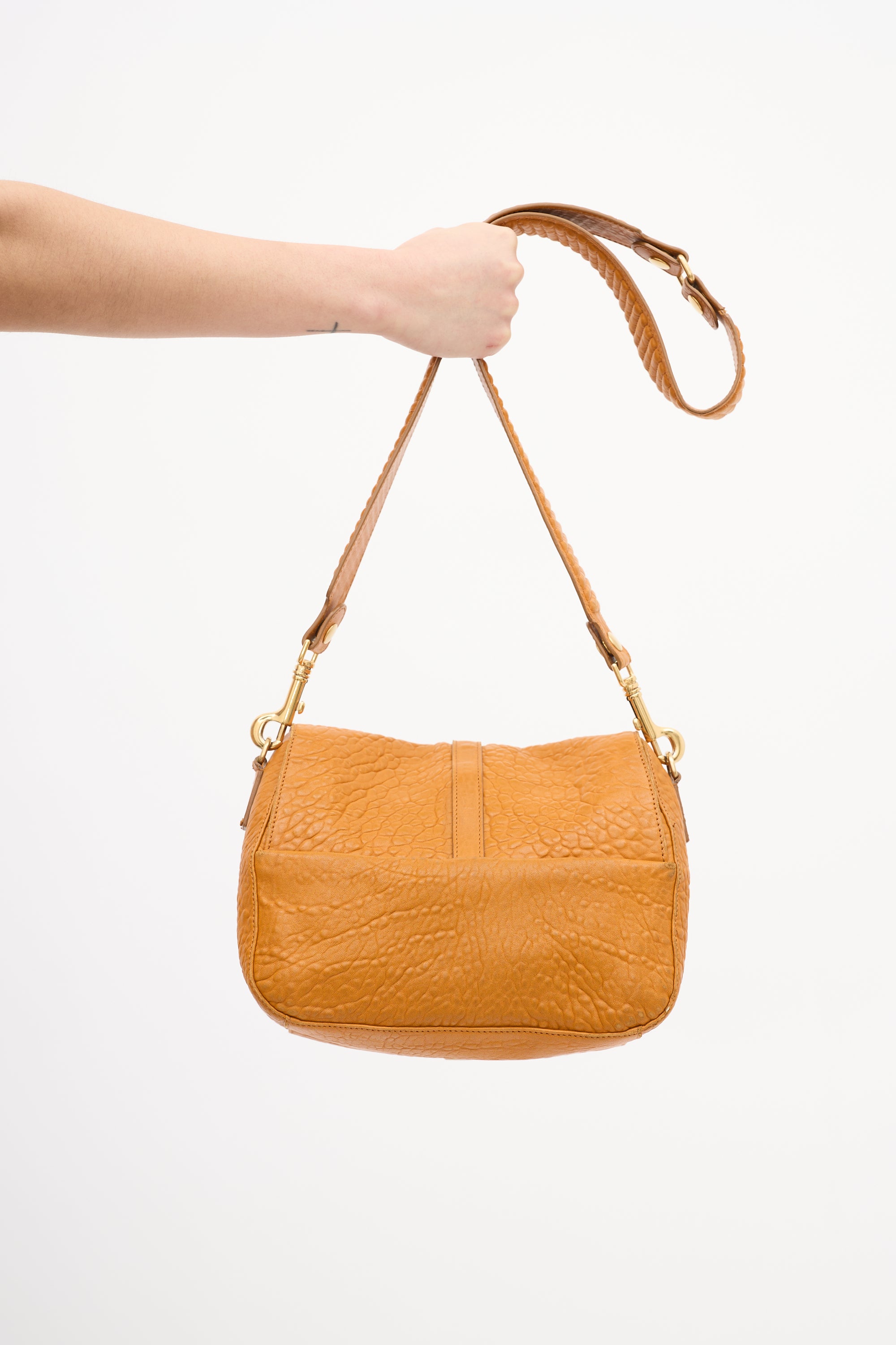 2011 Orange Leather Flap Shoulder Bag