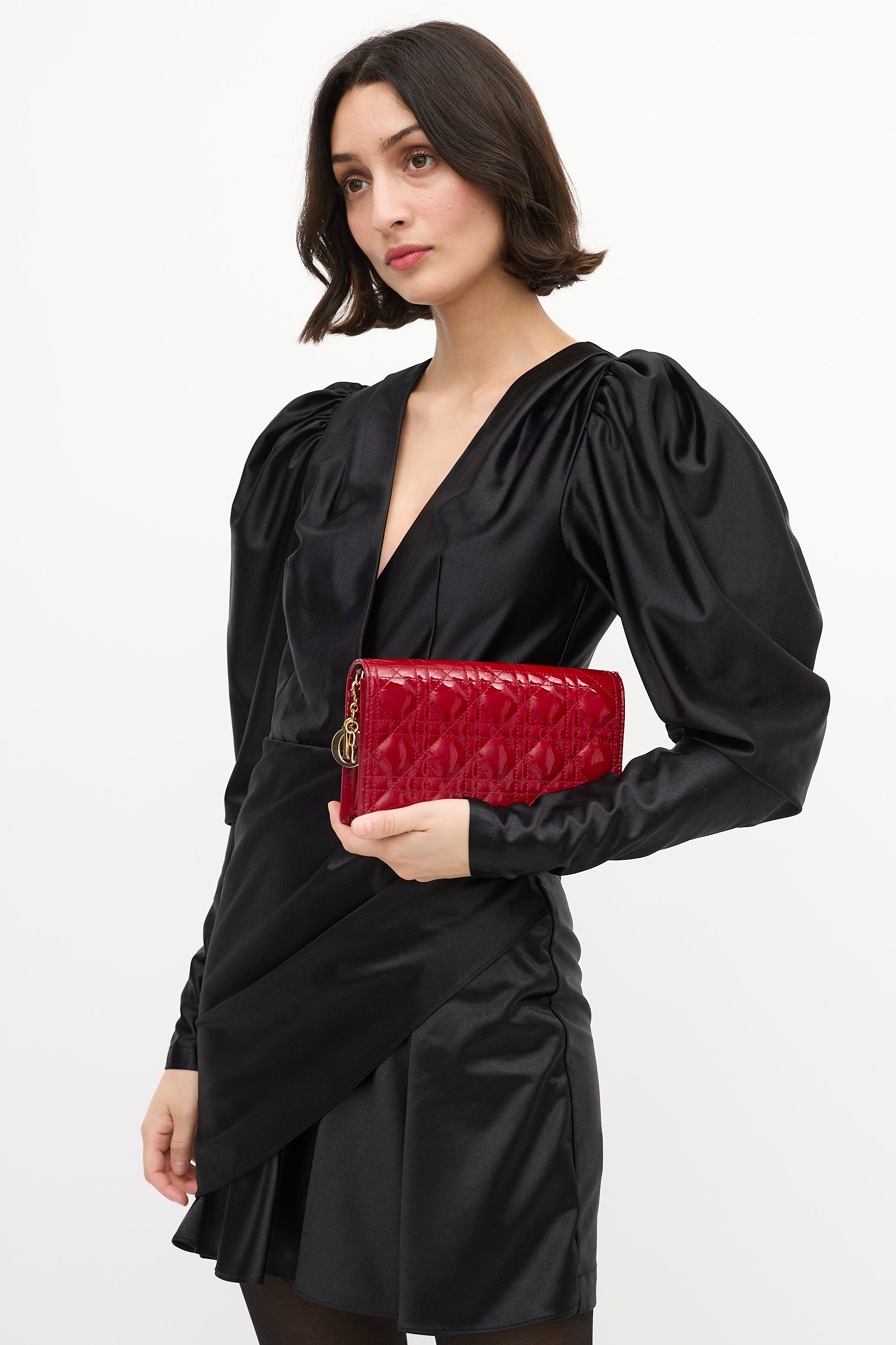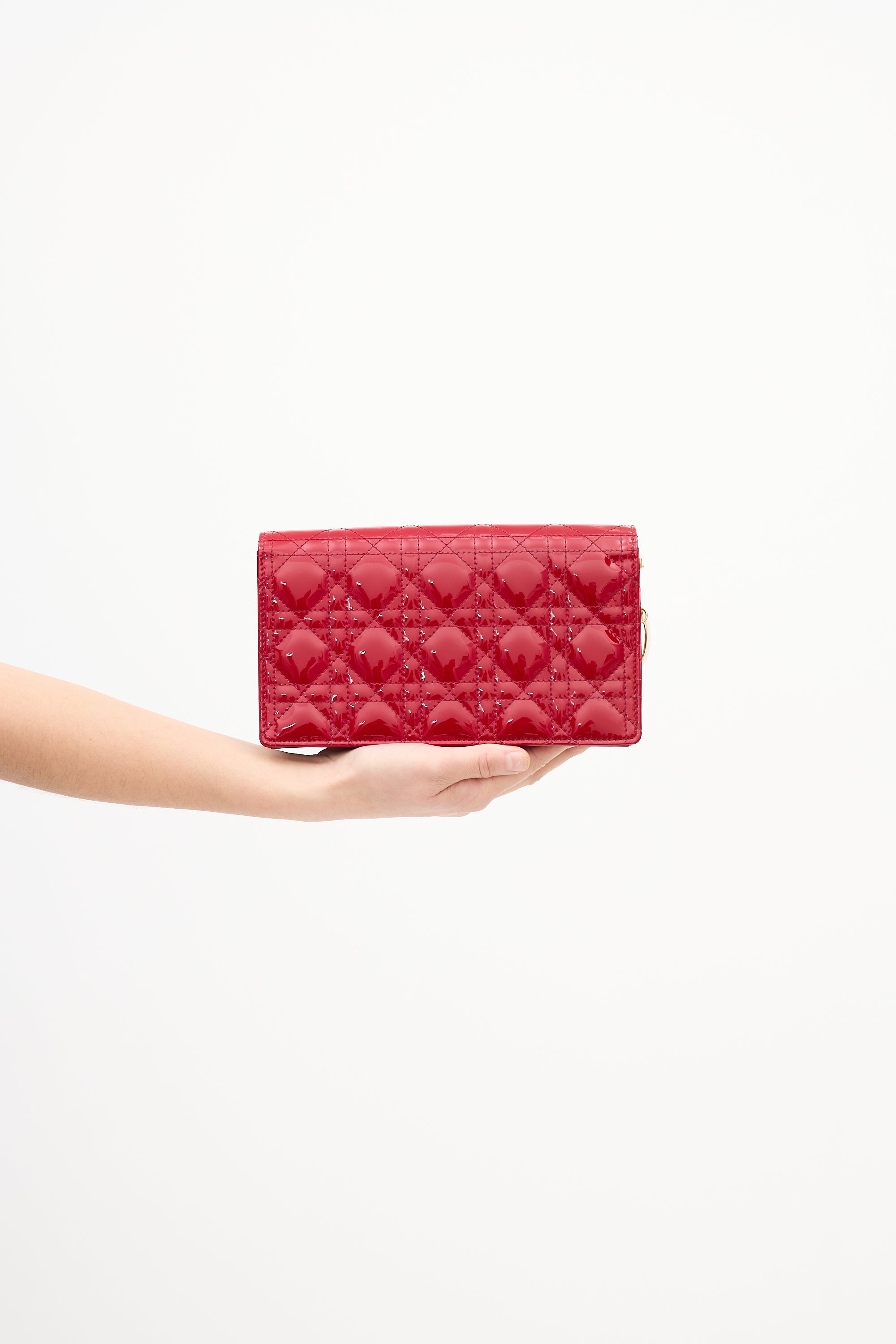 Red Cannage Patent Leather Lady Dior Pouch