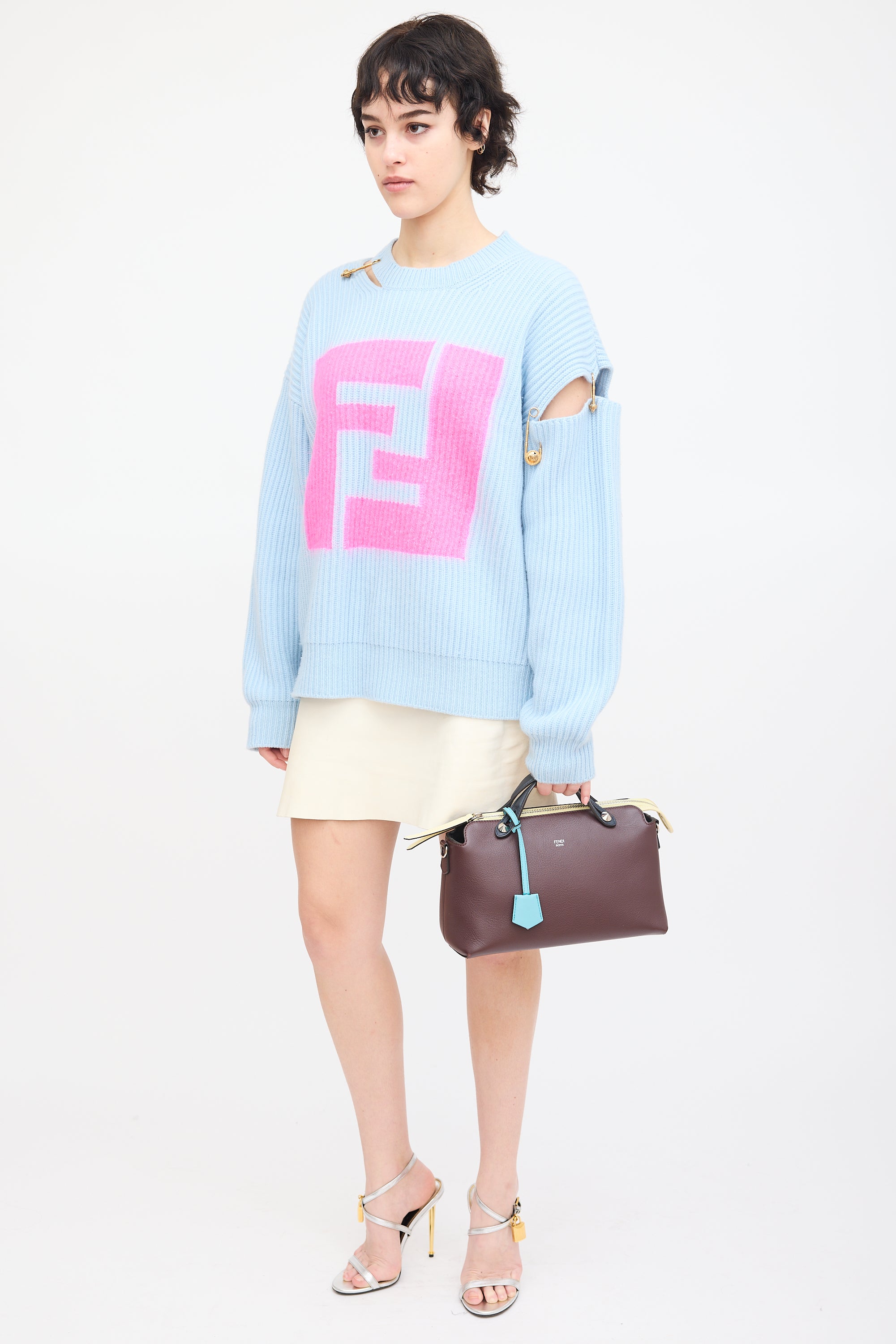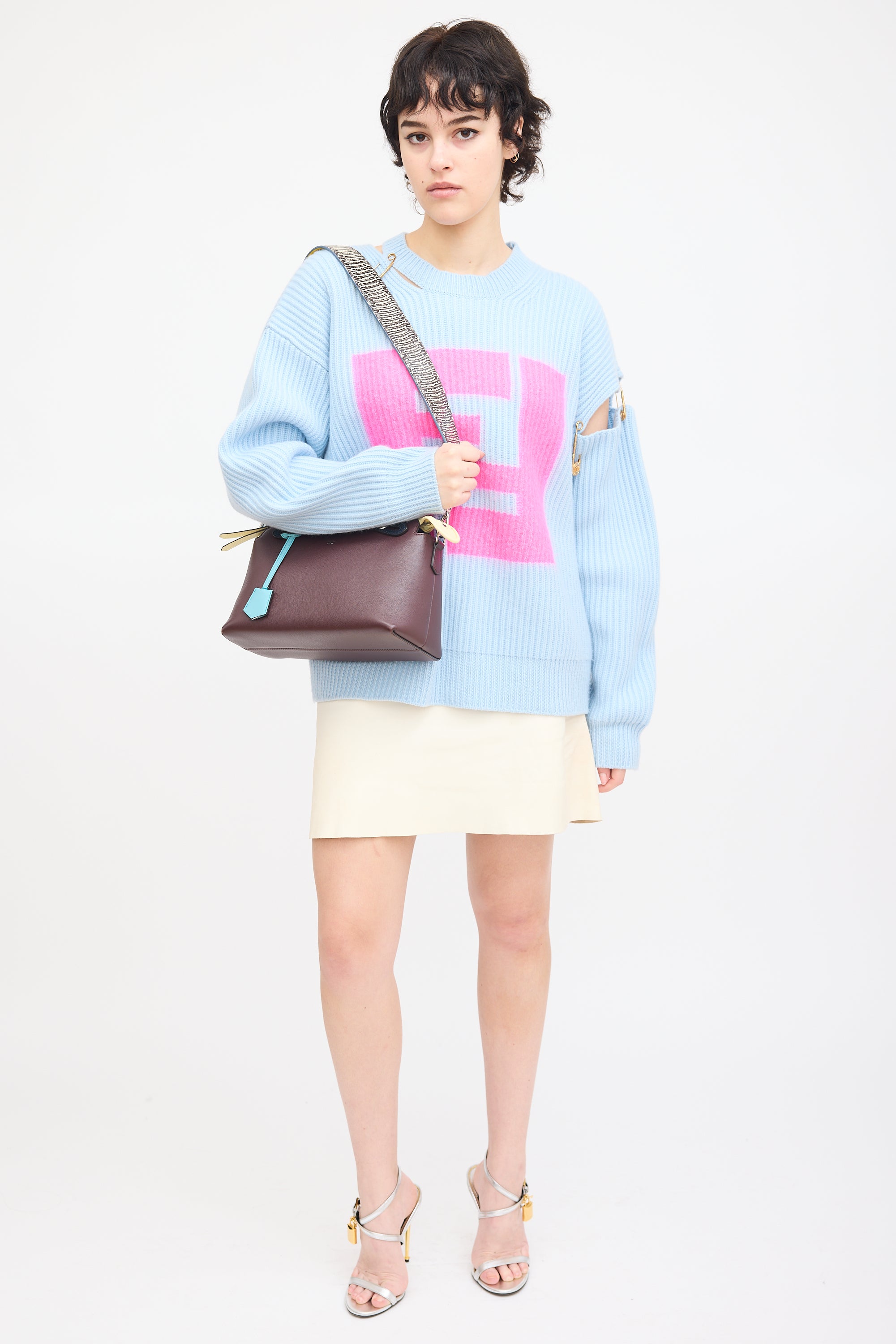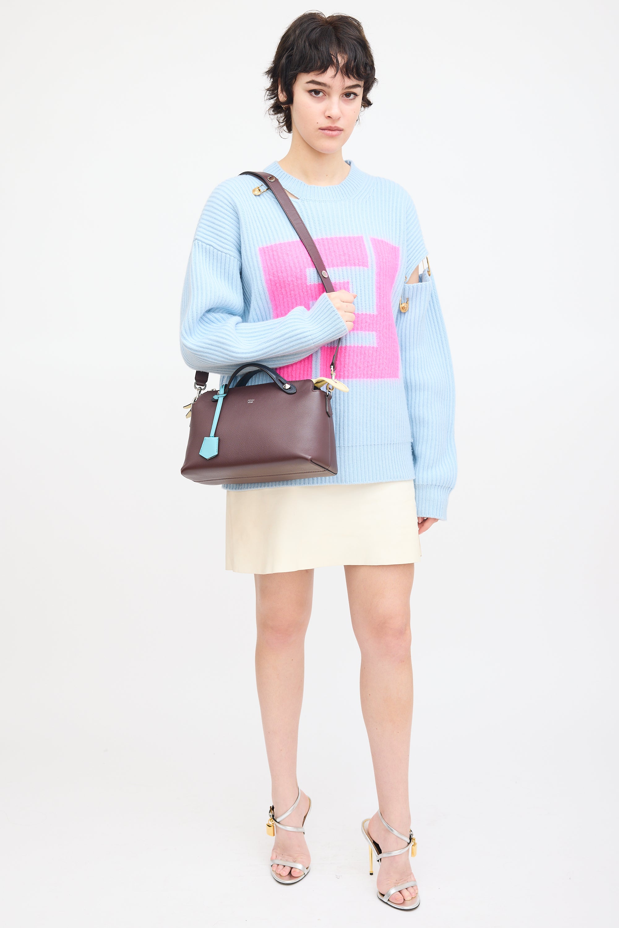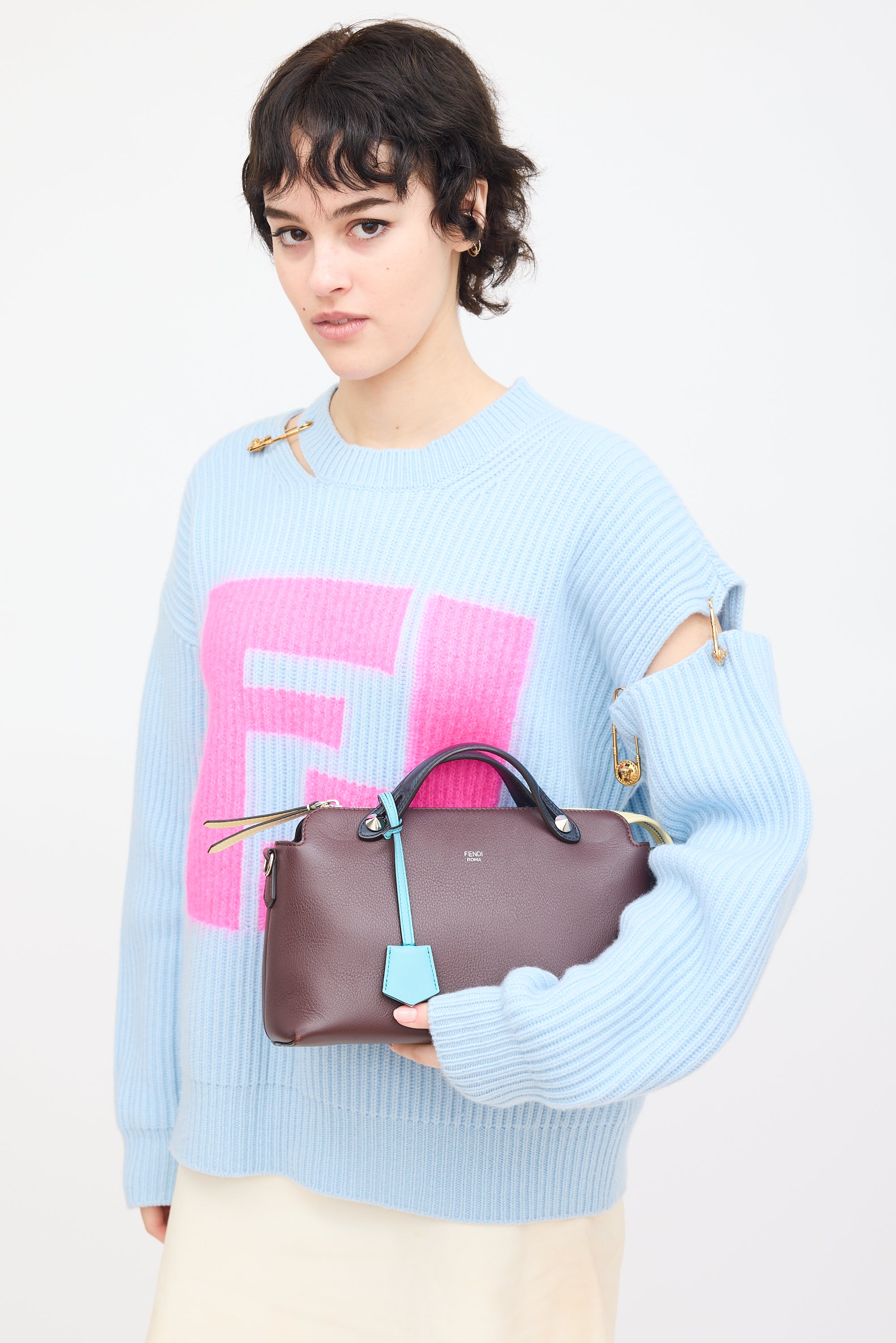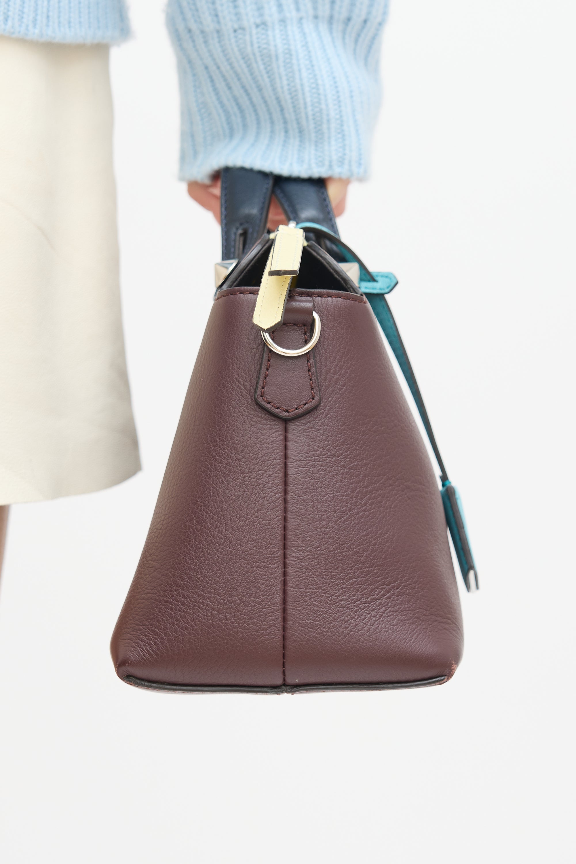 Pre-owned Fendi burgundy leather By The Way bag featuring dual top handles, removable clochette charm with logo plaque at handle, removable textured leather shoulder strap, removable and adjustable smooth leather shoulder strap, top zip closure, and two lined main compartments with zippered divider and two slip pockets. Comes with original dust bag and care guide.