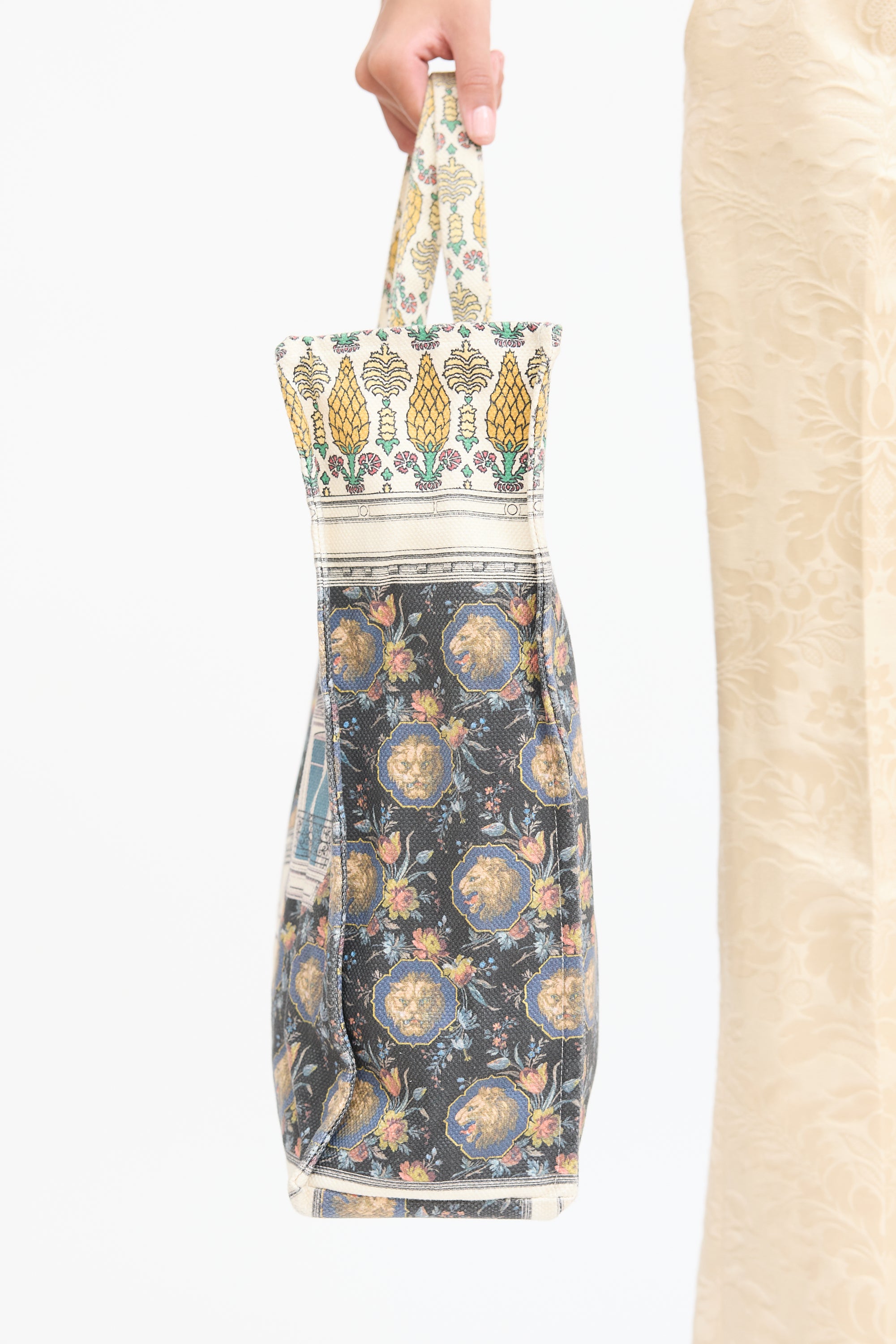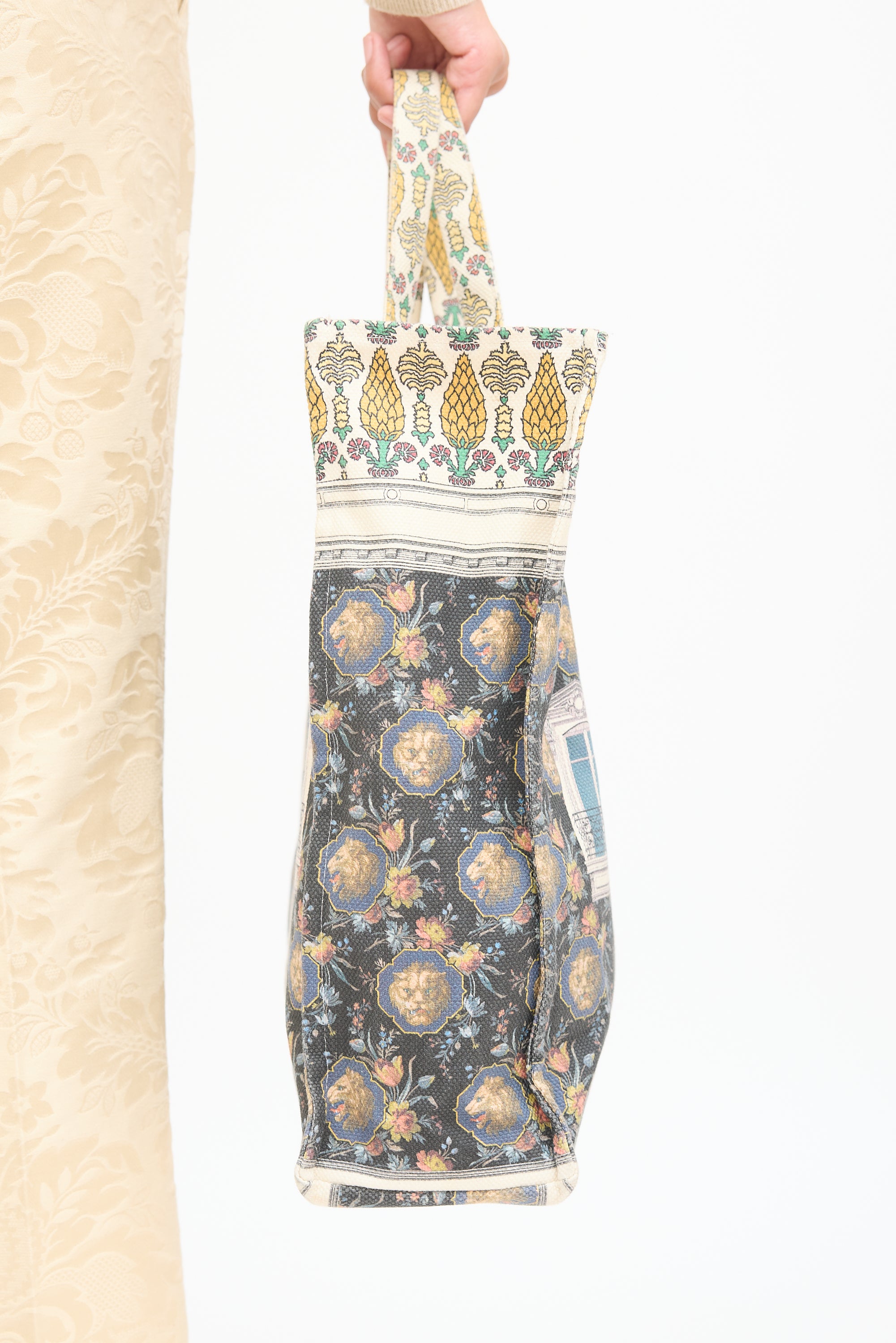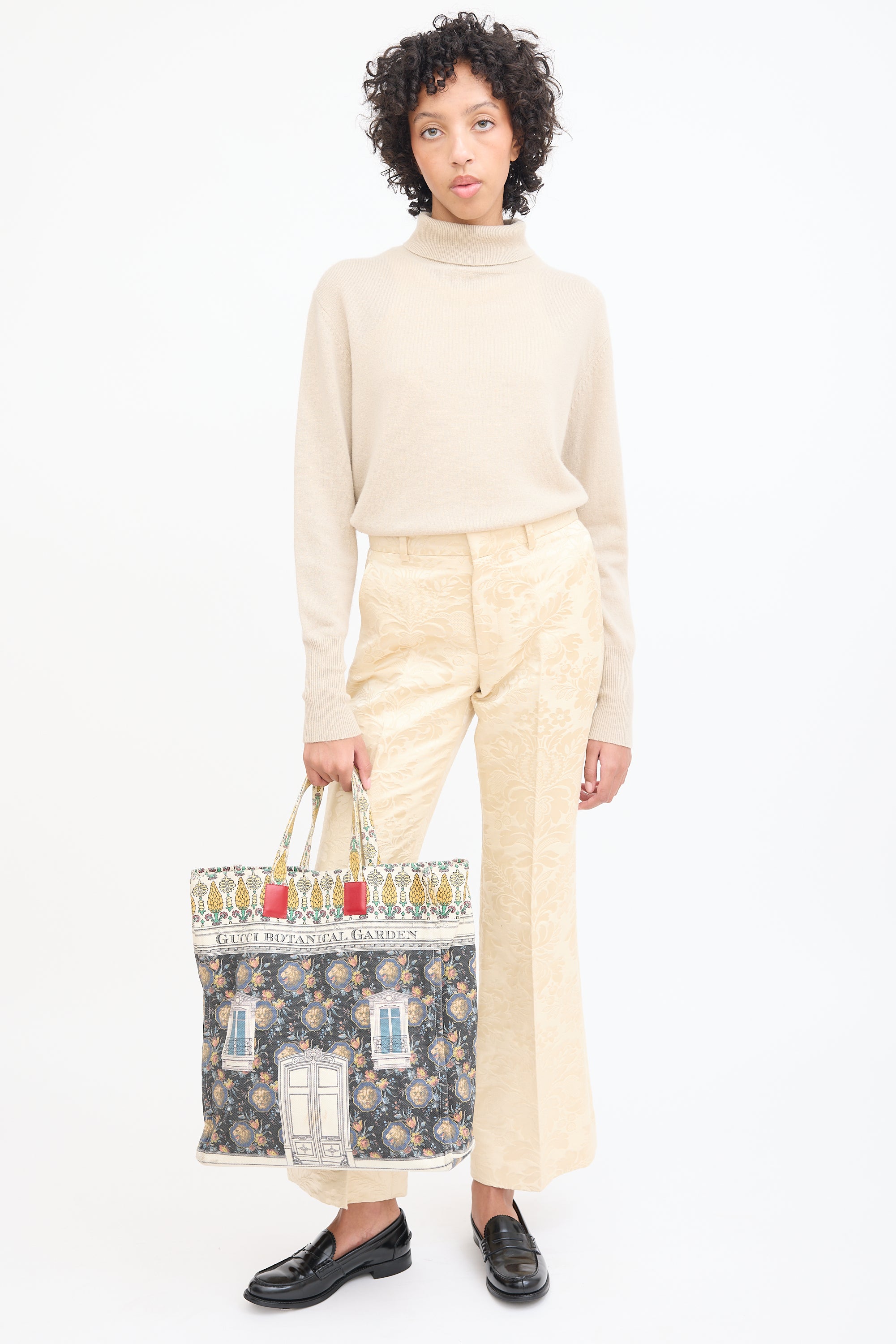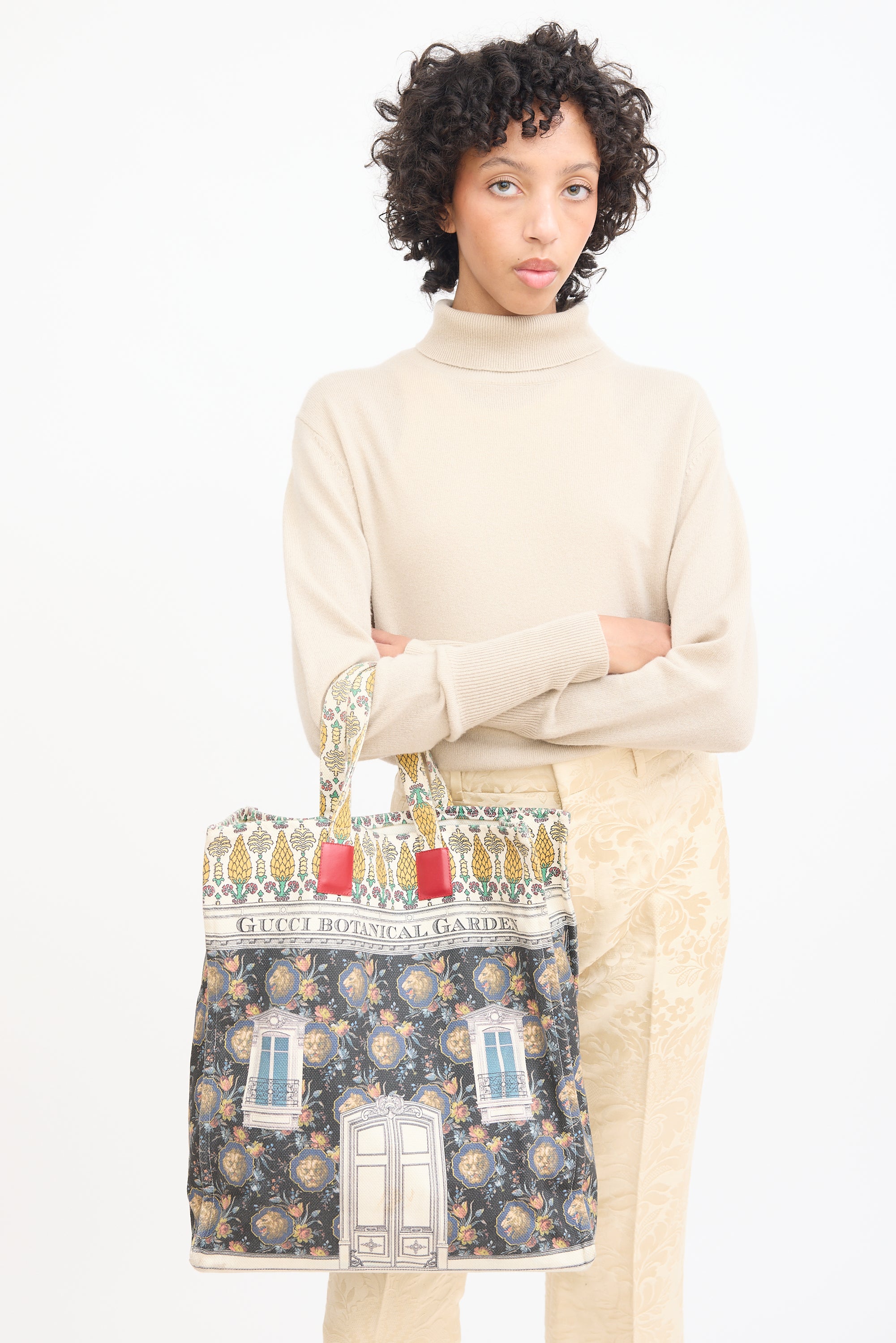 Pre-owned Gucci cream tote featuring a multicolour botanical garden pattern throughout, two top handles, and one main compartment.