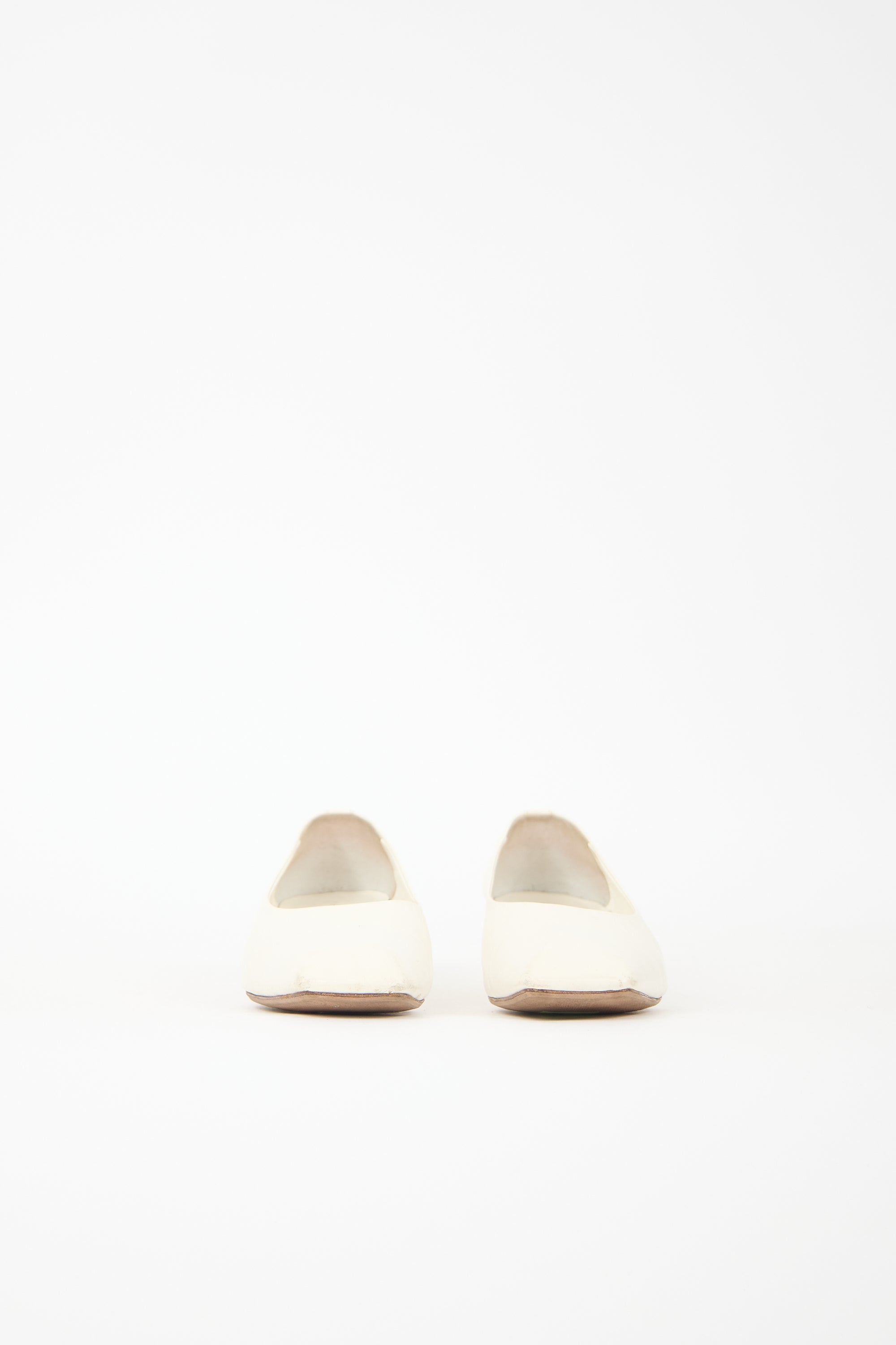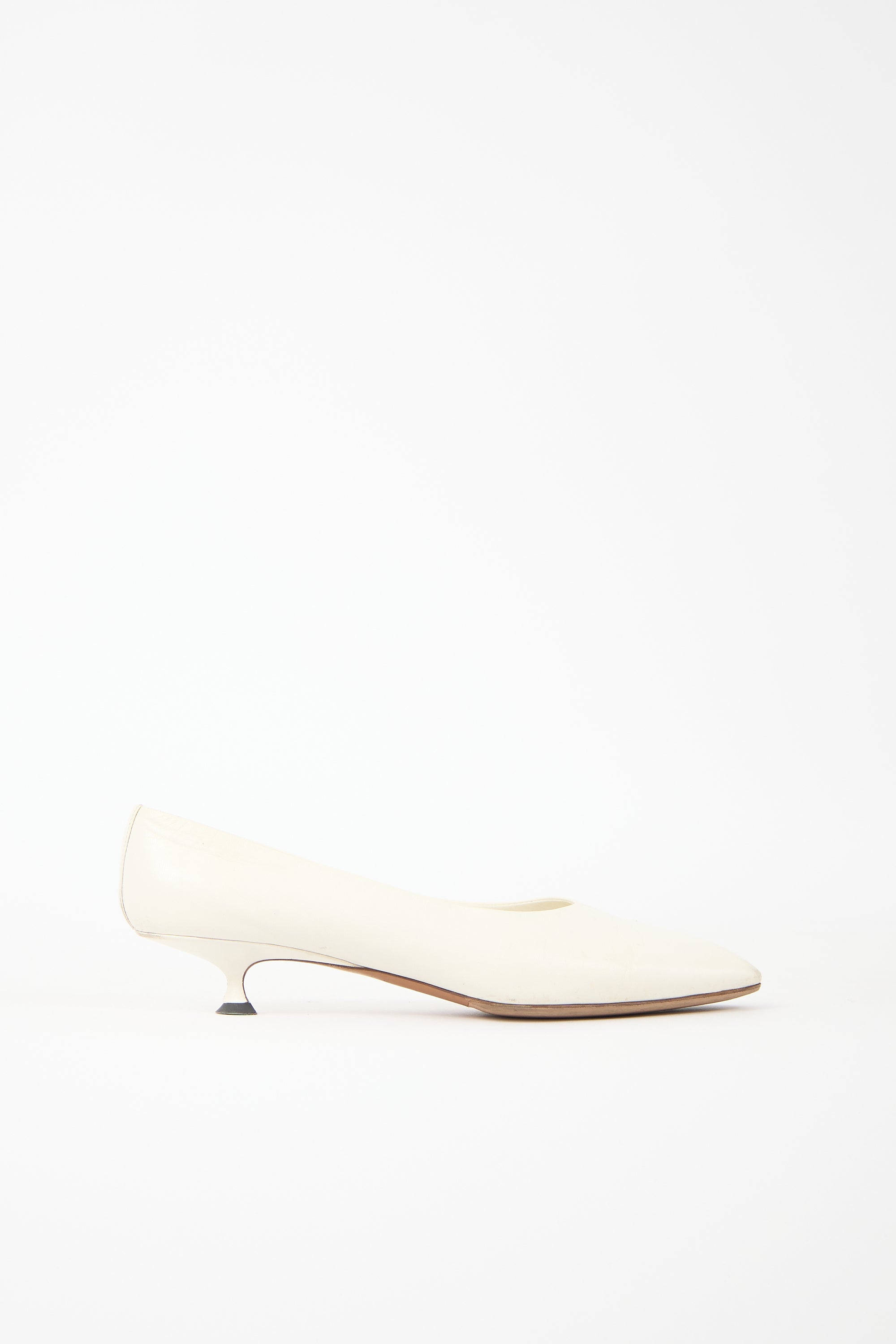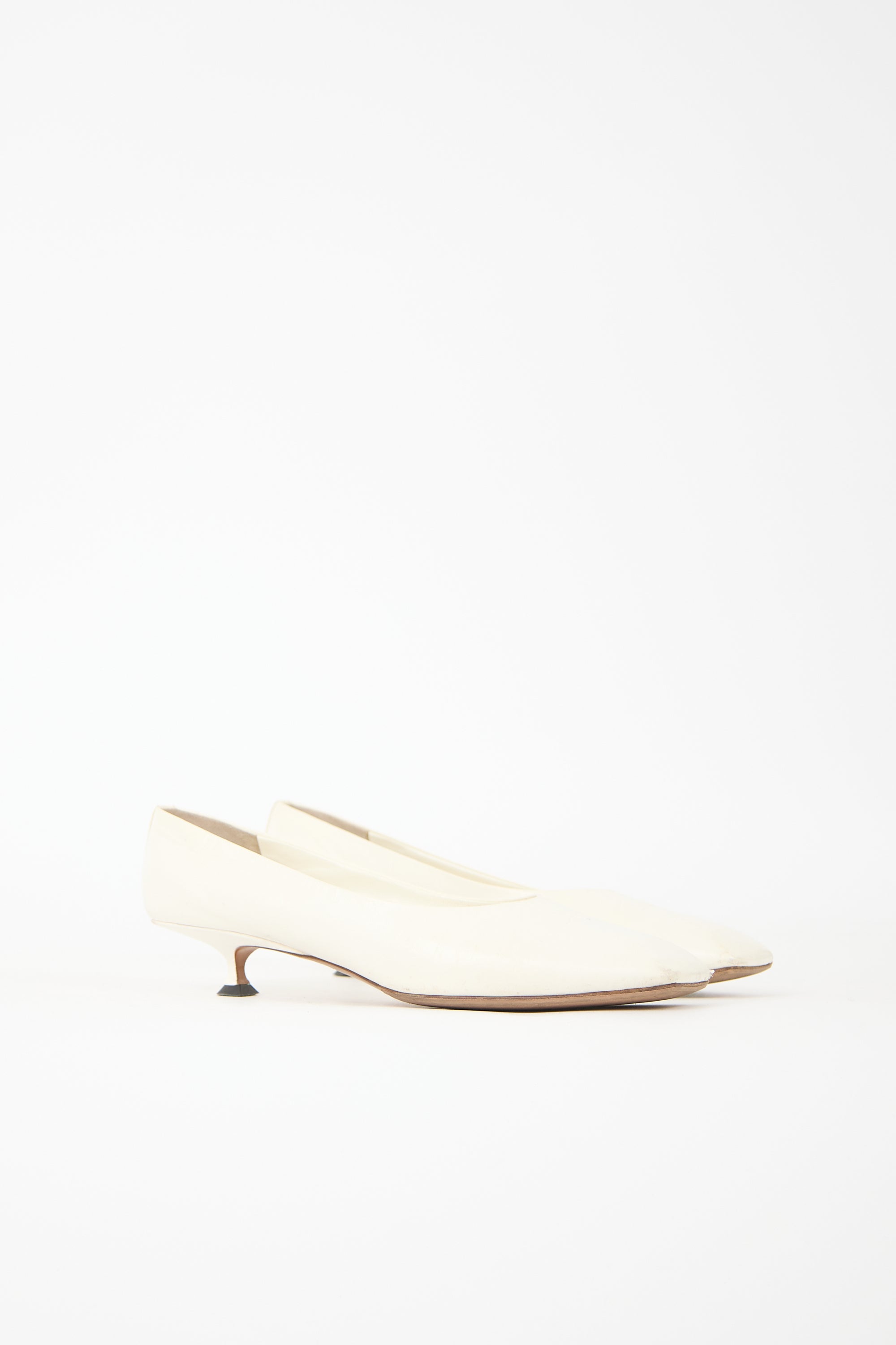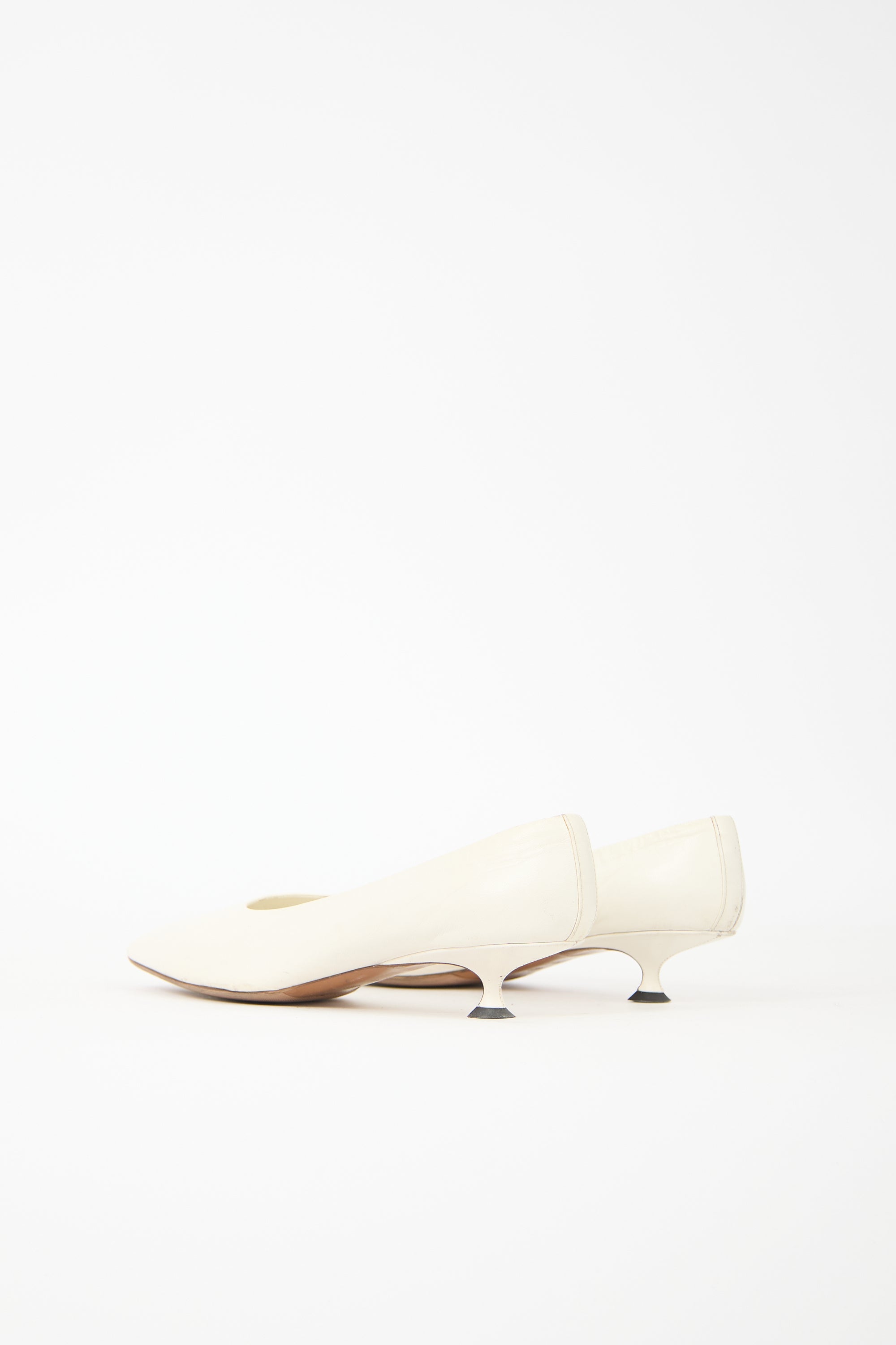 Pre-owned The Row cream leather pumps featuring square toe and covered kitten heel.