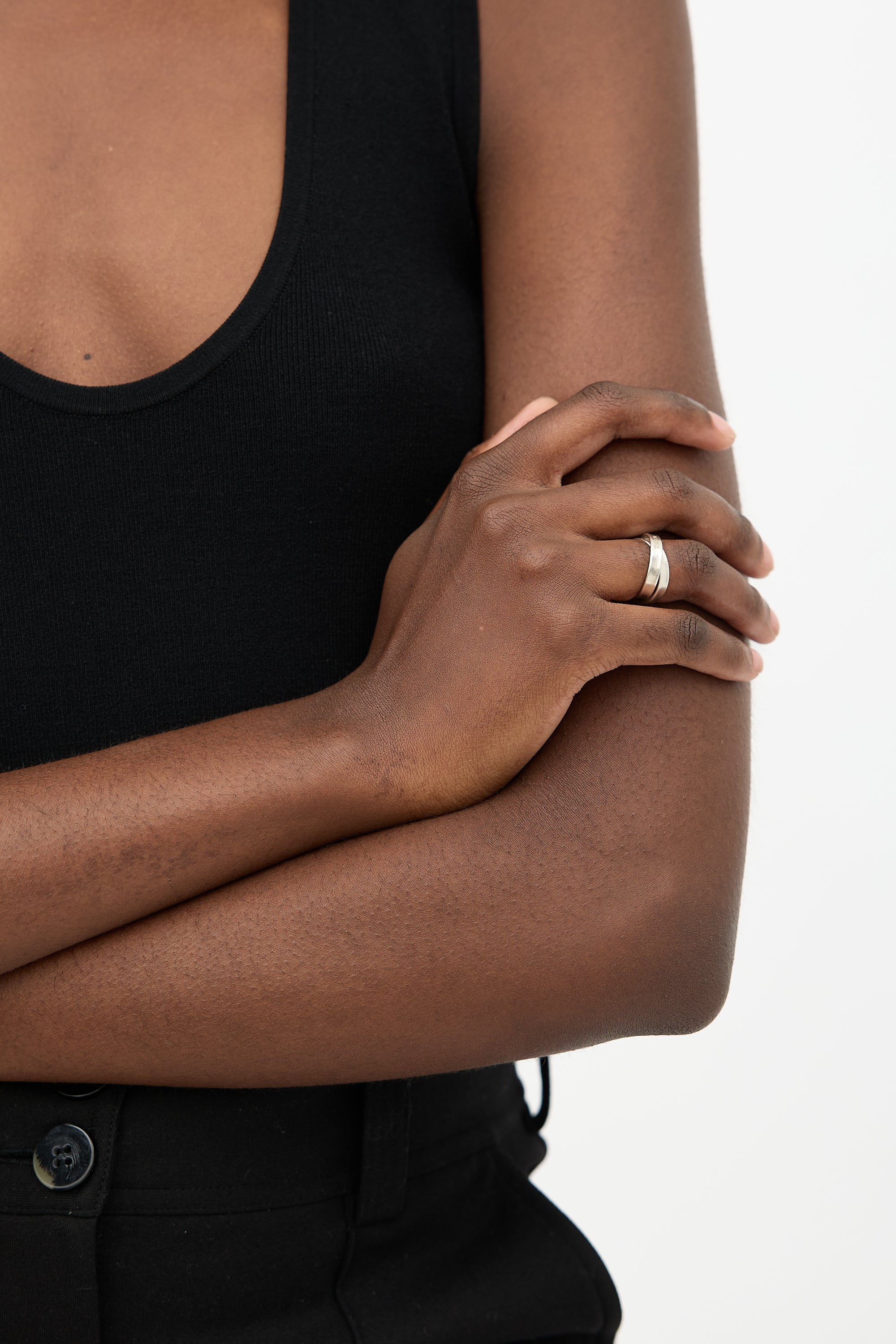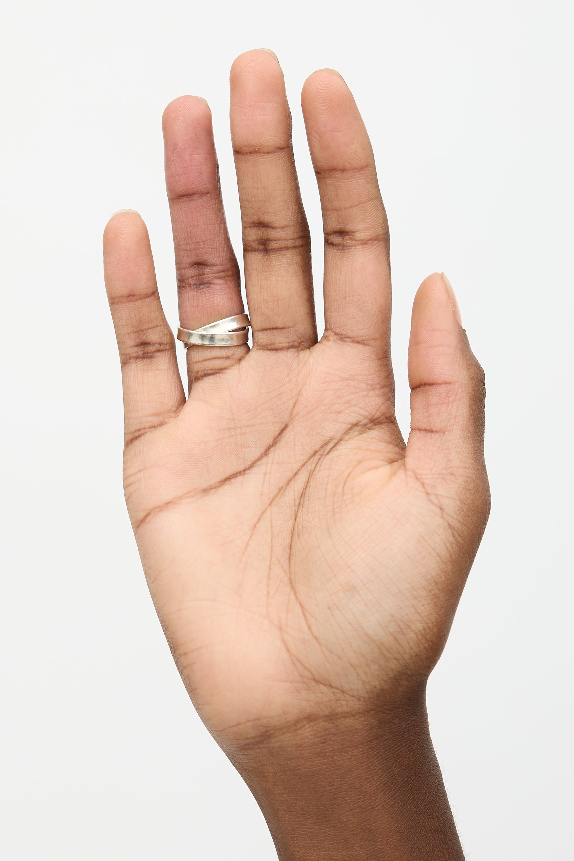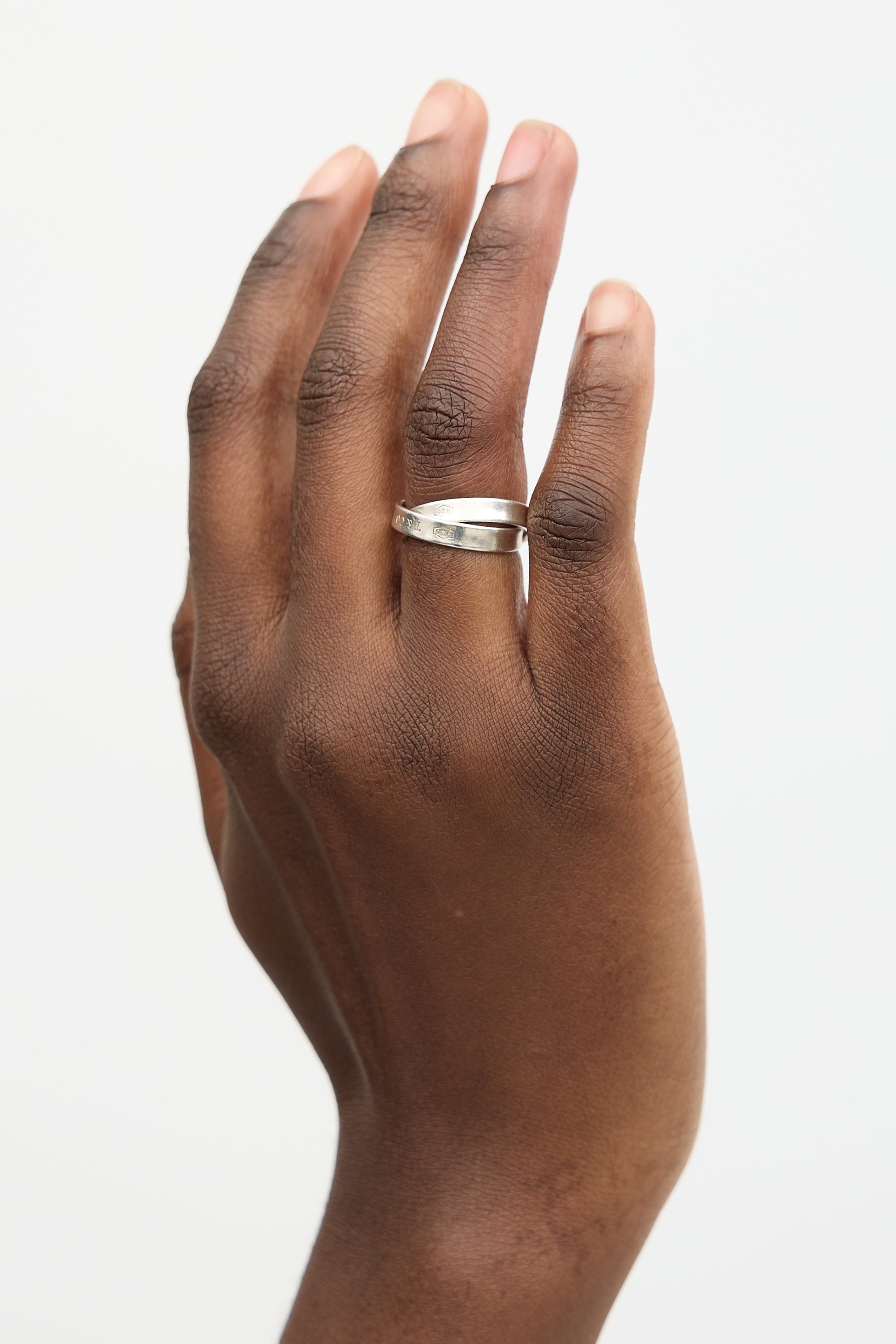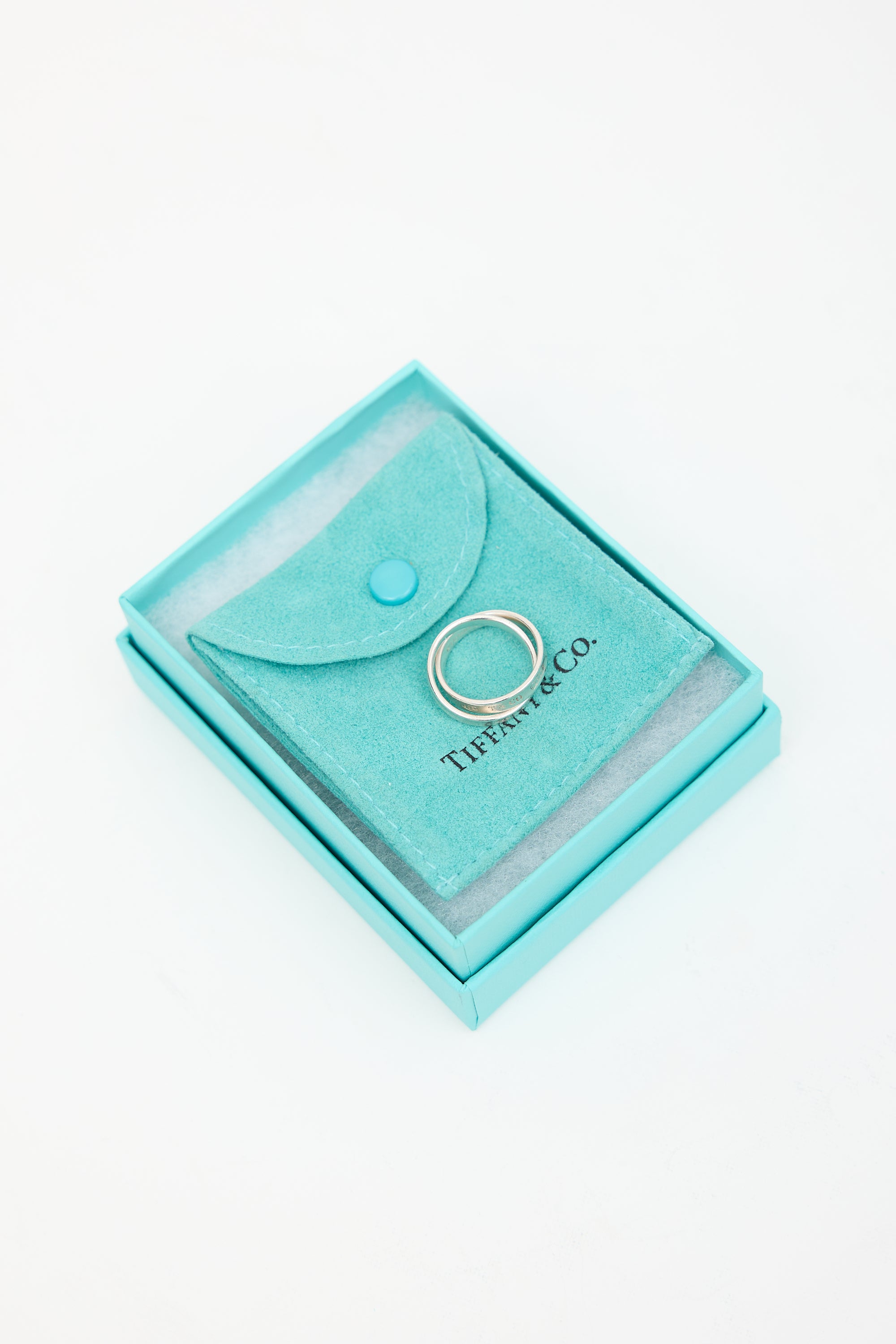 Pre-owned Tiffany & Co. 1837 sterling silver Interlocking Circles ring featuring and interlocked design and logo debossed exterior. Comes with original dust bag and box.