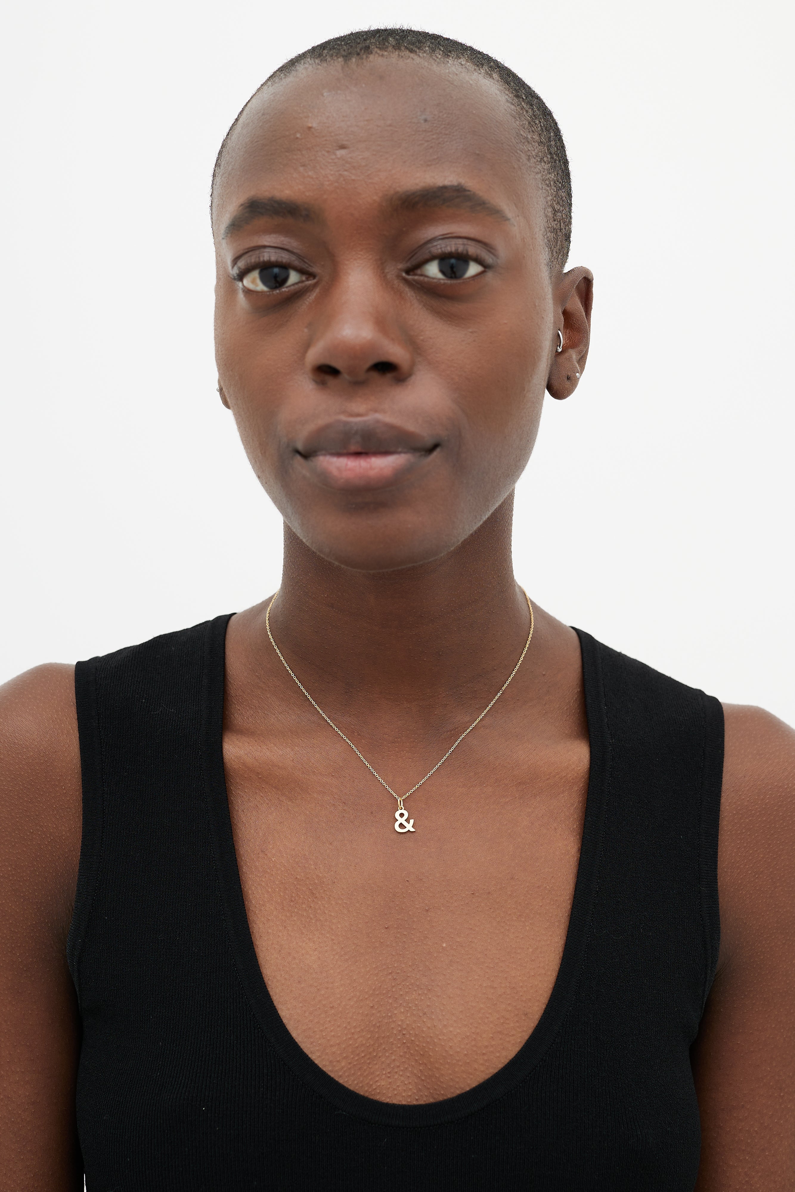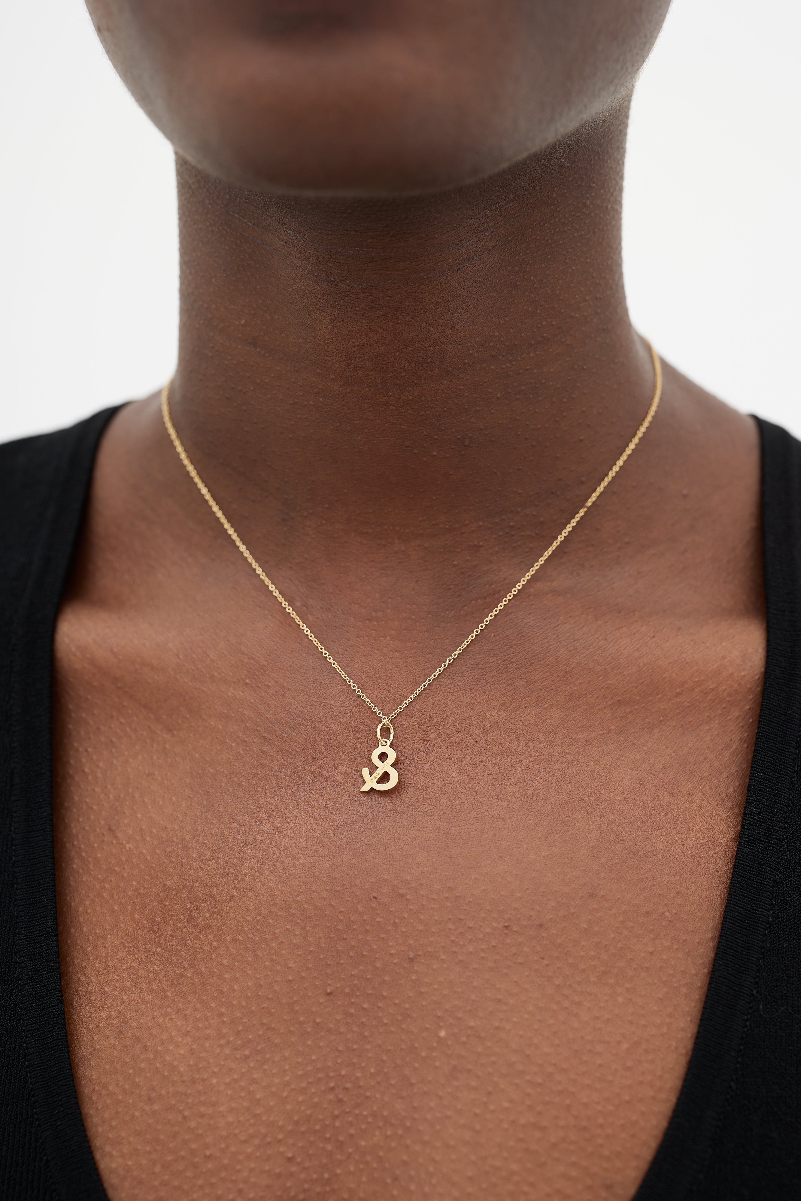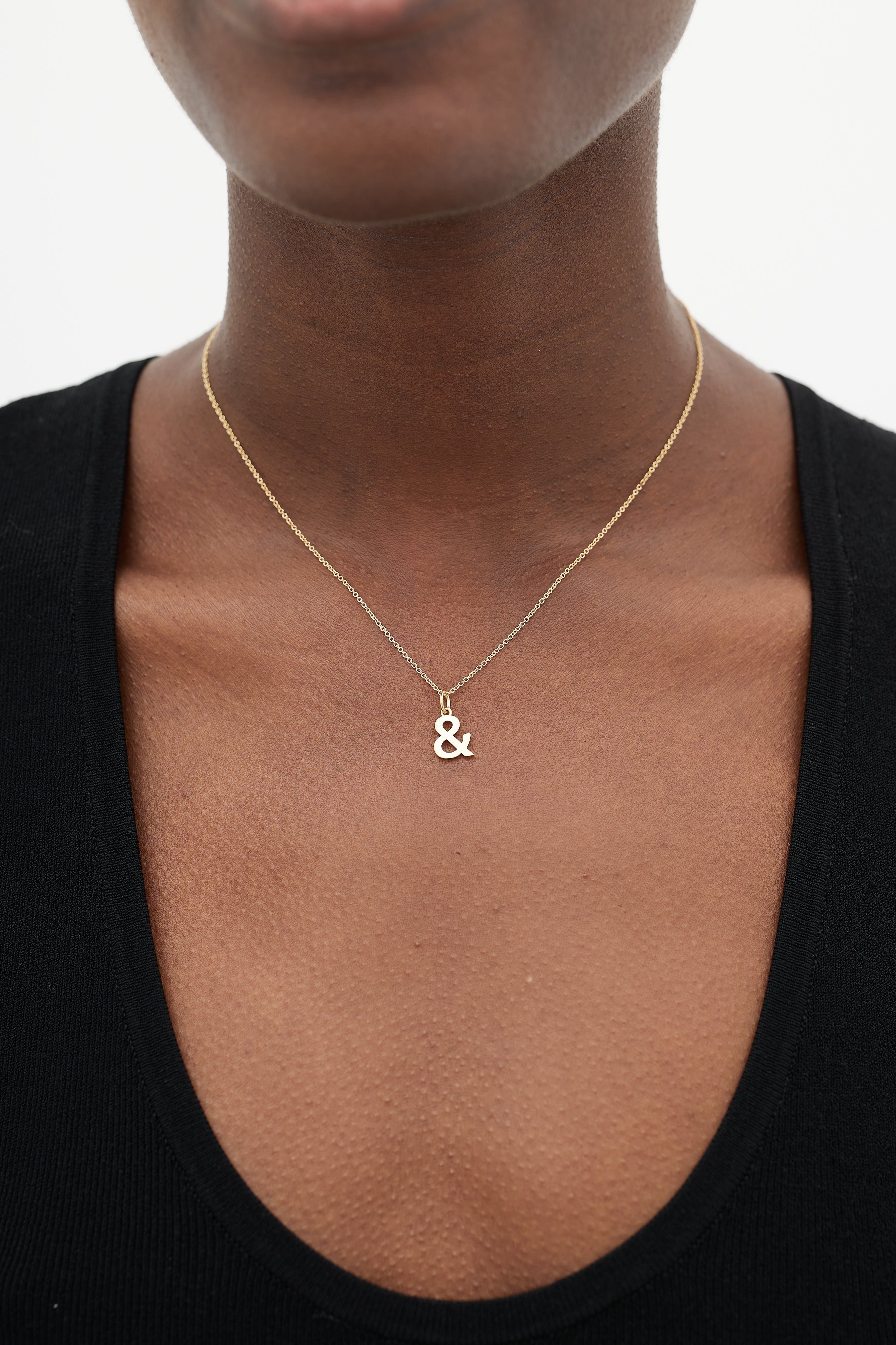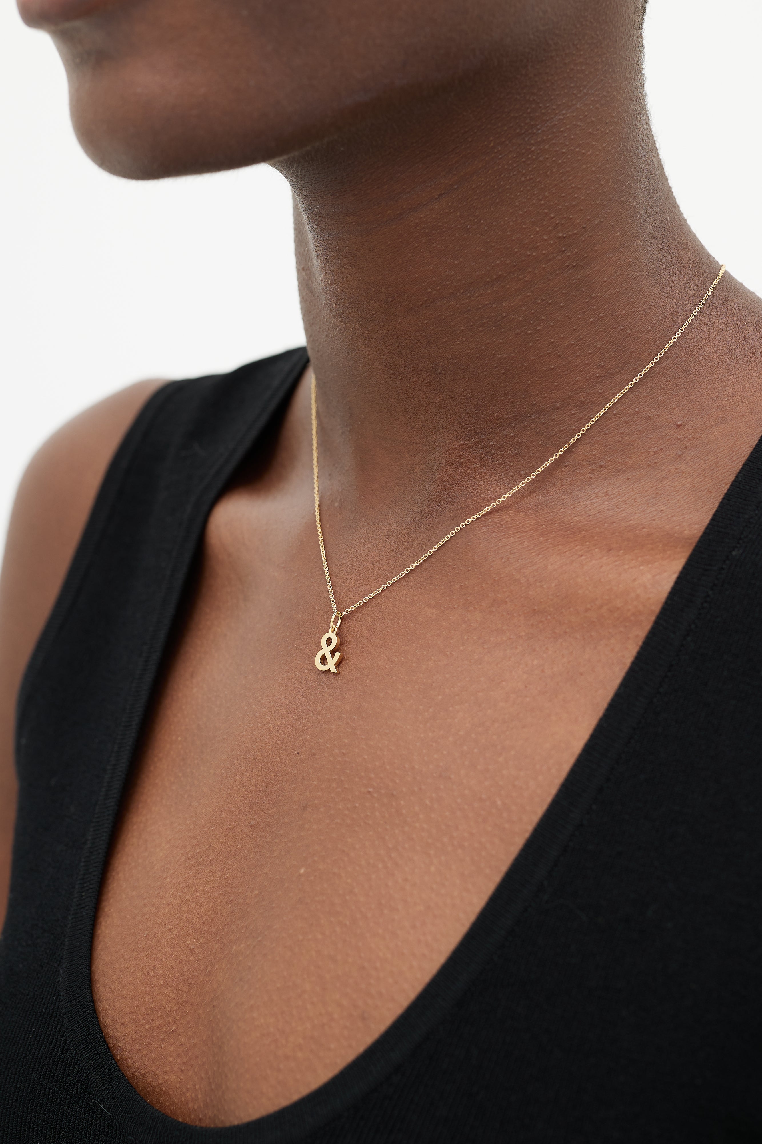 Pre-owned Tiffany & Co. 18K necklace in yellow gold featuring an '&' pendant, chain link, and clap closure. Comes with original dust bag and box.