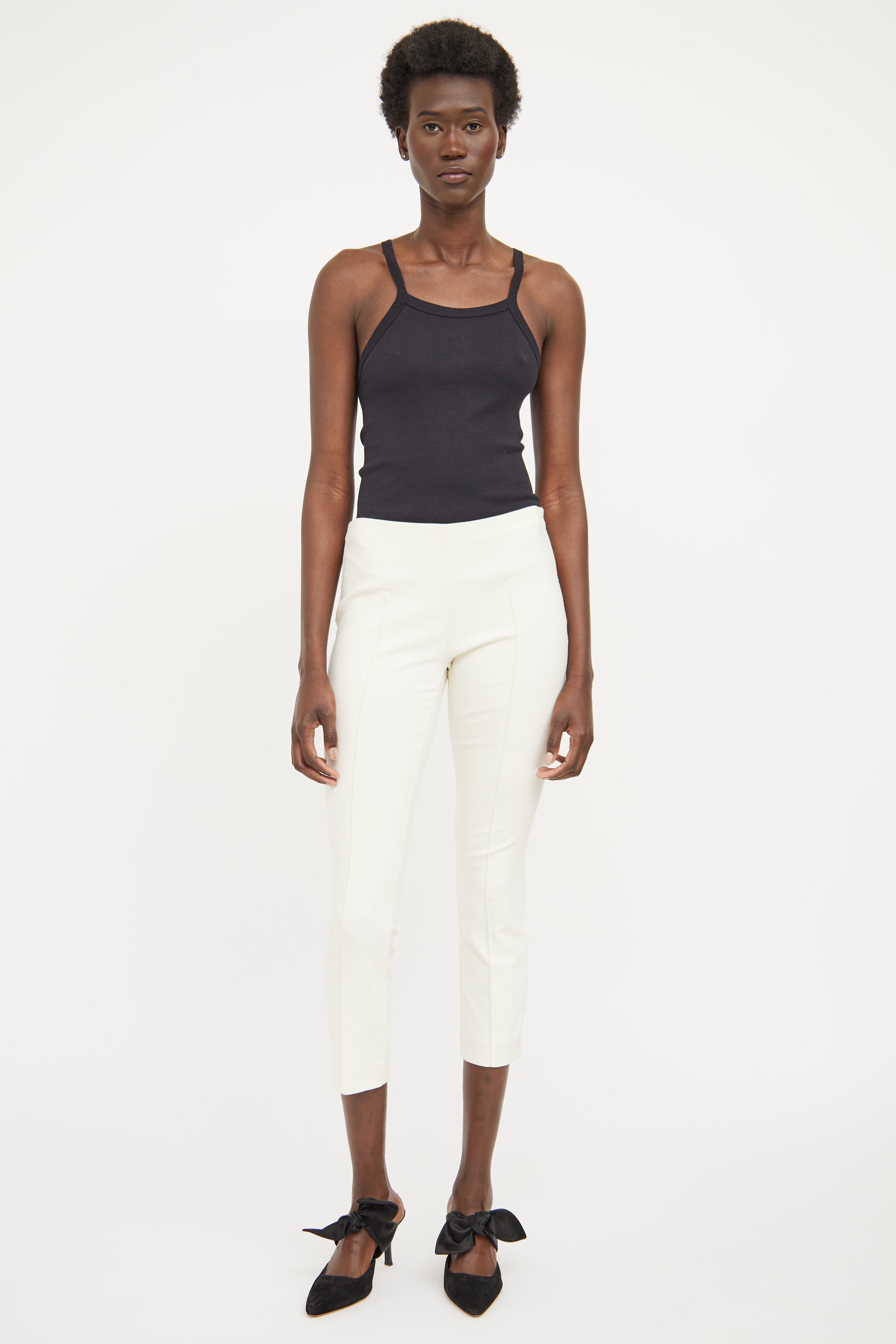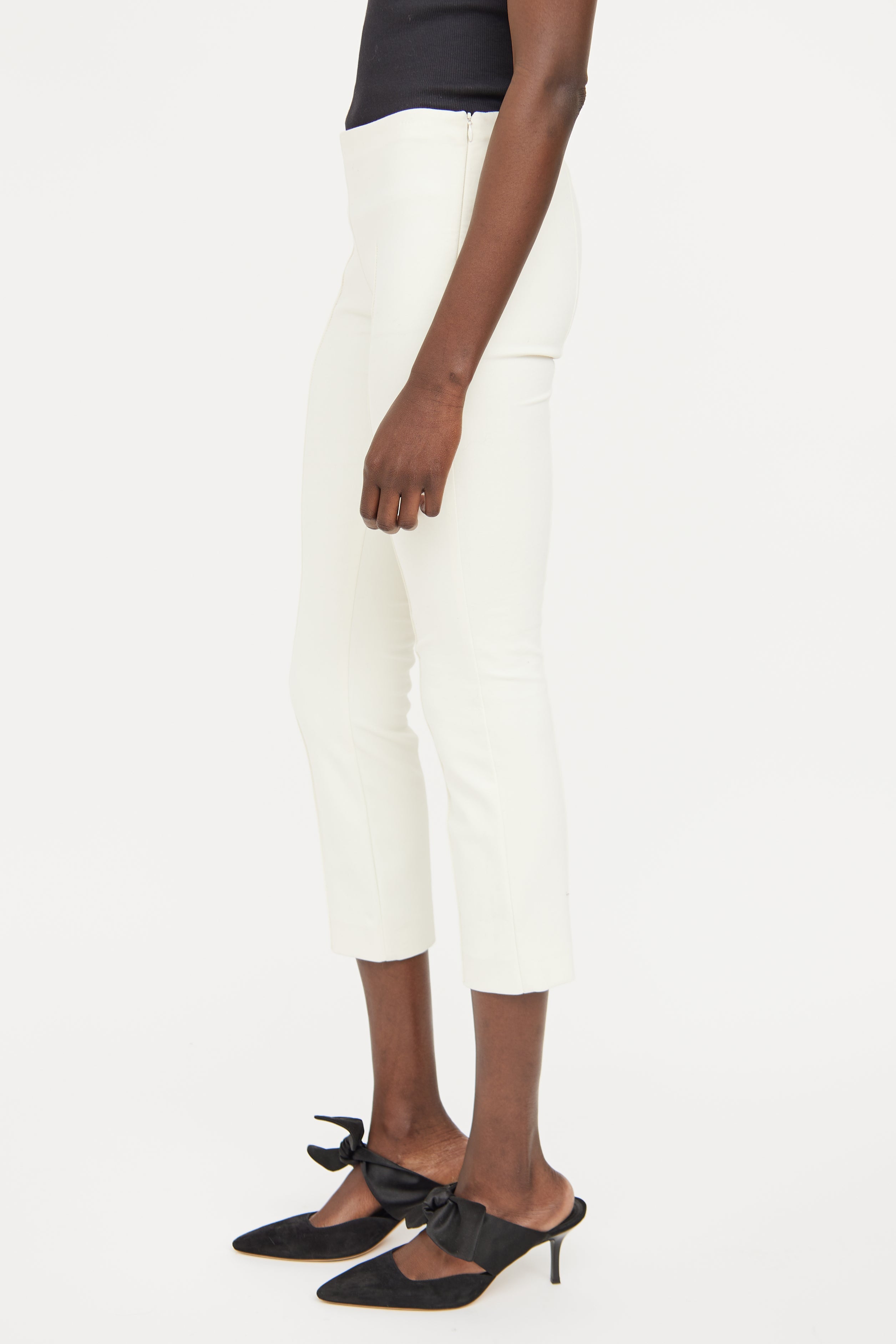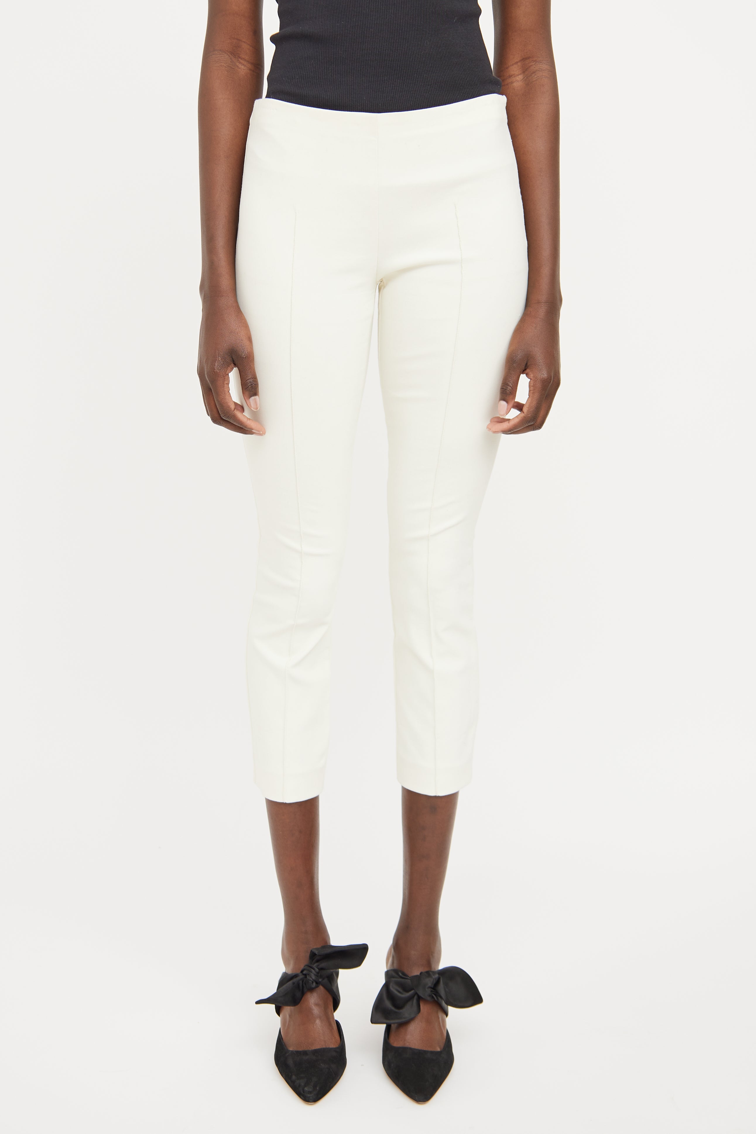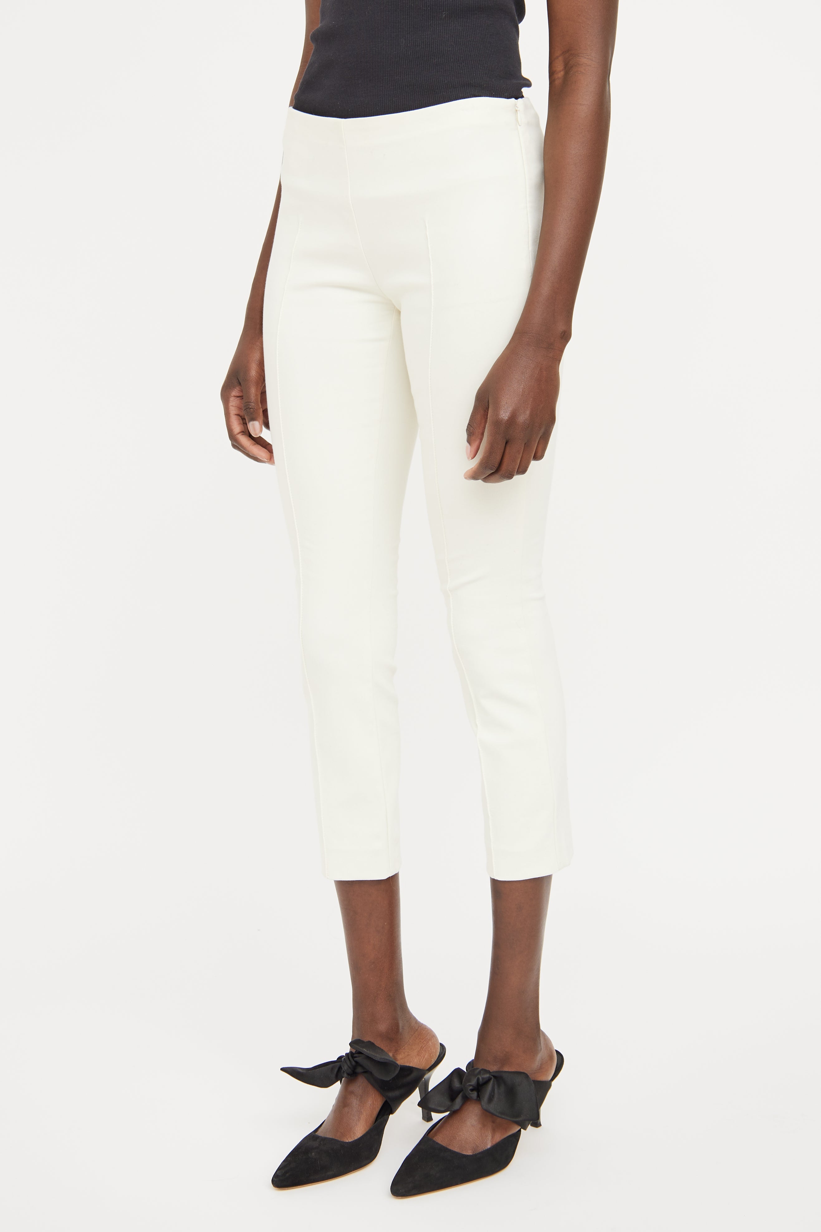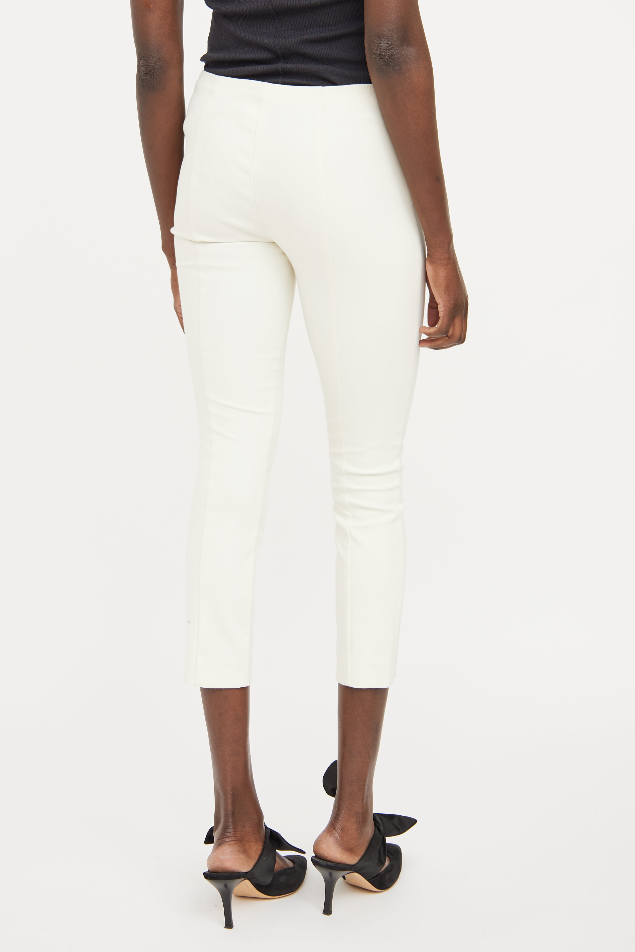Pre-owned The Row cream pants featuring slim fit, side zip entry, cropped fit and creasing on leg.