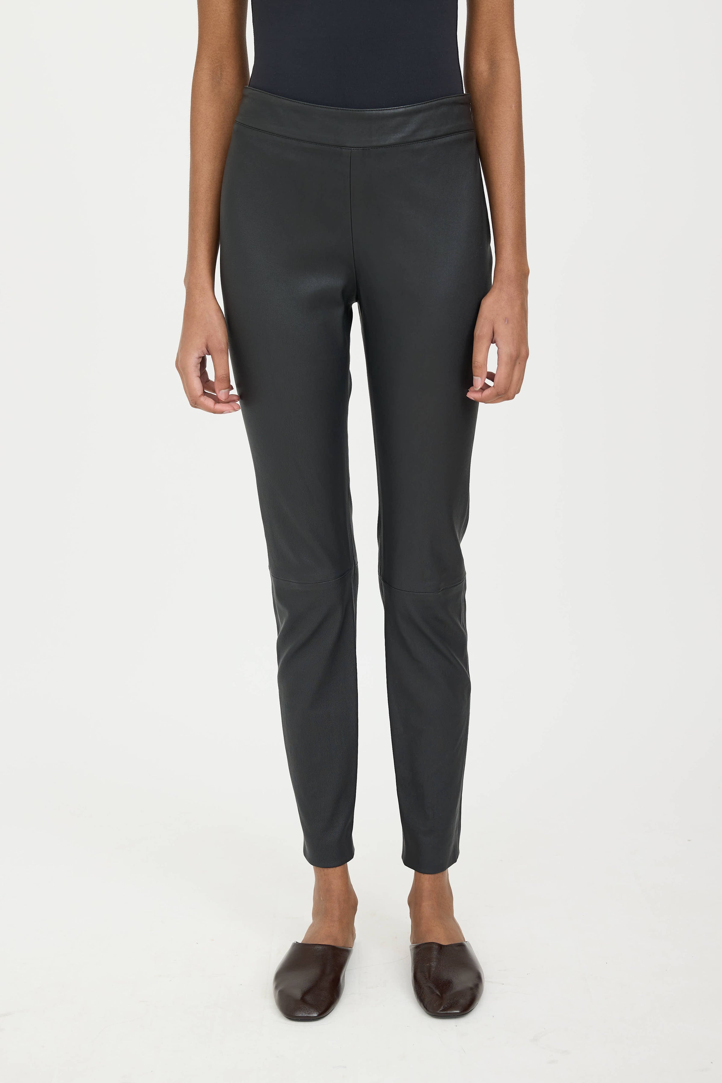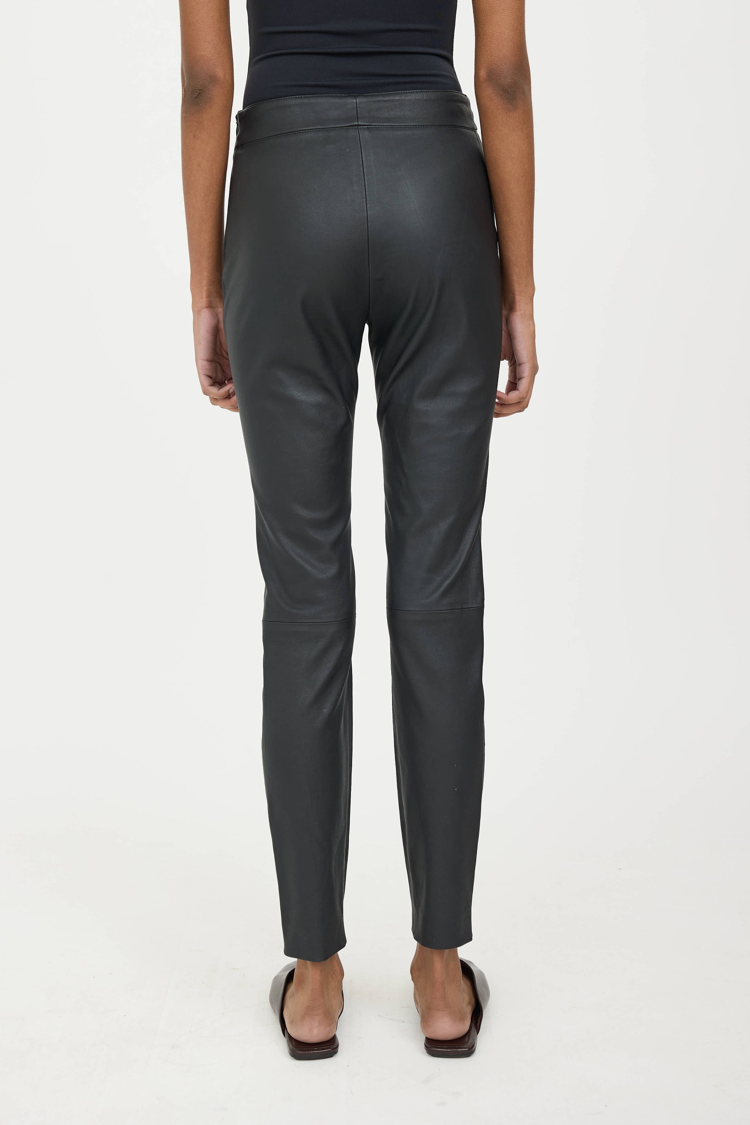 Pre-owned Fabiana Filippi black leather pants featuring a skinny leg, panelled knee, and zip closure at side.