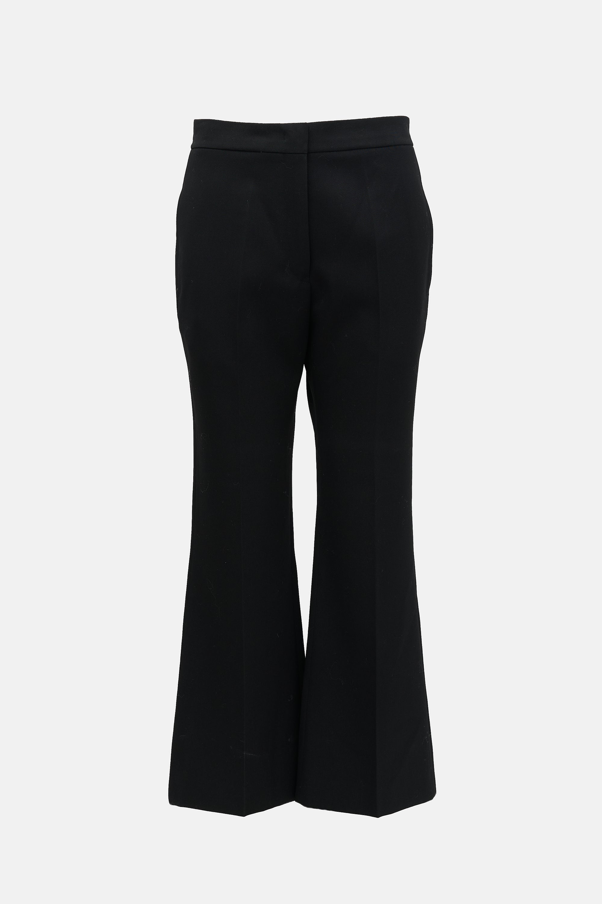 Pre-owned Jil Sander black wool trousers featuring high waist, straight leg with creases, four pocket styling, and zip fly.