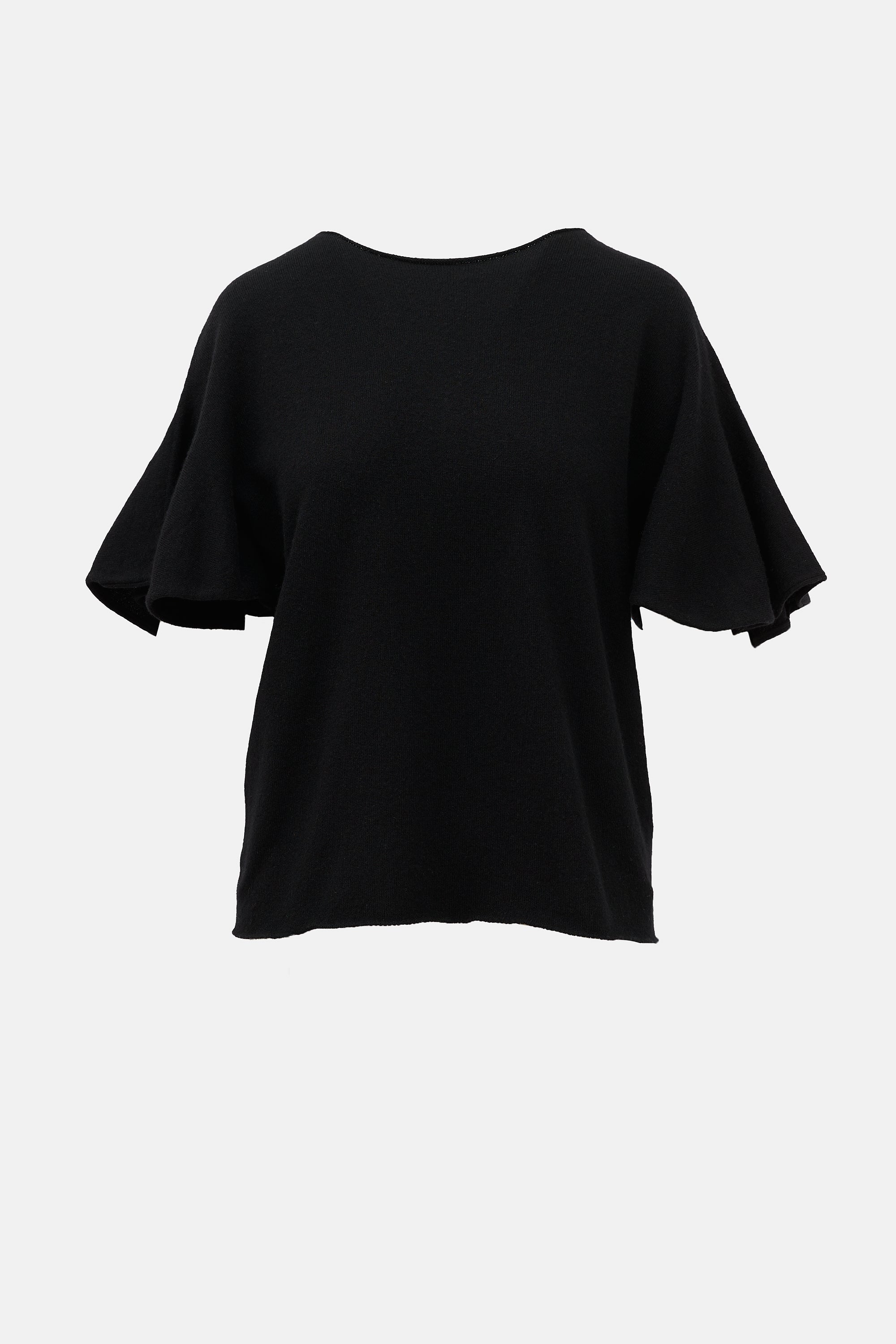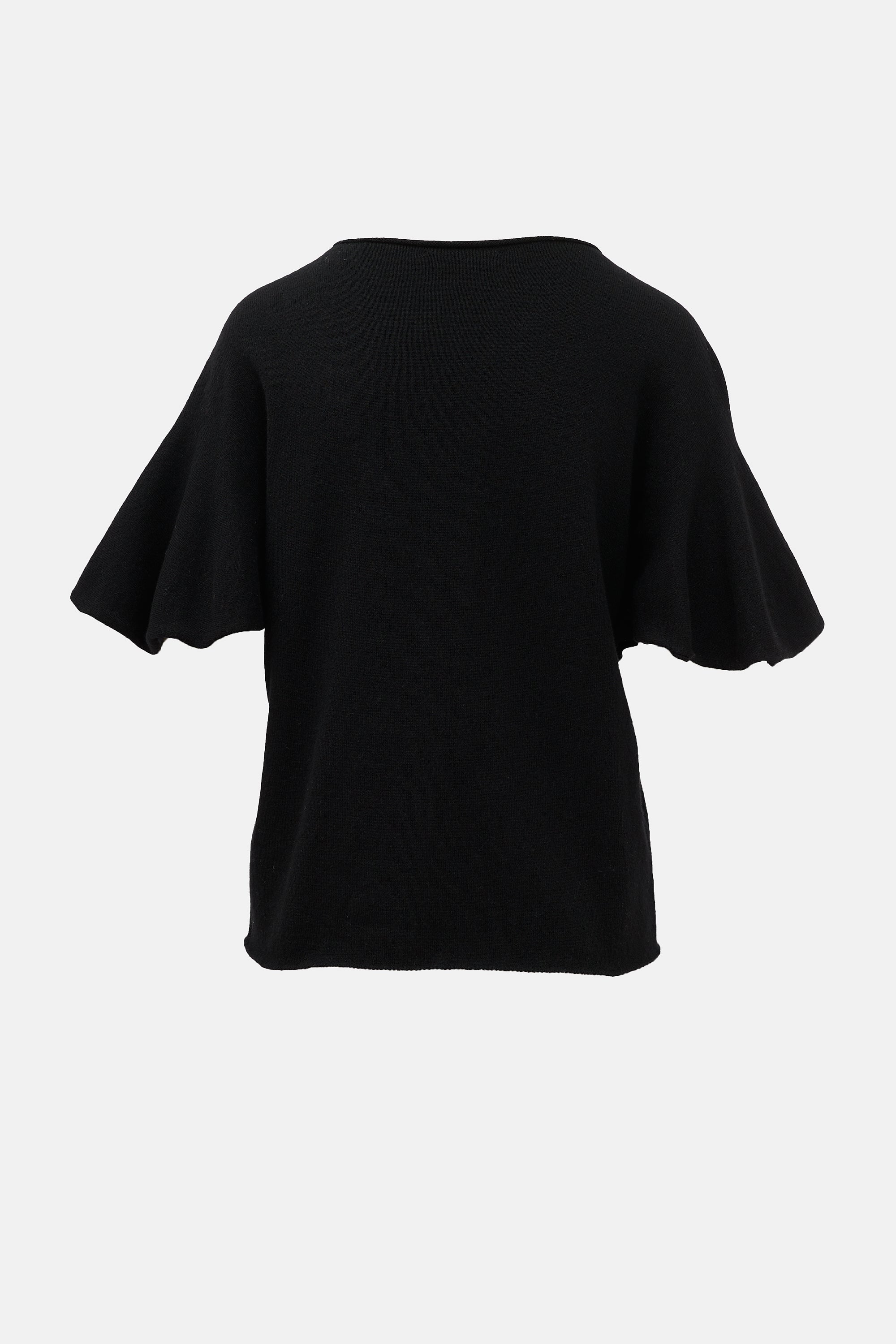 Pre-owned The Row black cashmere Marley sweater featuring round rolled neckline and short flutter sleeves.