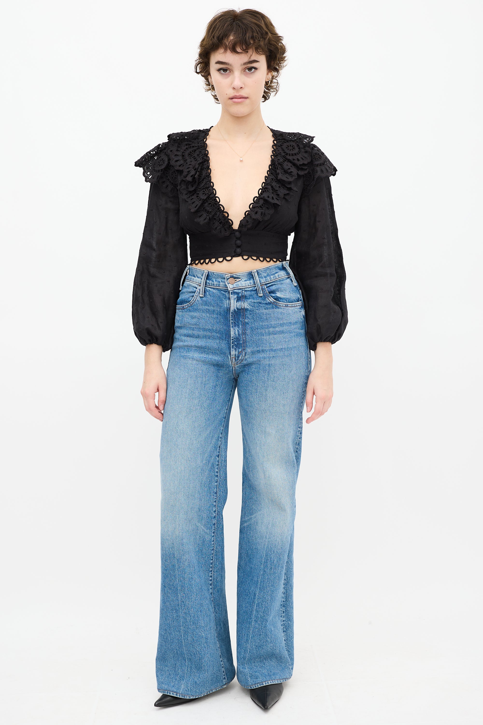Ruffled Eyelet Cropped Top US 4 Size Guide