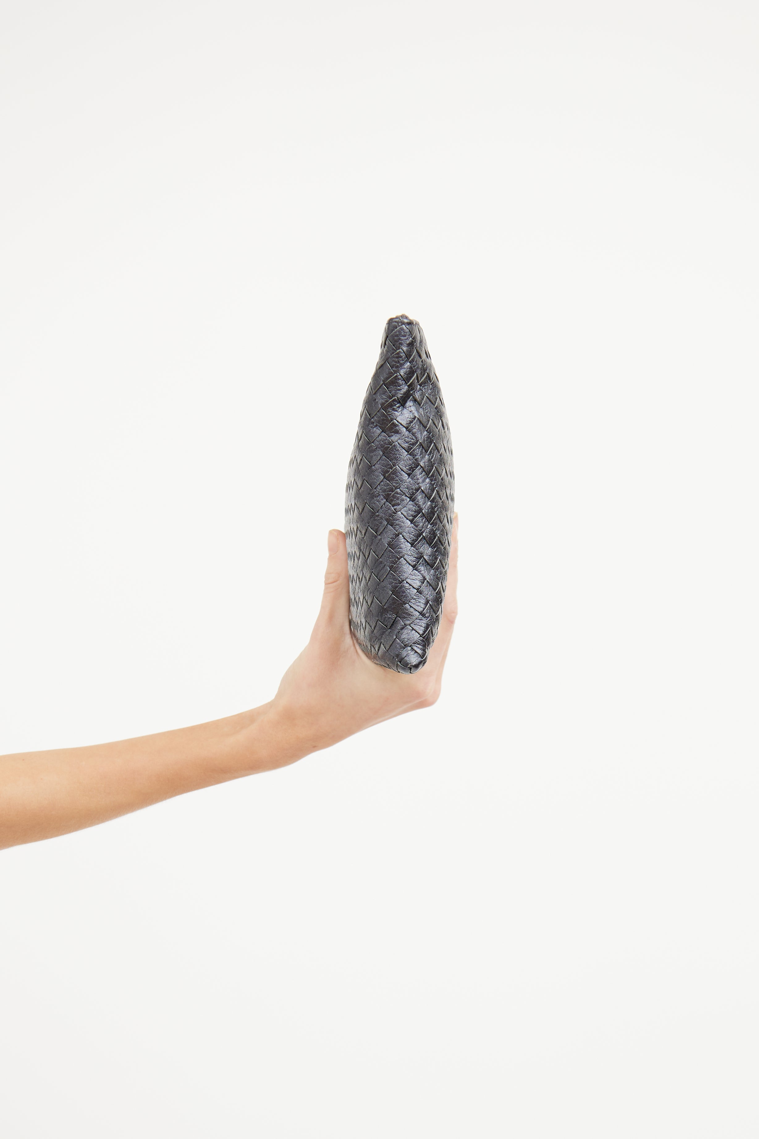 Grey Metallic Intrecciato Woven Pouch
