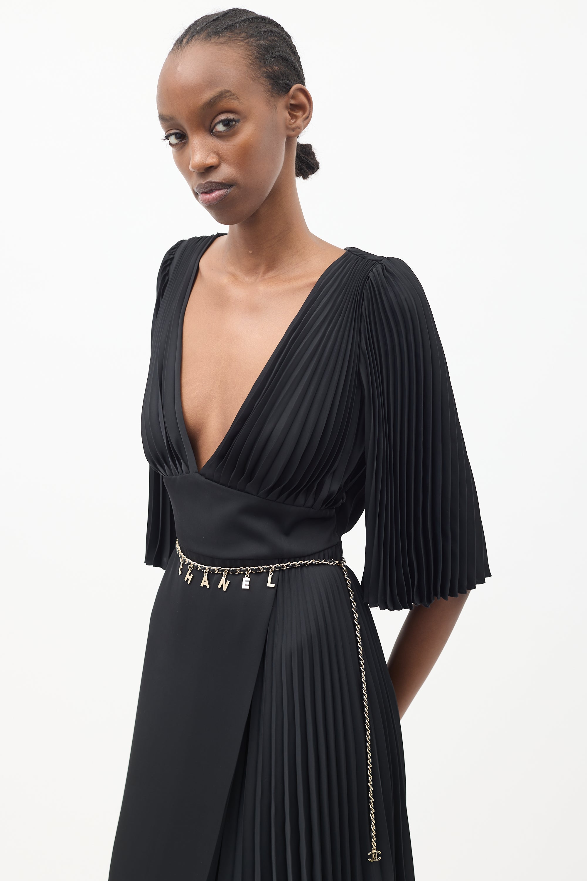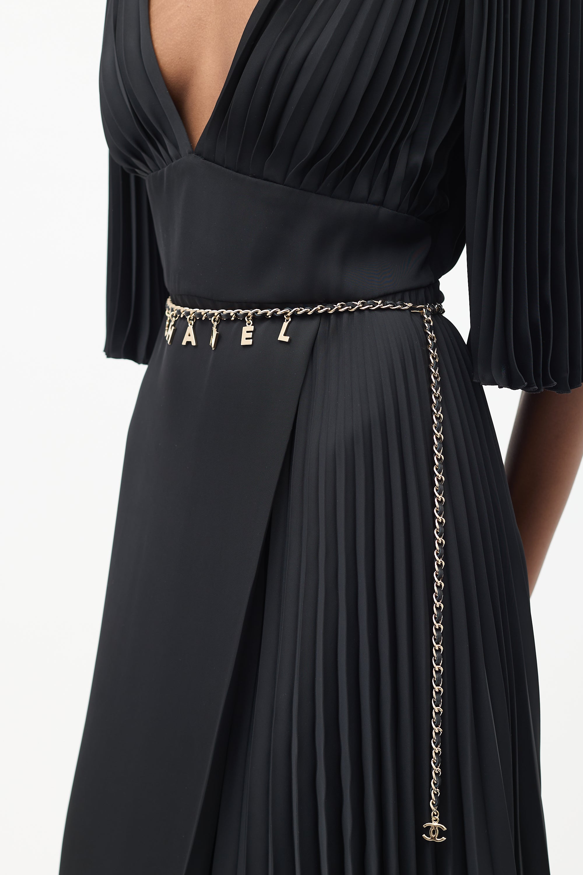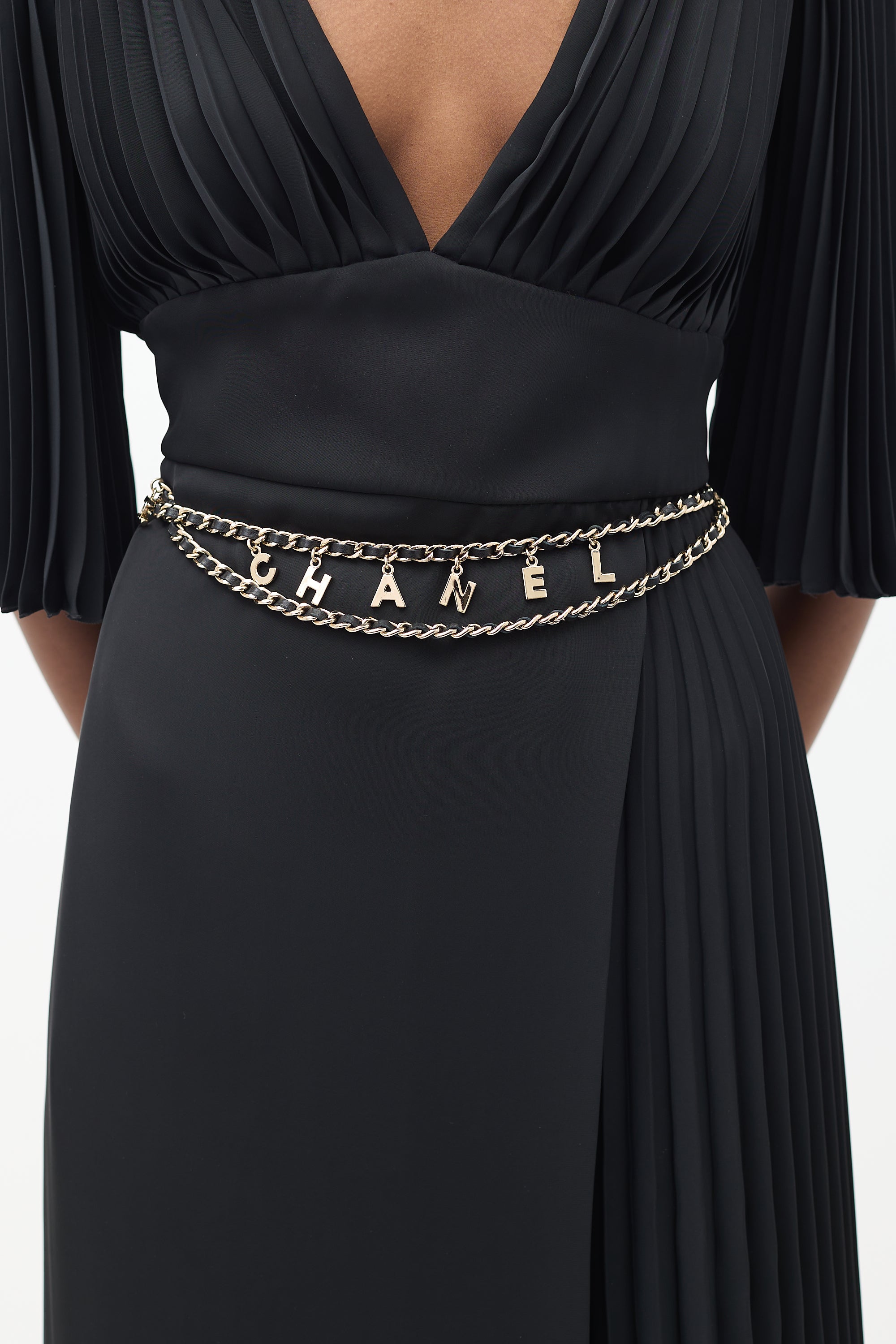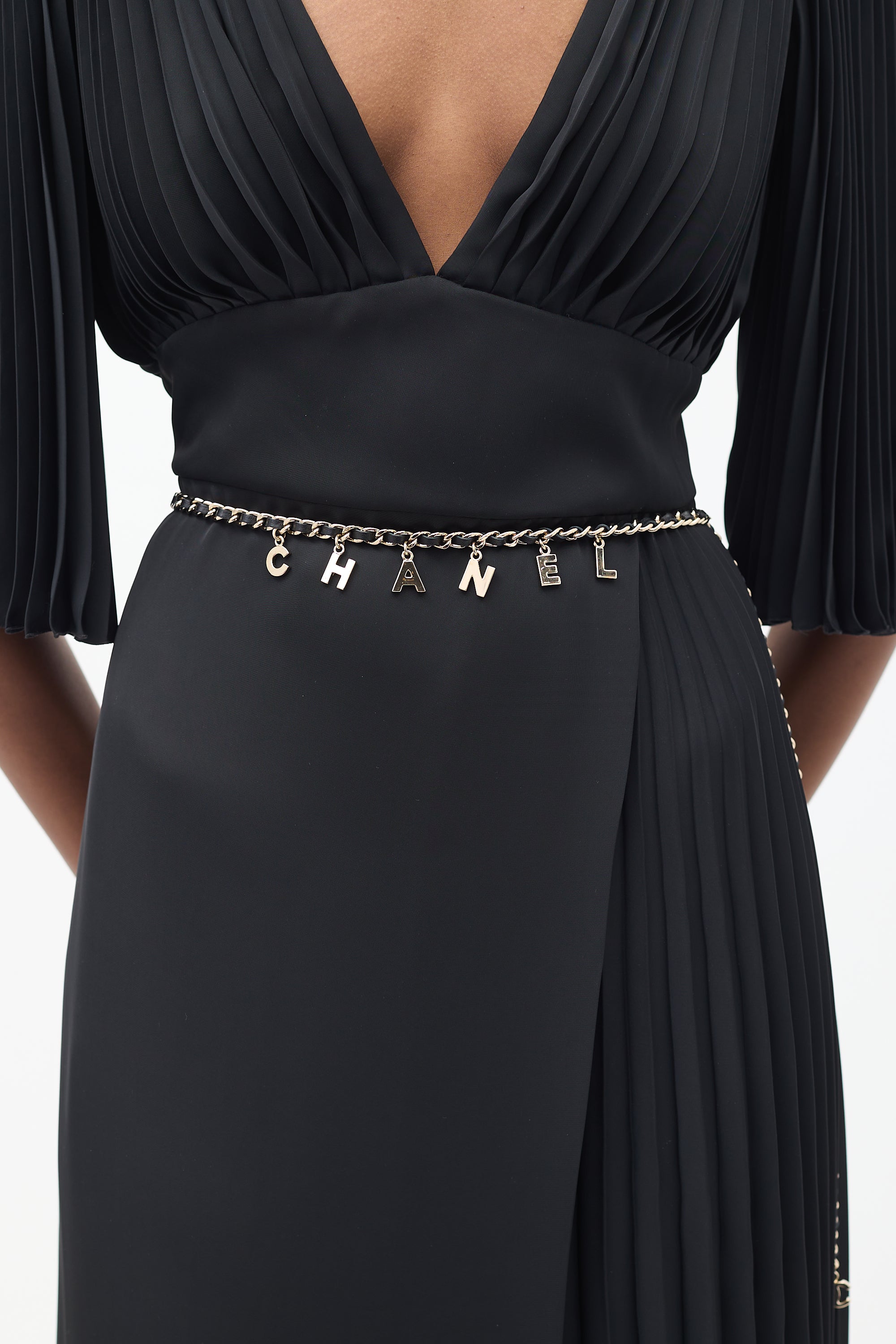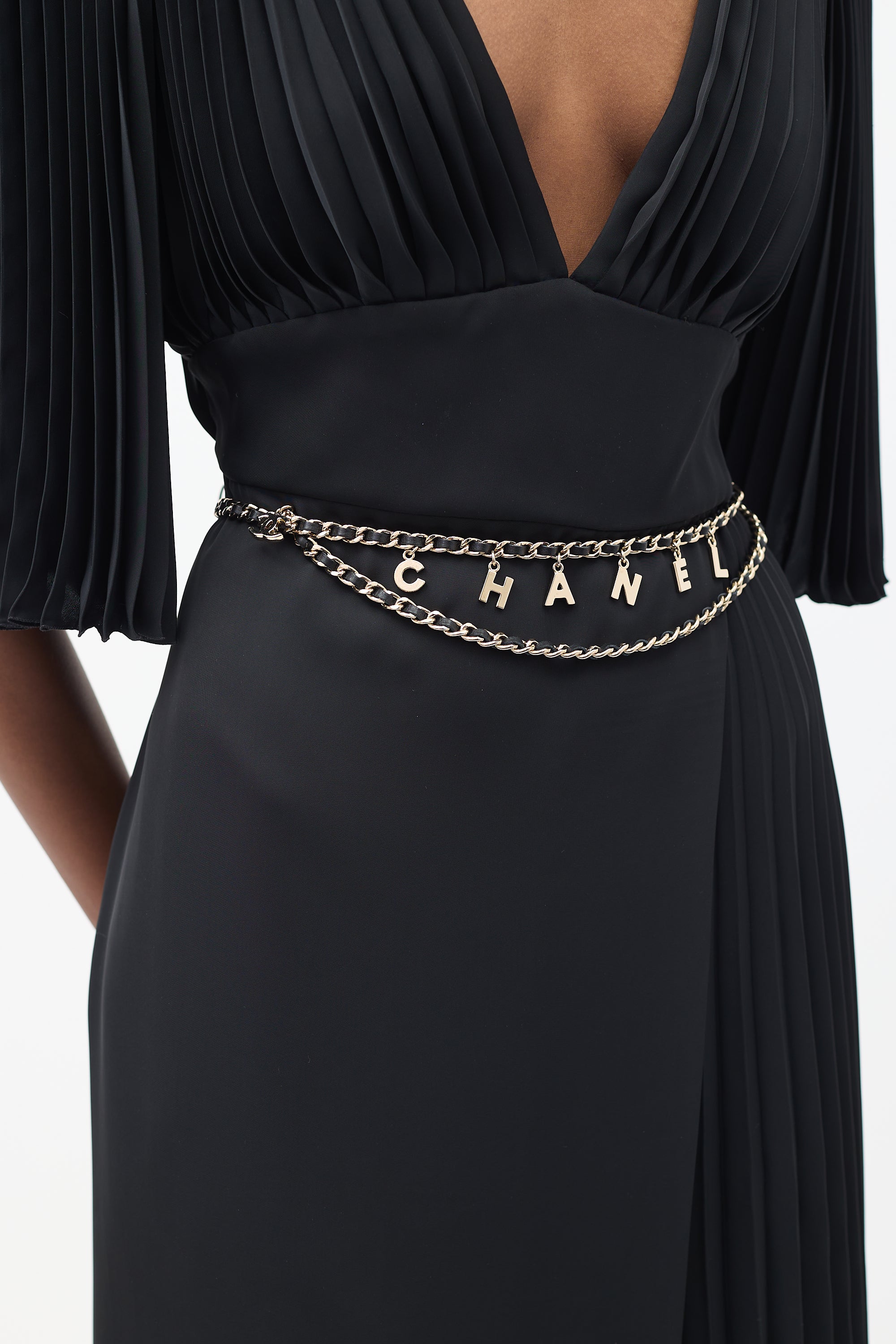 2005 Gold & Black Leather Letter Logo Chain Belt