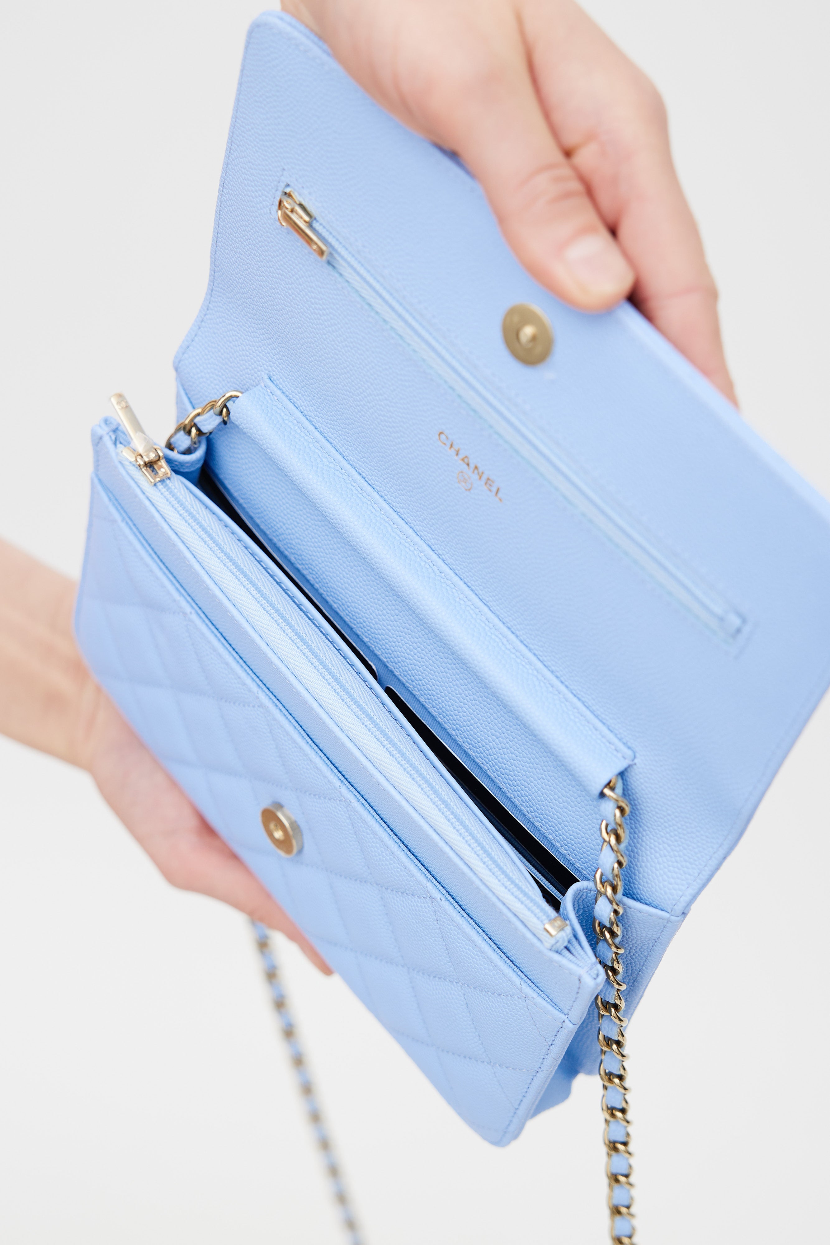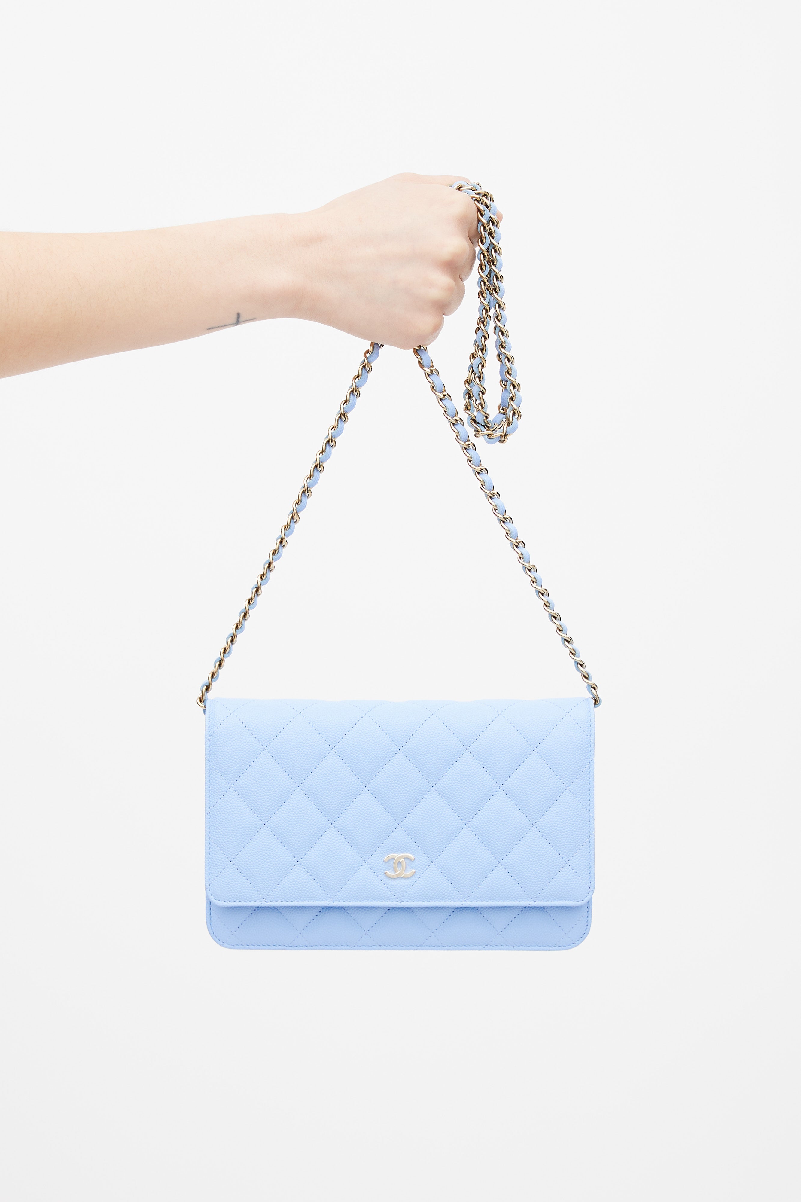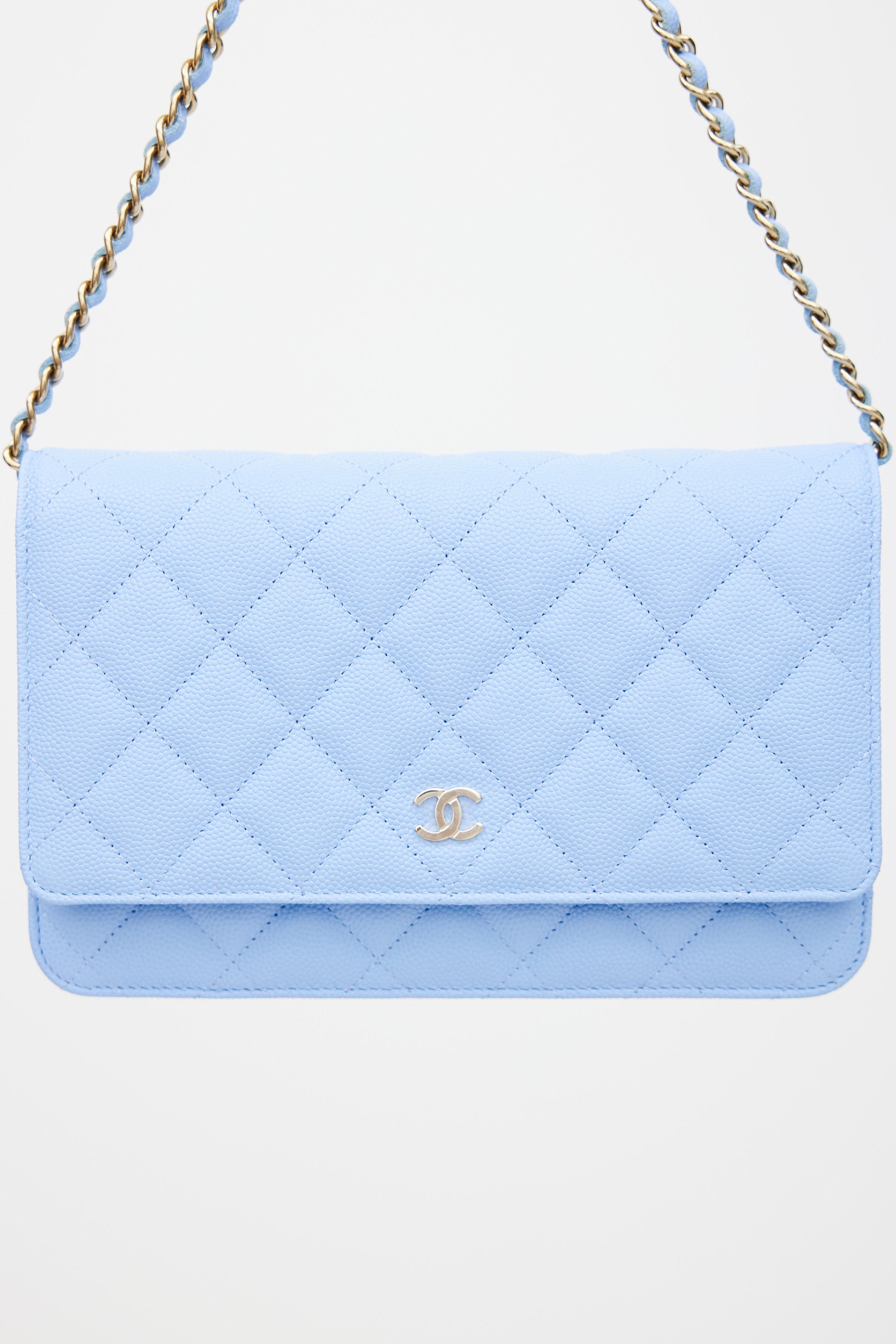 Light Blue Caviar Leather Wallet On Chain Bag