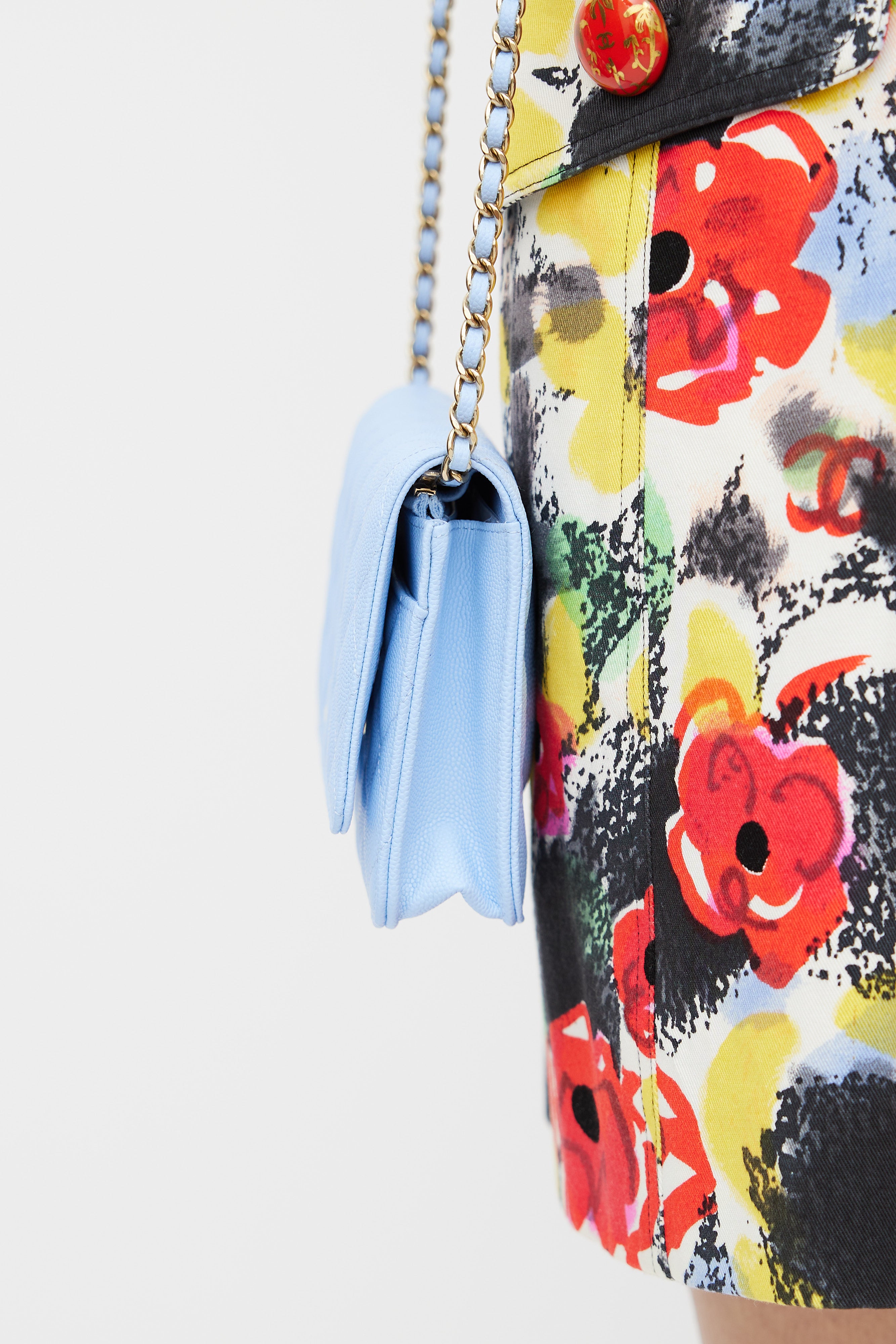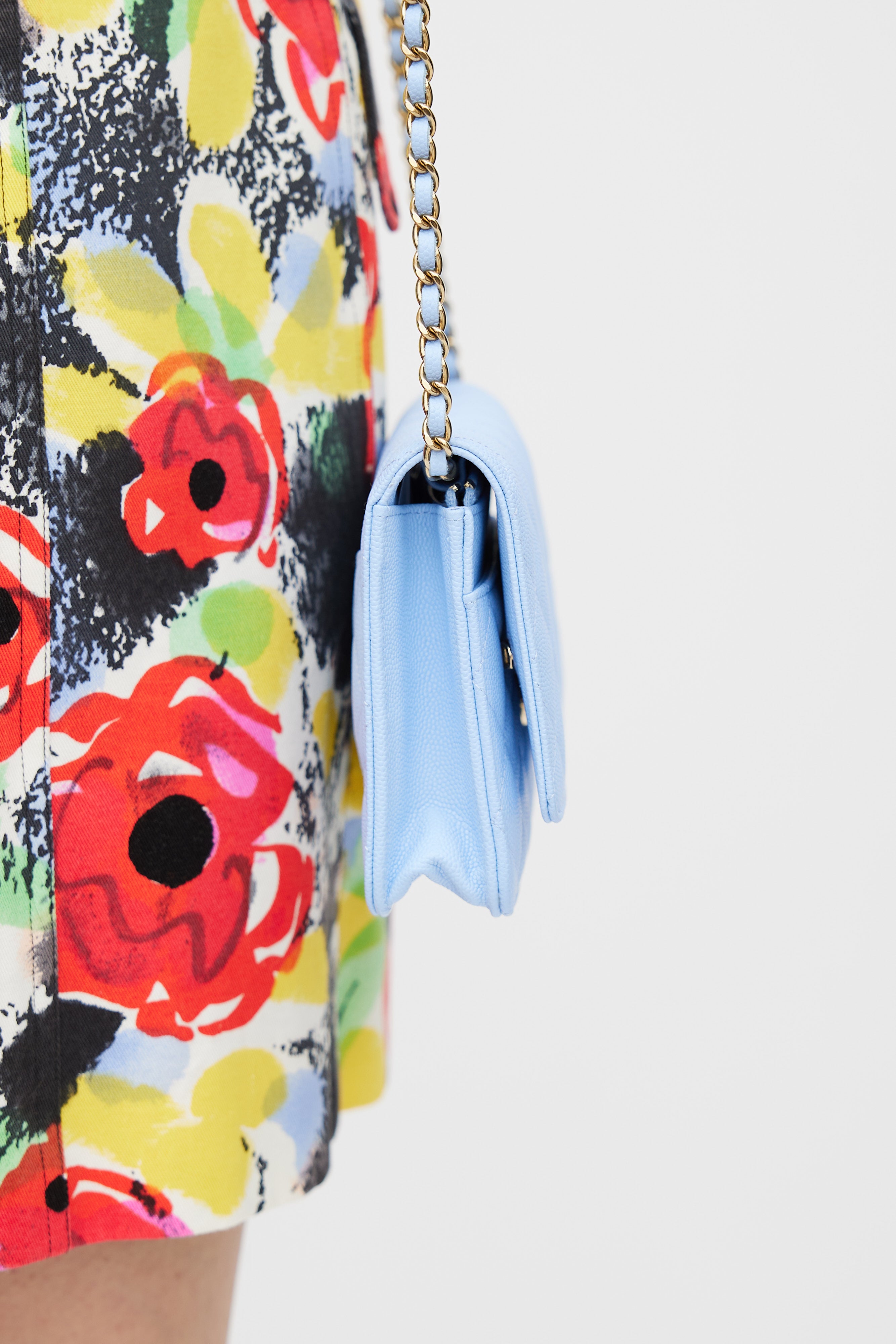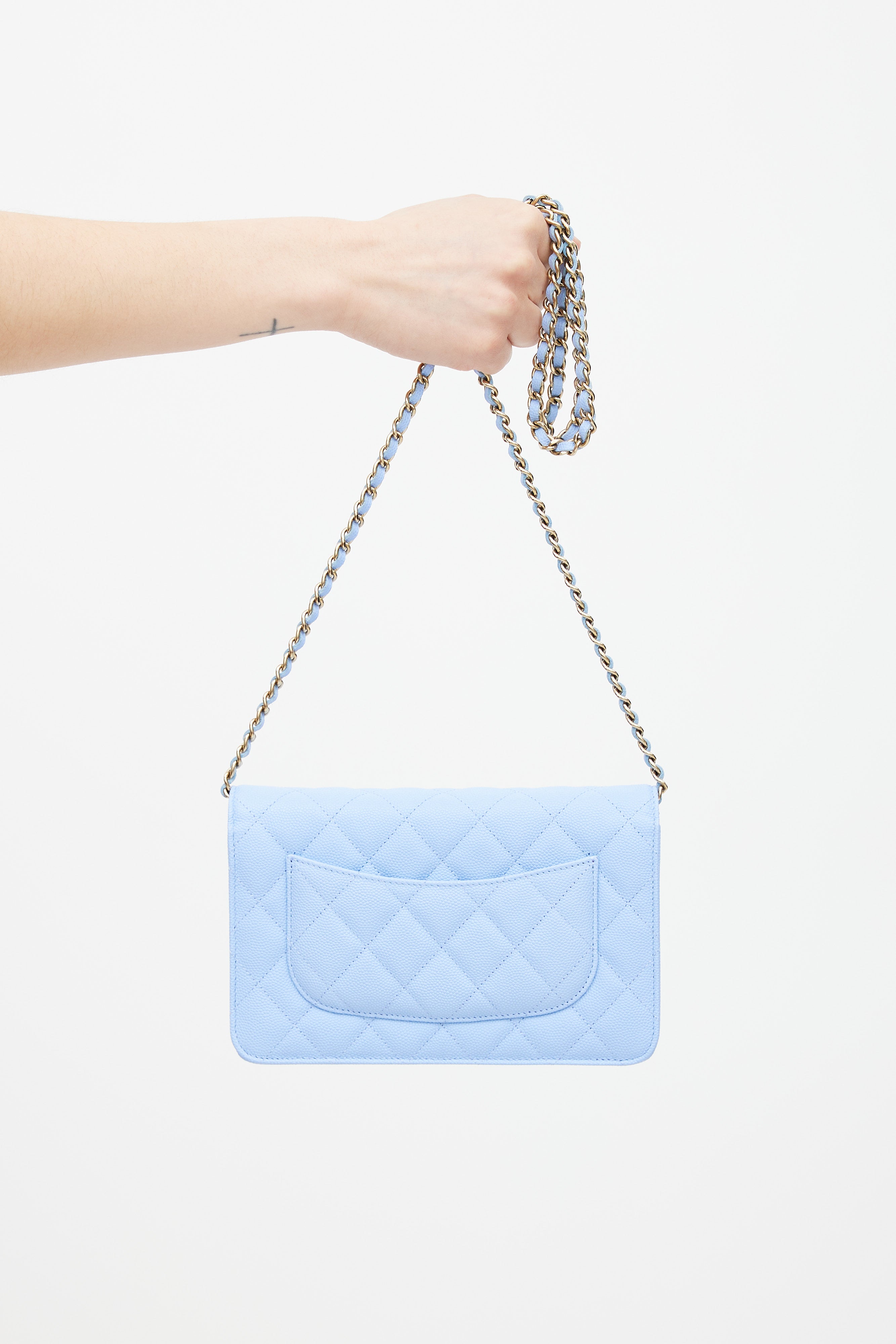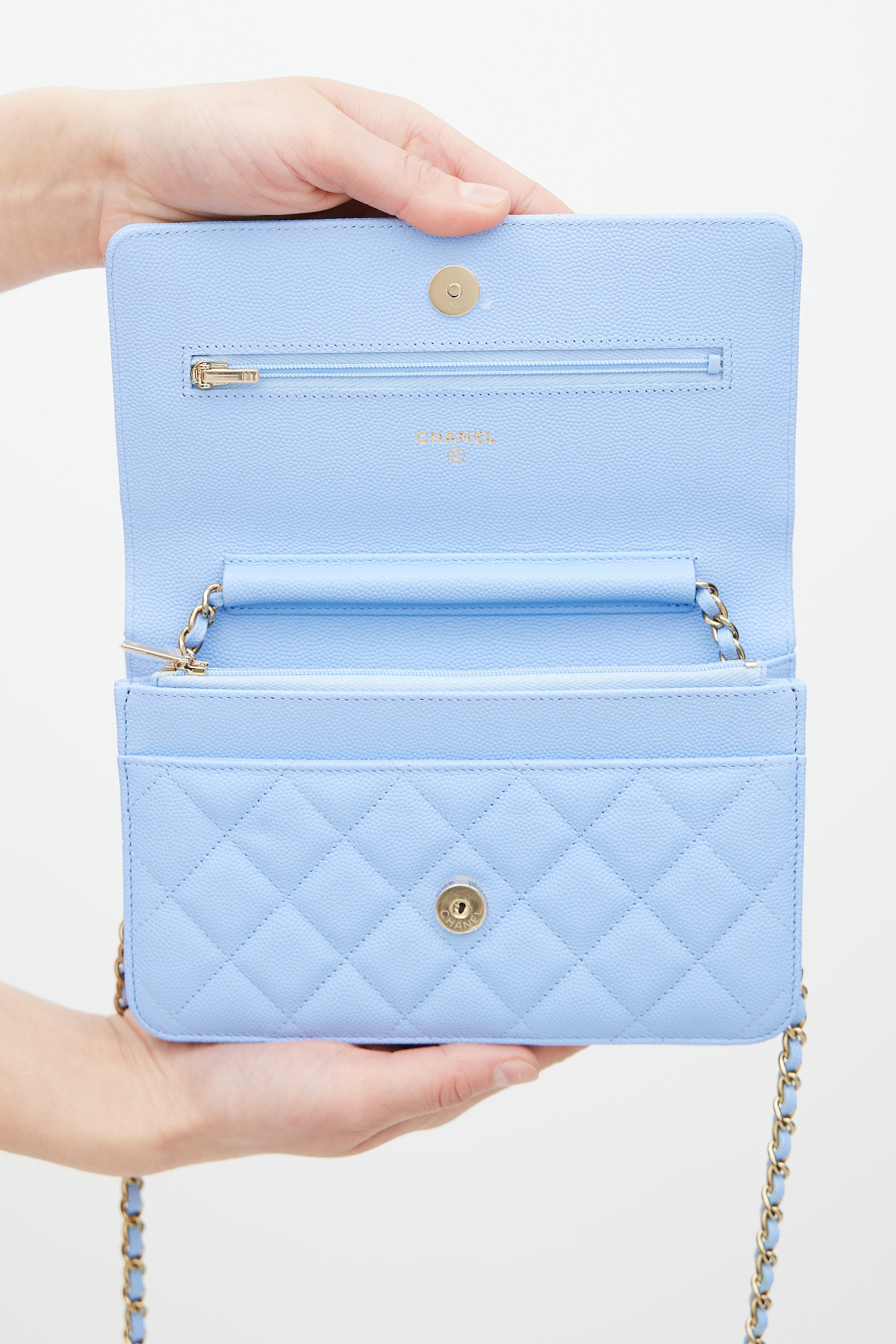 Light Blue Caviar Leather Wallet On Chain Bag