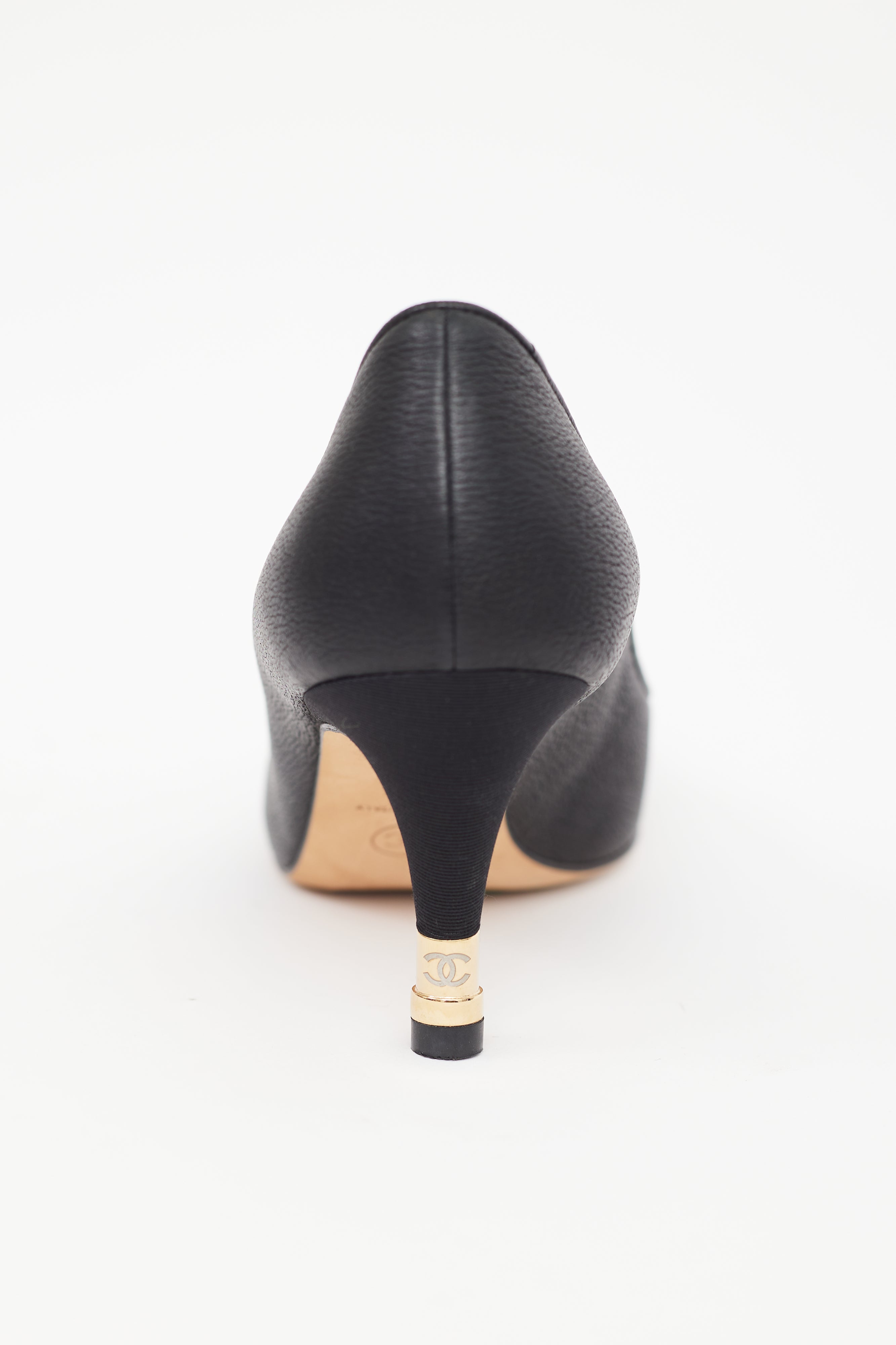 Spring 2012 Black & Gold Leather CC Tip Heel FR 37.5 Size Guide