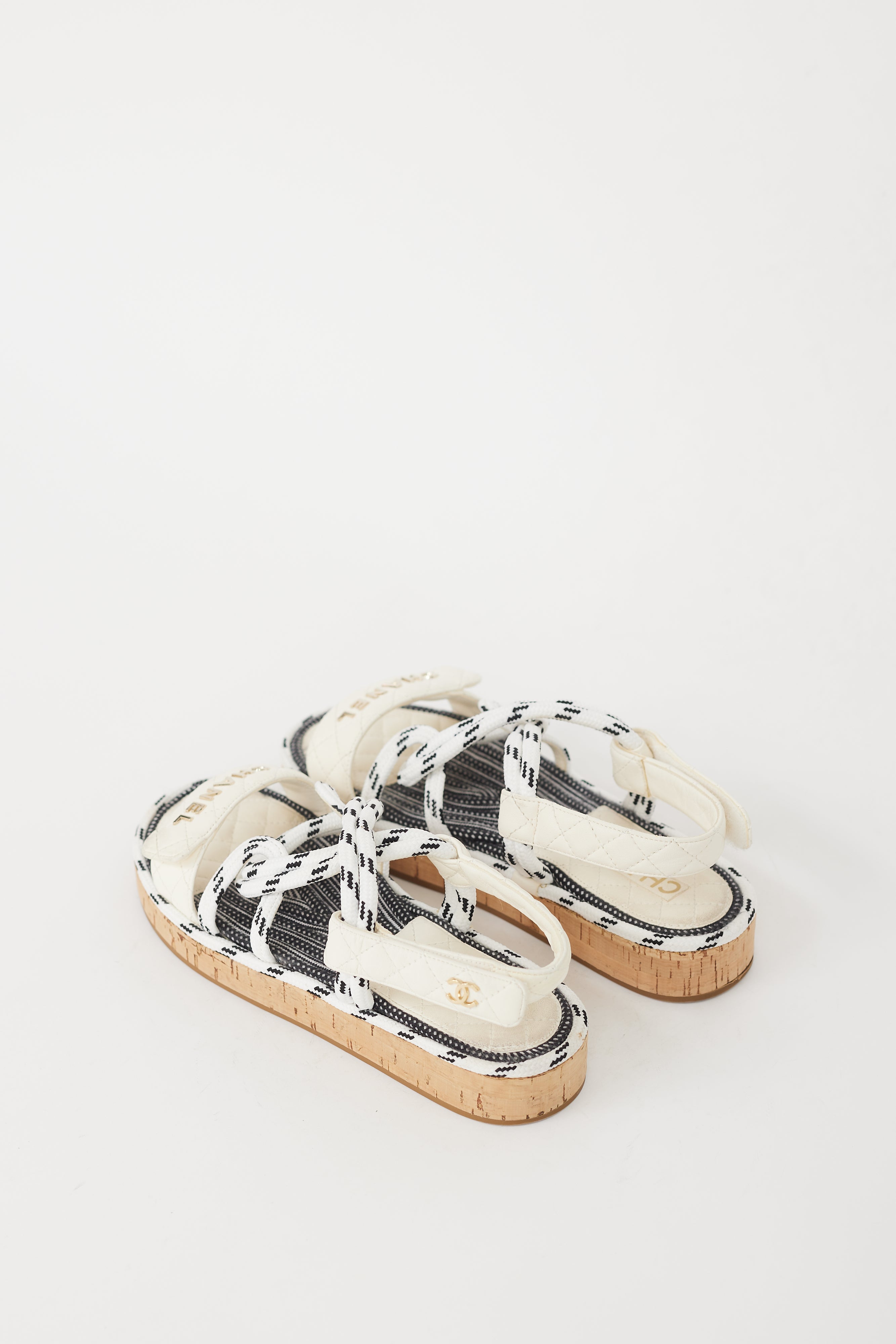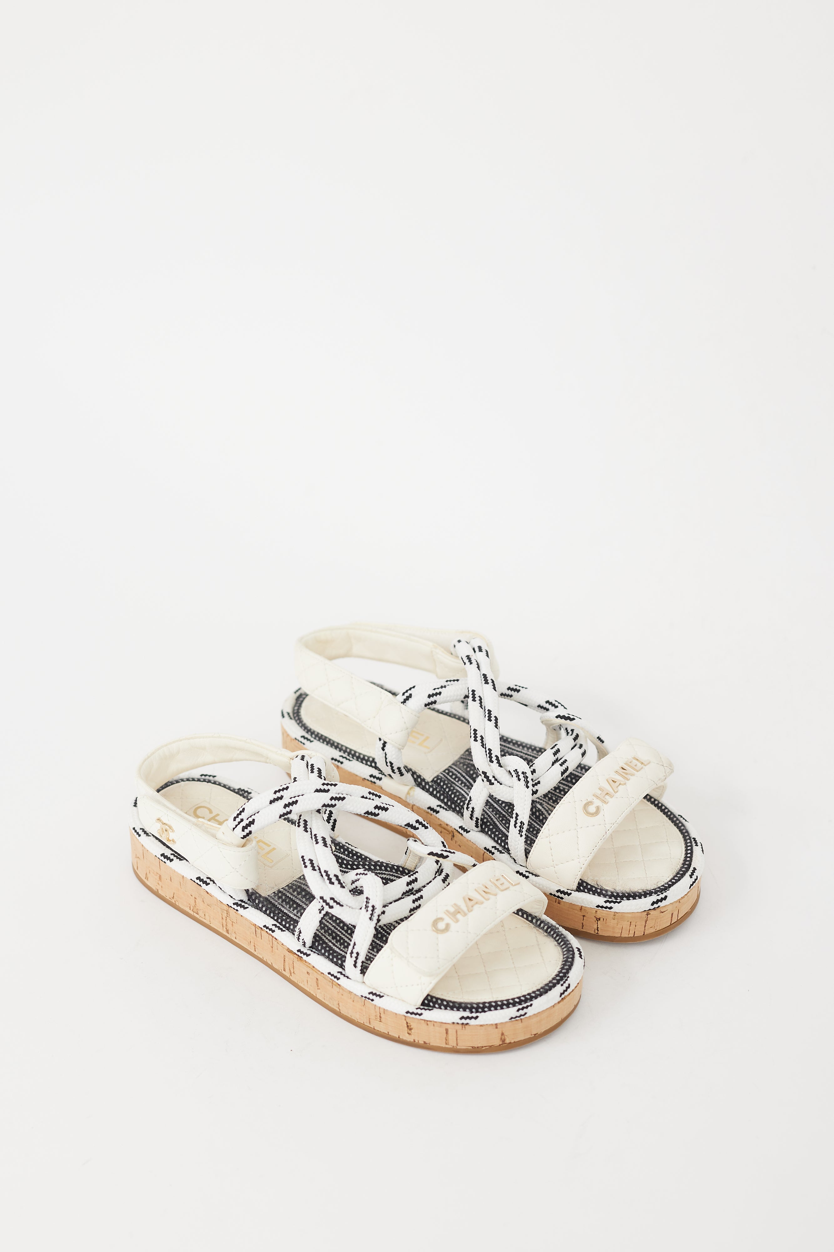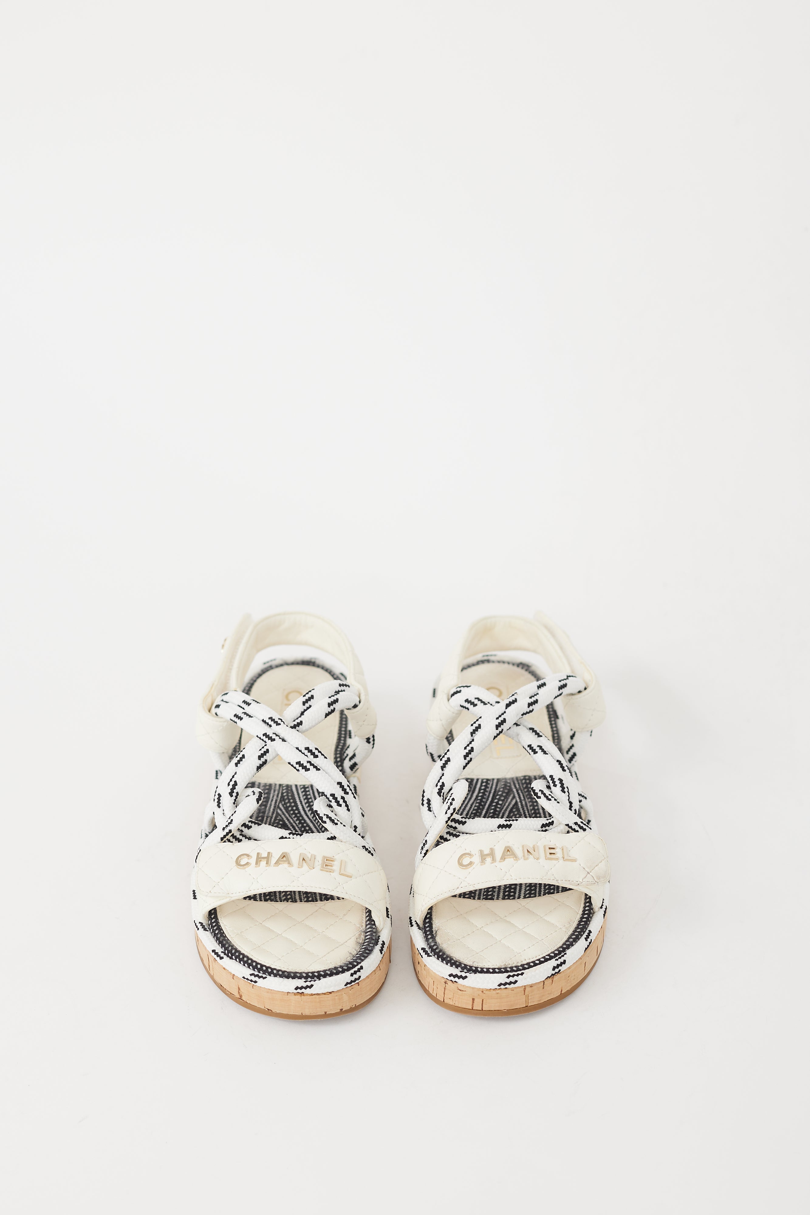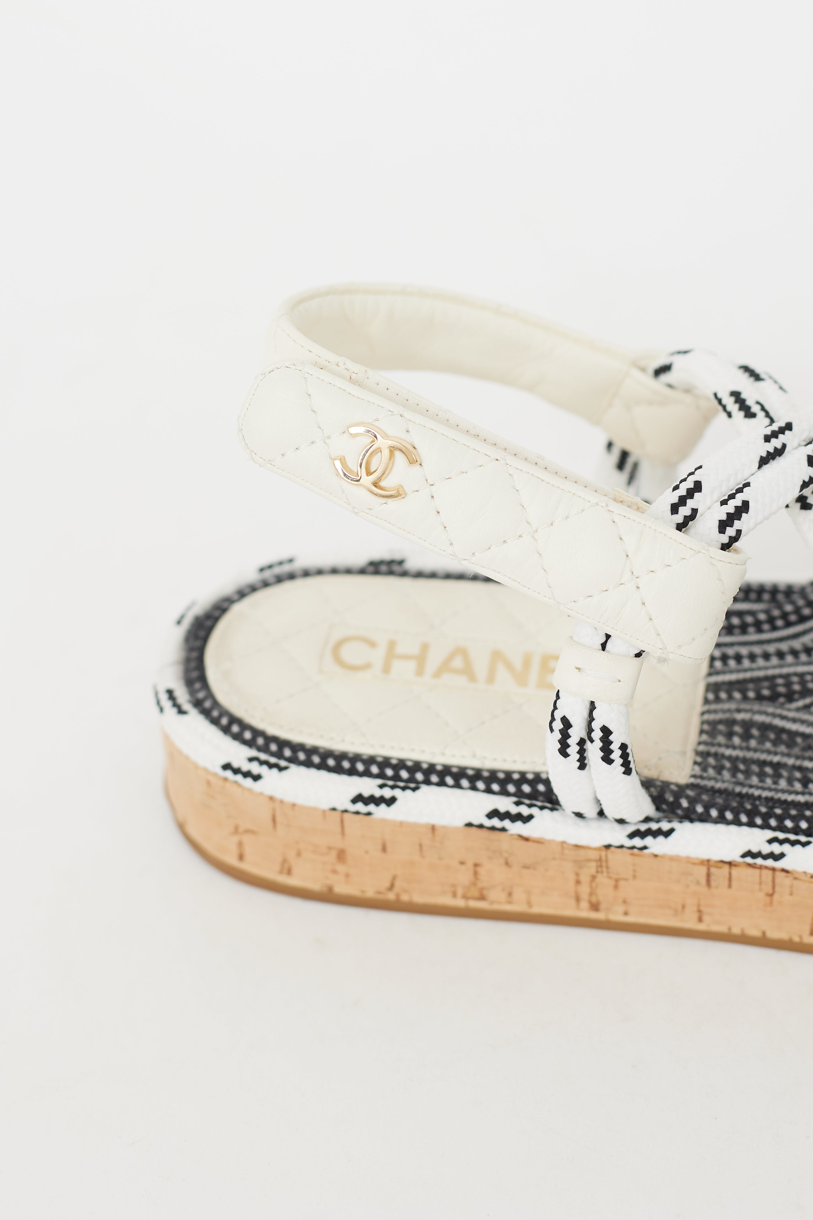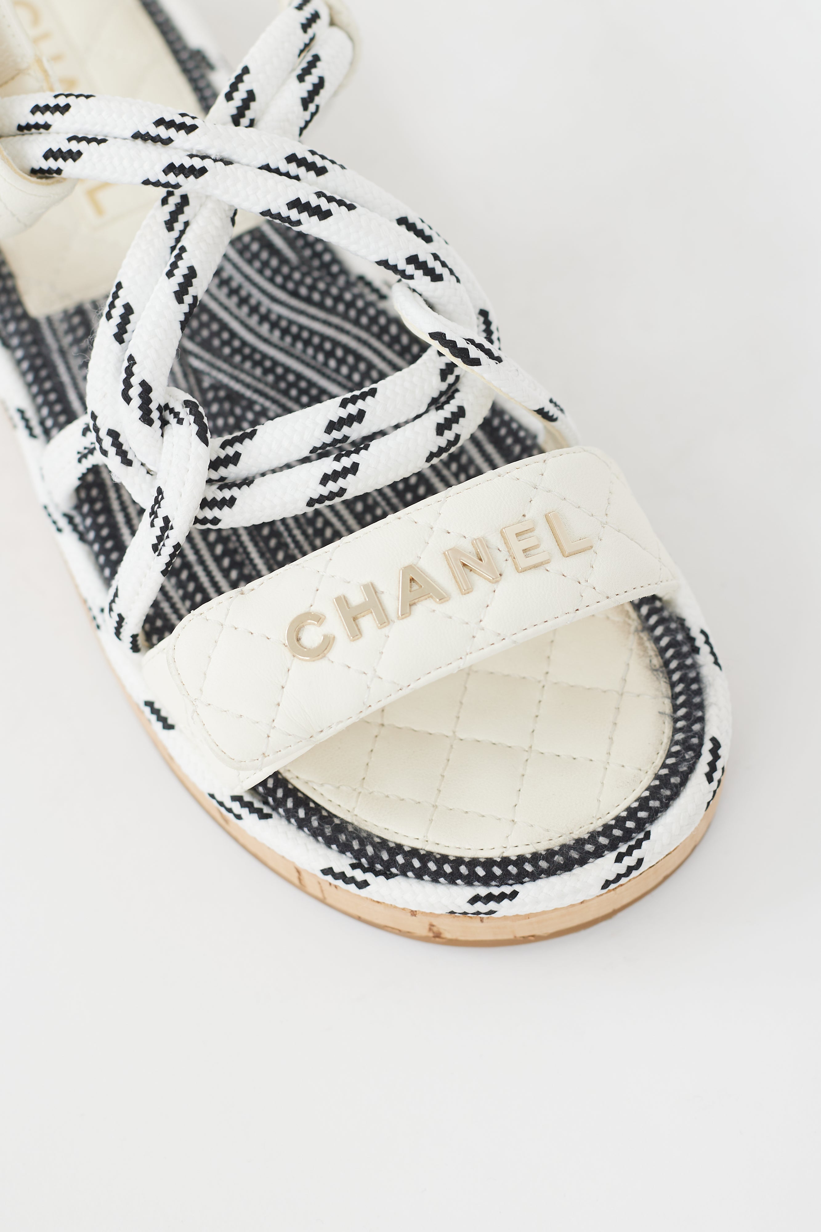 White & Black Leather CC Logo Quilted Rope Sandal FR 39 Size Guide