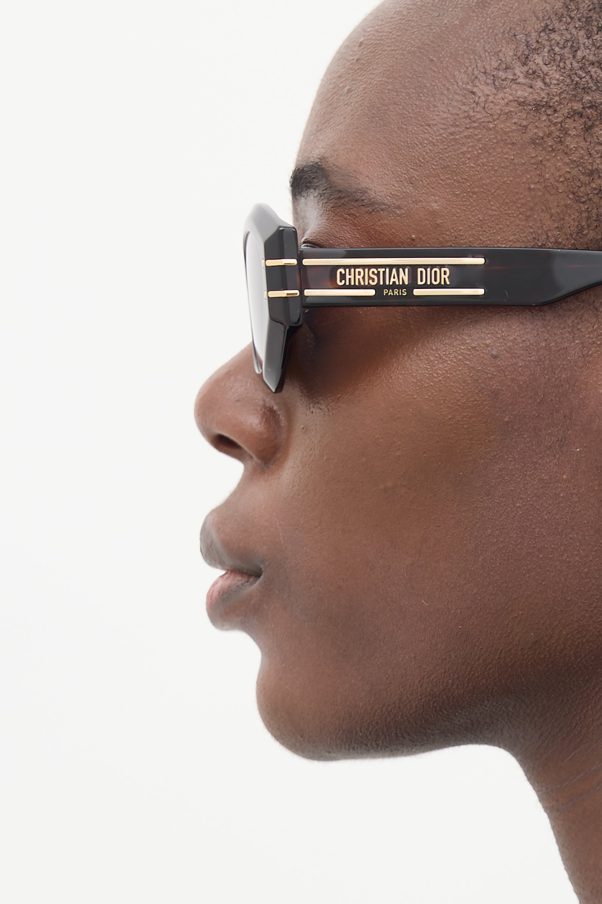 Brown Marbled DiorSignature B1U Angular Sunglasses