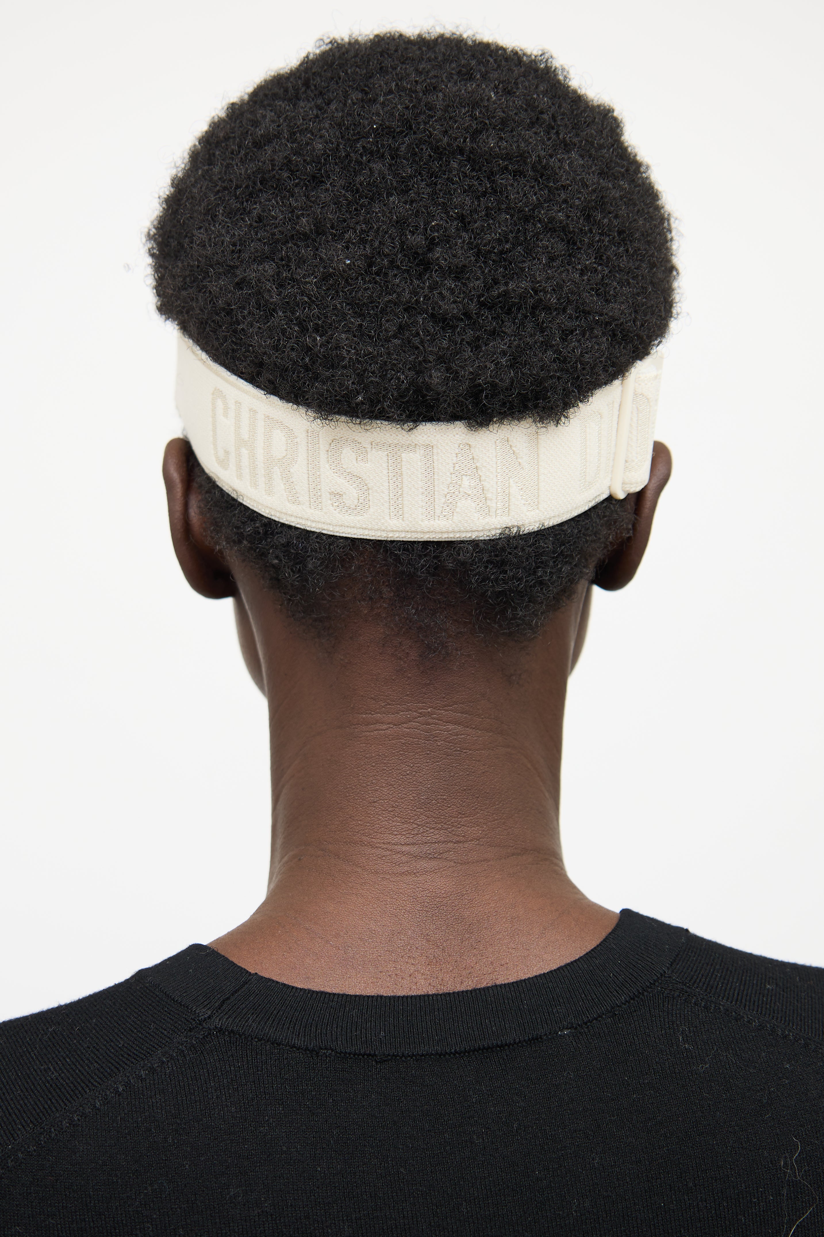 Pre-owned Dior Club1 visor featuring clear pink visor, rubberized lining with Christian Dior text, padding on forehead interior, and adjustable webbed strap with logo text.